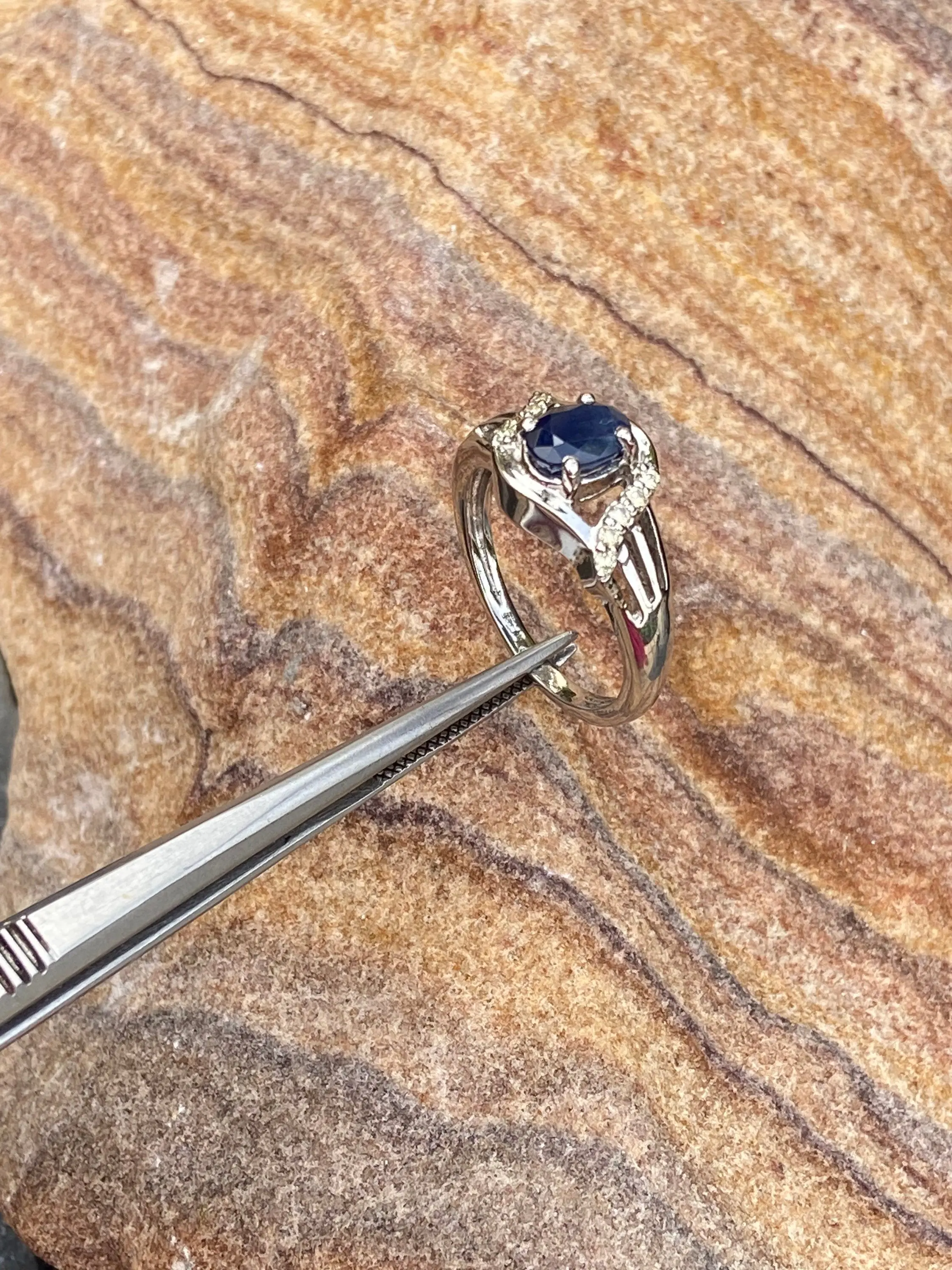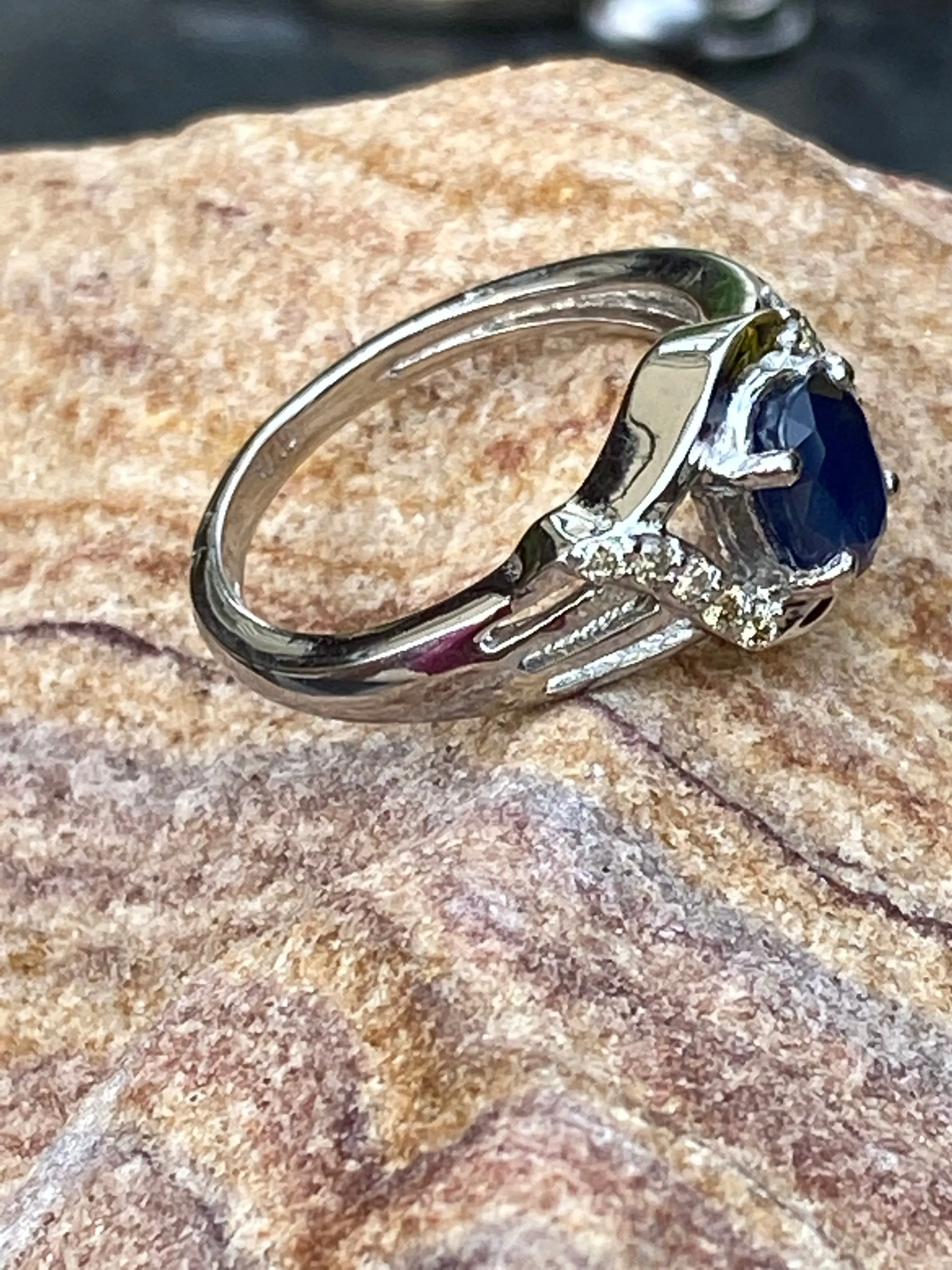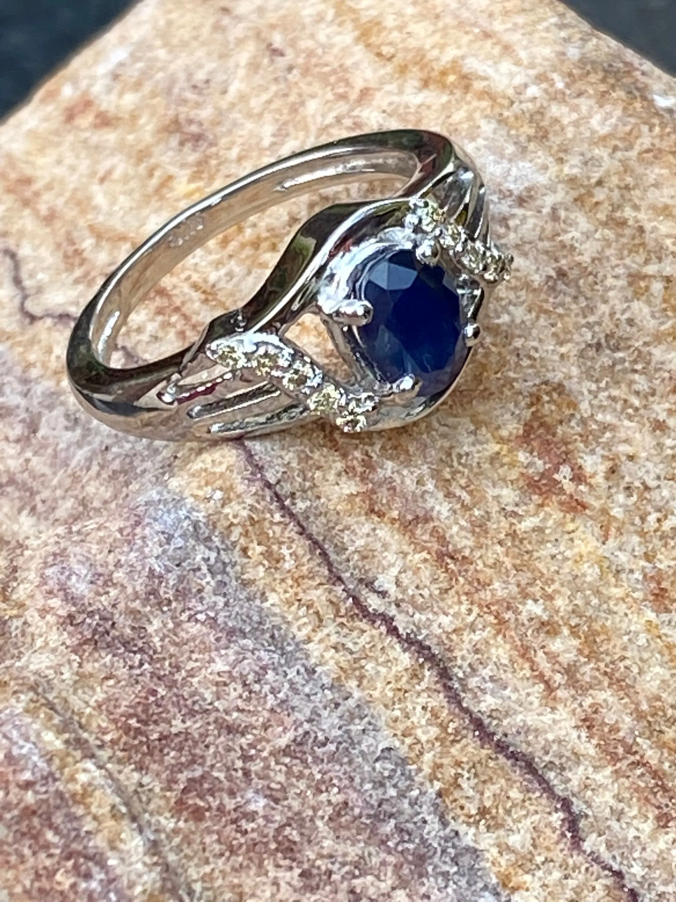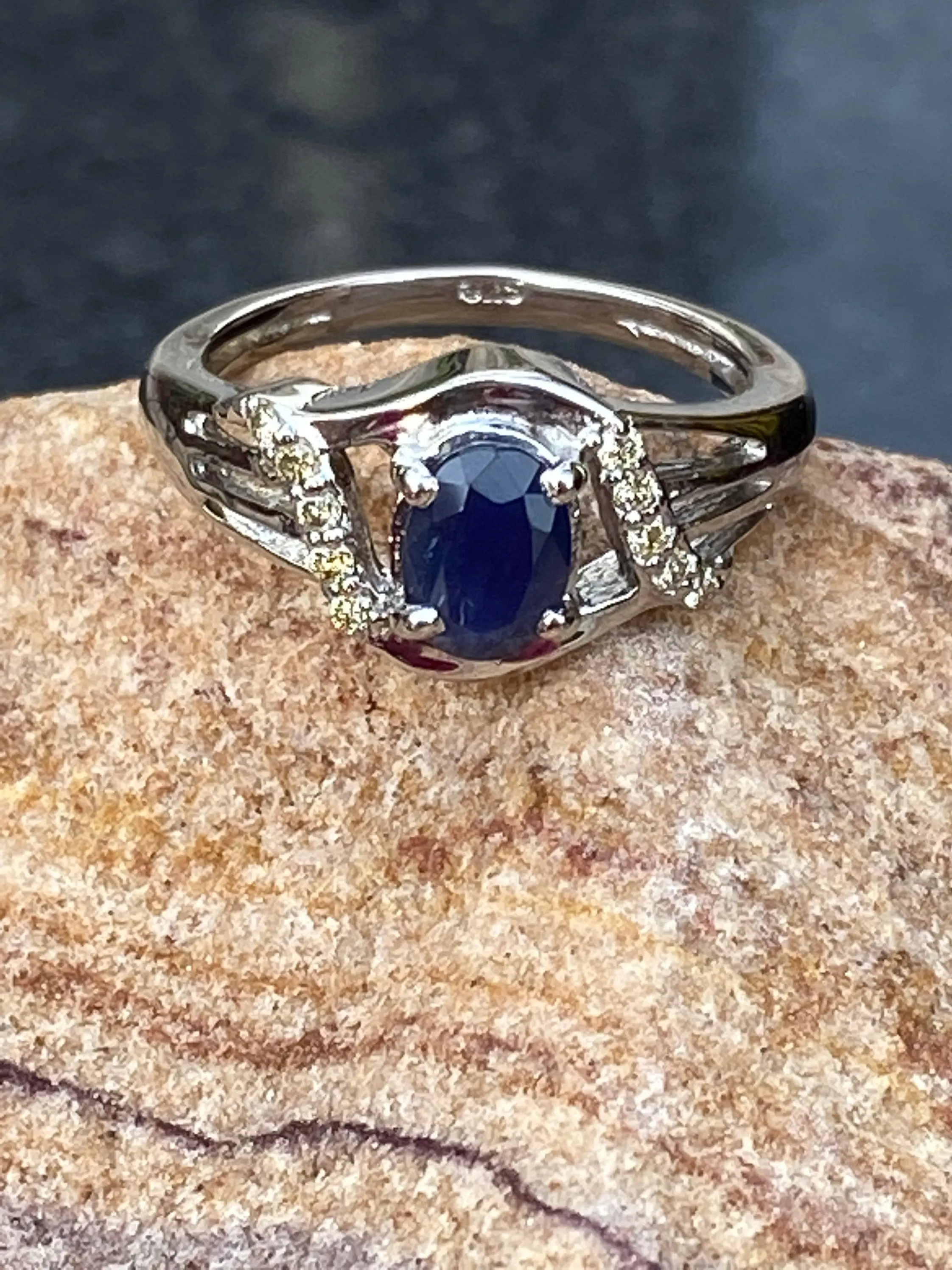 BLUE SAPPHIRE RING Studded with natural Diamonds,Sterling silver Ring, September Birthstone,Neelam,Fine jewelry