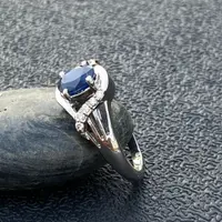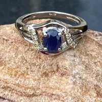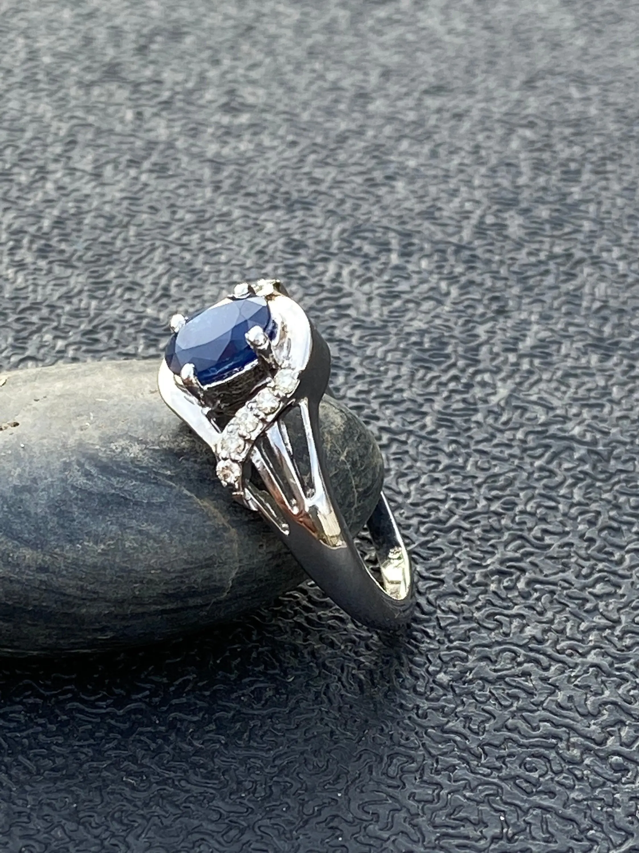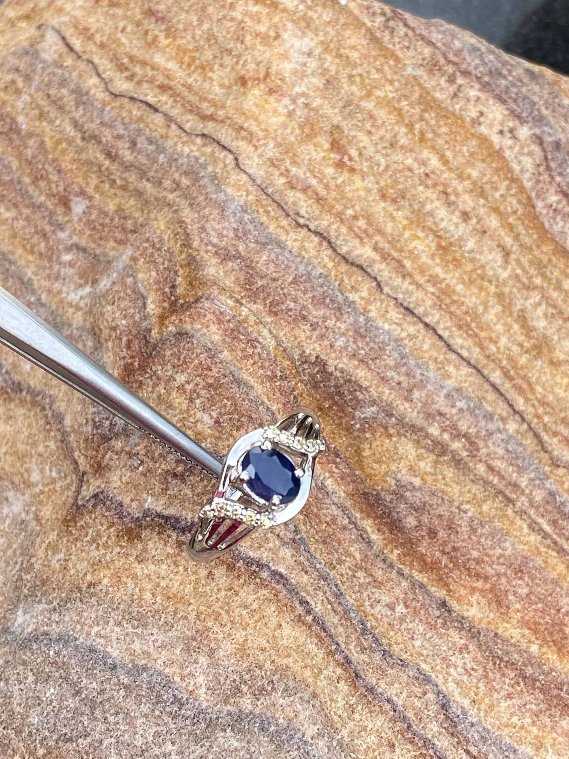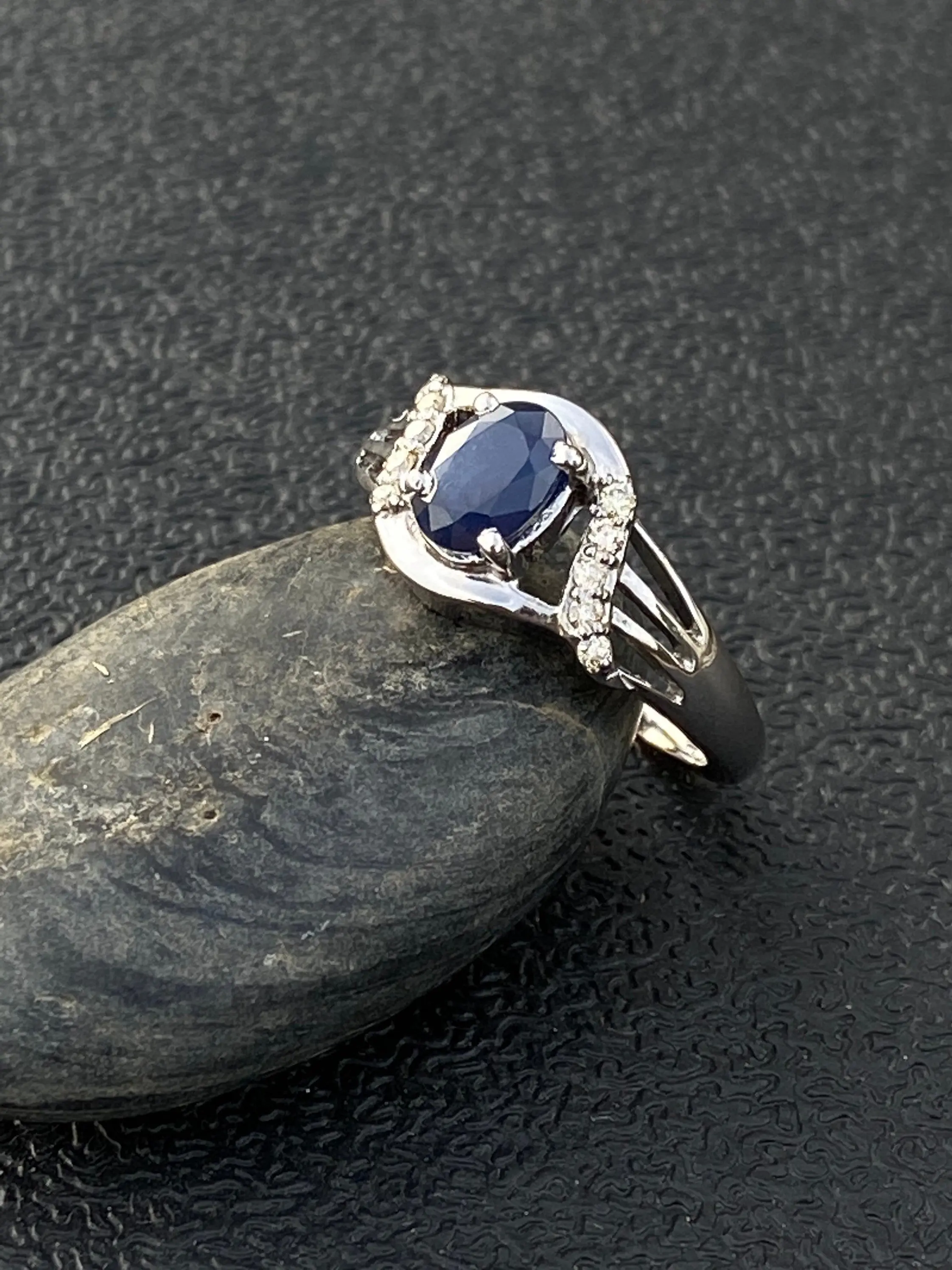 BLUE SAPPHIRE RING Studded with natural Diamonds,Sterling silver Ring, September Birthstone,Neelam,Fine jewelry