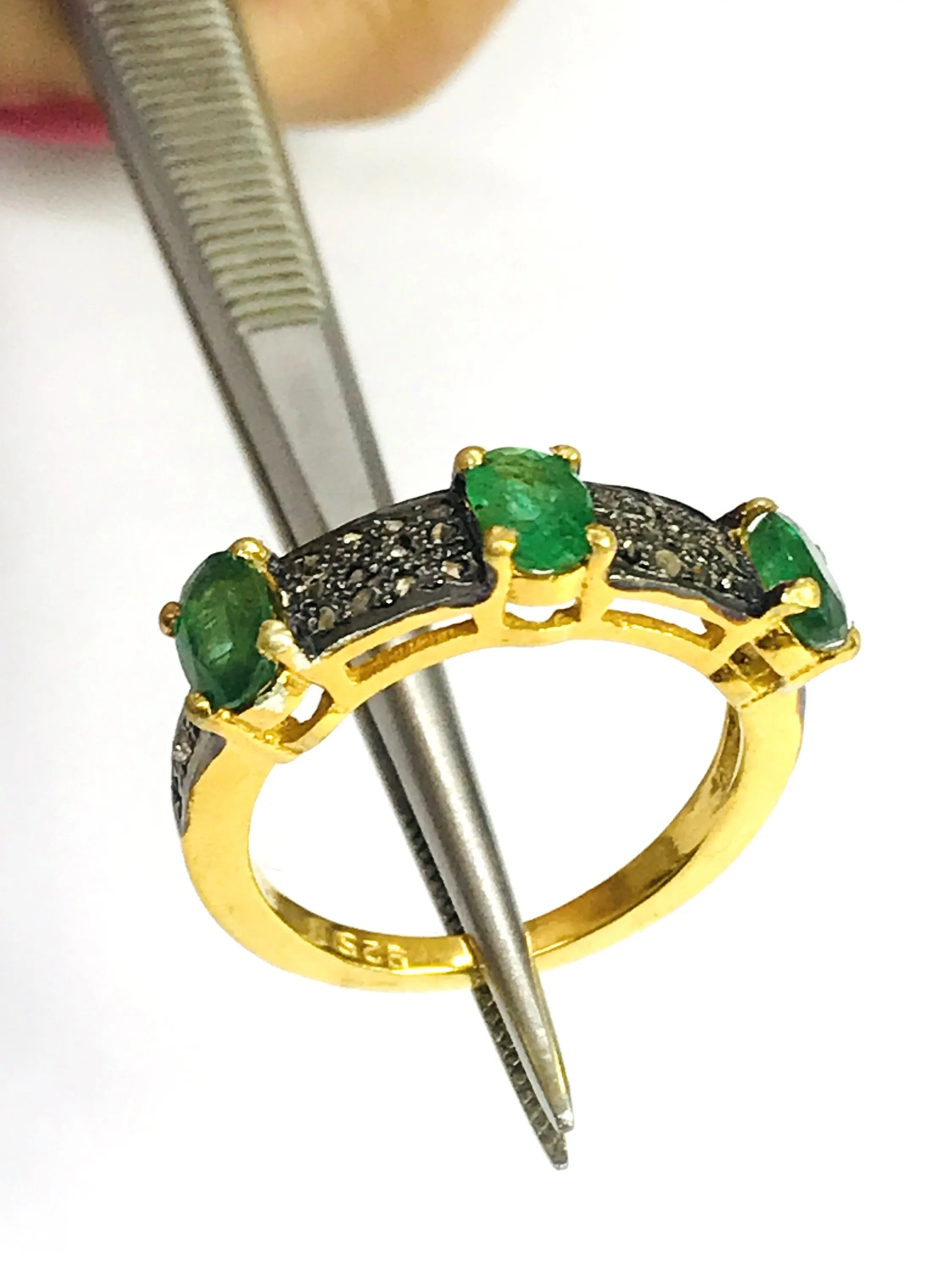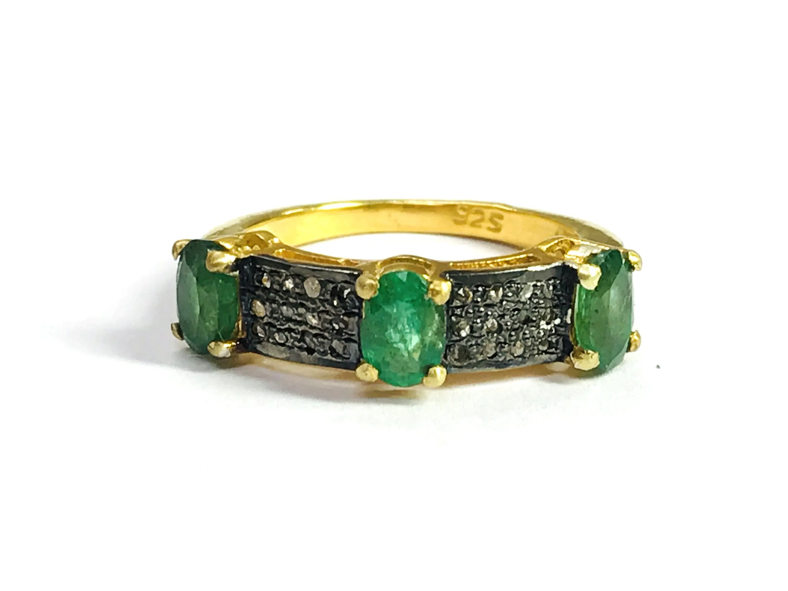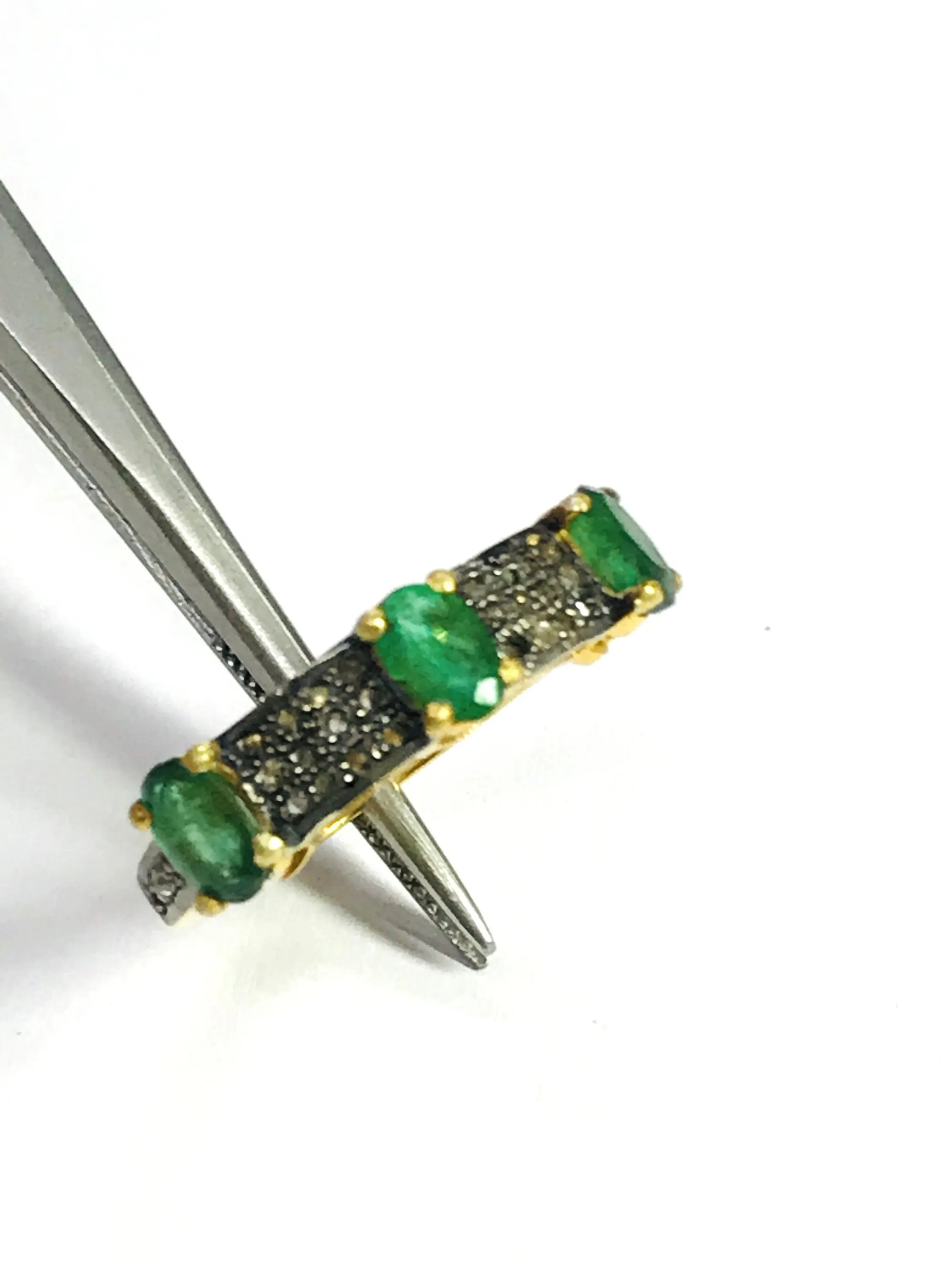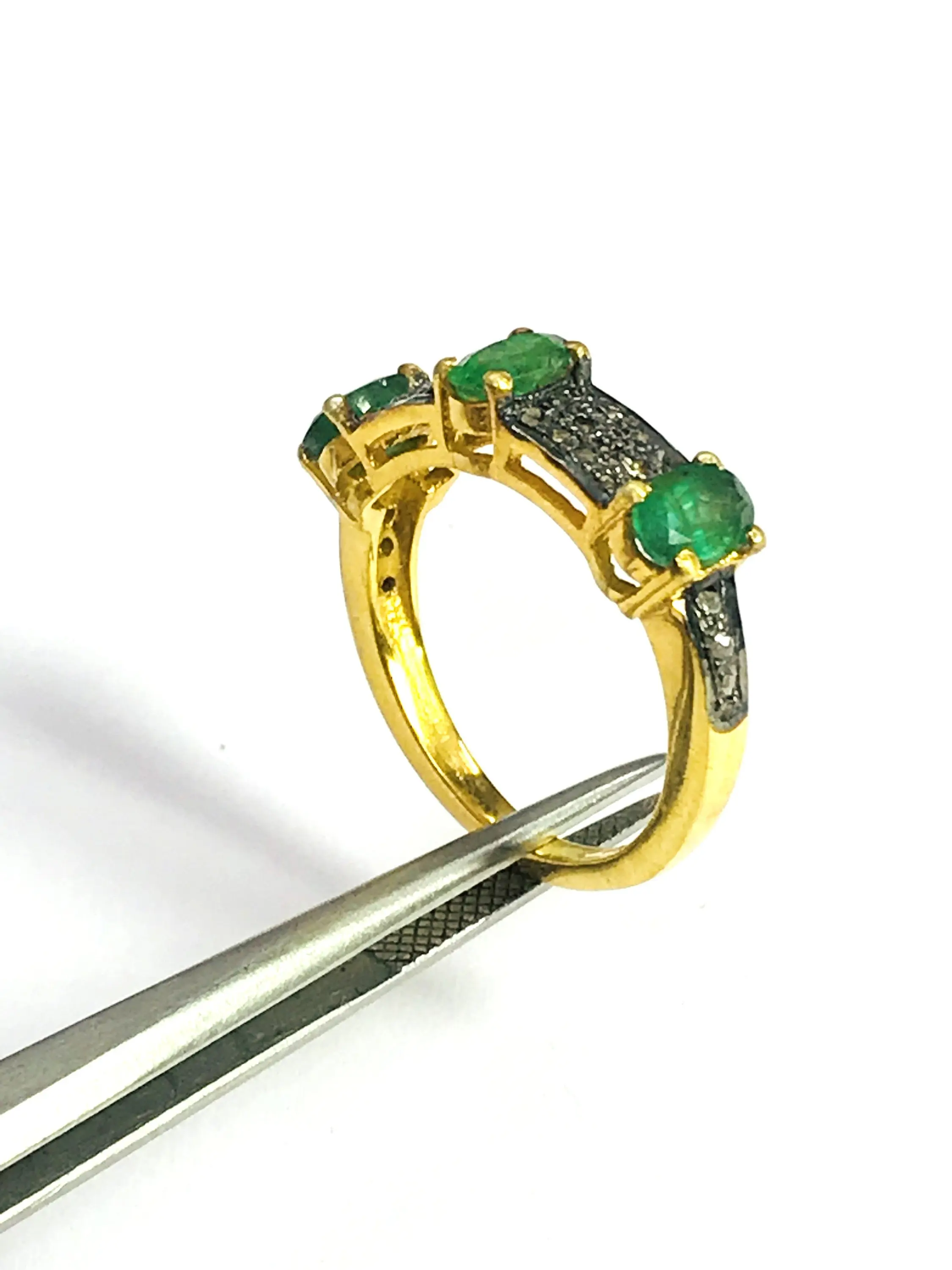 EMERALD Victorian RING,Rose Cut Diamonds ,May birthstone ,Emerald Engagement ring,Antique Emerald Ring