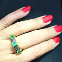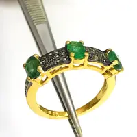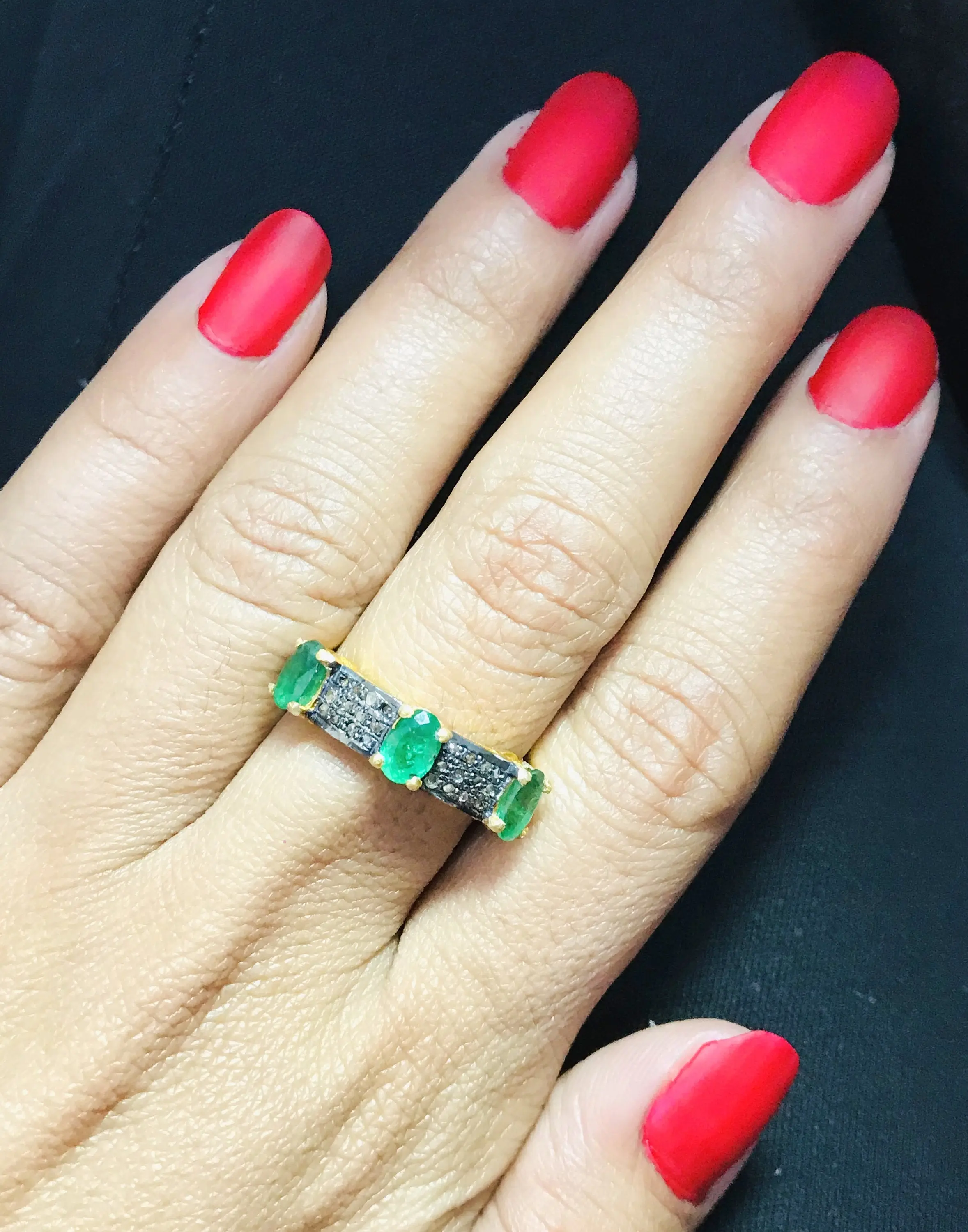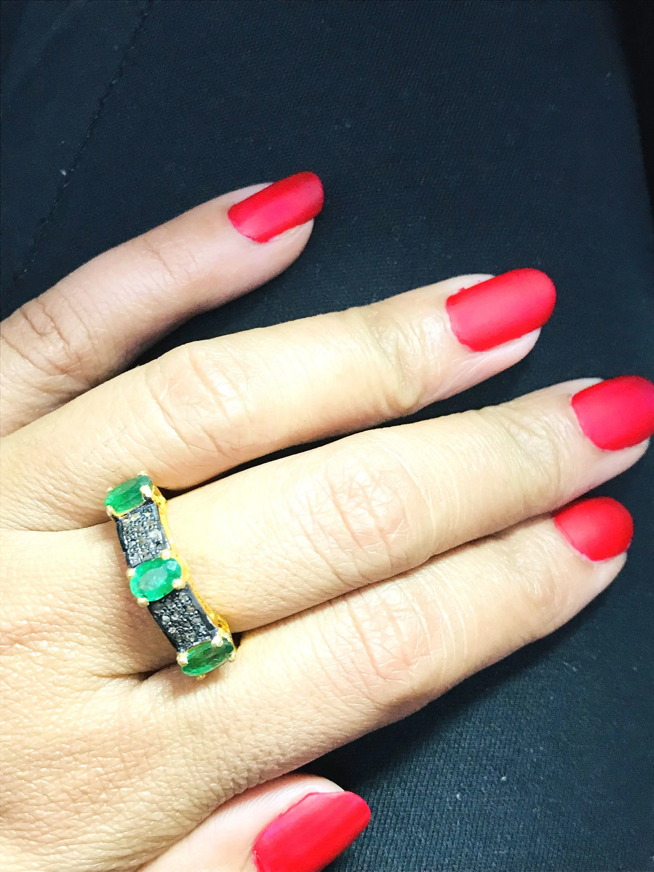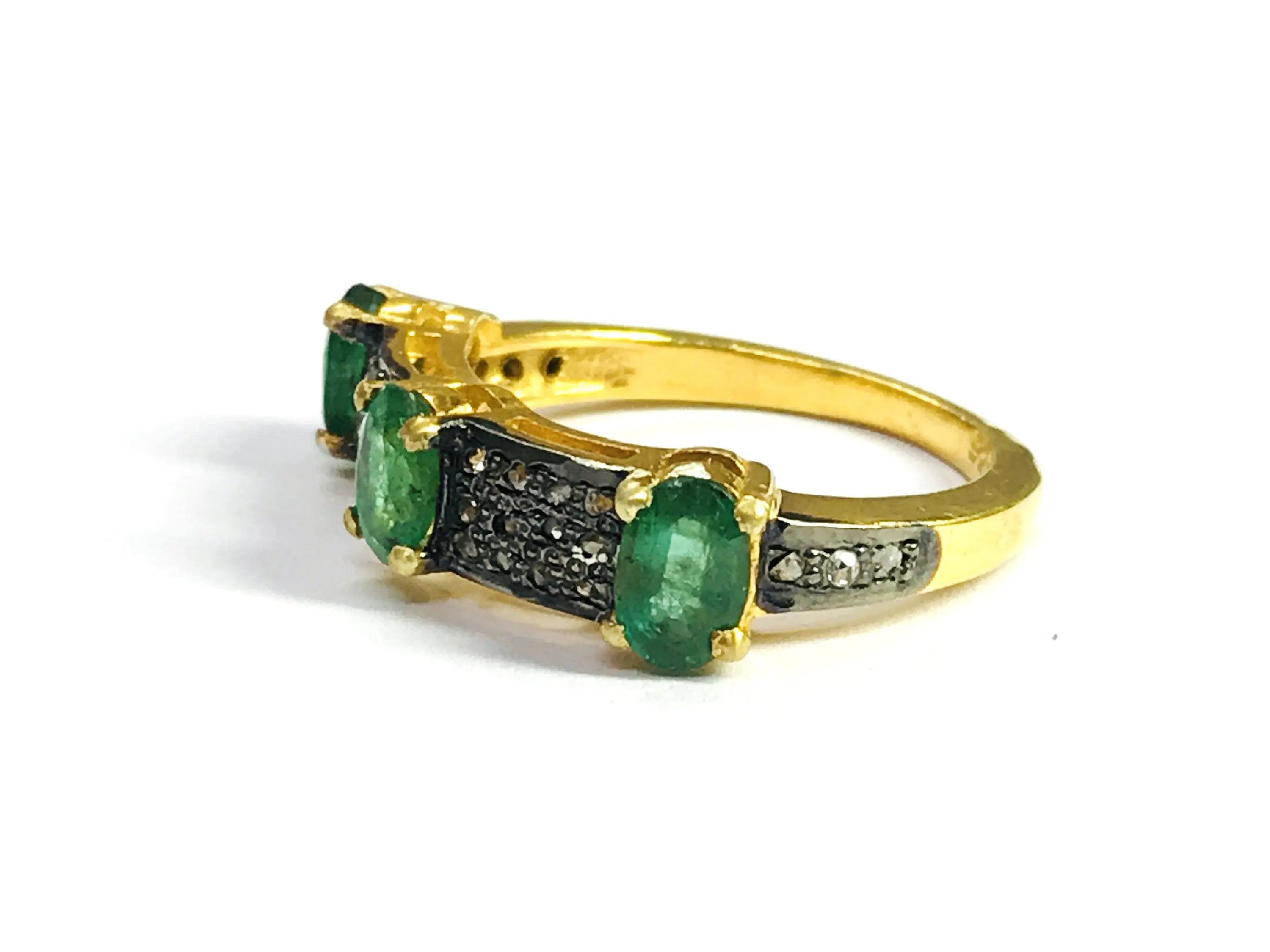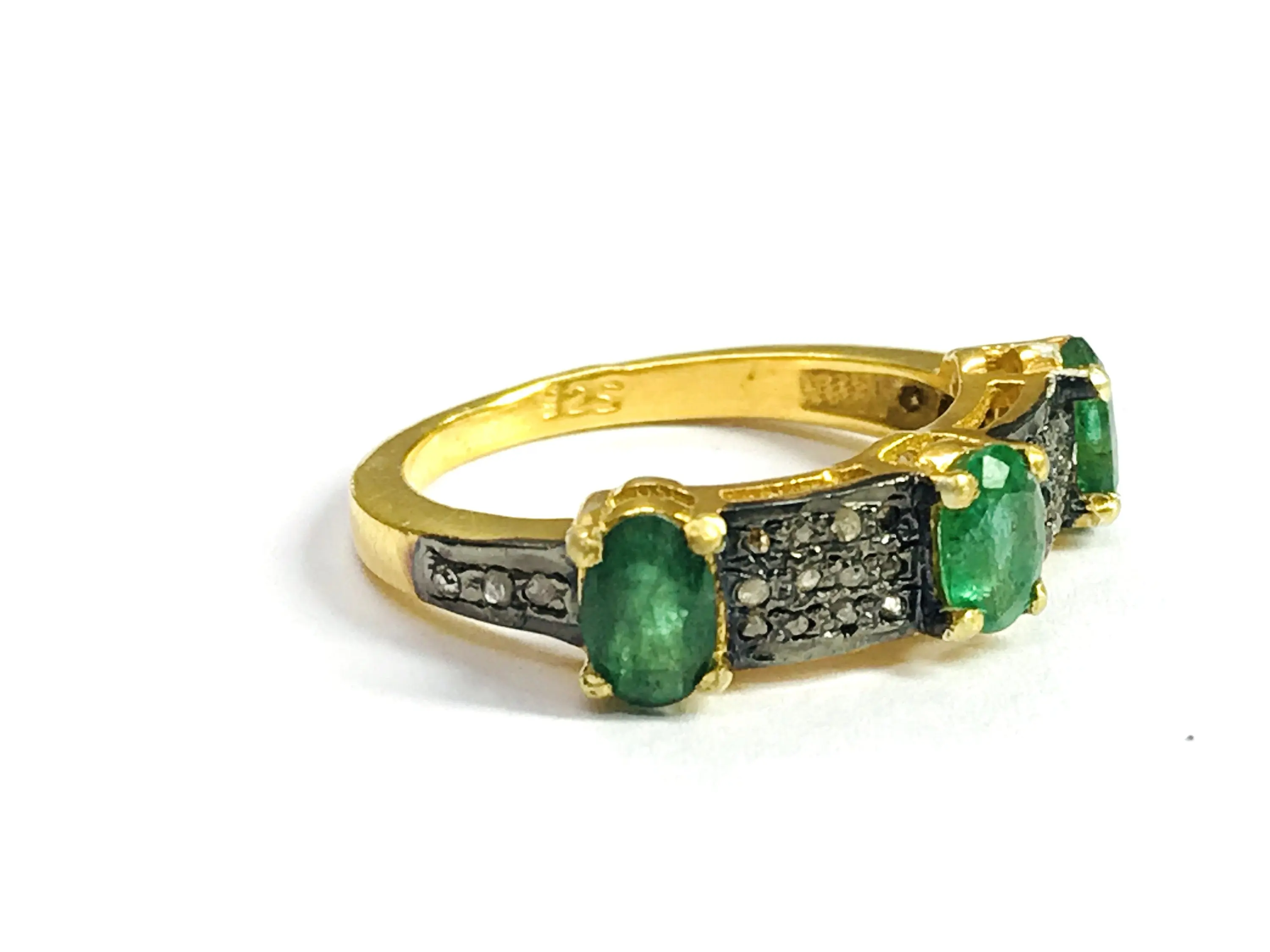 EMERALD Victorian RING,Rose Cut Diamonds ,May birthstone ,Emerald Engagement ring,Antique Emerald Ring