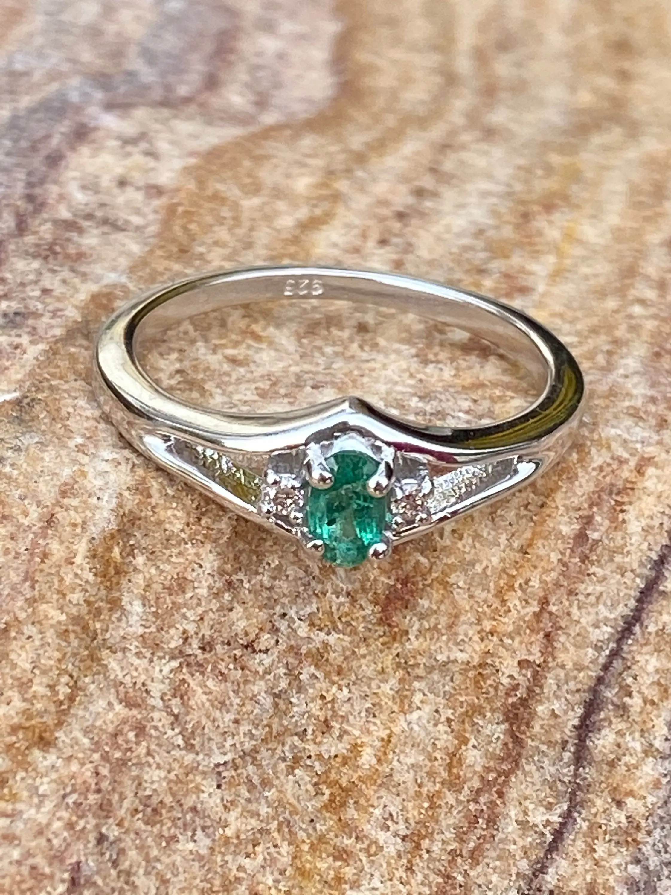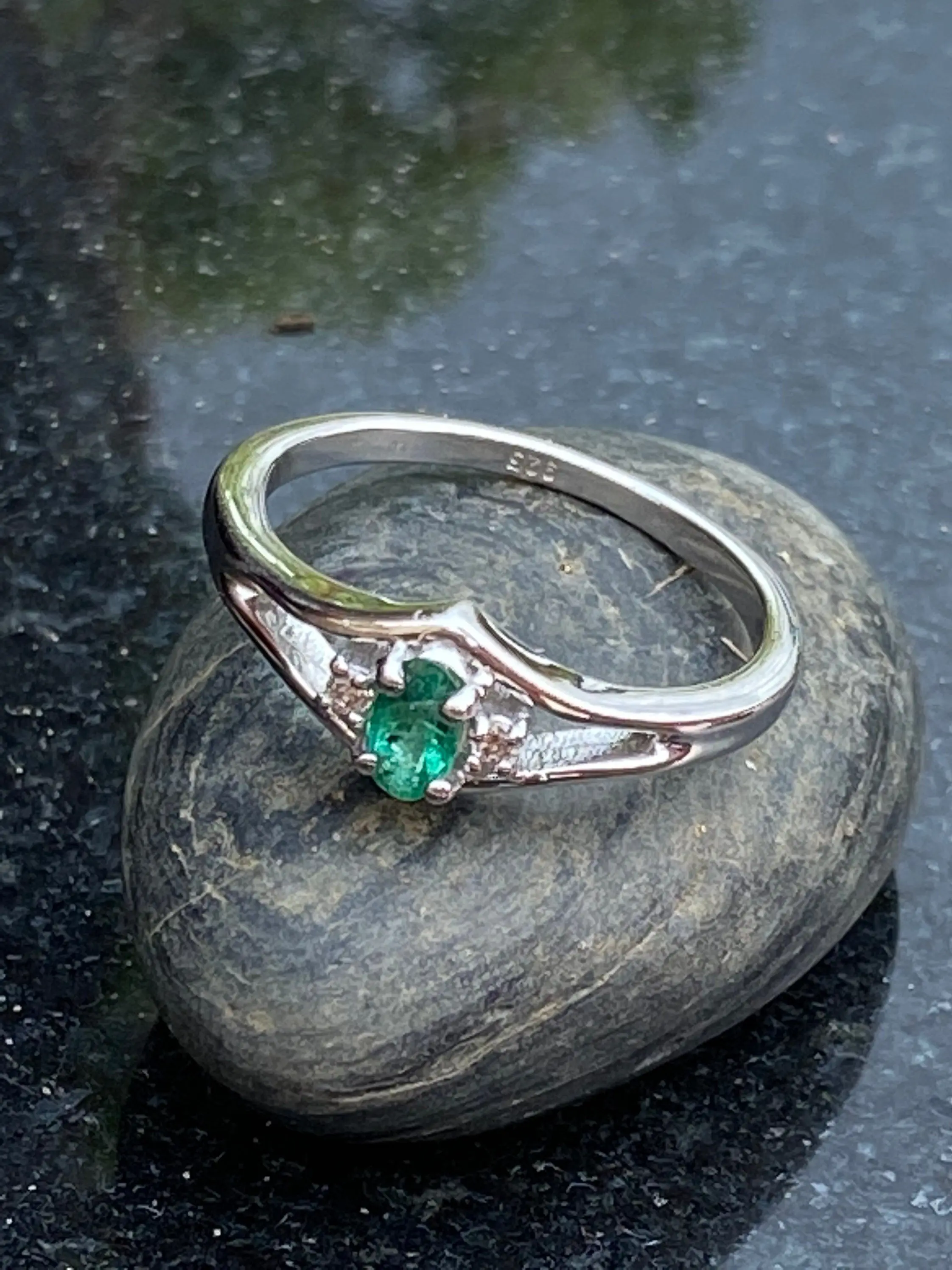 Super thin and feminine ring with a lovely Oval cut natural Emerald diamond ring .........