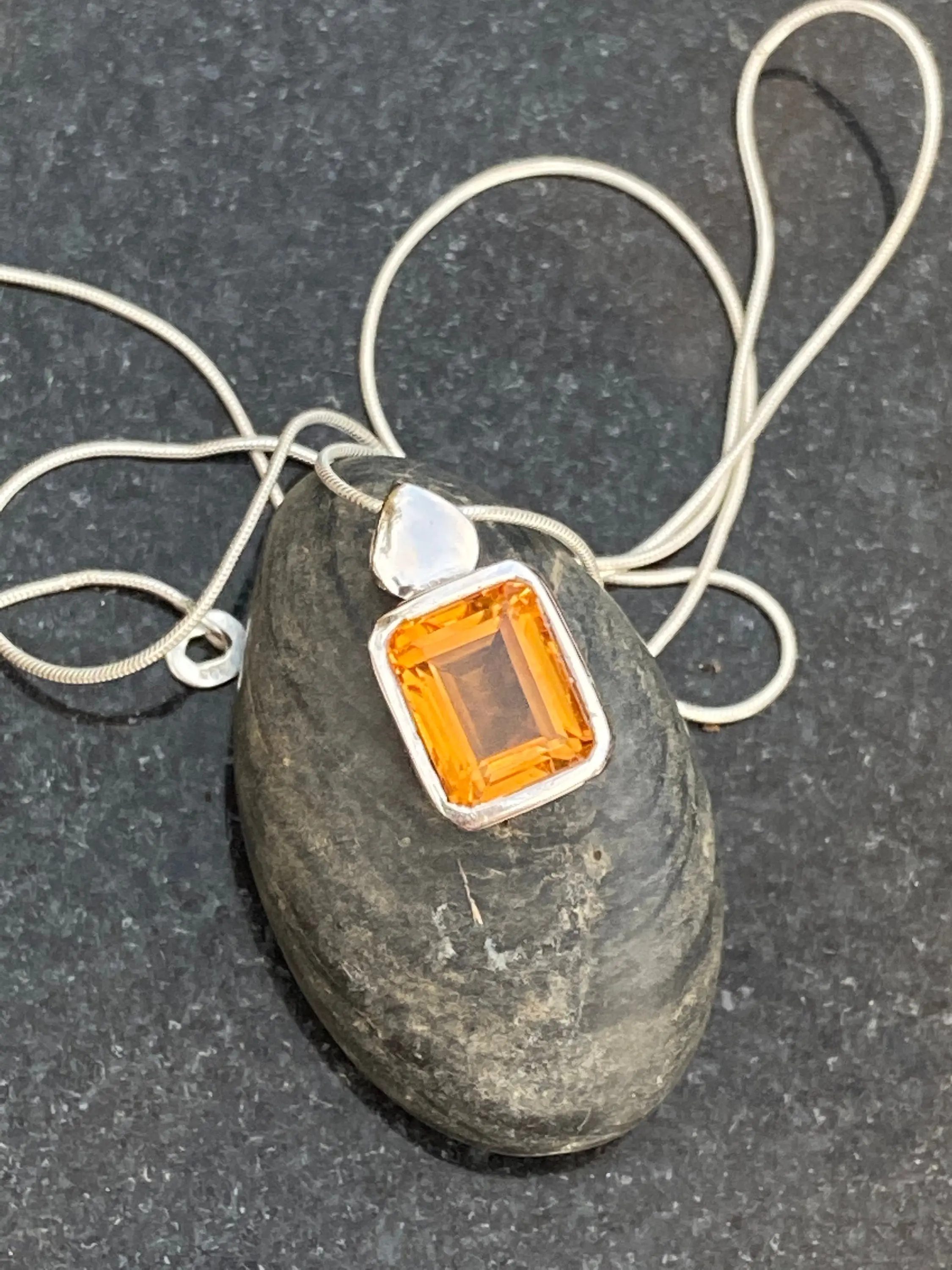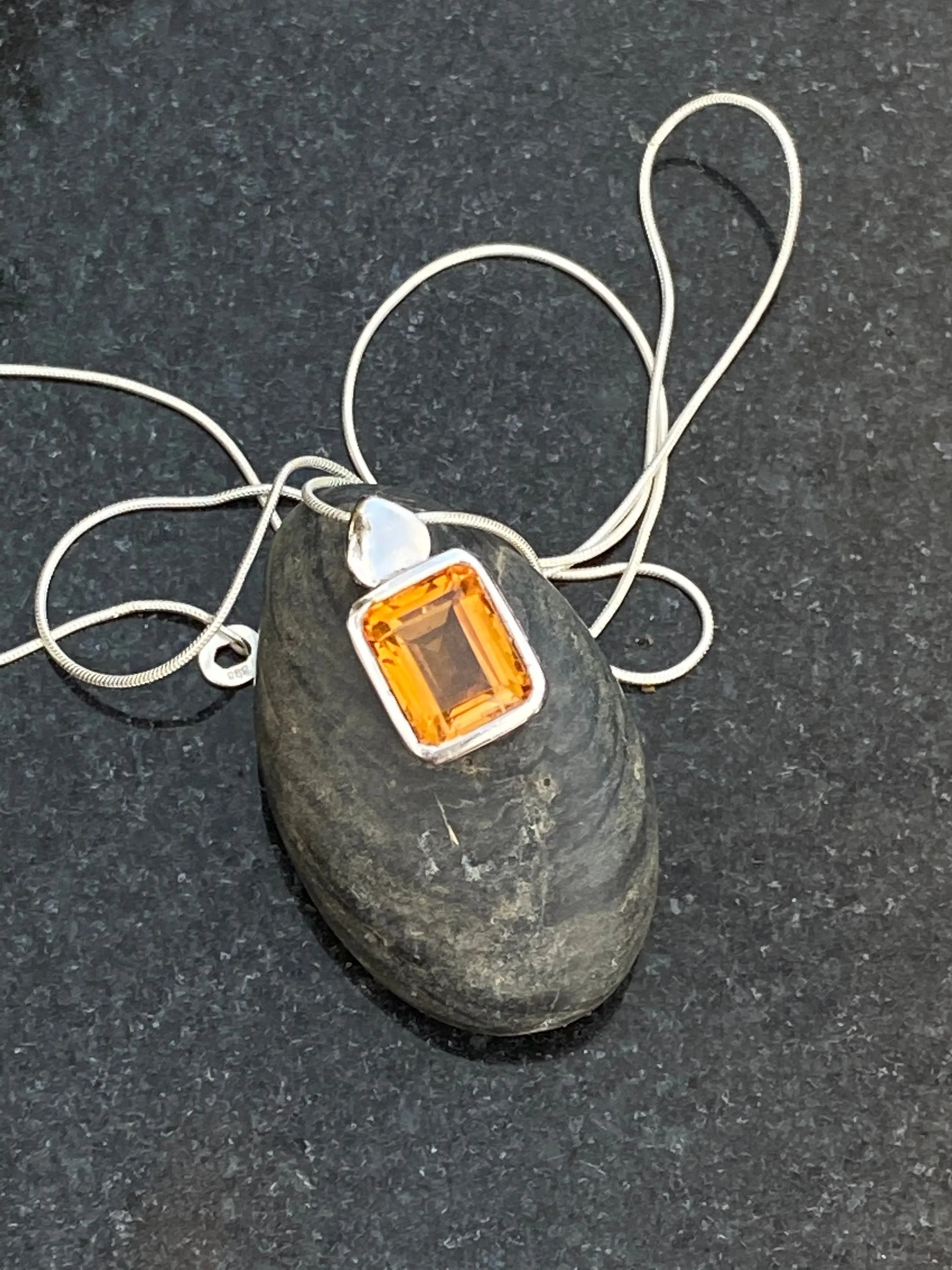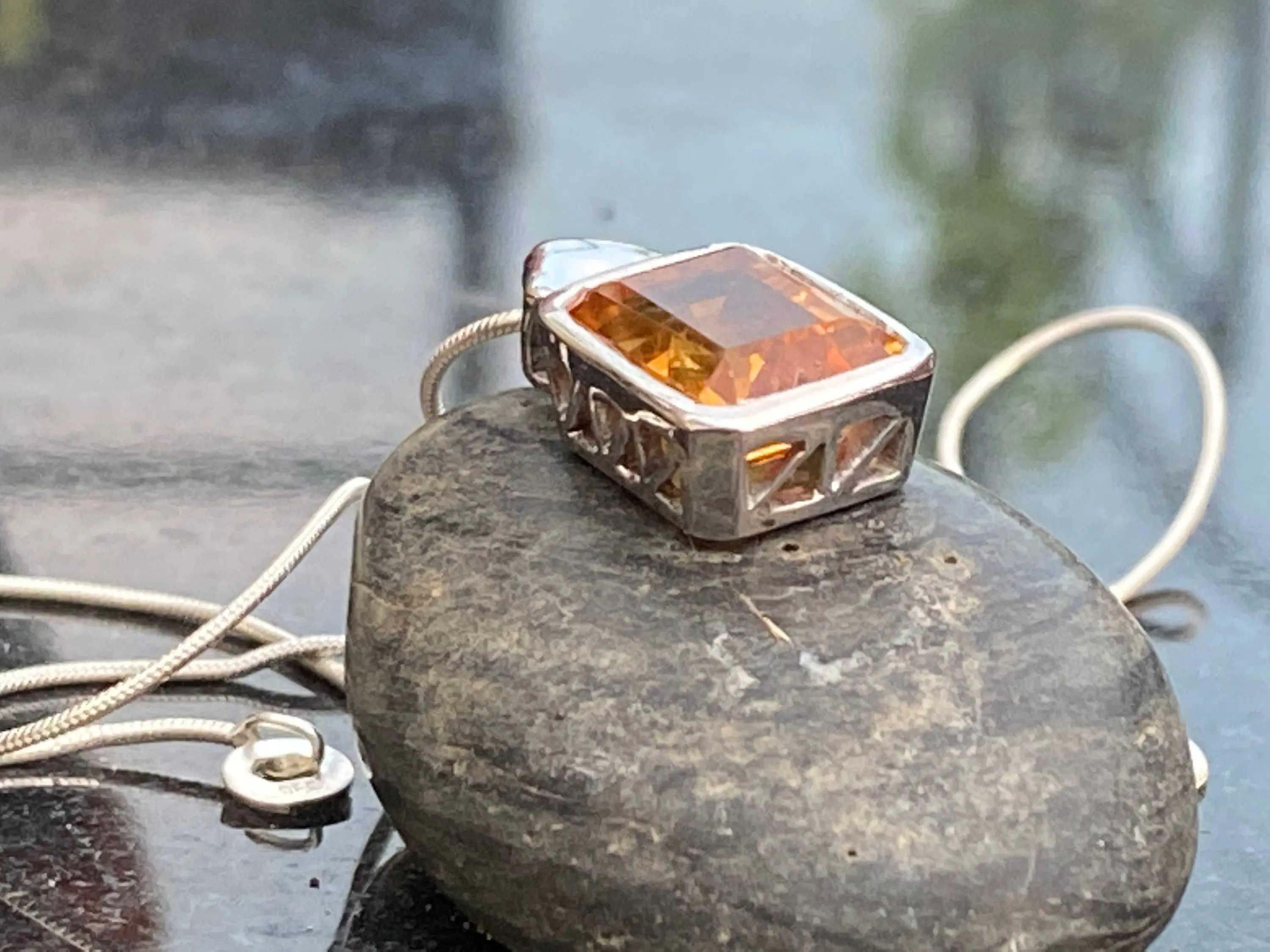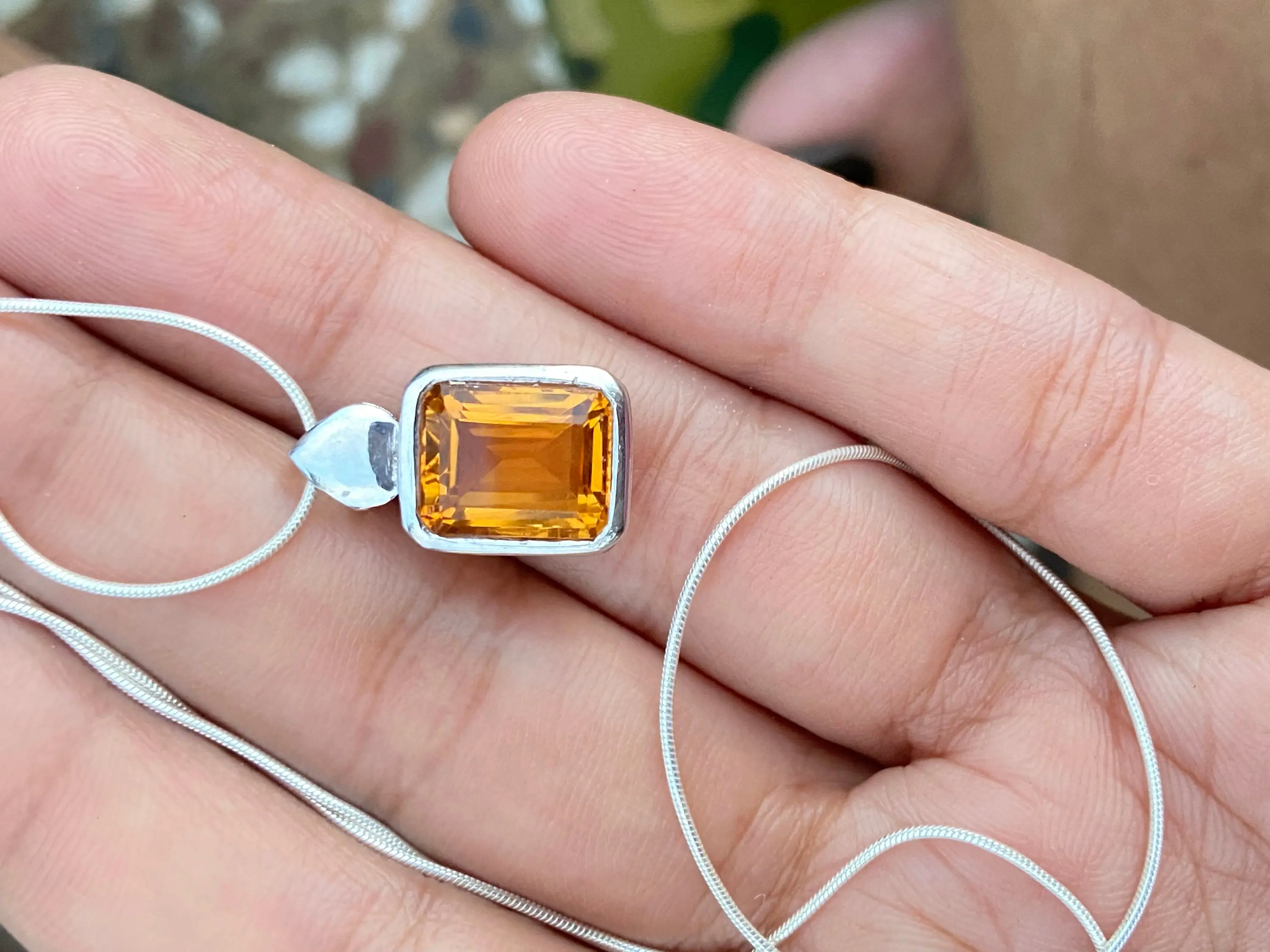 Natural Madeira Citrine Pendant -Deep Yellow Pendant-November Pendant-Large Citrine Pendant-Gift for her