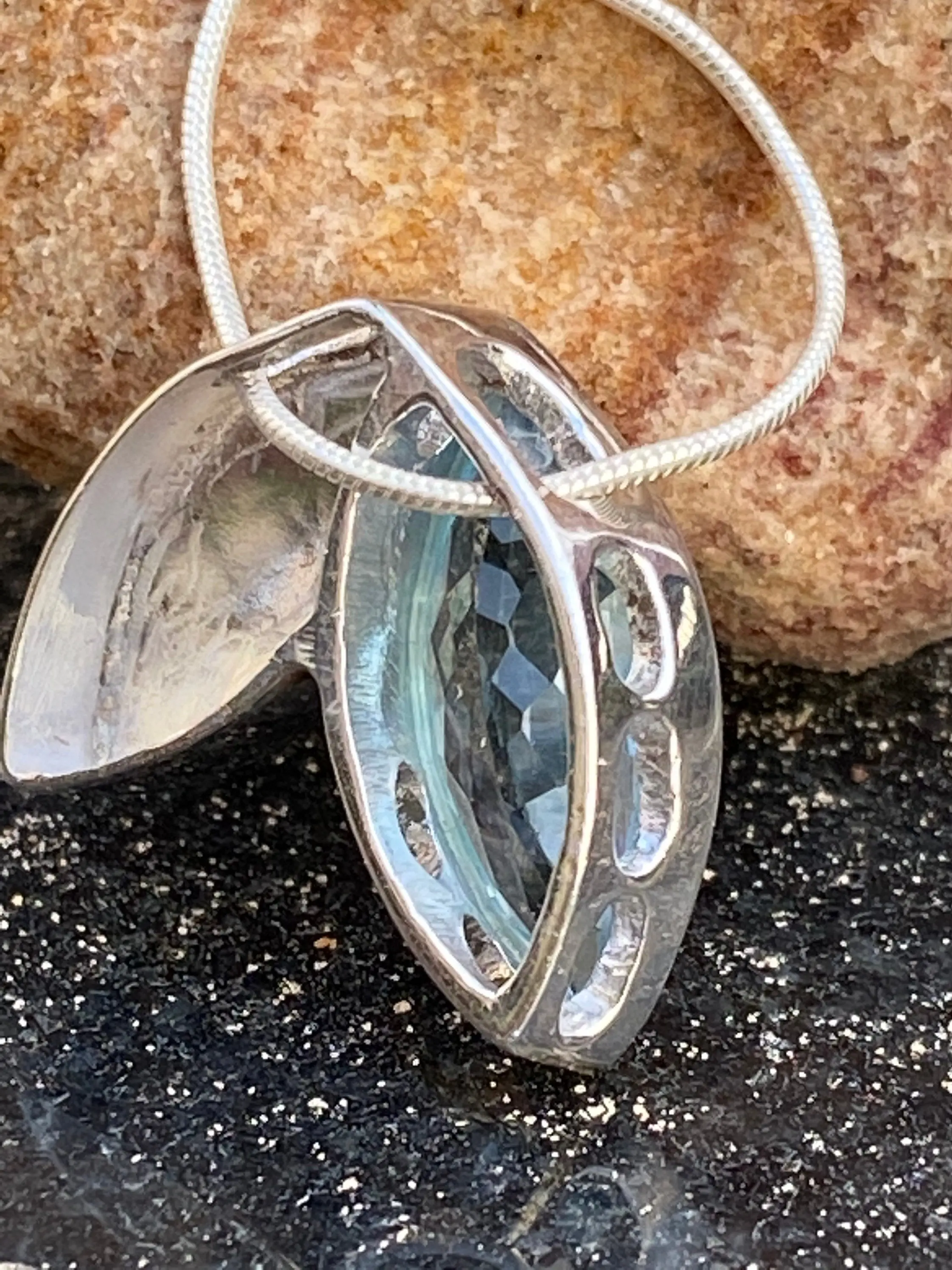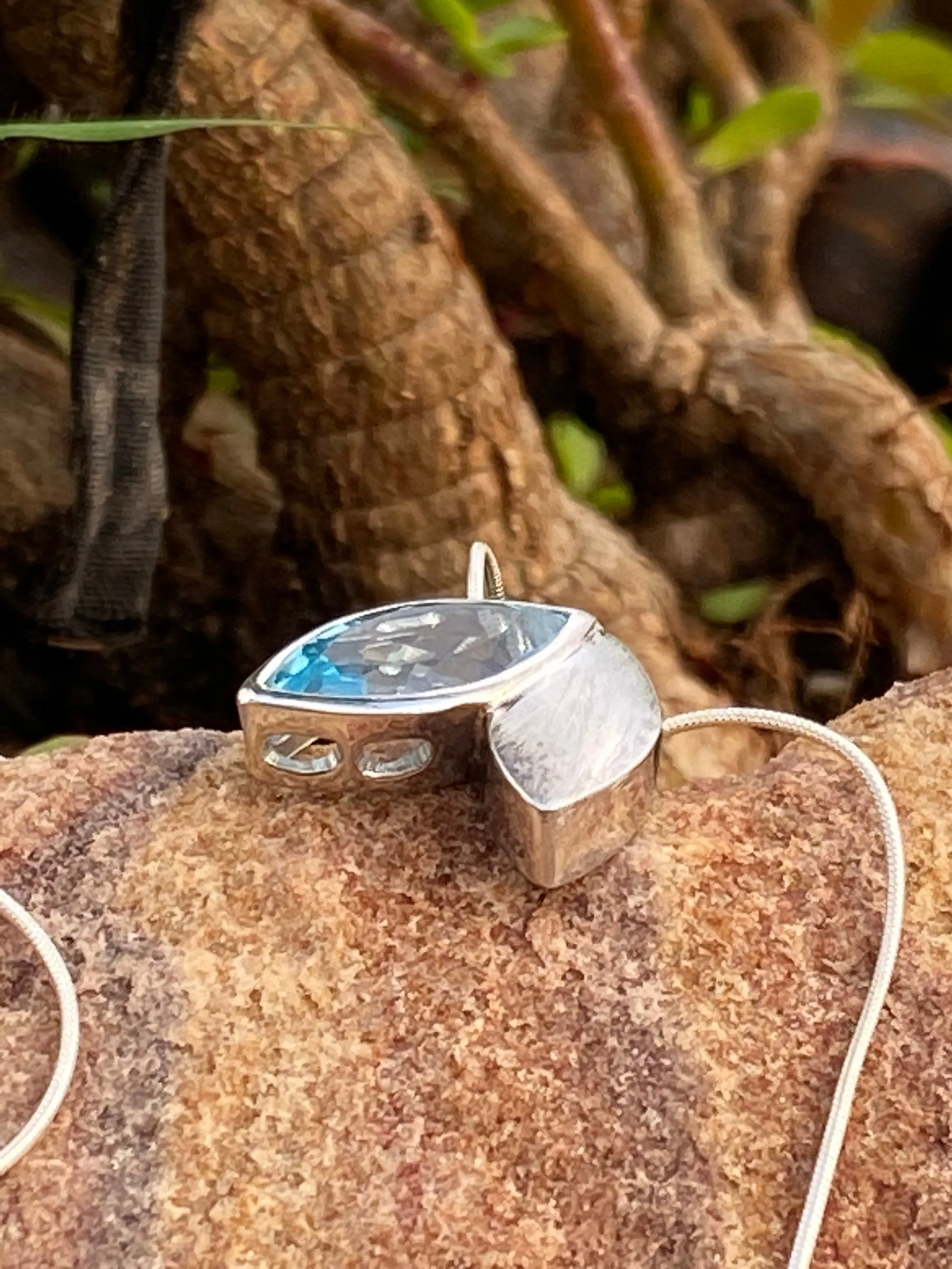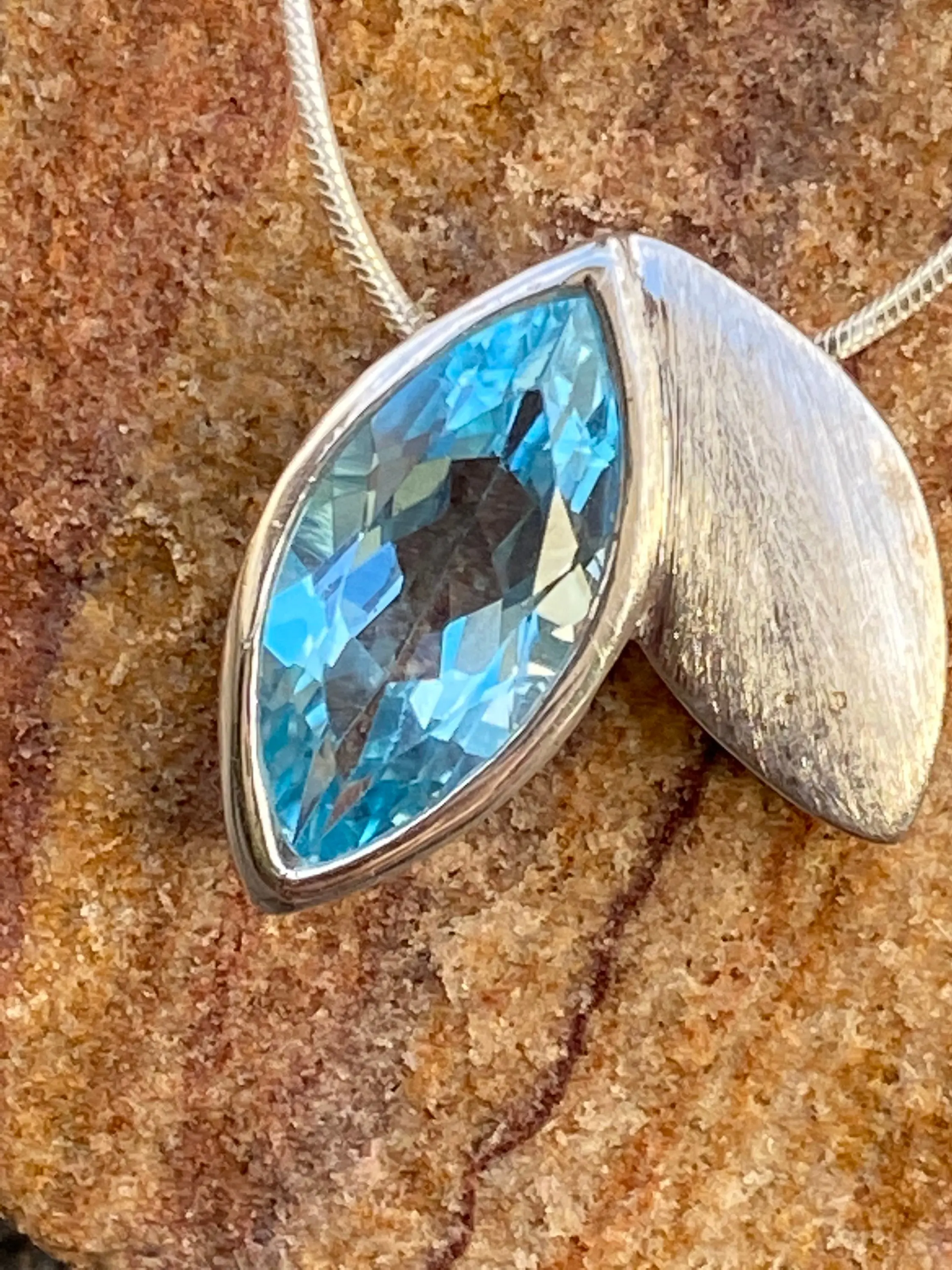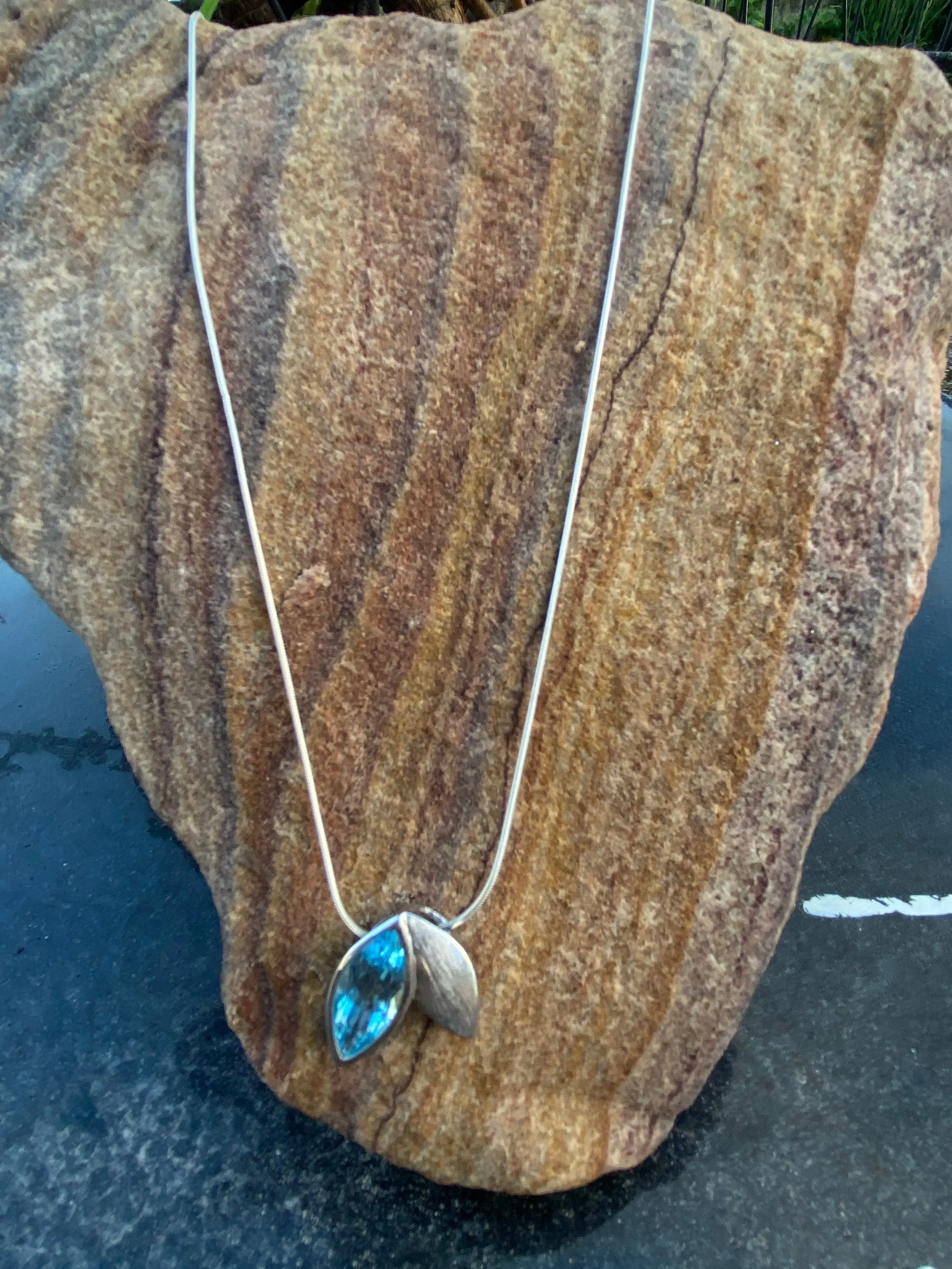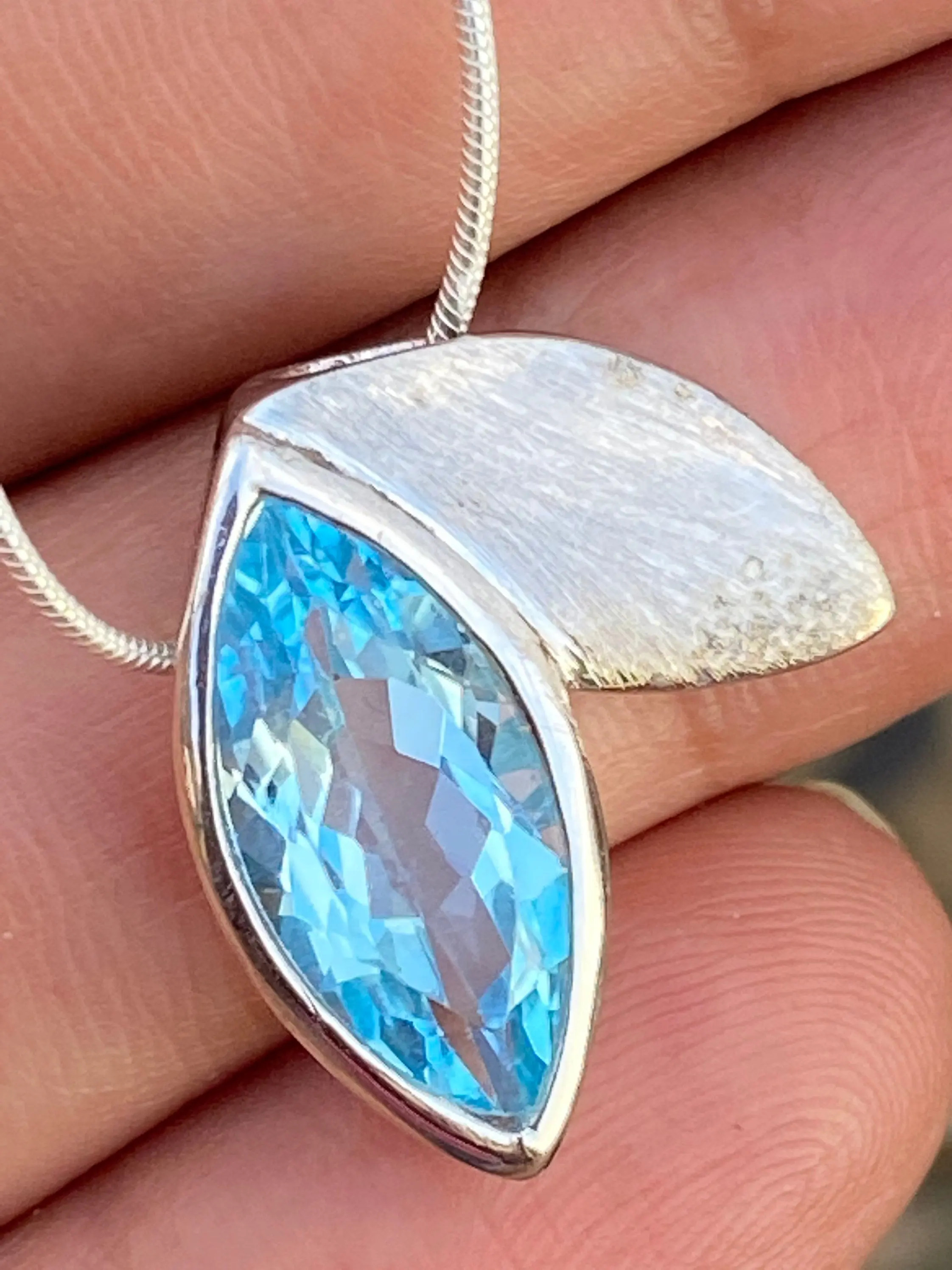 BLUE TOPAZ pendant Necklace ,Sterling Silver,December Birthstone,Lovely Gift for her .