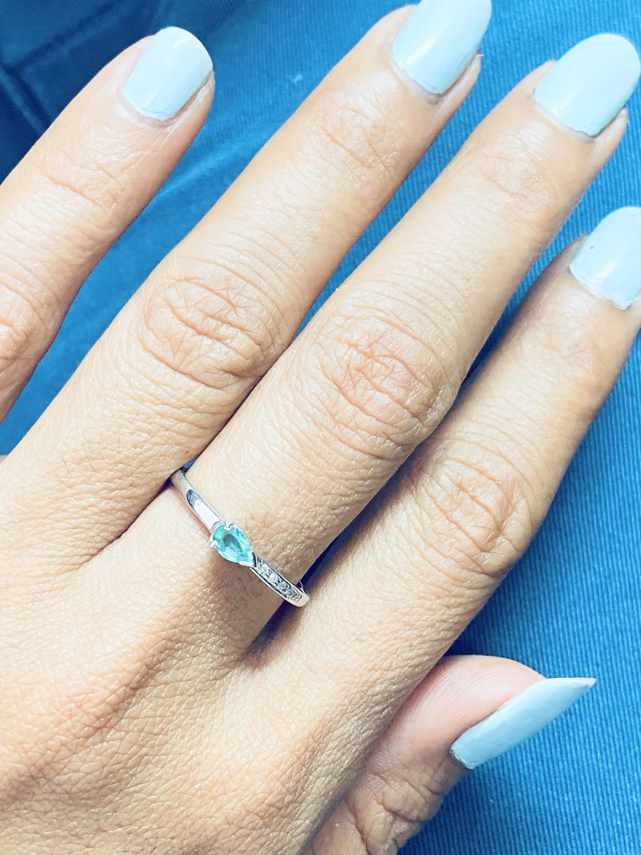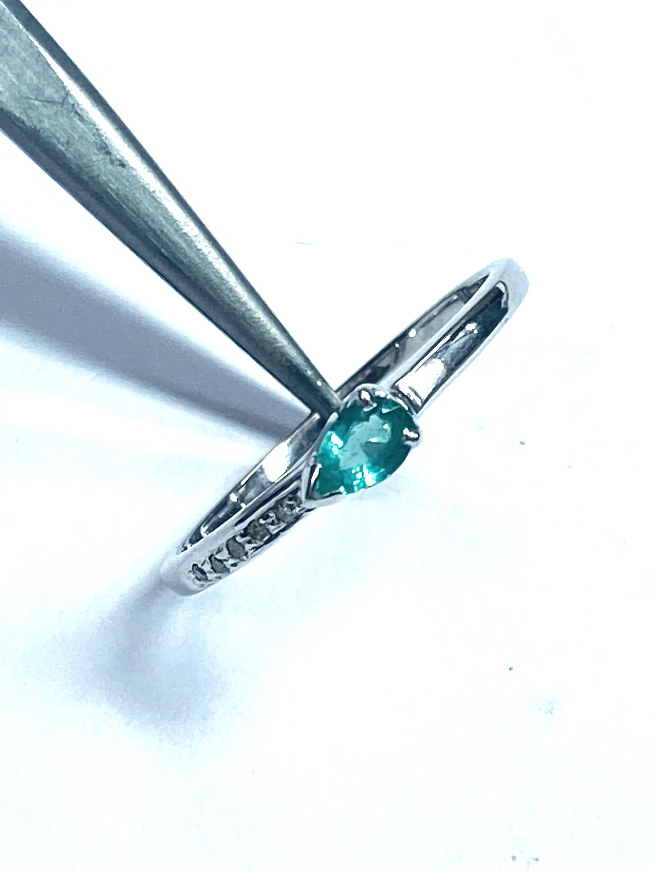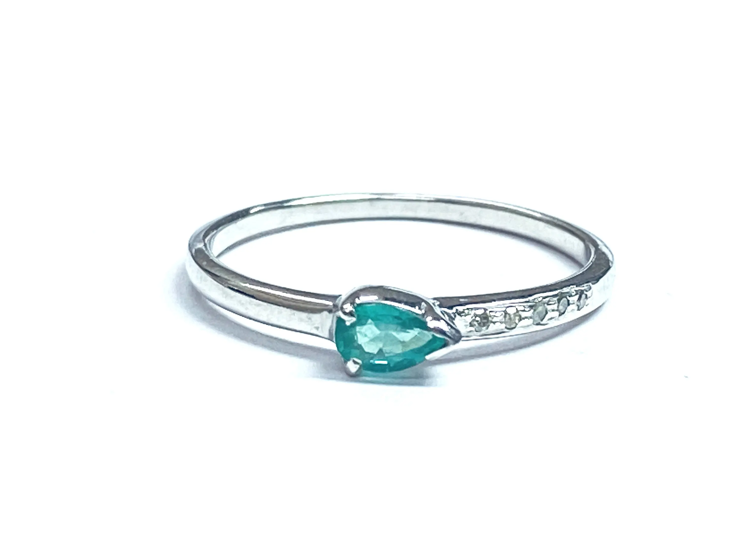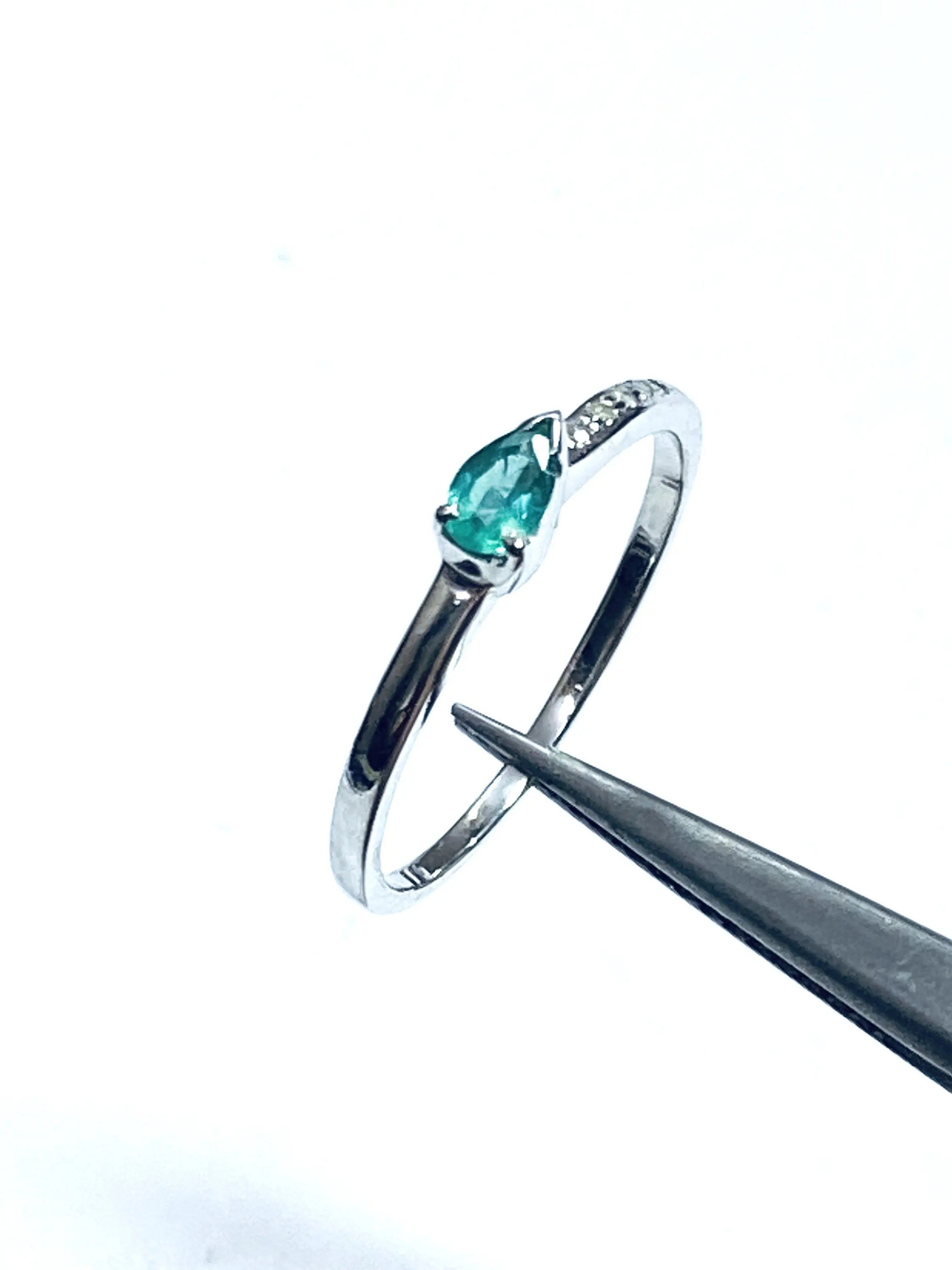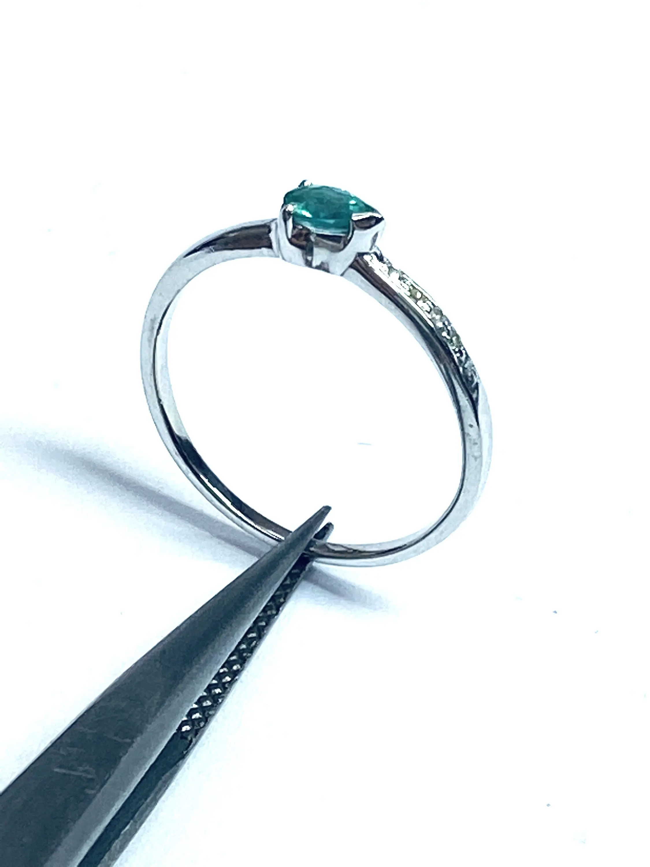 Super thin and feminine ring with a lovely ova faceted natural emerald diamond ring .........