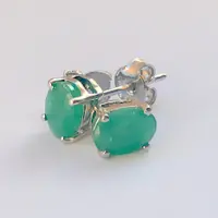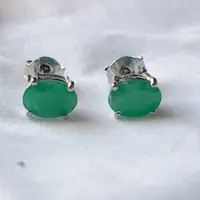 STUD EARRINGS WITH NATURAL EMERALDS,