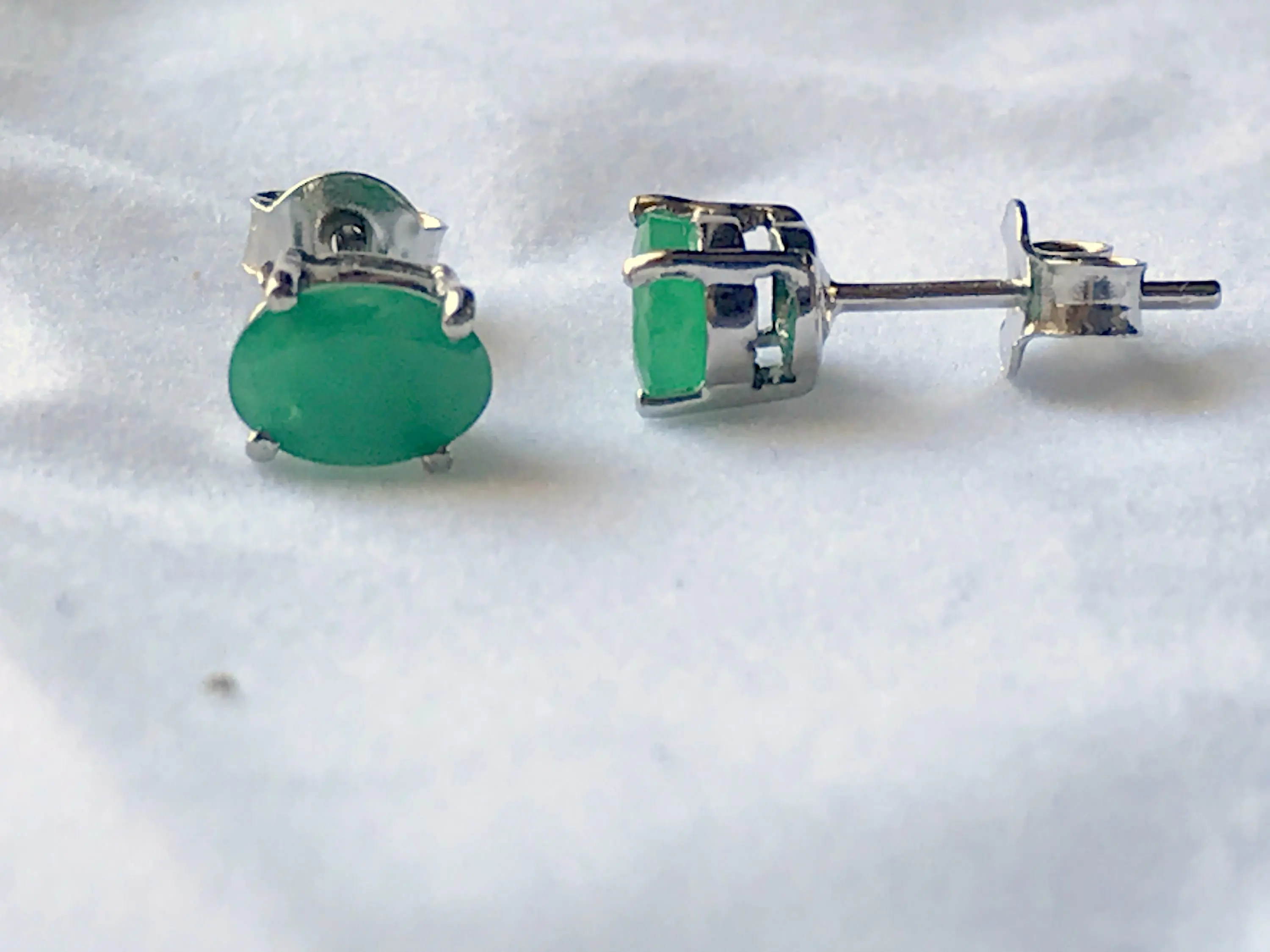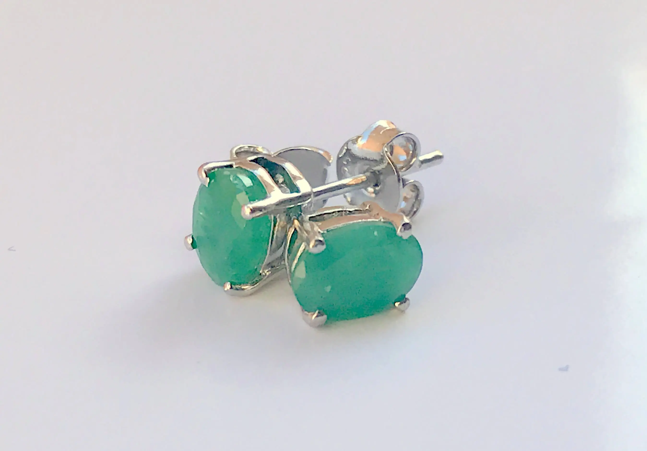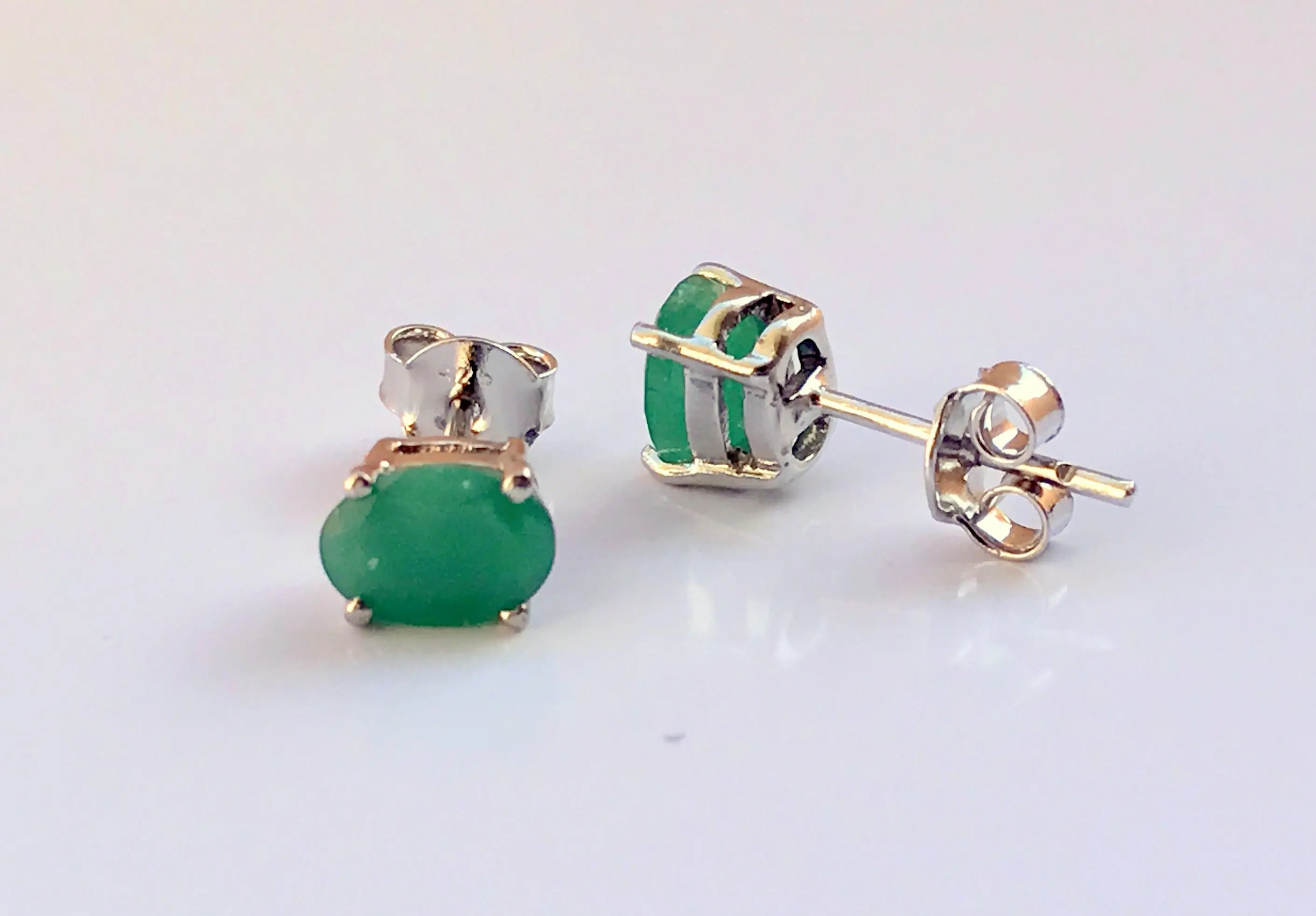 Emerald earrings, Green Emeralds, Natural Gemstone Stud Earrings, prong Set gemstone, May birthstone gift!