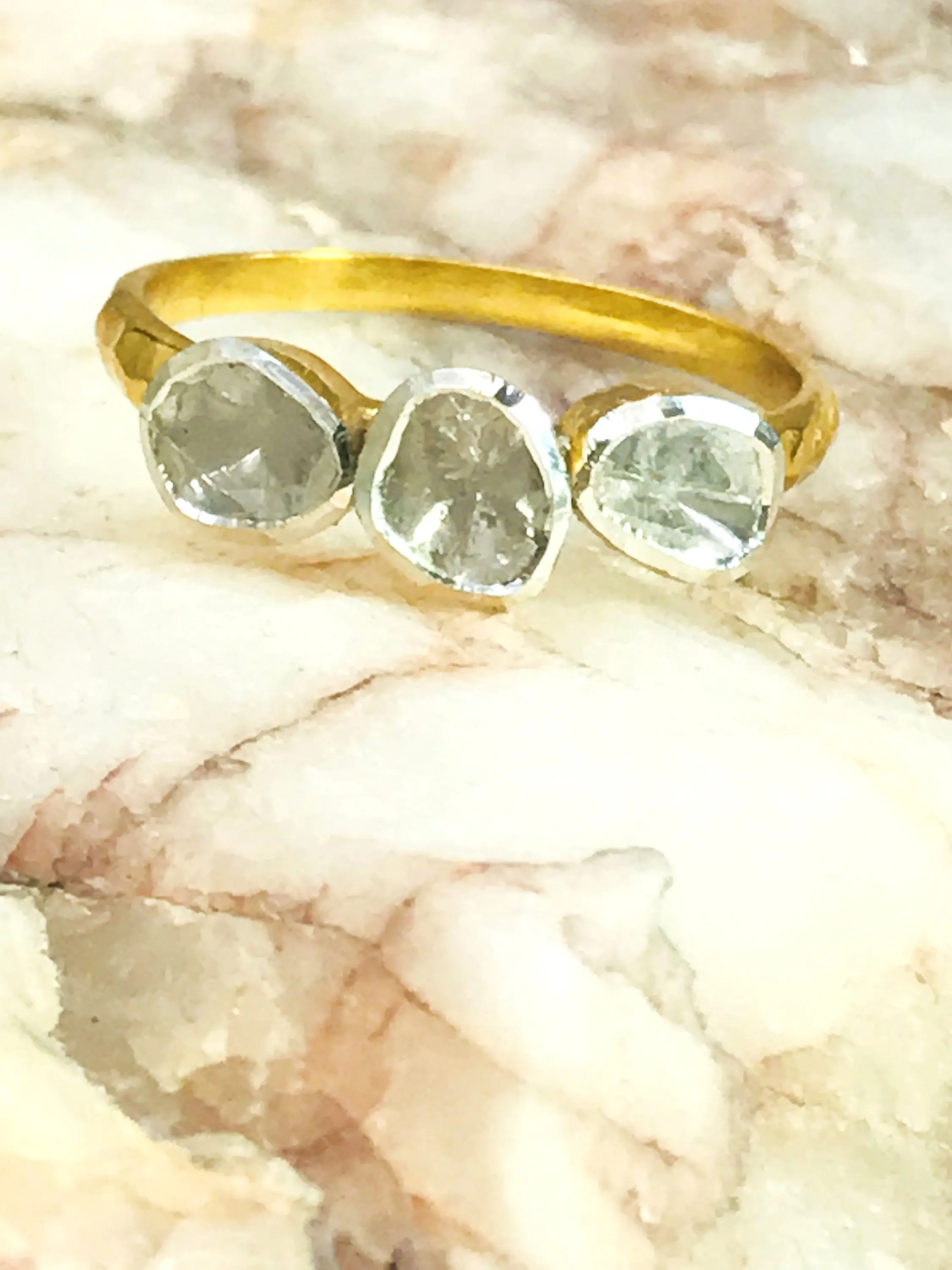 POLKI ROSE CUT DIAMONDS RING ,925 Sterling silver , Engagement Ring ,Vintage Wedding Band ,Promise Gift For Her , April Birthstone.....Vermeil - 1 Micron Gold Plated ..