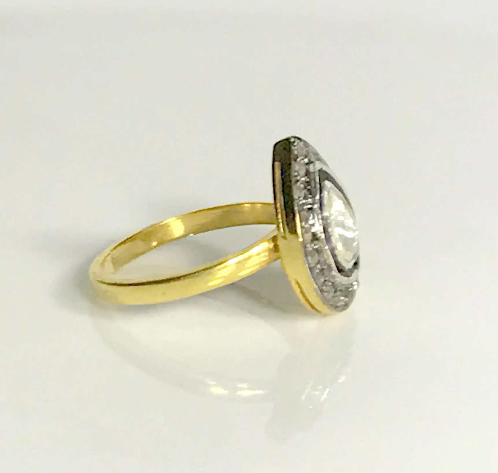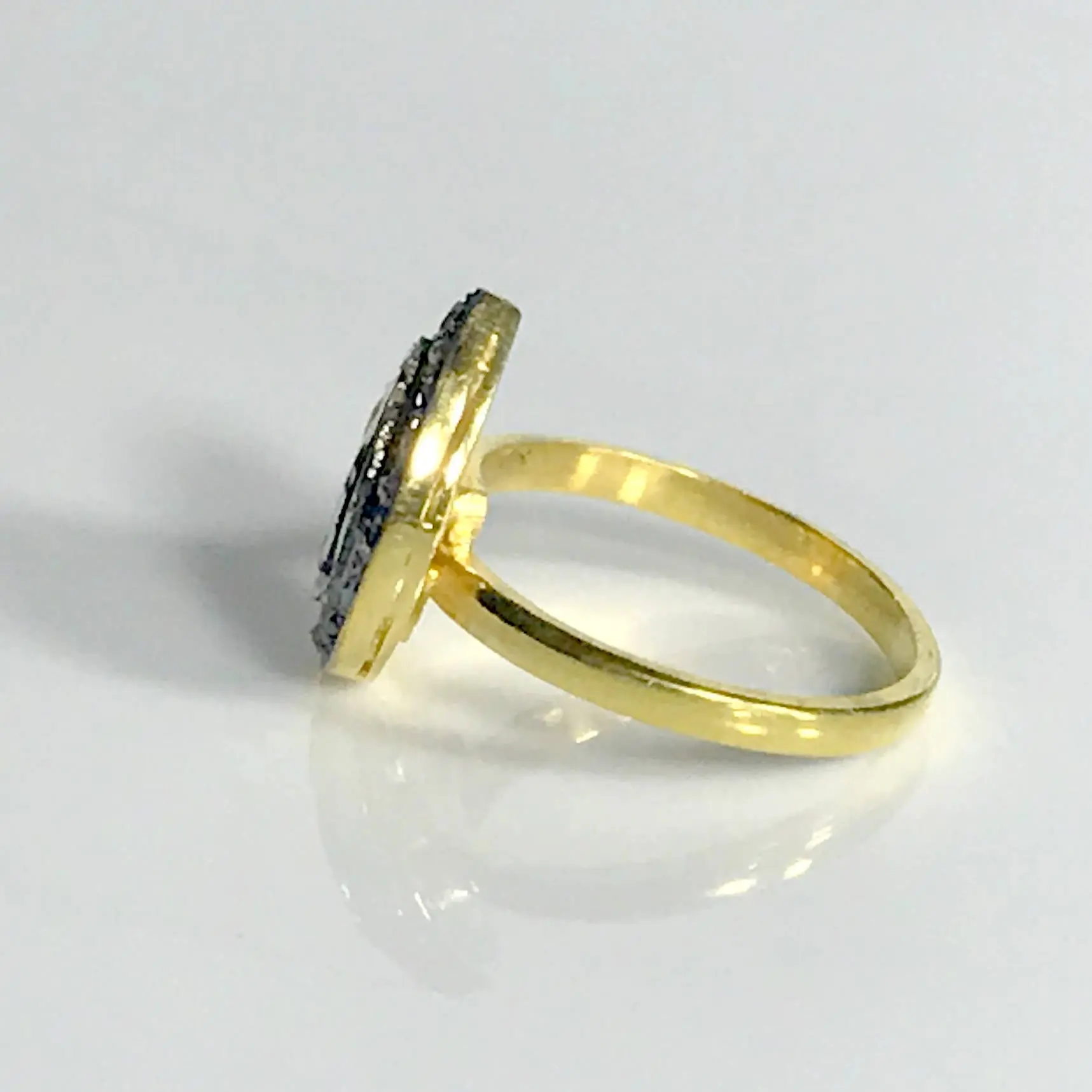 single solitaire hand cut diamond ring studded with 100% natural Rose cut diamonds in pave set......and black rhodium and gold plated plated......................