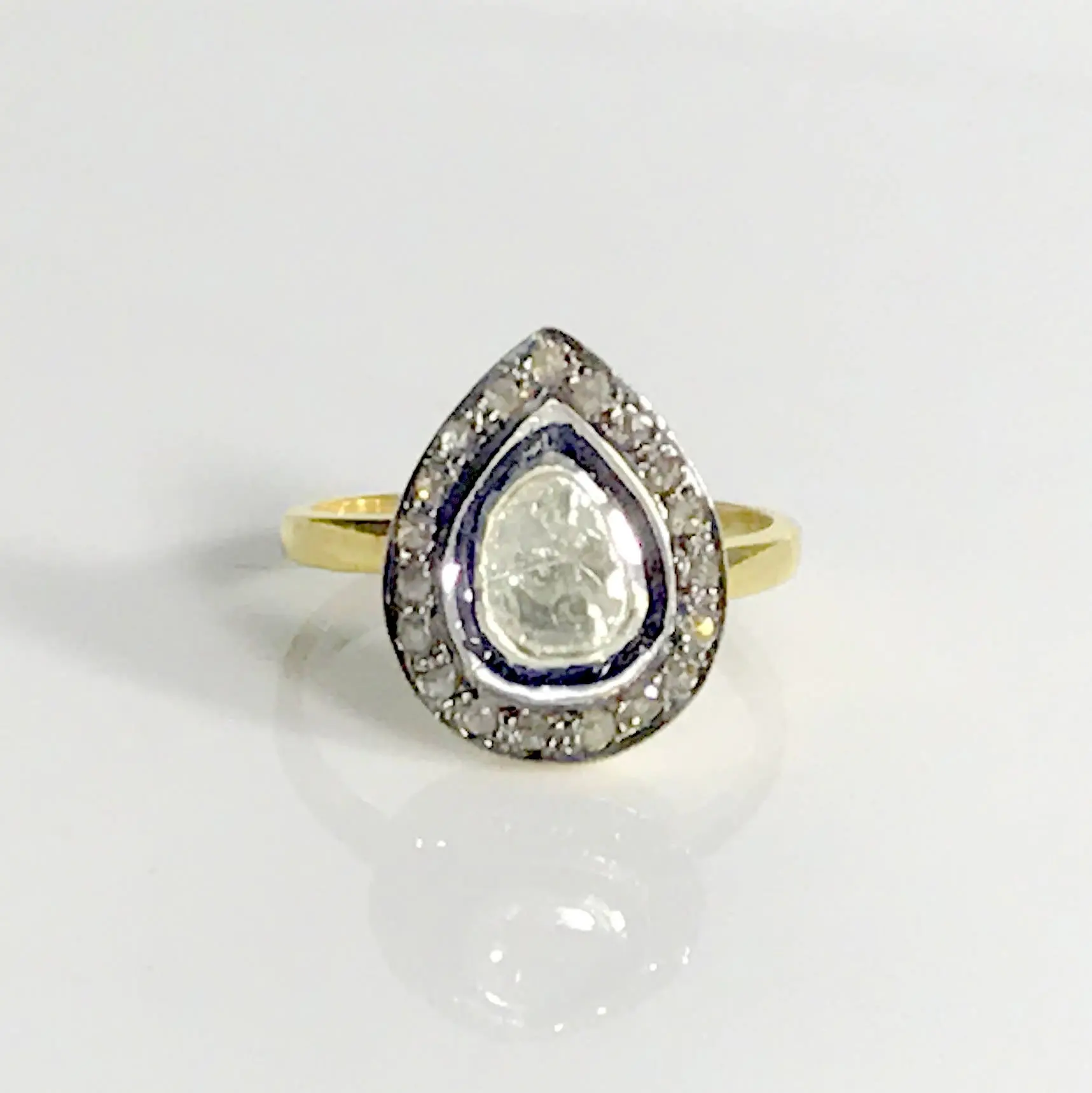 Natural ROSE CUT DIAMONDS Antique Victorian Style ring in 925 sterling silver , pear shape diamonds , gift for loved ones