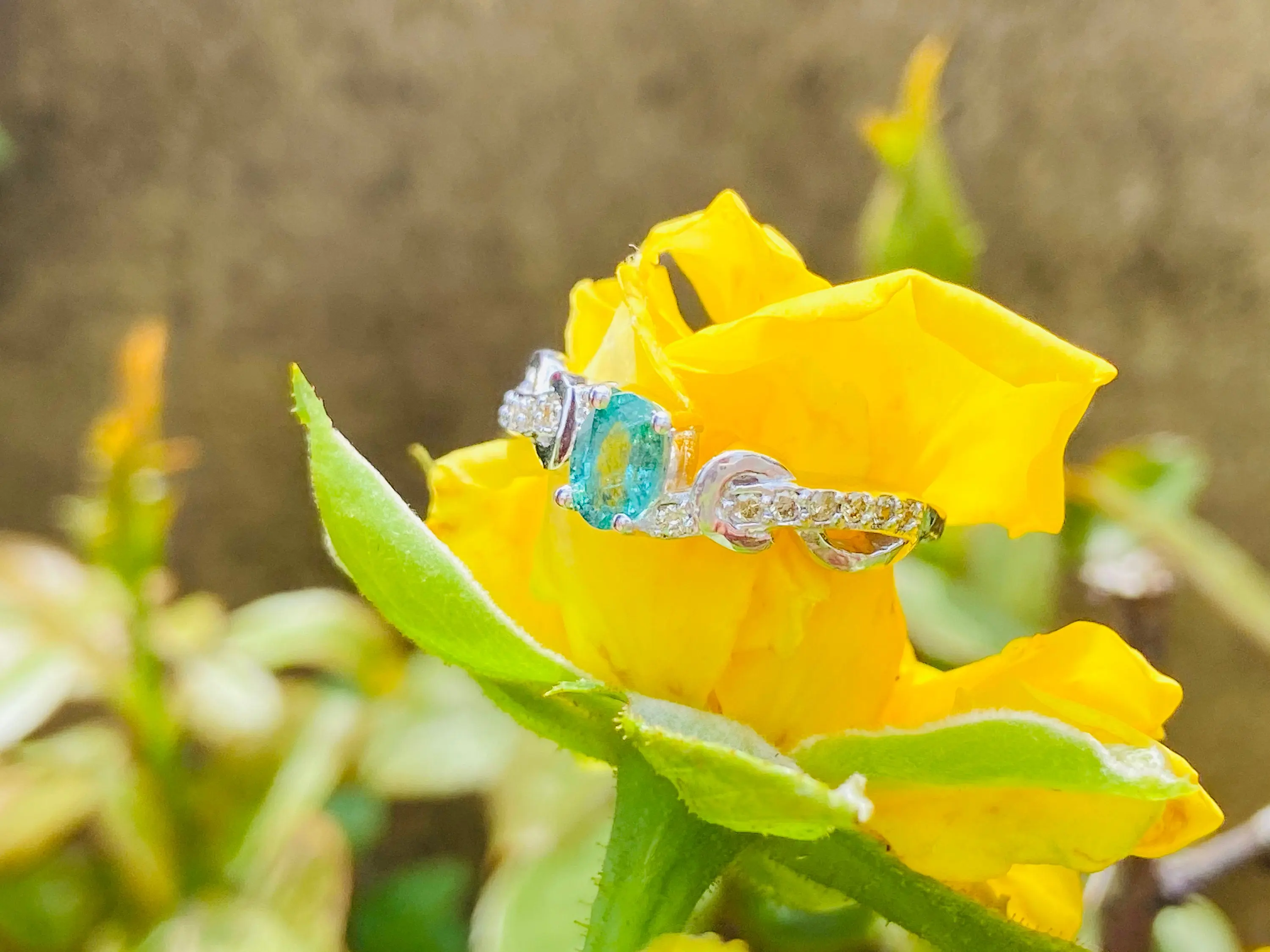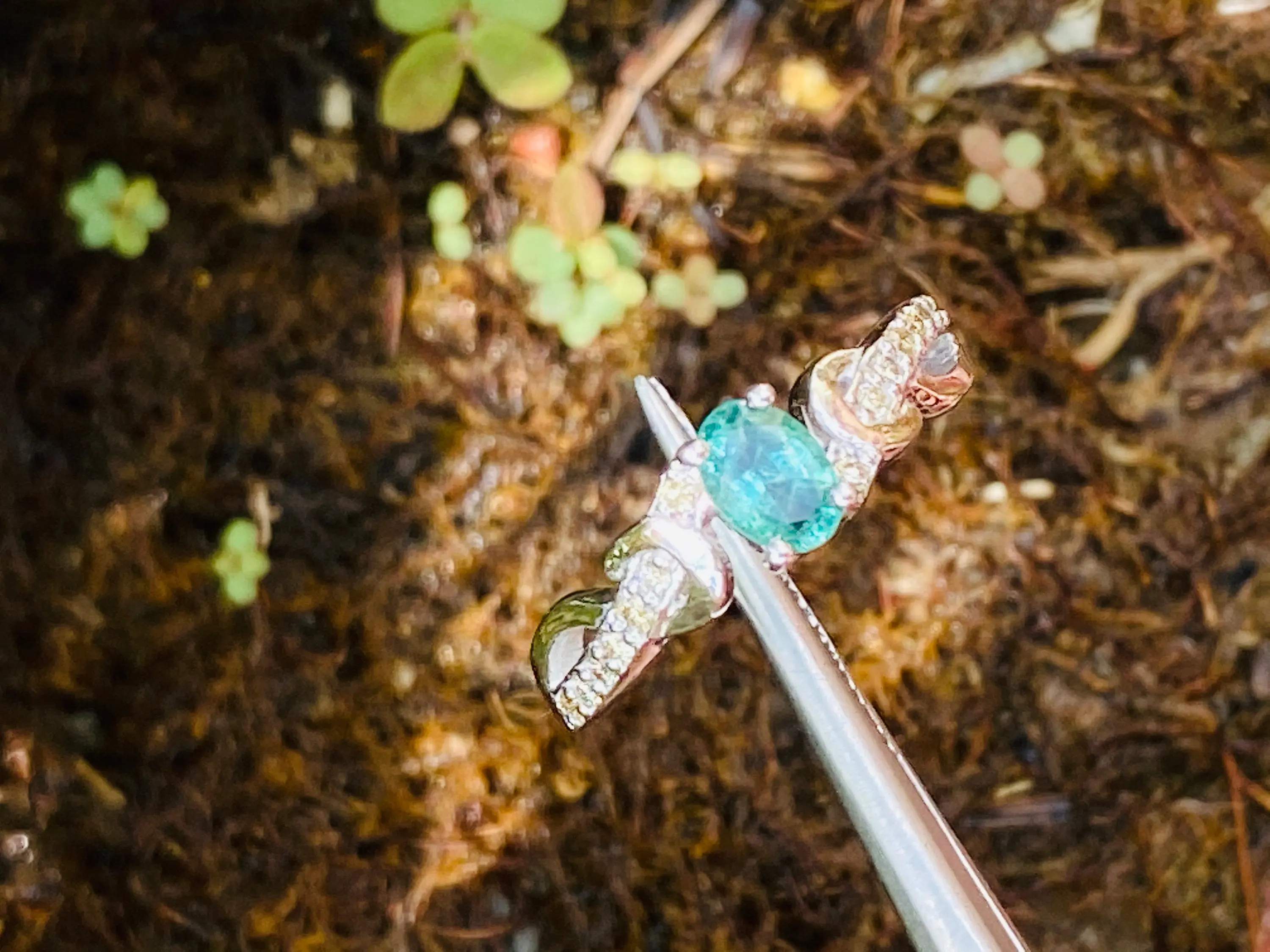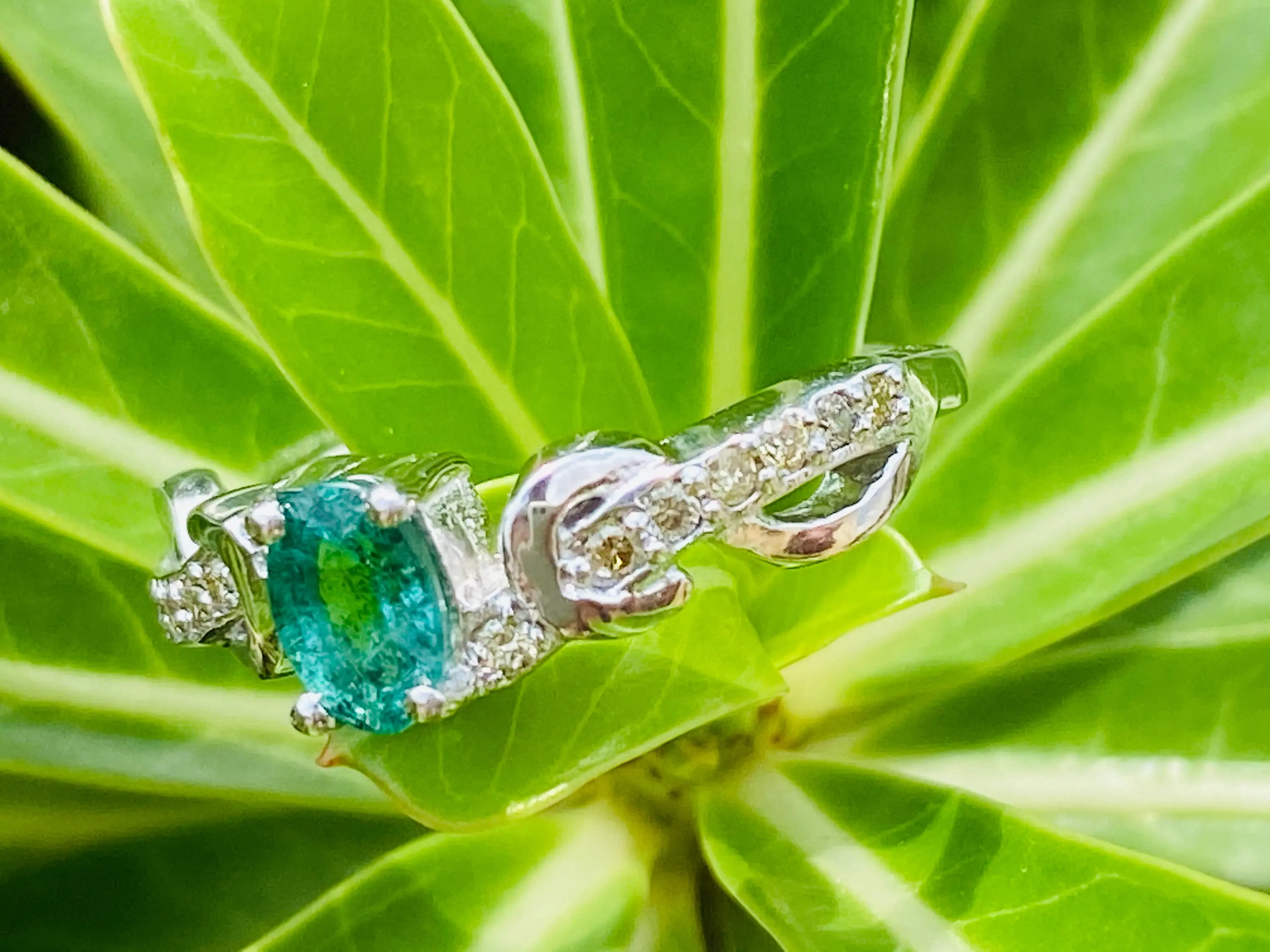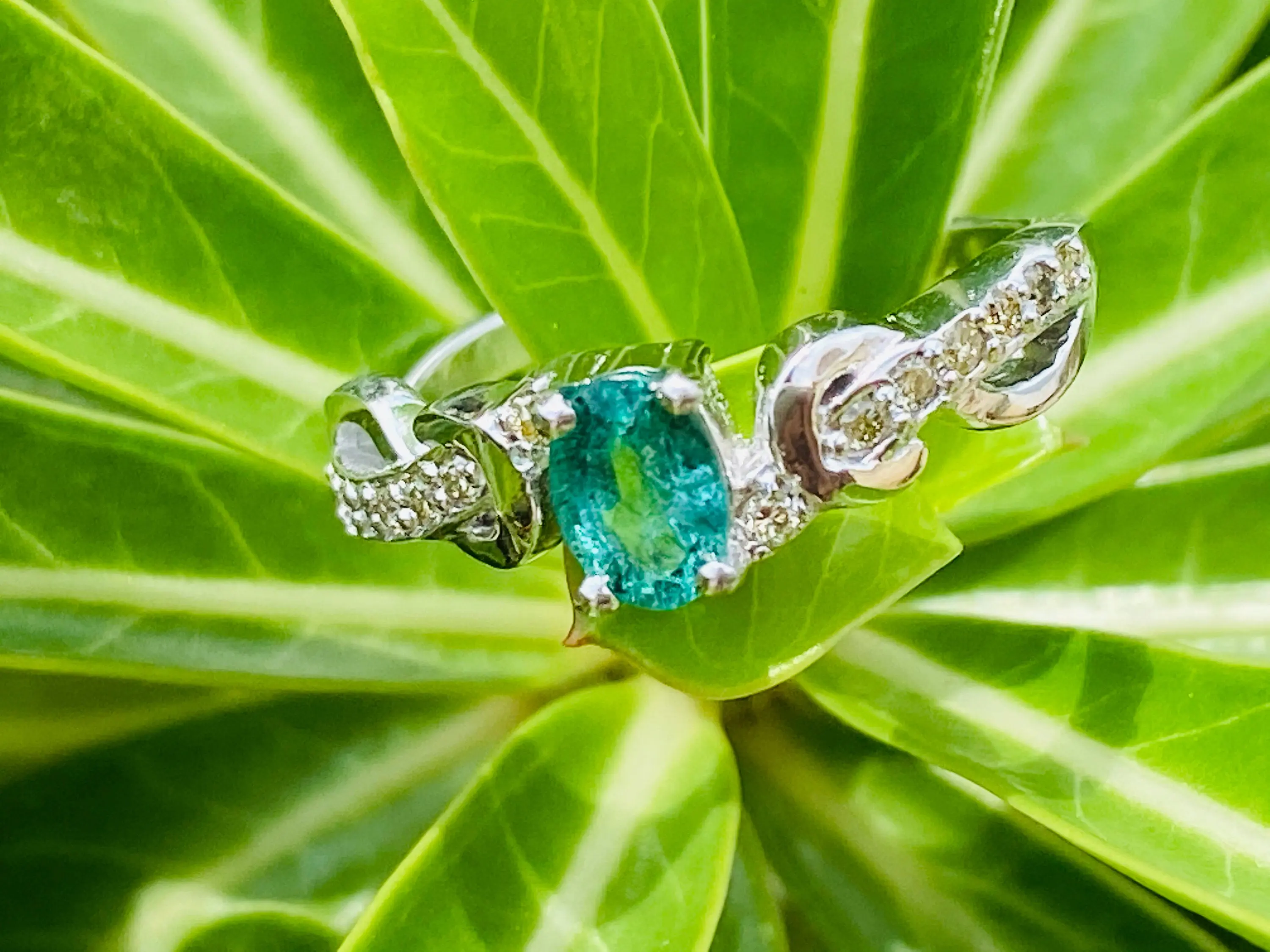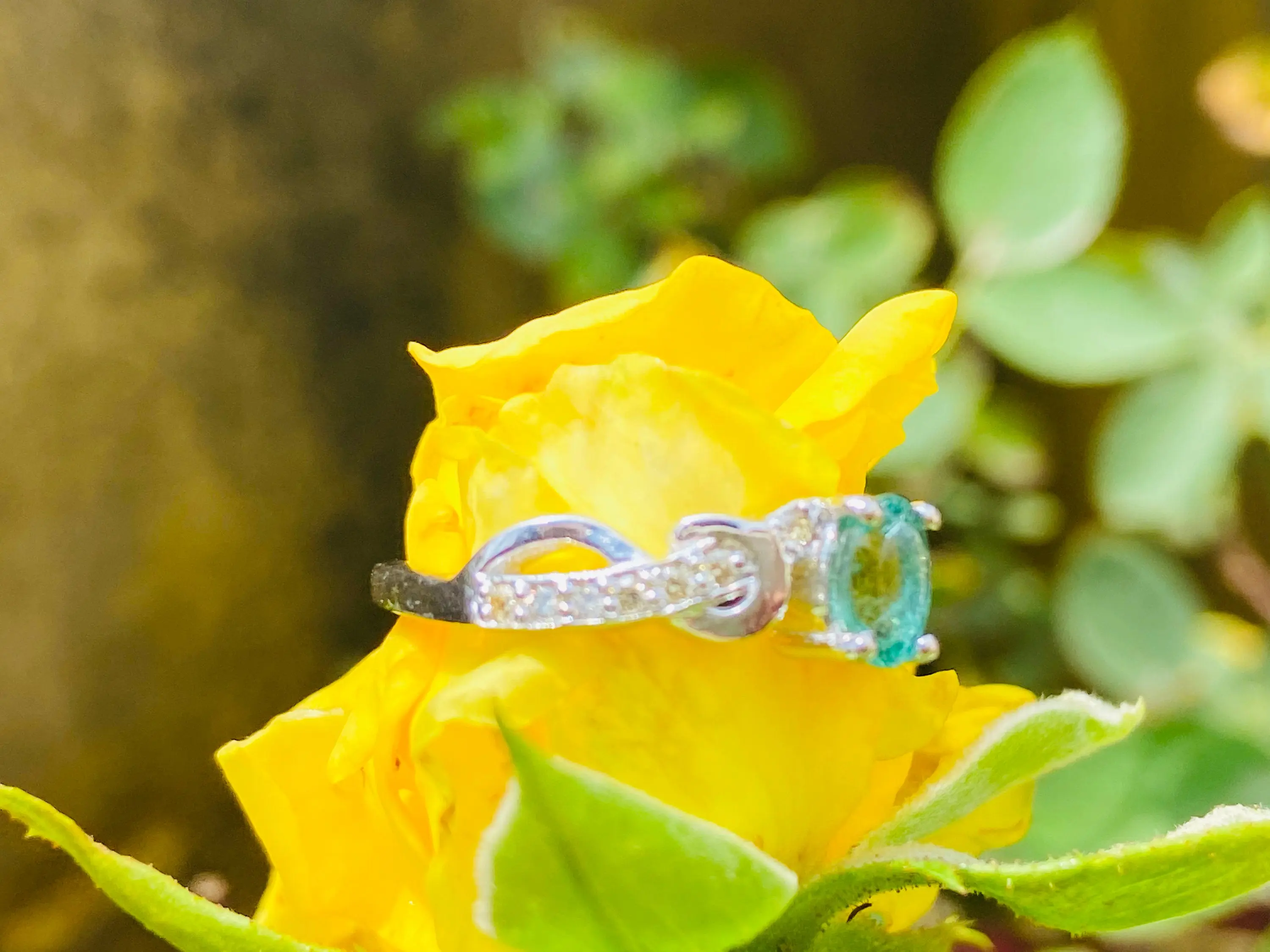 Super thin and feminine ring with a lovely ova faceted natural emerald diamond ring .........