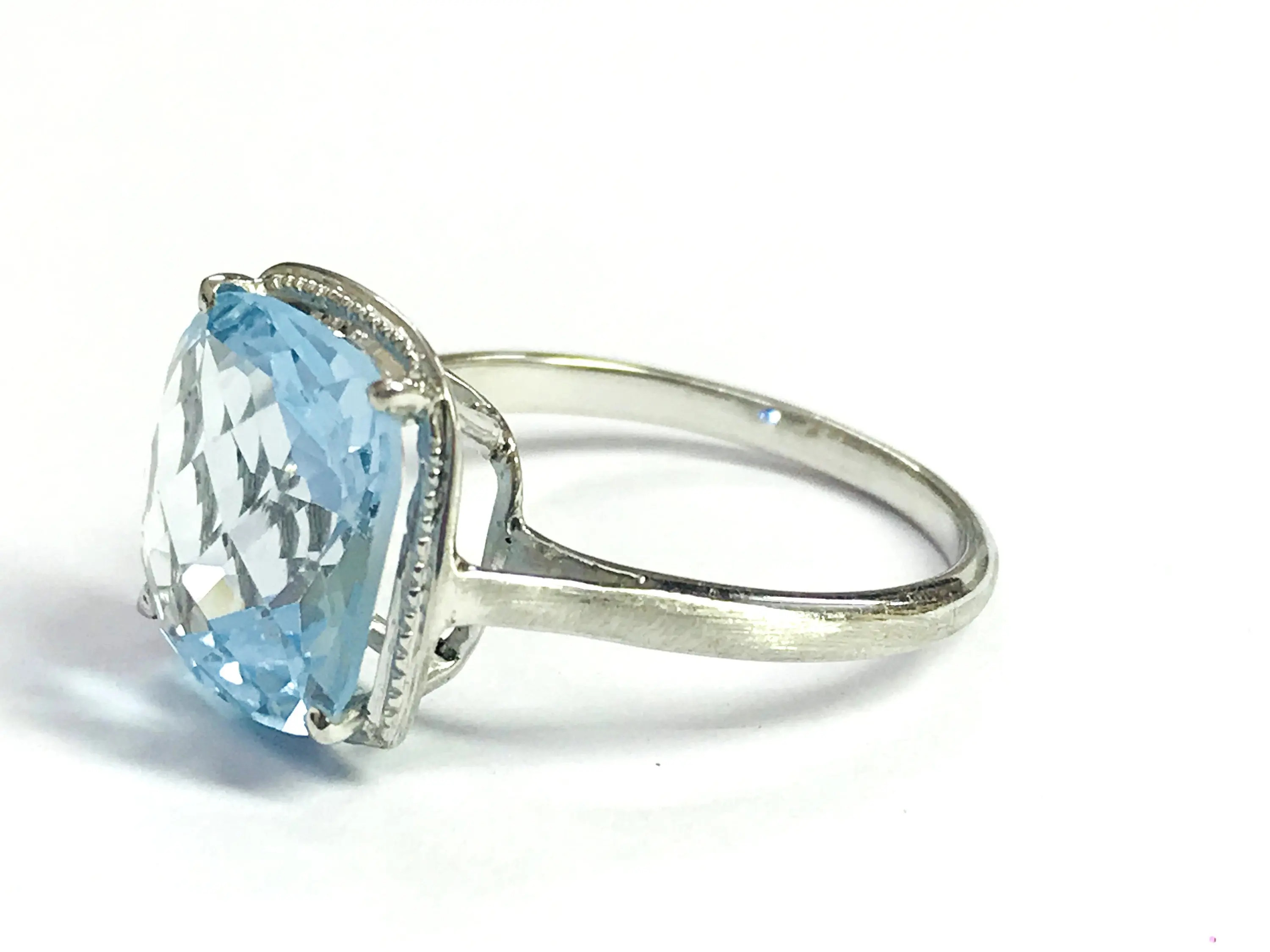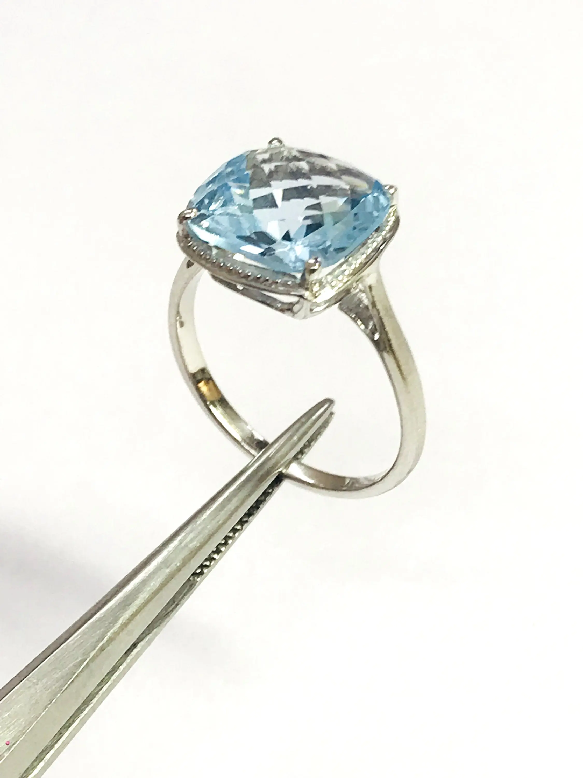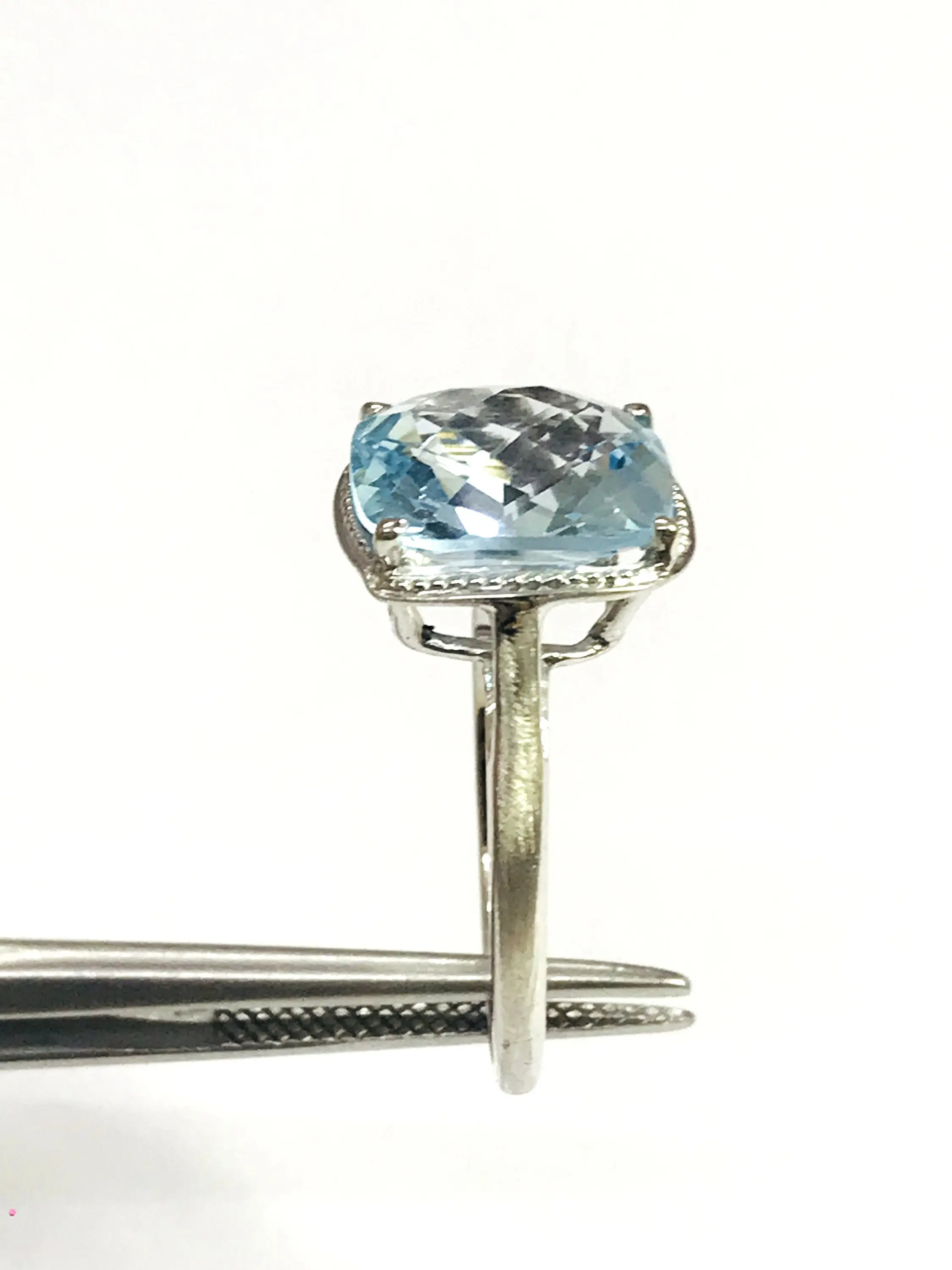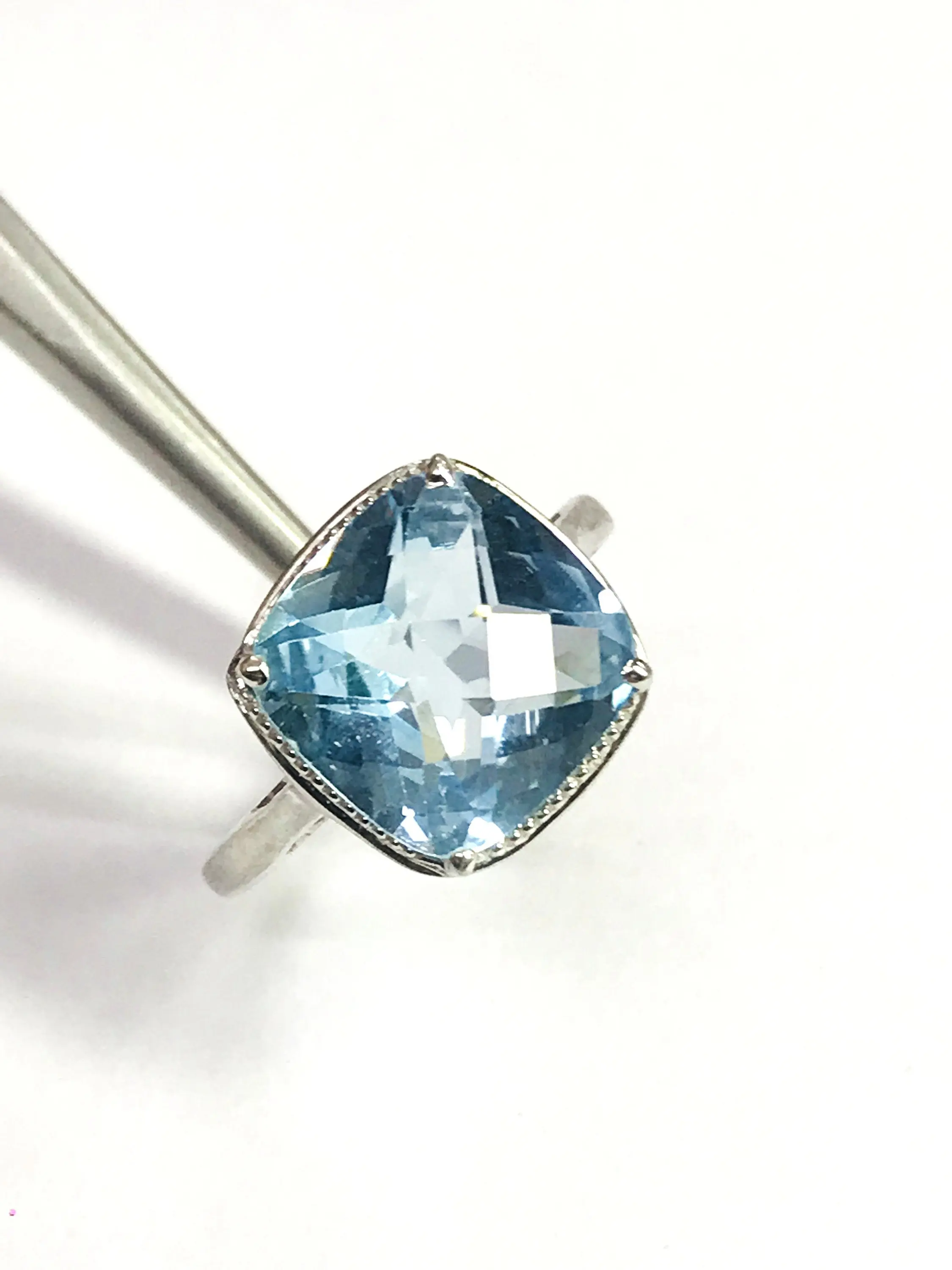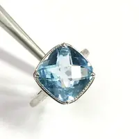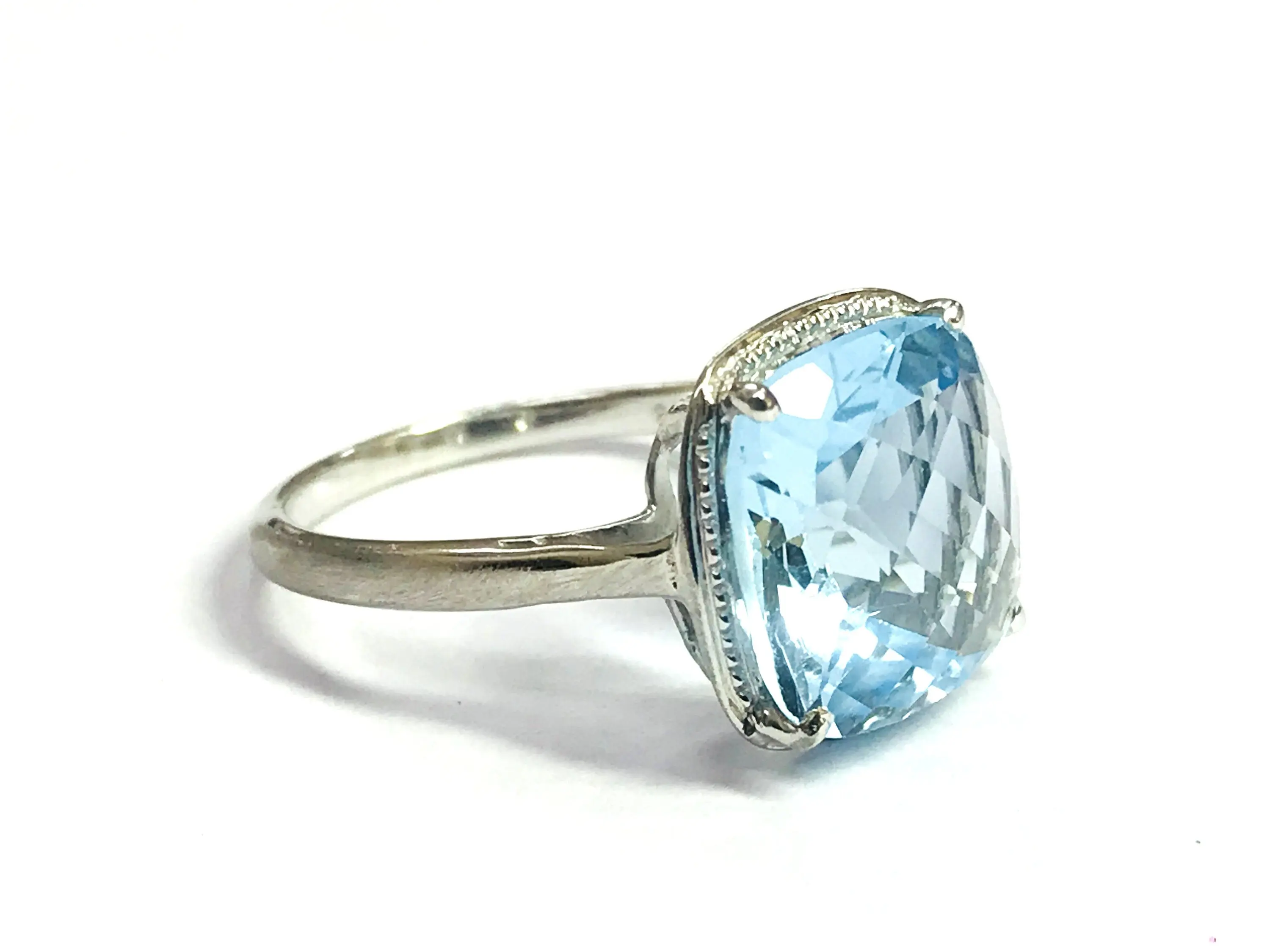 BLUE TOPAZ CUSHION Shape Ring, False Grain , December Birthstone ,Hand Forged Ring ,Valentine Gift ,Promise Ring..