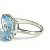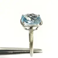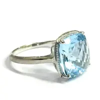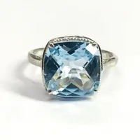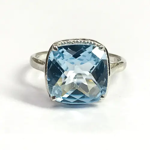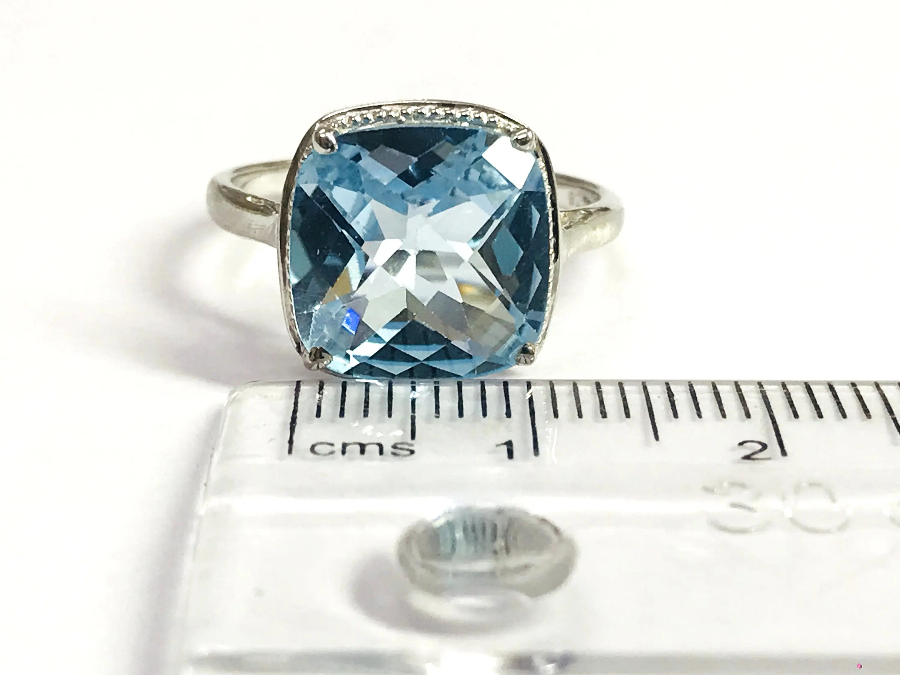 Super fine quality 925 silver ring studded with blue topaz and diamonds on prong...........with full light and energy.......in life !!!!!!!