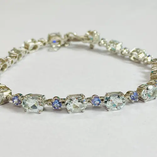 7.5 inches AQUAMARINE TANZANITE Bracelets,925 sterling silver,March & December Birthstone,Wedding Collection ,Women Bracelets,Christmas gift