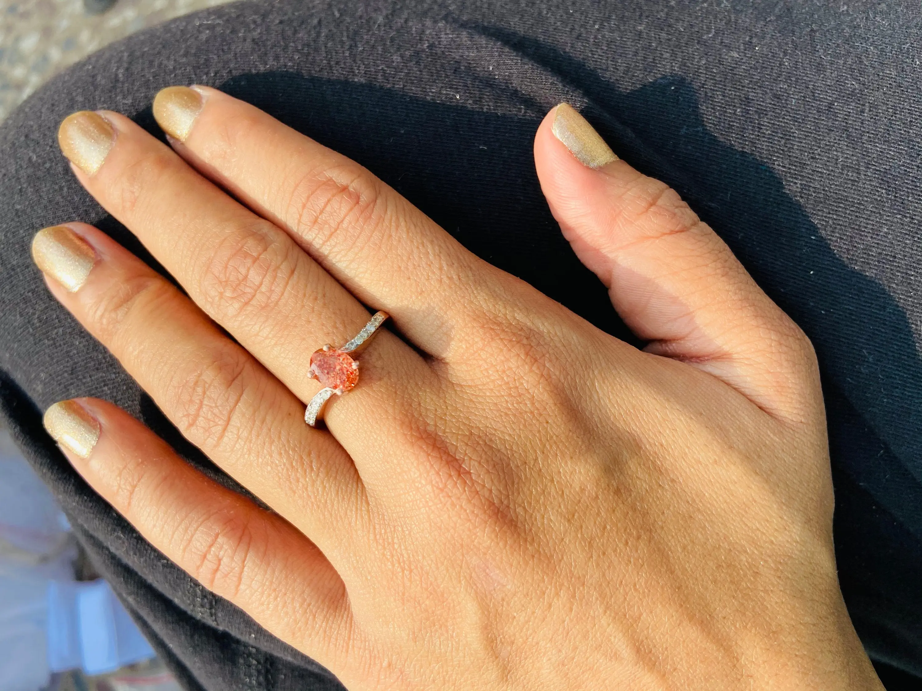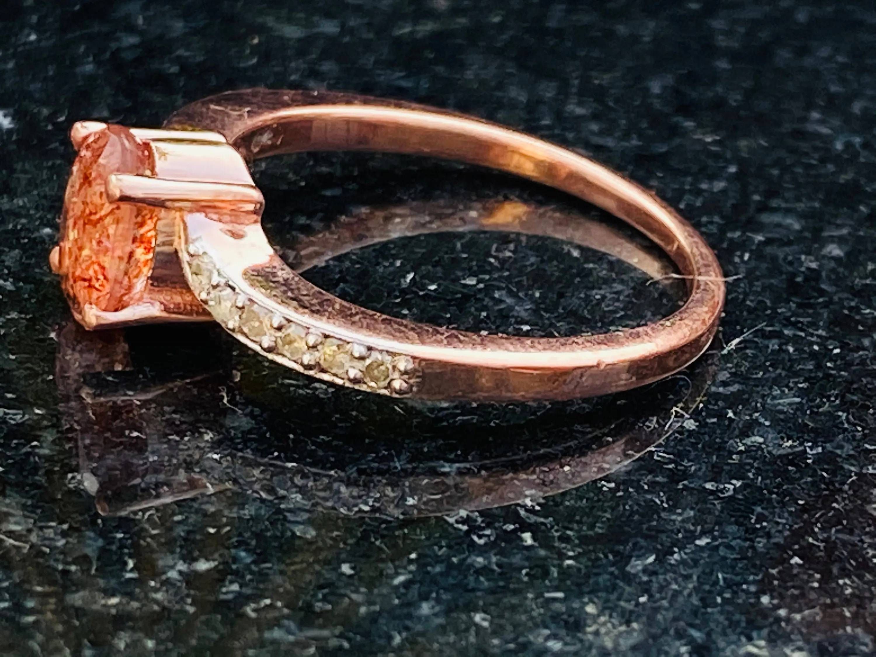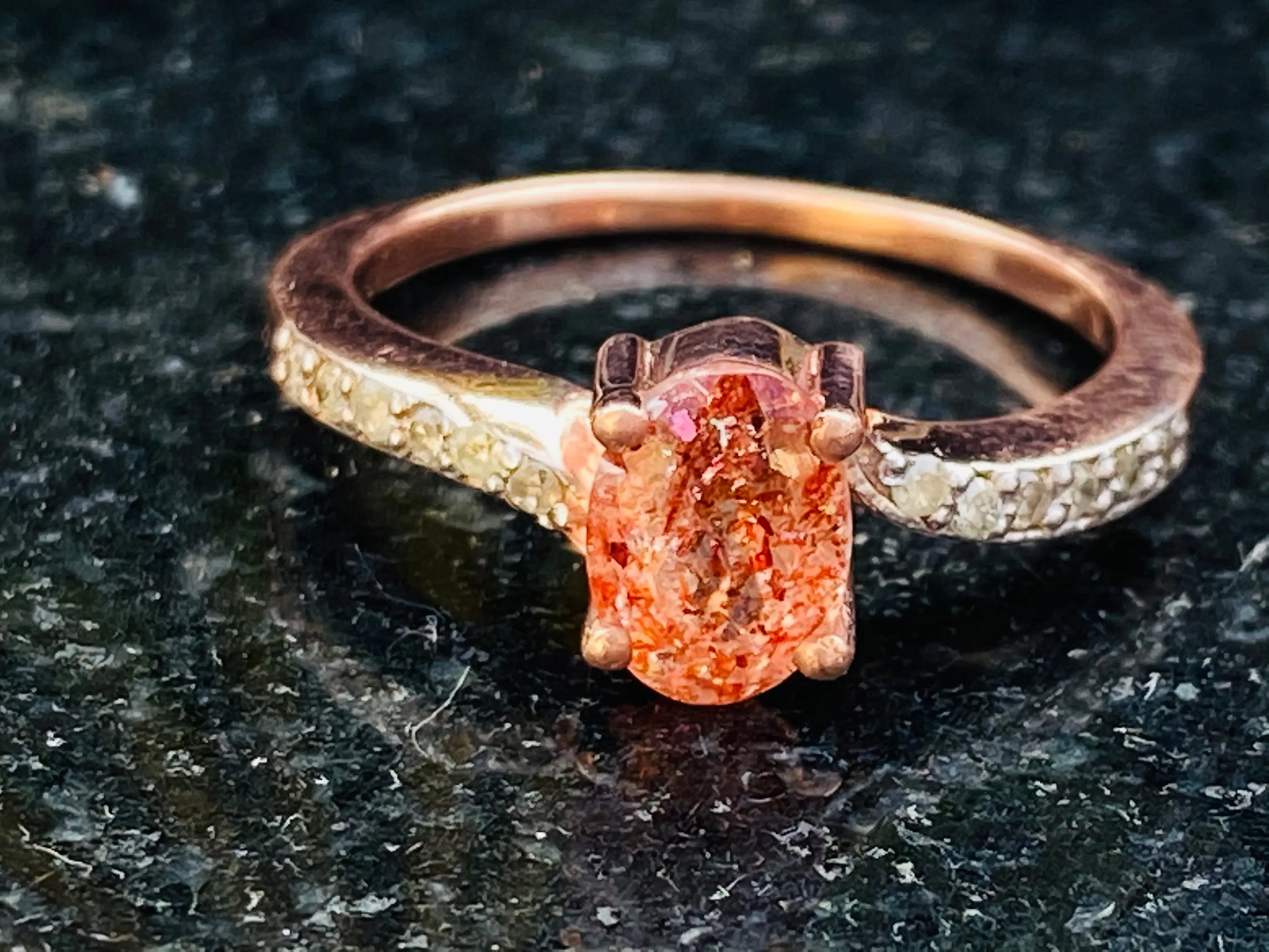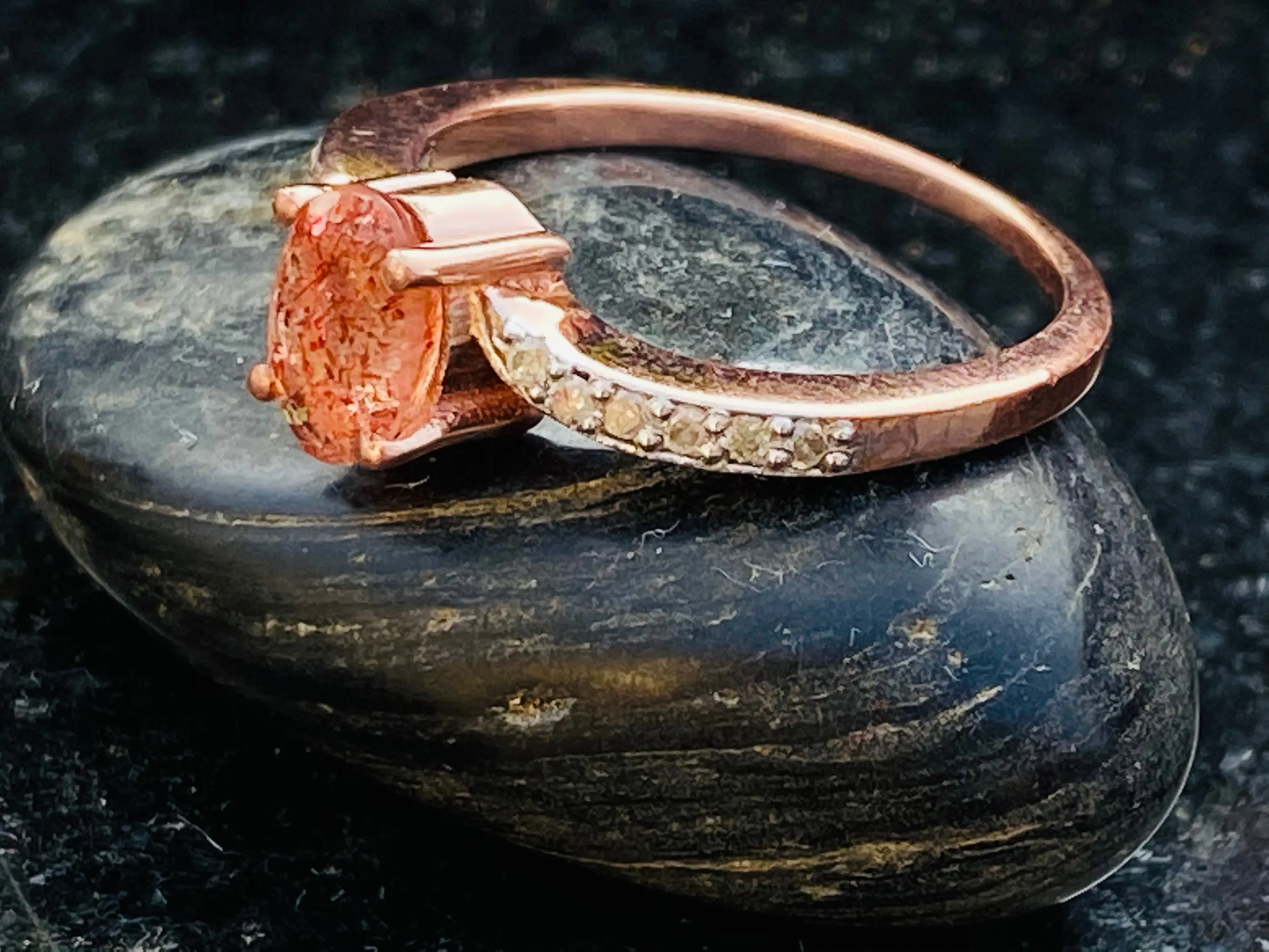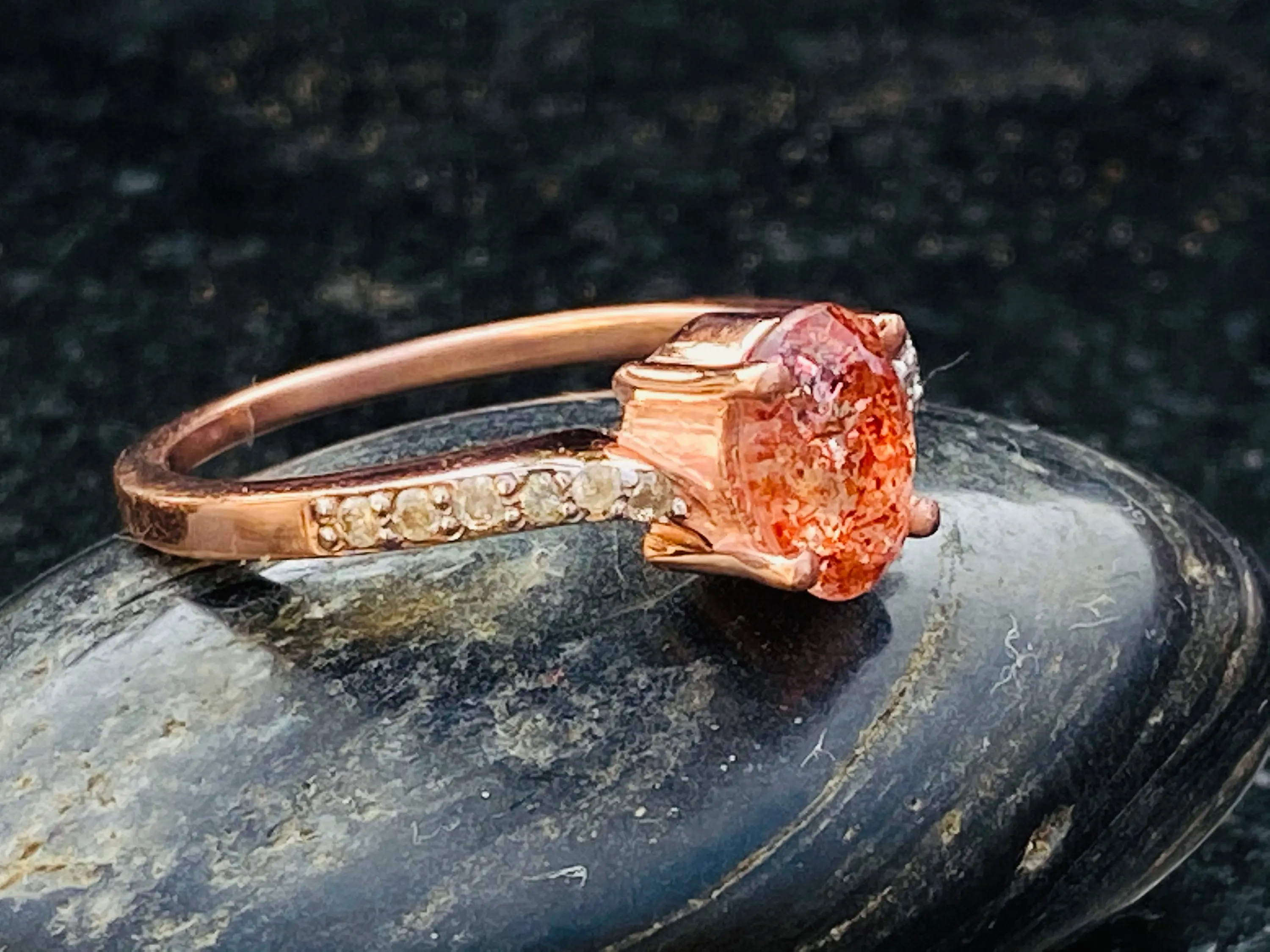 SUNSTONE DIAMOND Rose Gold Ring ,Plagioclase Feldspar gemstone, Engagement ring ,Rose Gold promise ring.