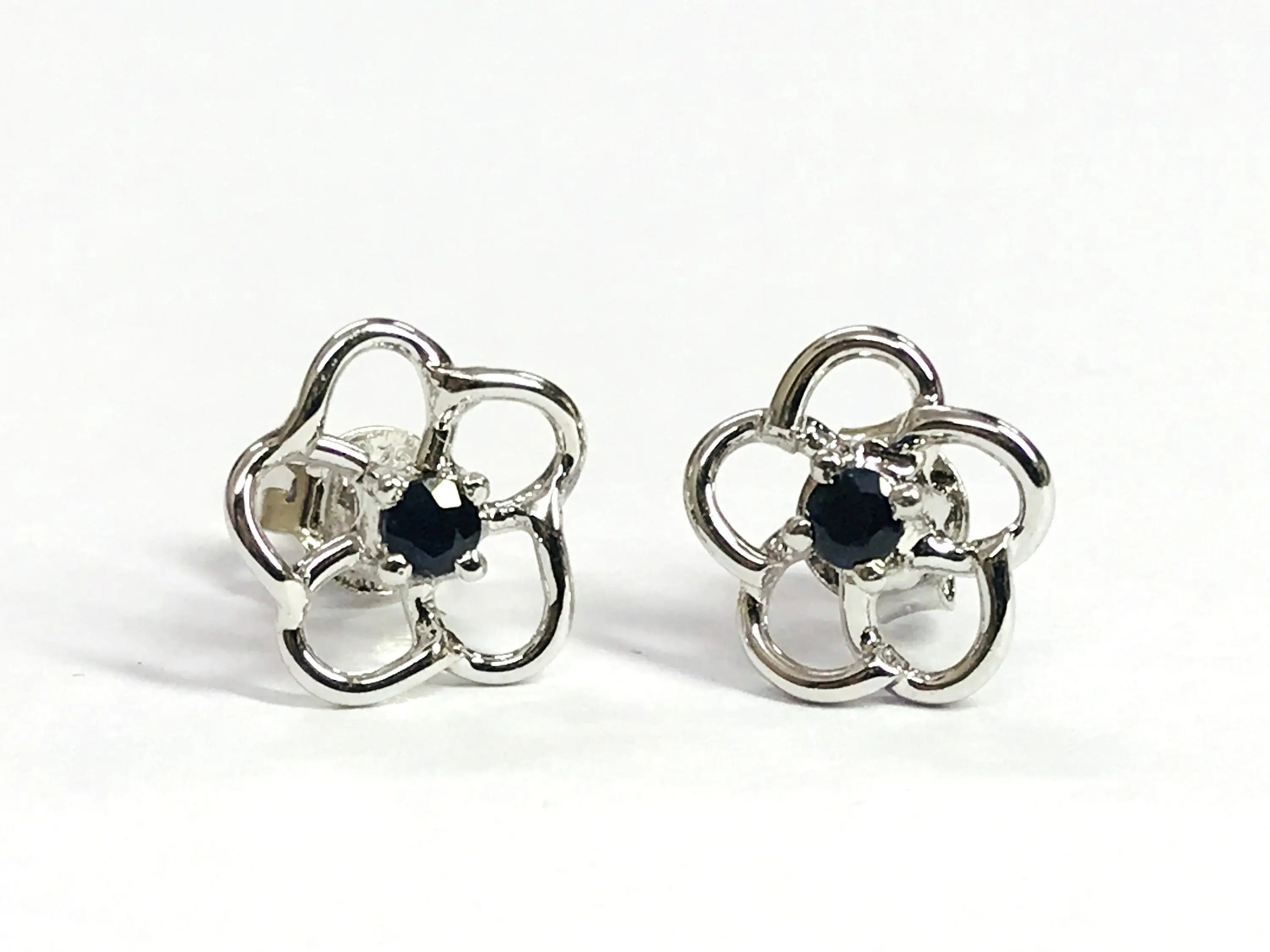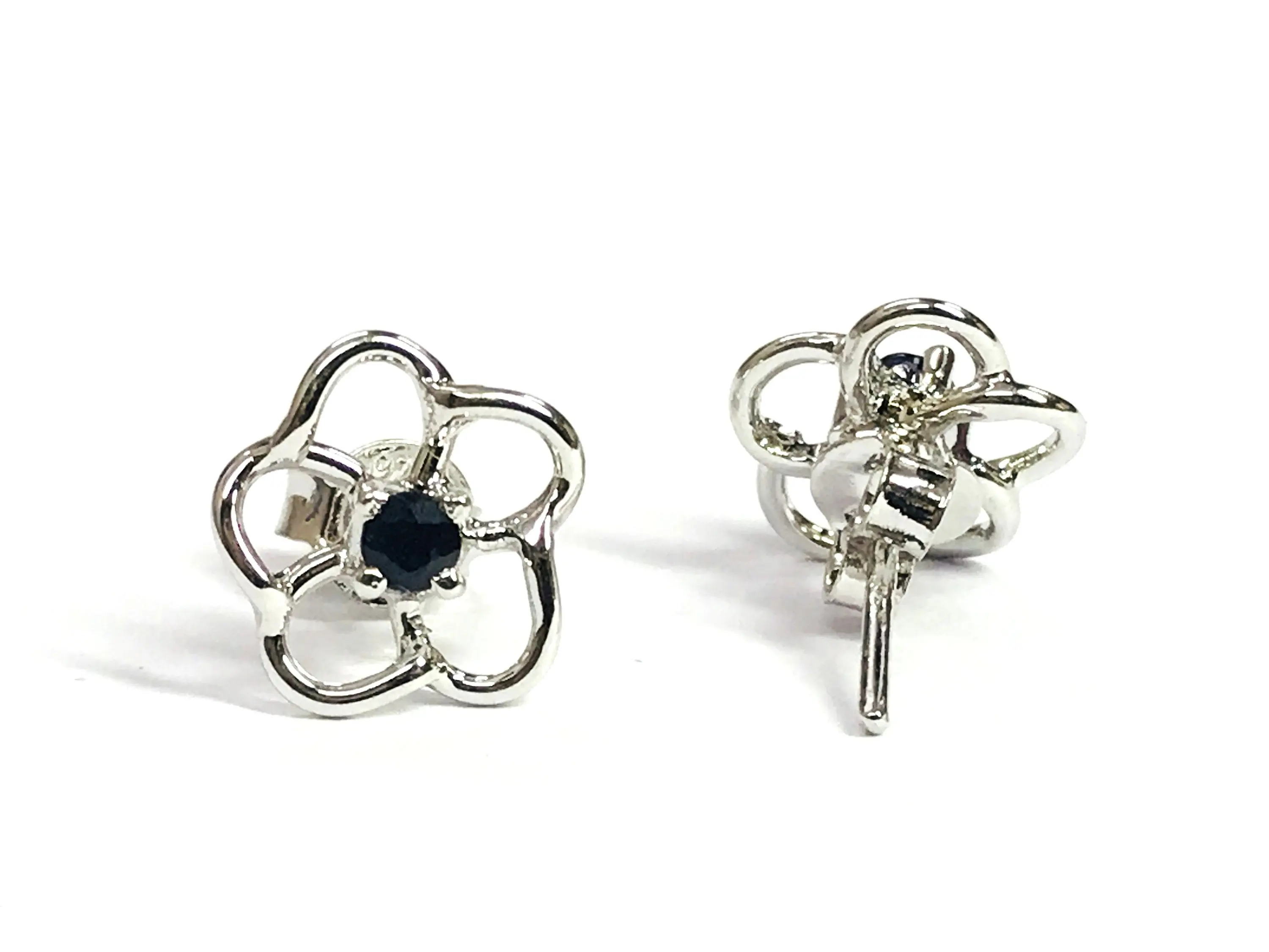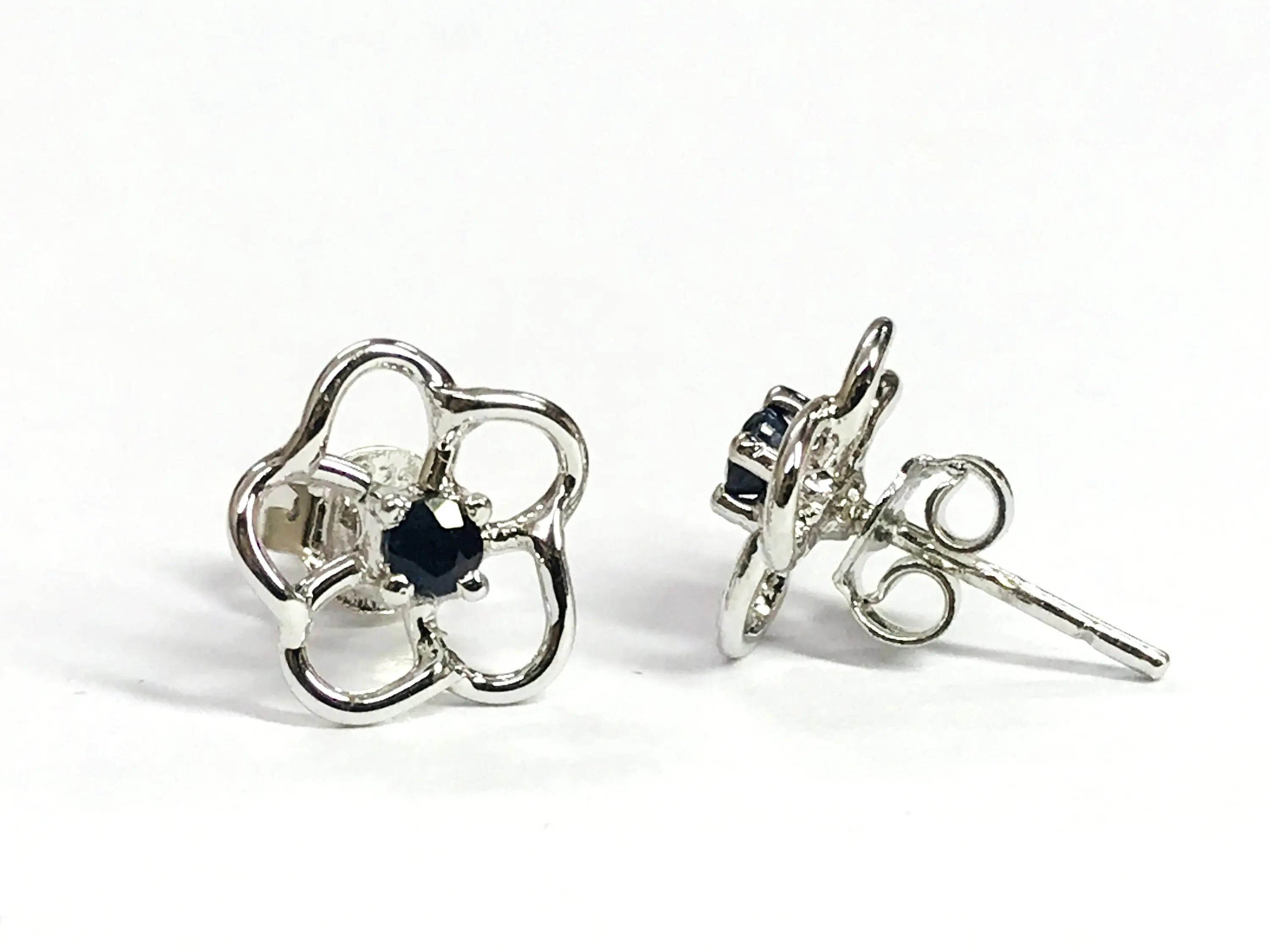TINY BLUE SAPPHIRE Stud Earrings, 925 Sterling silver,Flower Earrings , September Birthstone , Beautiful Christmas Gift for your loved ones