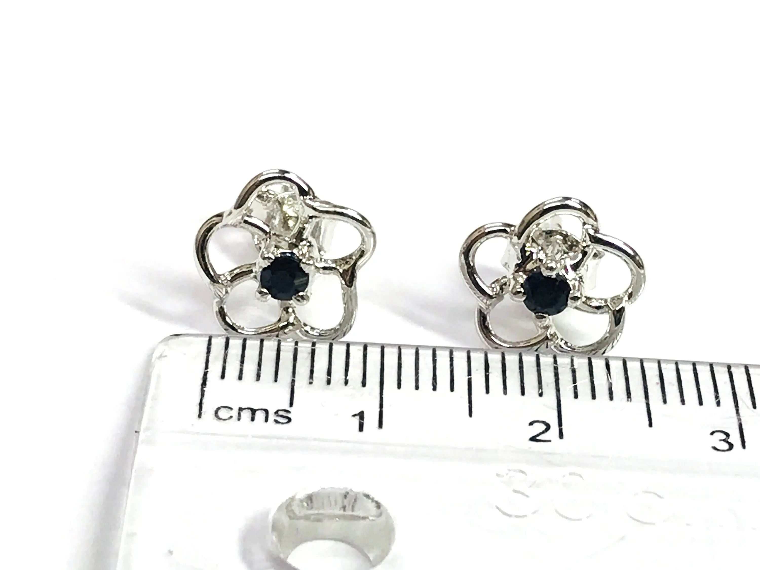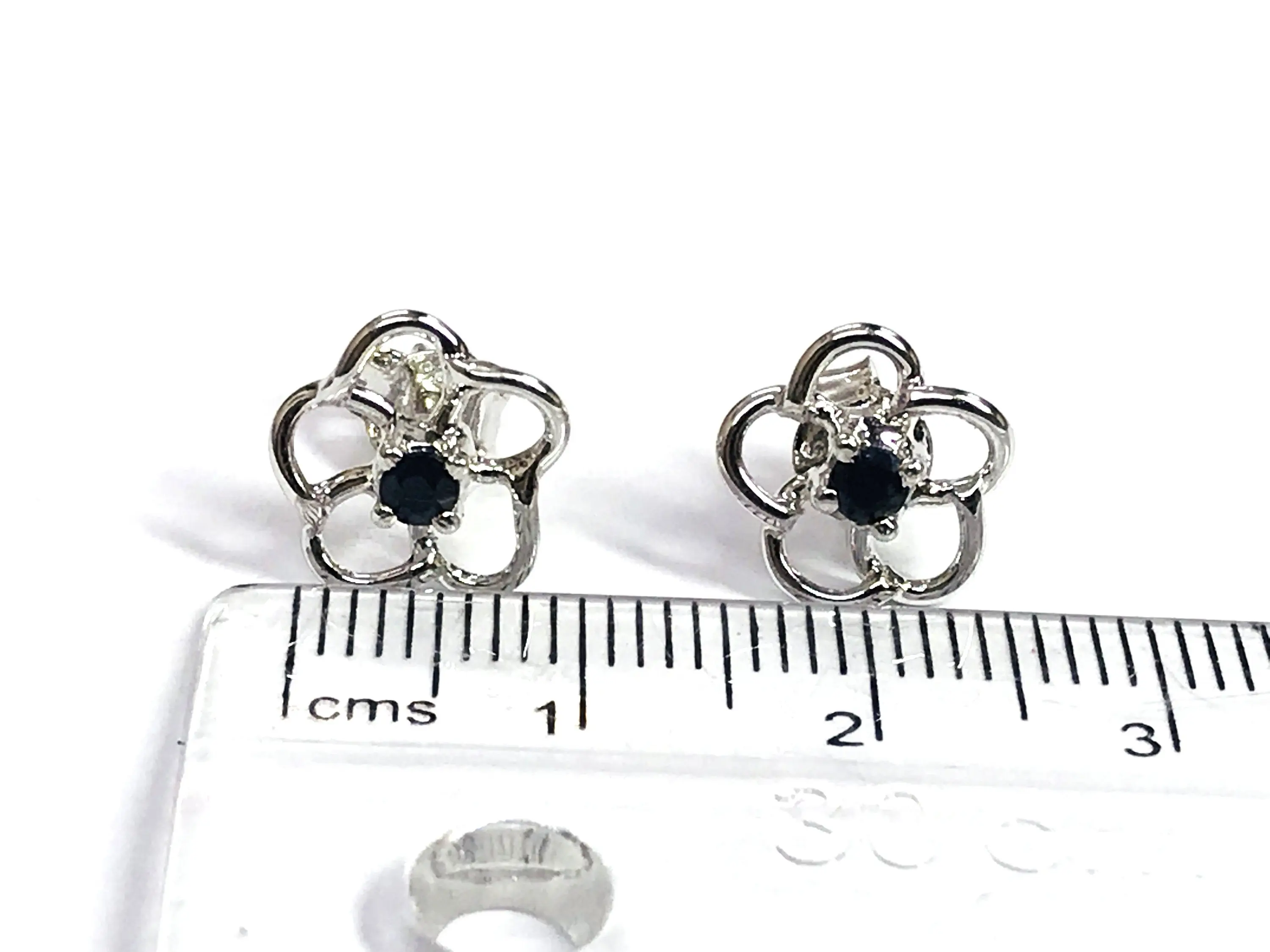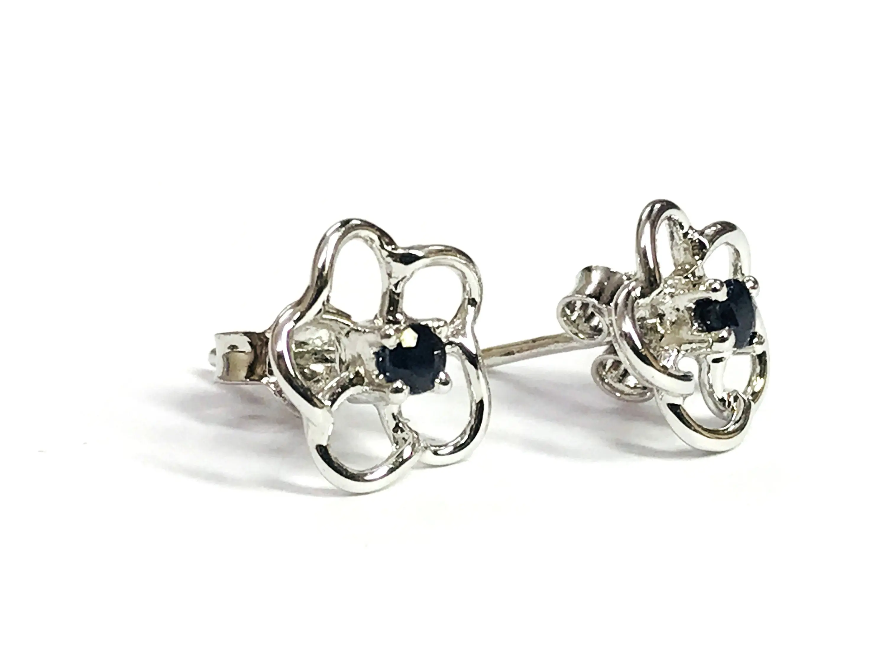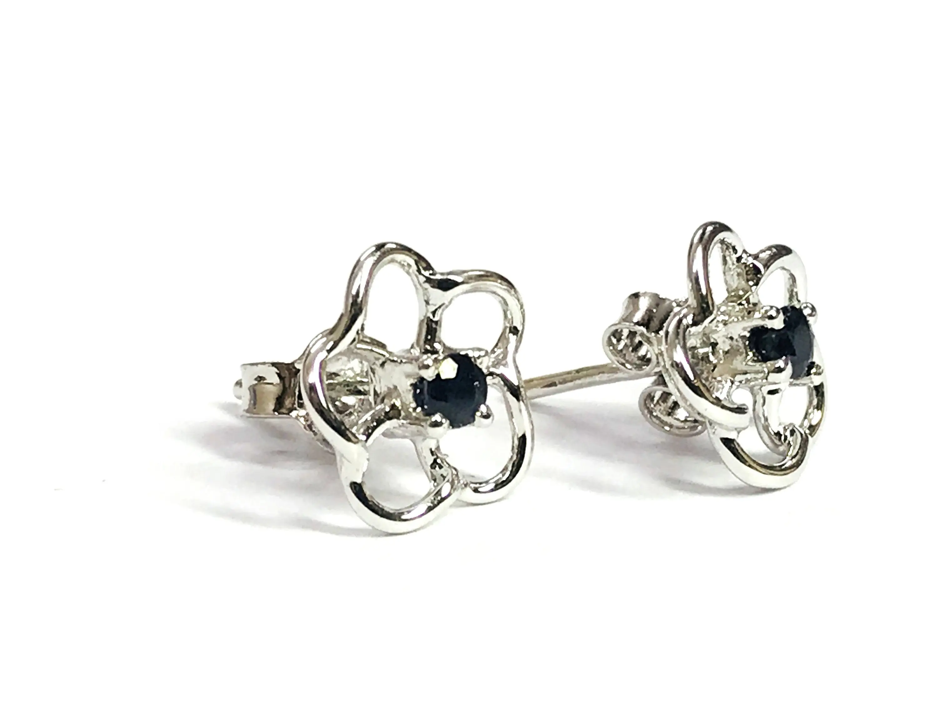 TINY BLUE SAPPHIRE Stud Earrings, 925 Sterling silver,Flower Earrings , September Birthstone , Beautiful Christmas Gift for your loved ones