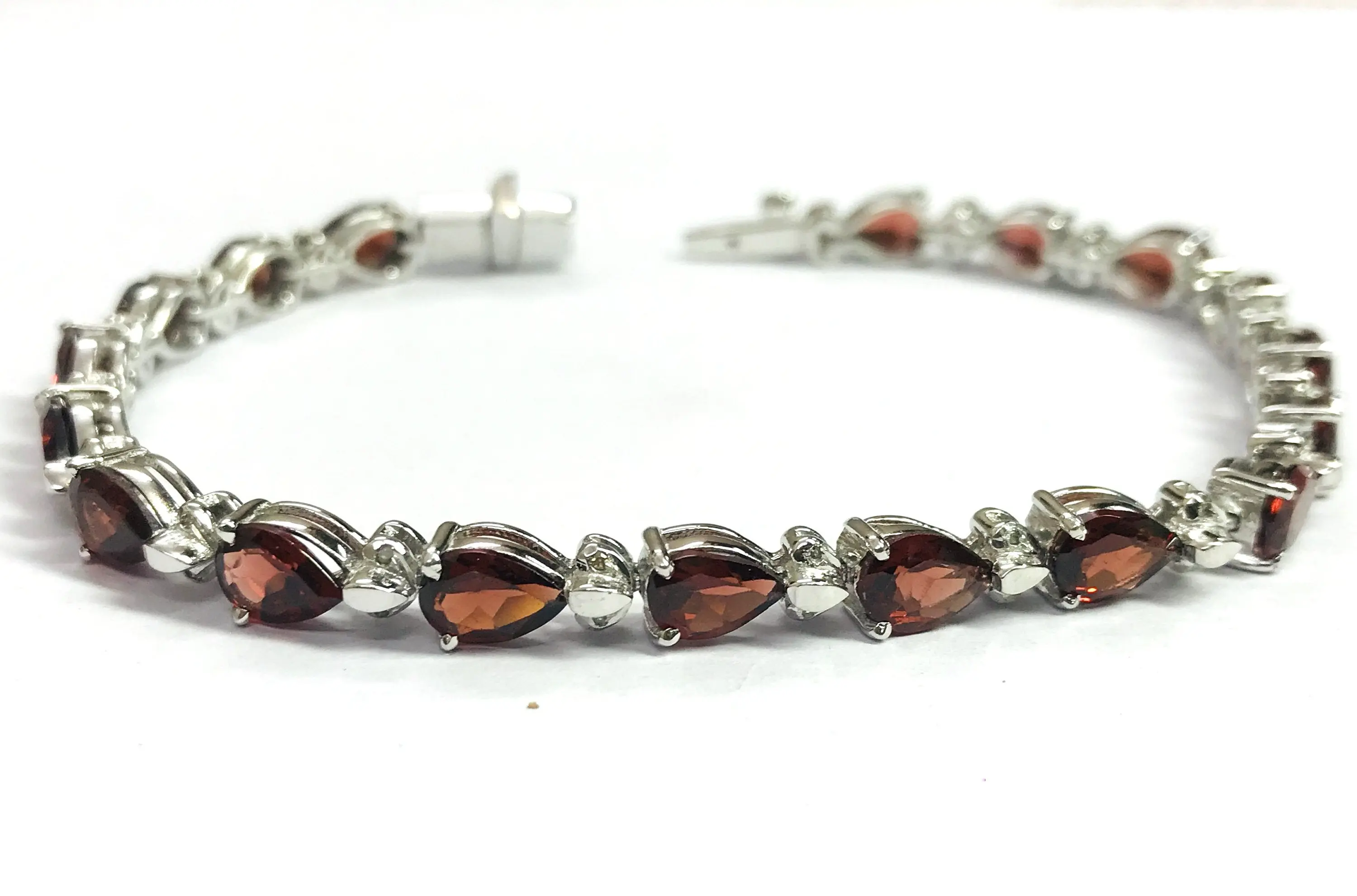 7.5 inches RED GARNET DIAMONDS Bracelets , 925 sterling silver,Pear shape ,Natural Garnet,Christmas gift ,Bridal Gift,Women Bracelets