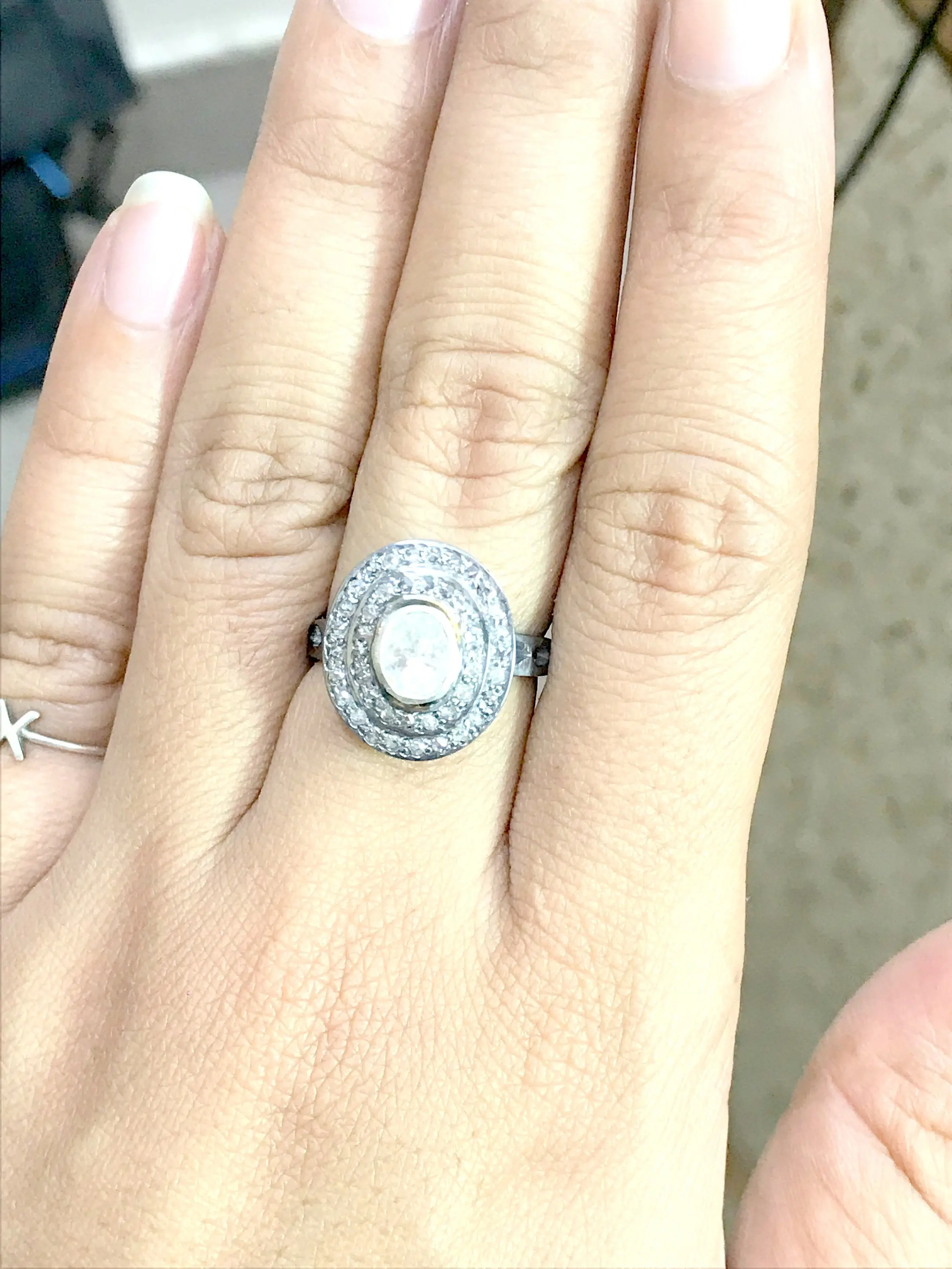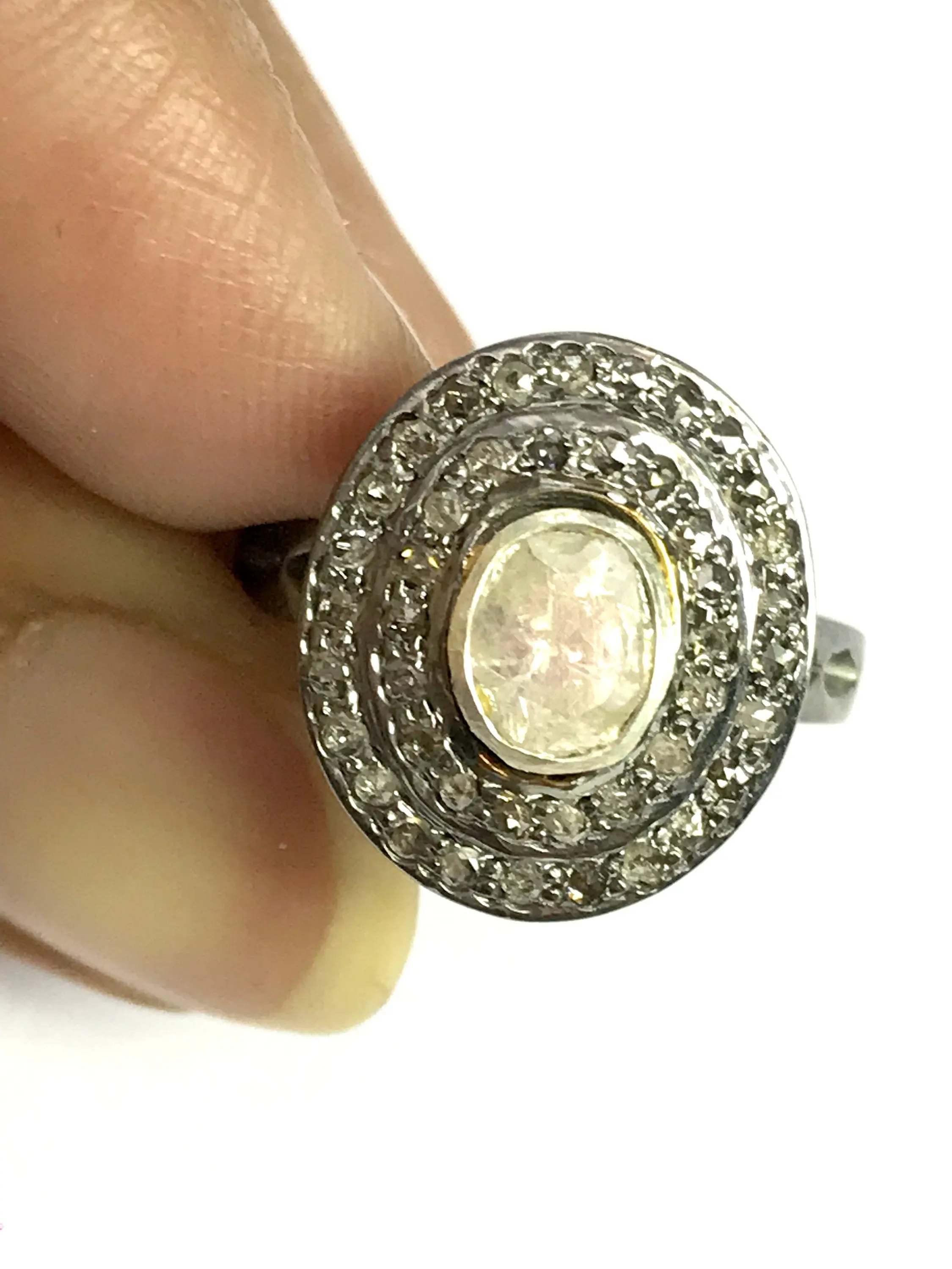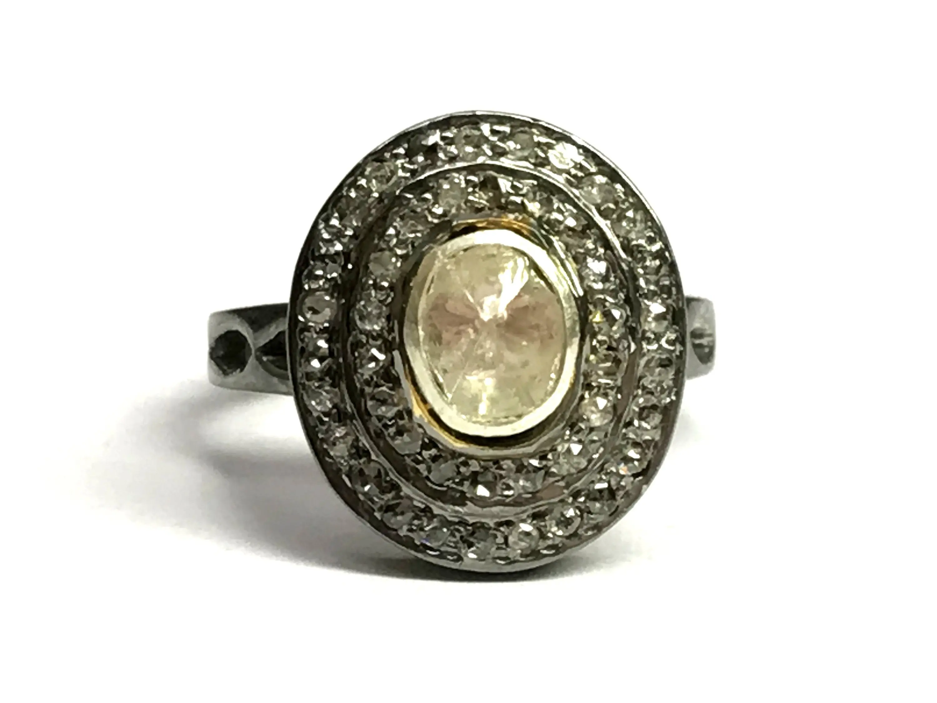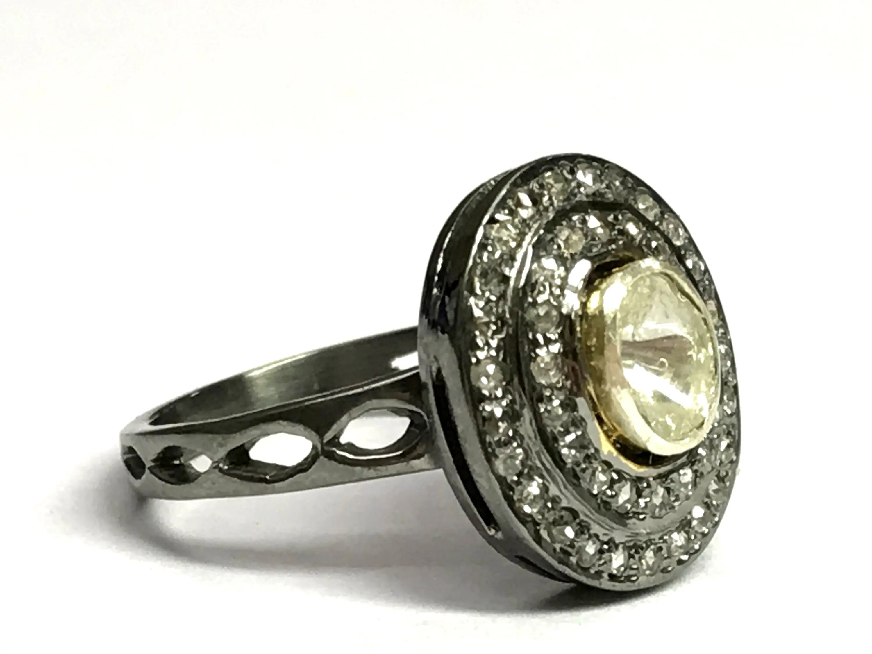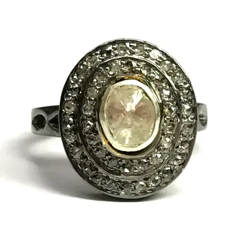 Hand cut diamond ring studded with 100% natural Rose cut diamonds in Bezel set......