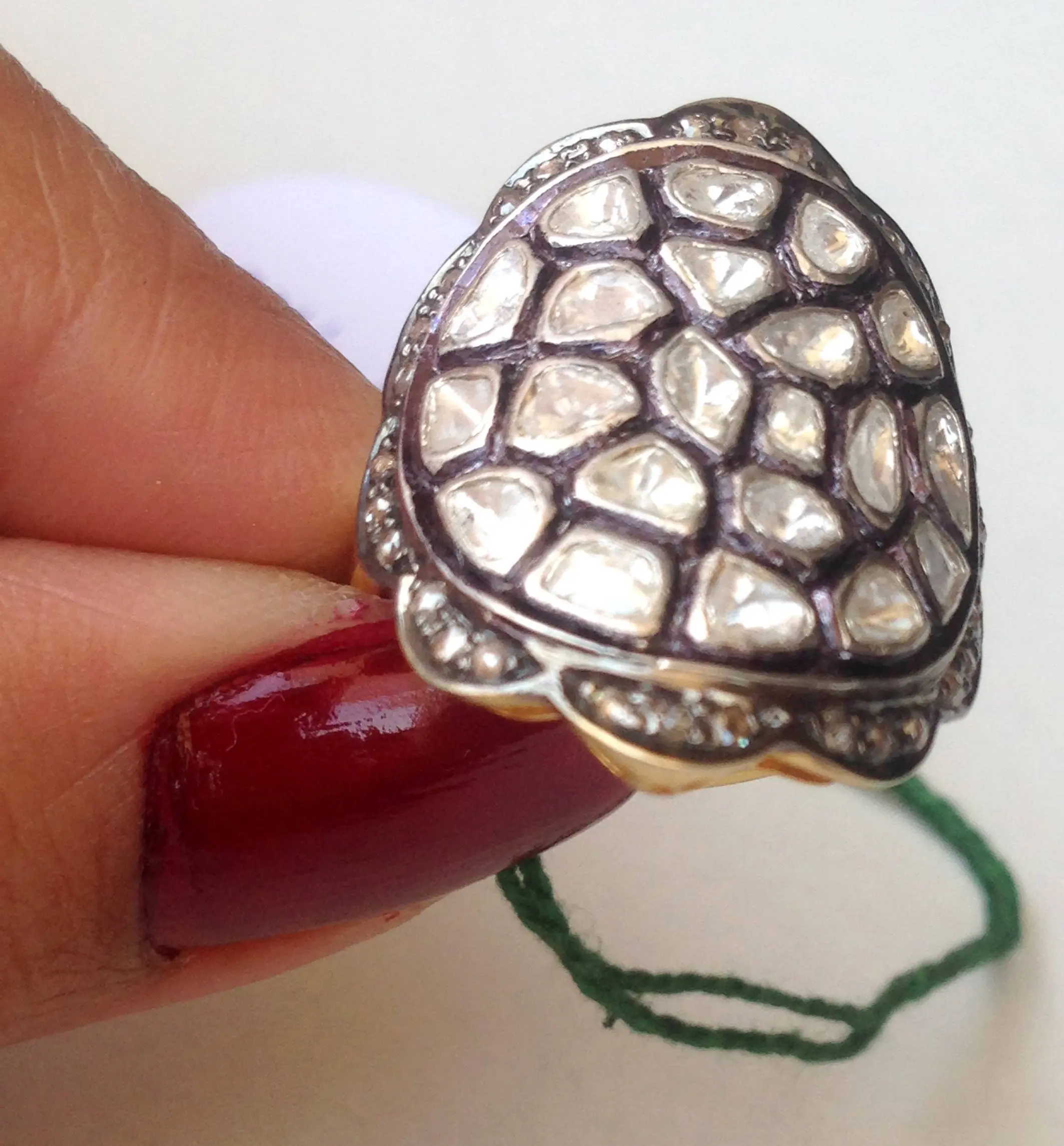 Natural rose cut diamonds antique silver ring, diamonds vintage ring, silver diamond jewelry ,vintage jewelry collection