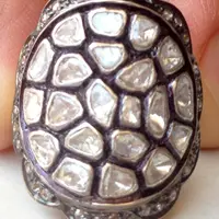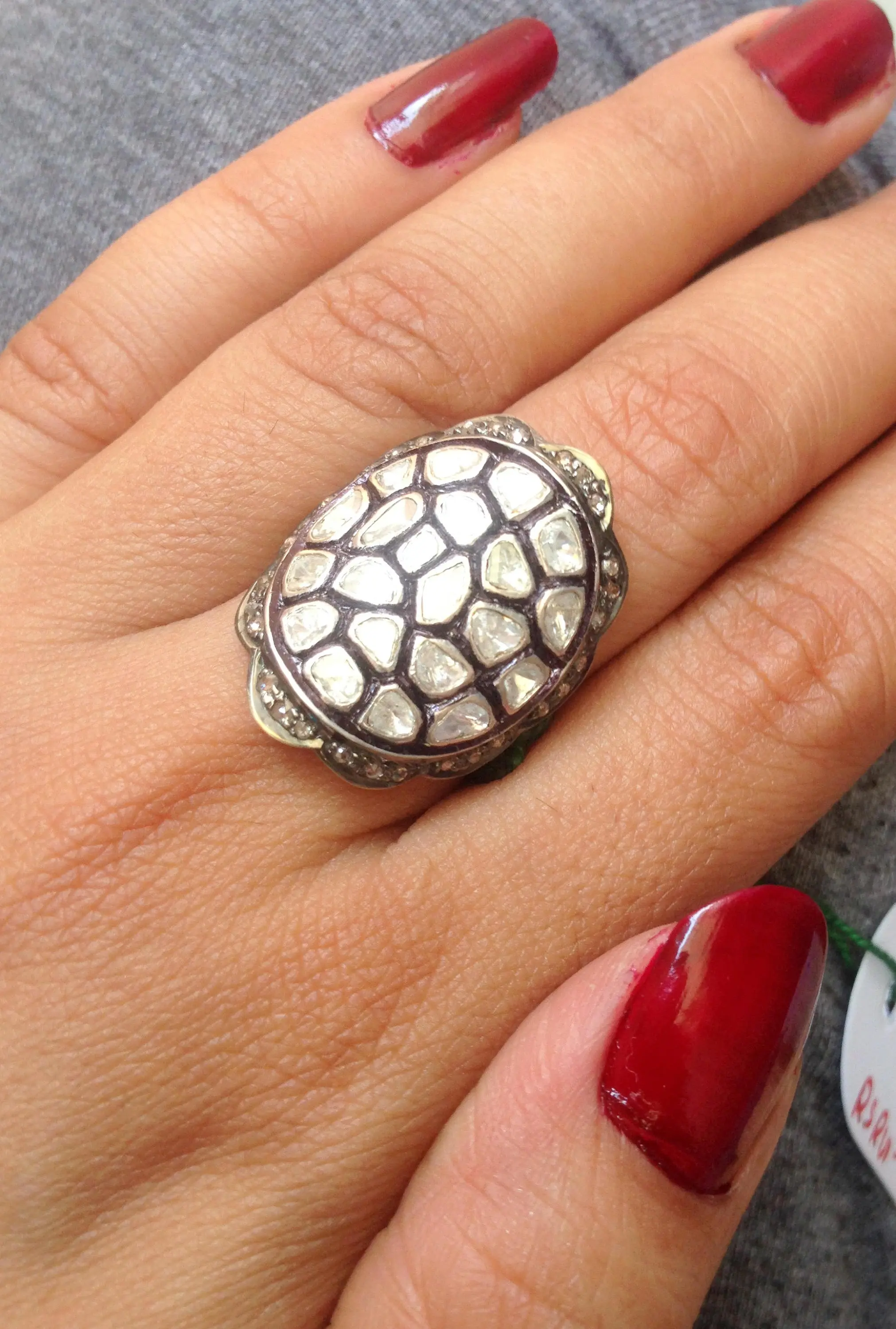 single solitaire hand cut diamond ring studded with 100% natural Rose cut diamonds in pave set......and black rhodium plated
