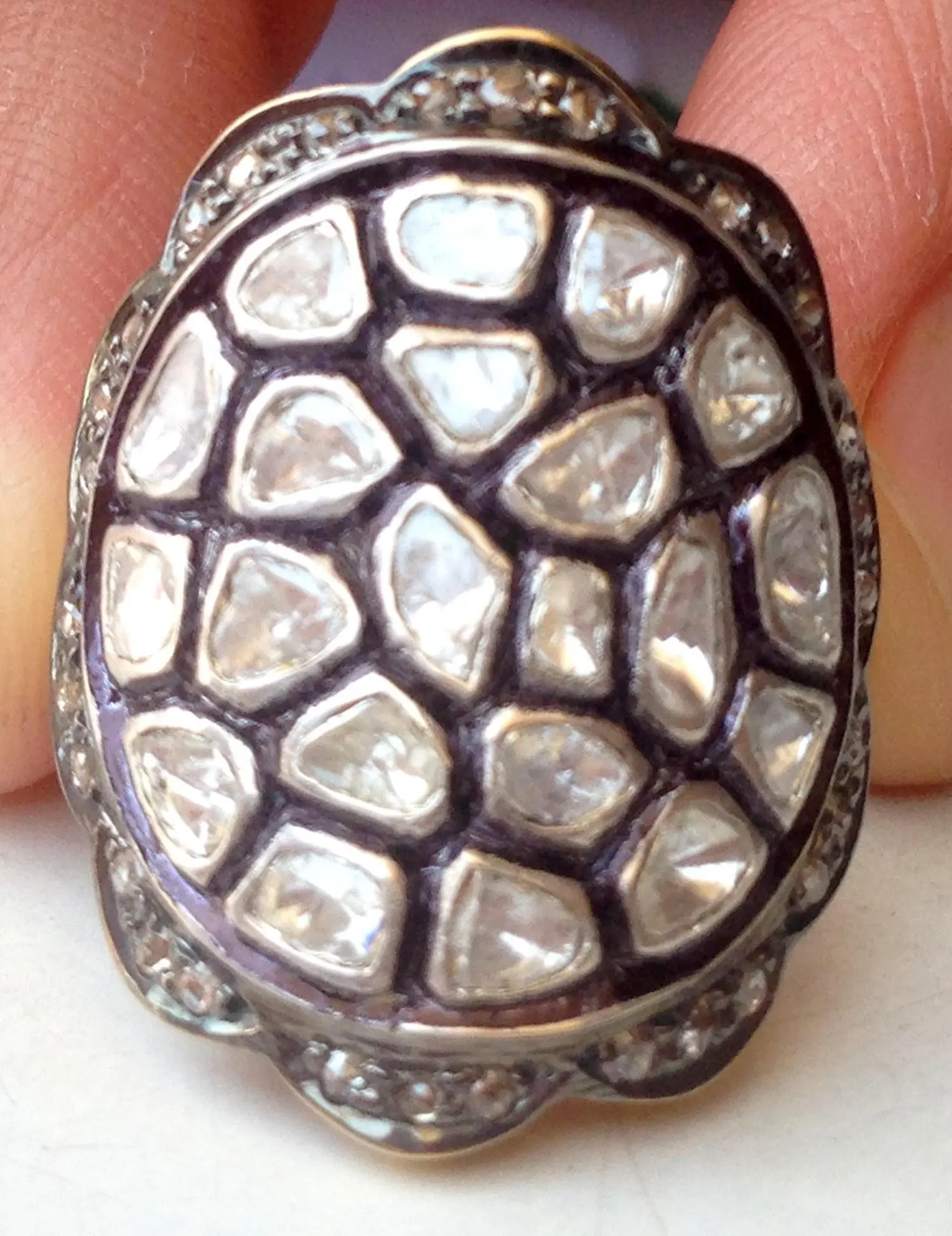 ROSE CUT DIAMONDS, Antique silver ring, Diamonds vintage ring, silver diamond ring,Turtle shape designed top ,Vintage wedding band .