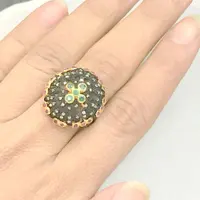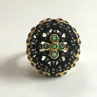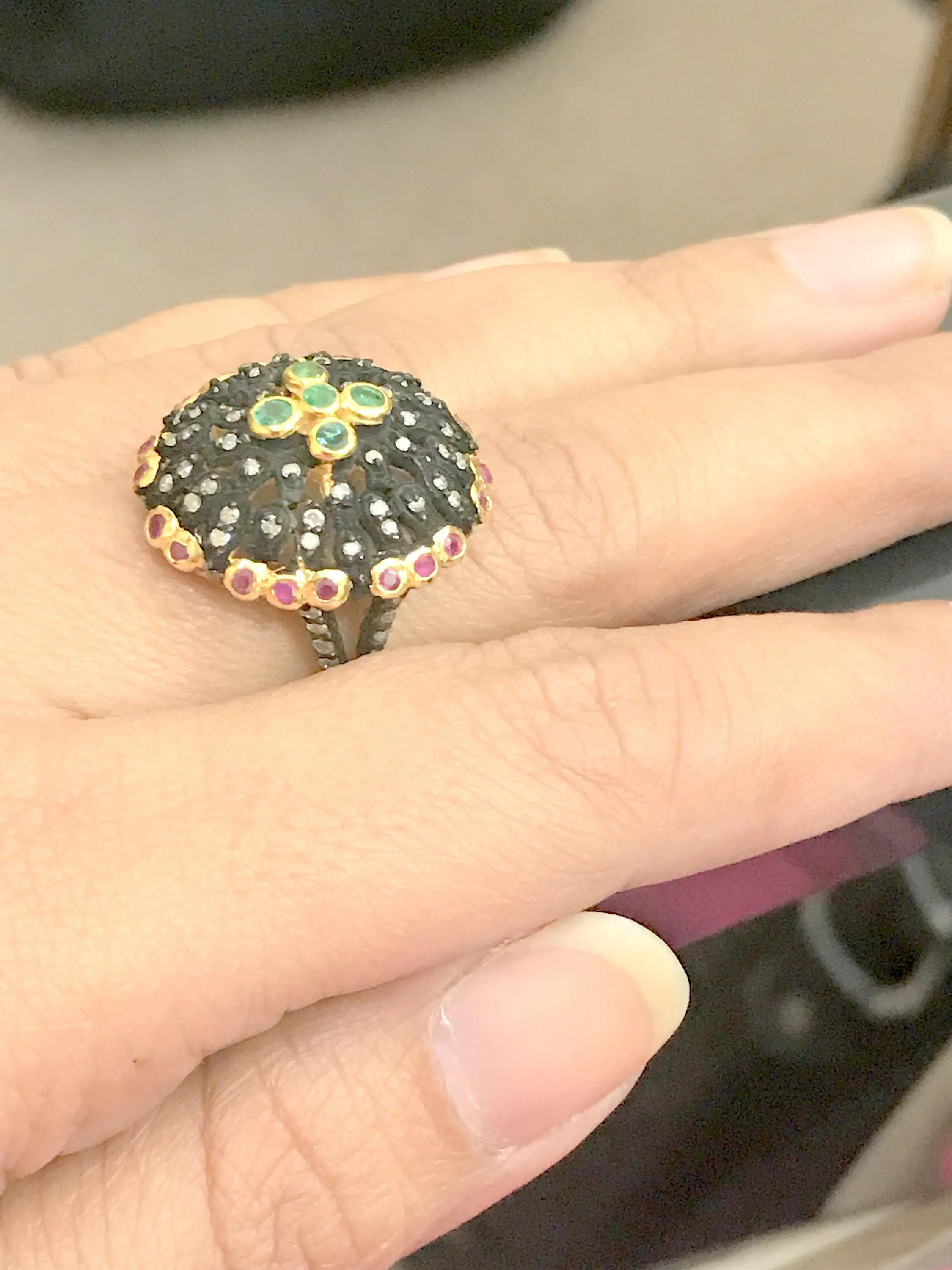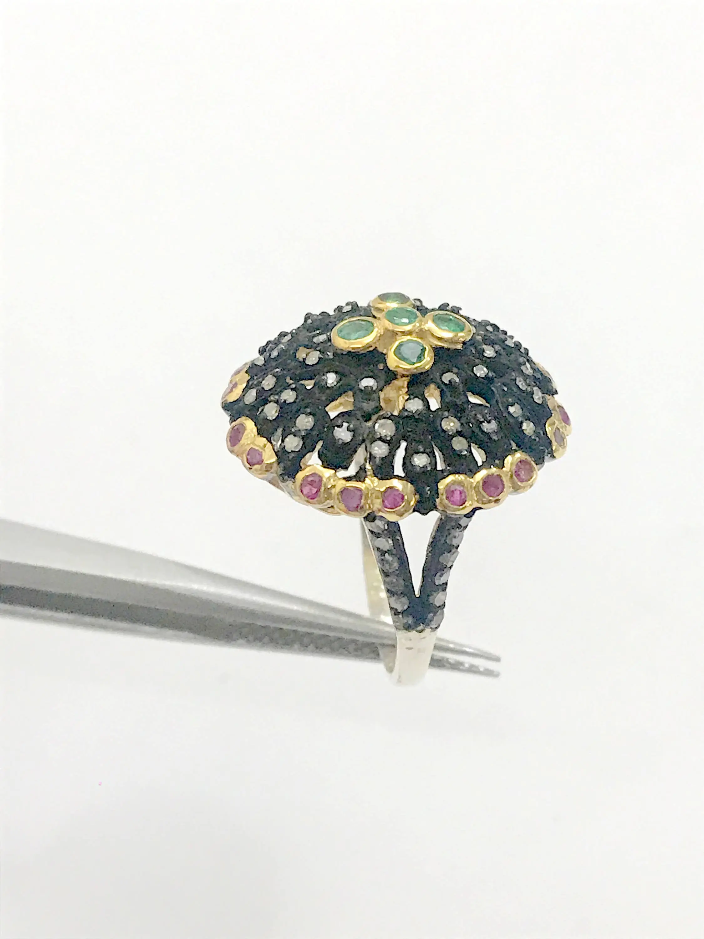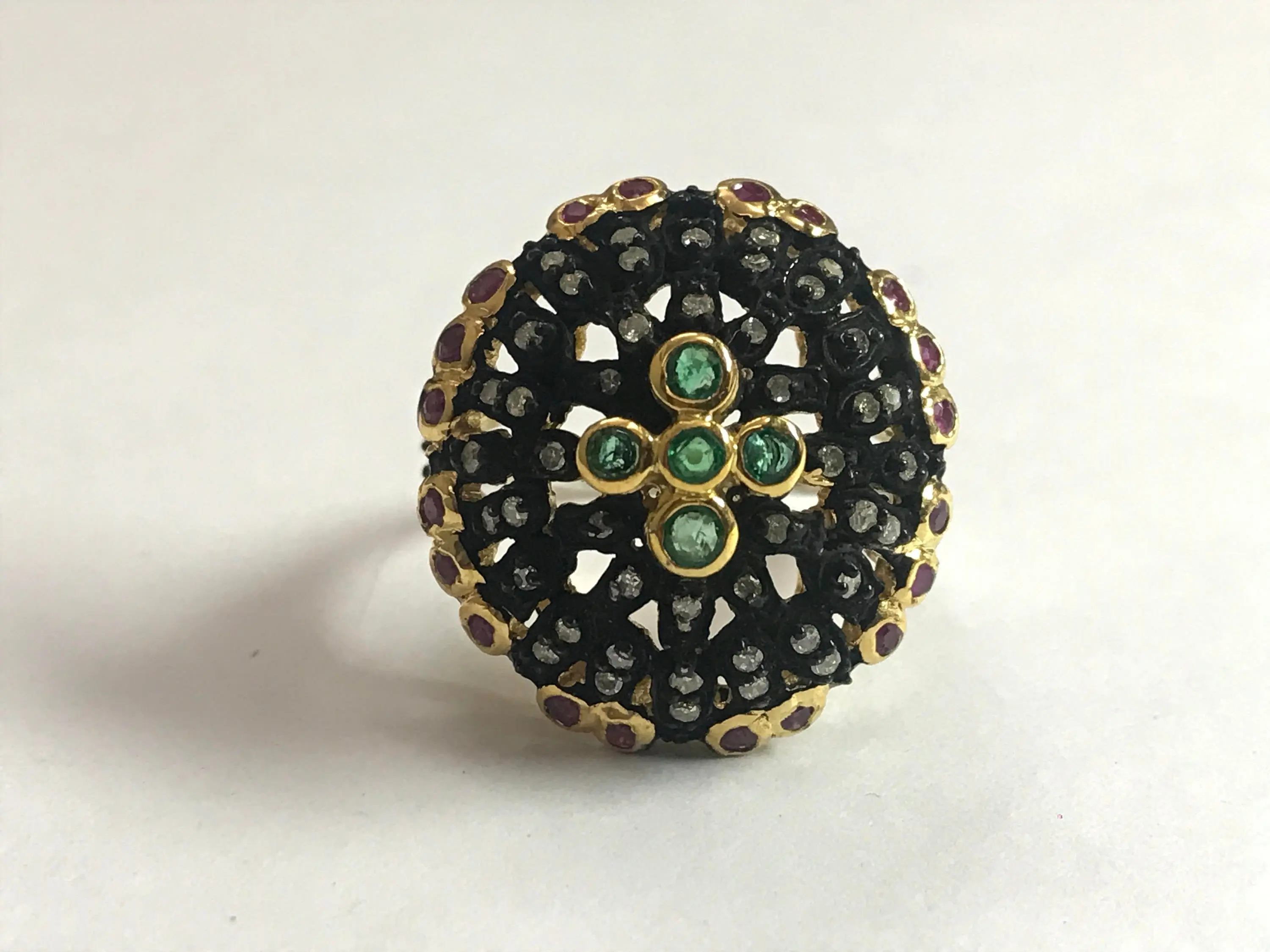 Ethinic and Traditional look ring studded with a lovely round cut natural EMERALD RUBY DIAMOND RING........