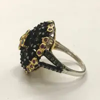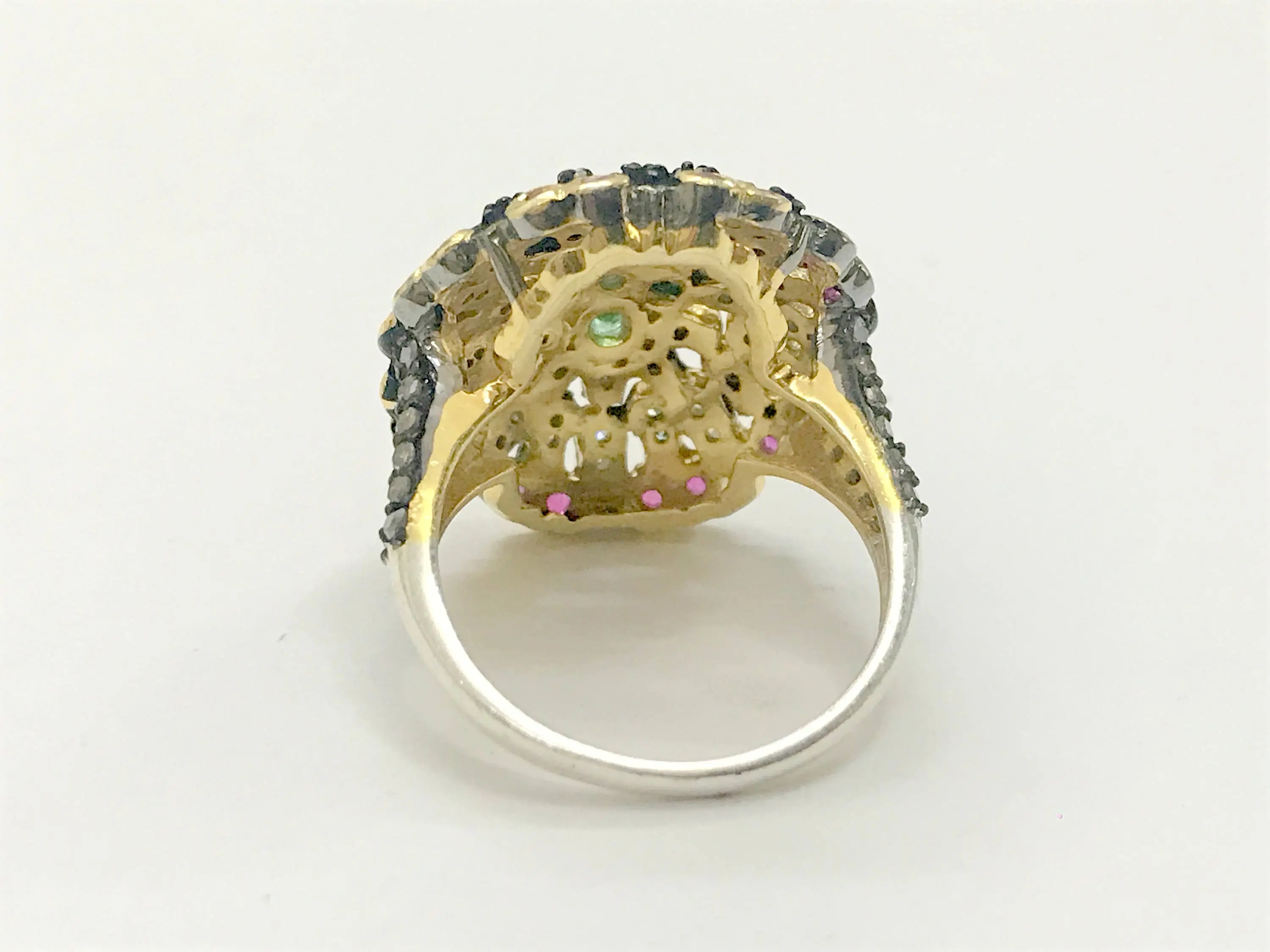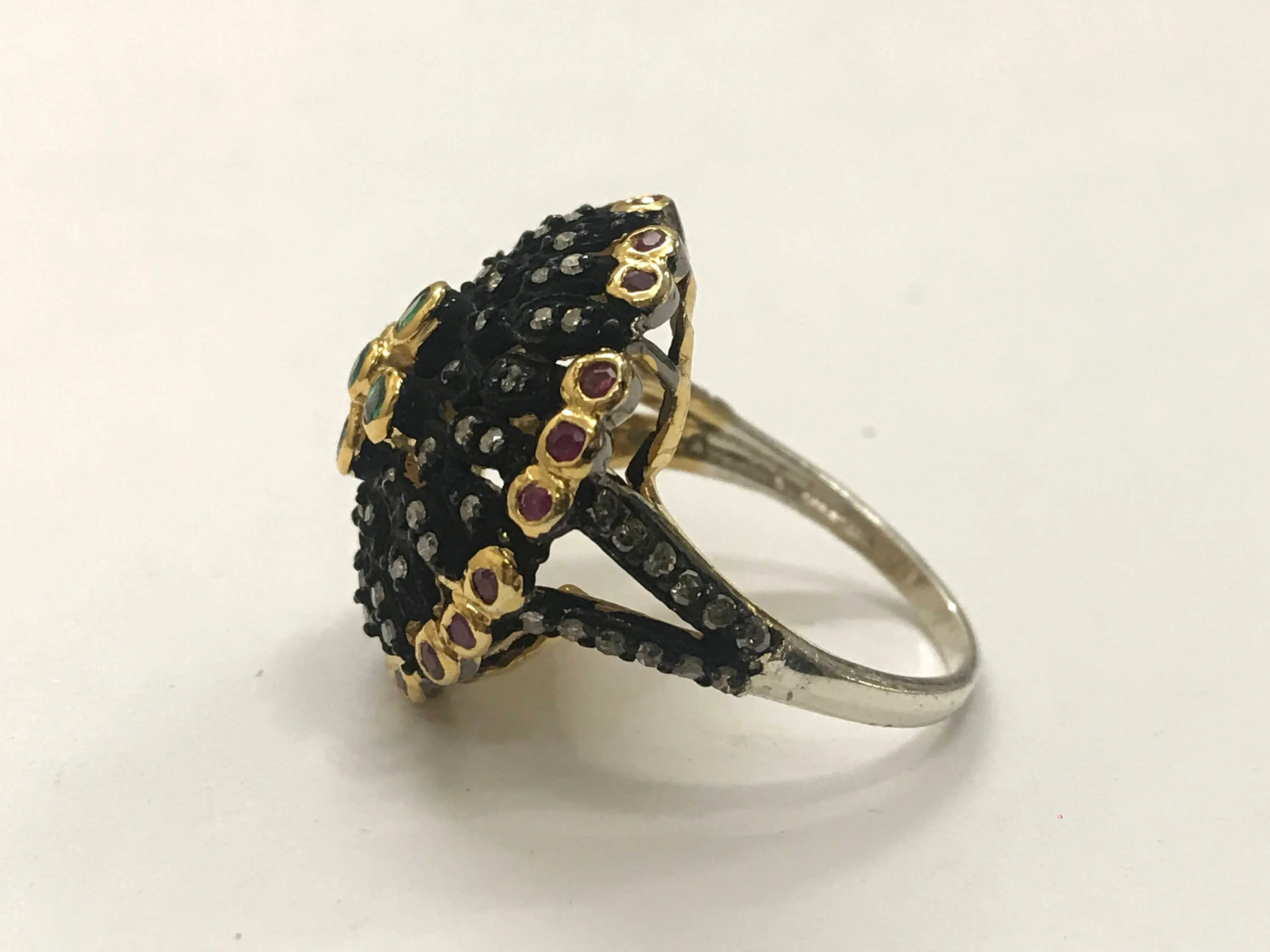 RUBY EMERALD DIAMONDS Antique 925 sterling silver ring, vintage style jewellery , multistone ring , gift for love and friendship , christmas gift...
