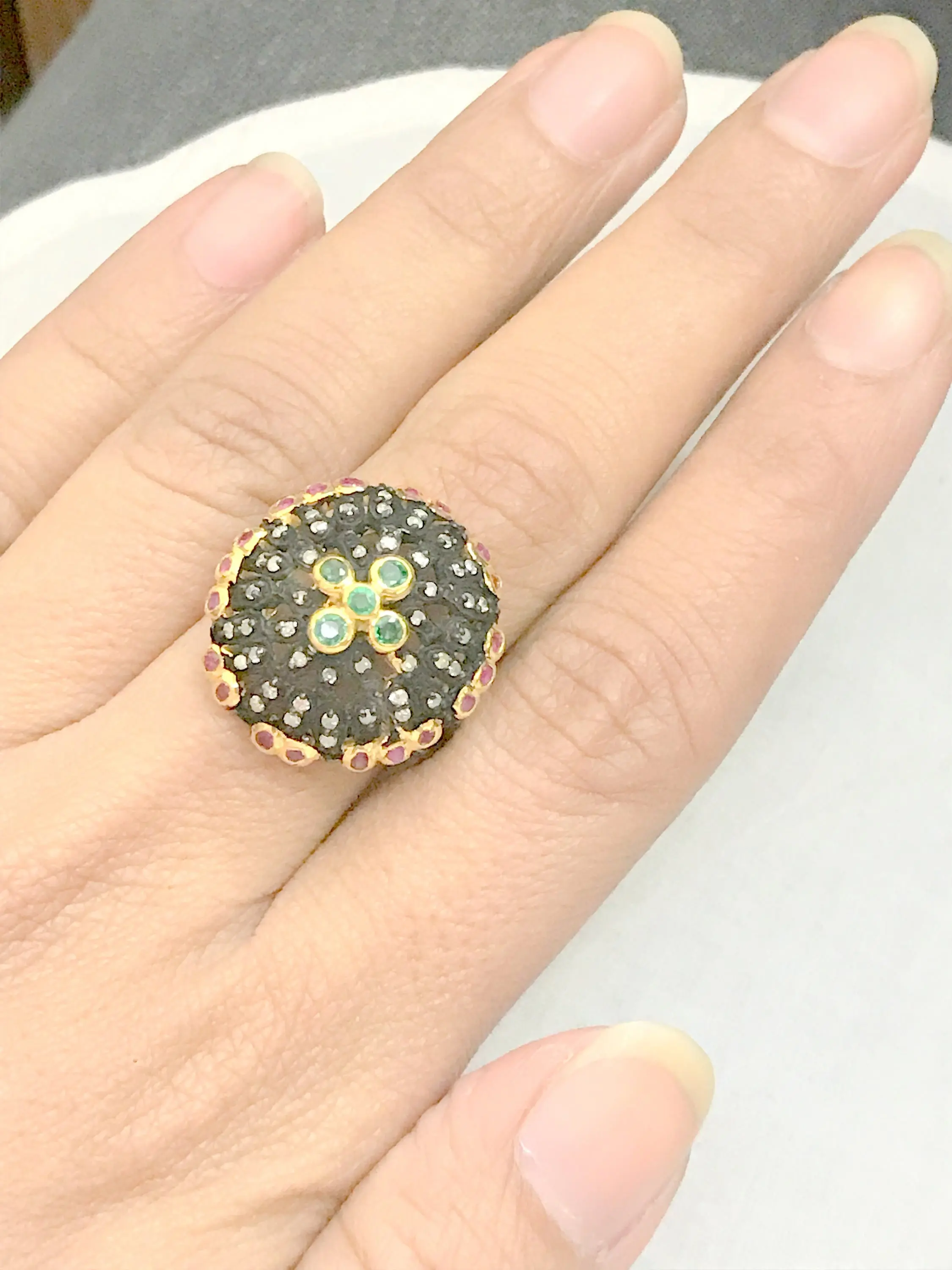 ✦Gemstone: Natural EMERALD , RUBY and Single cut Diamonds