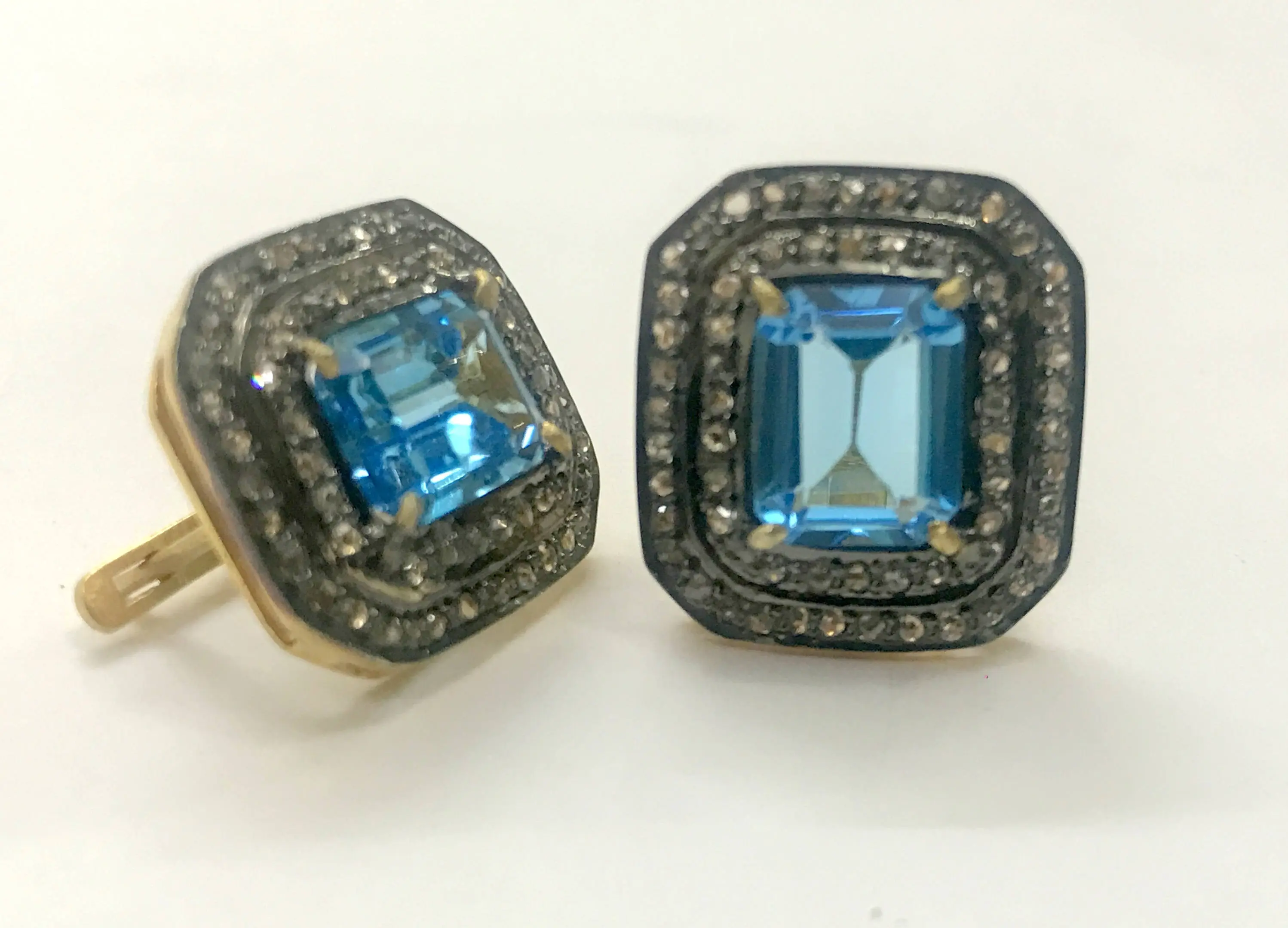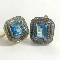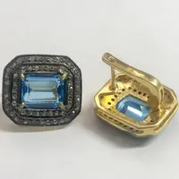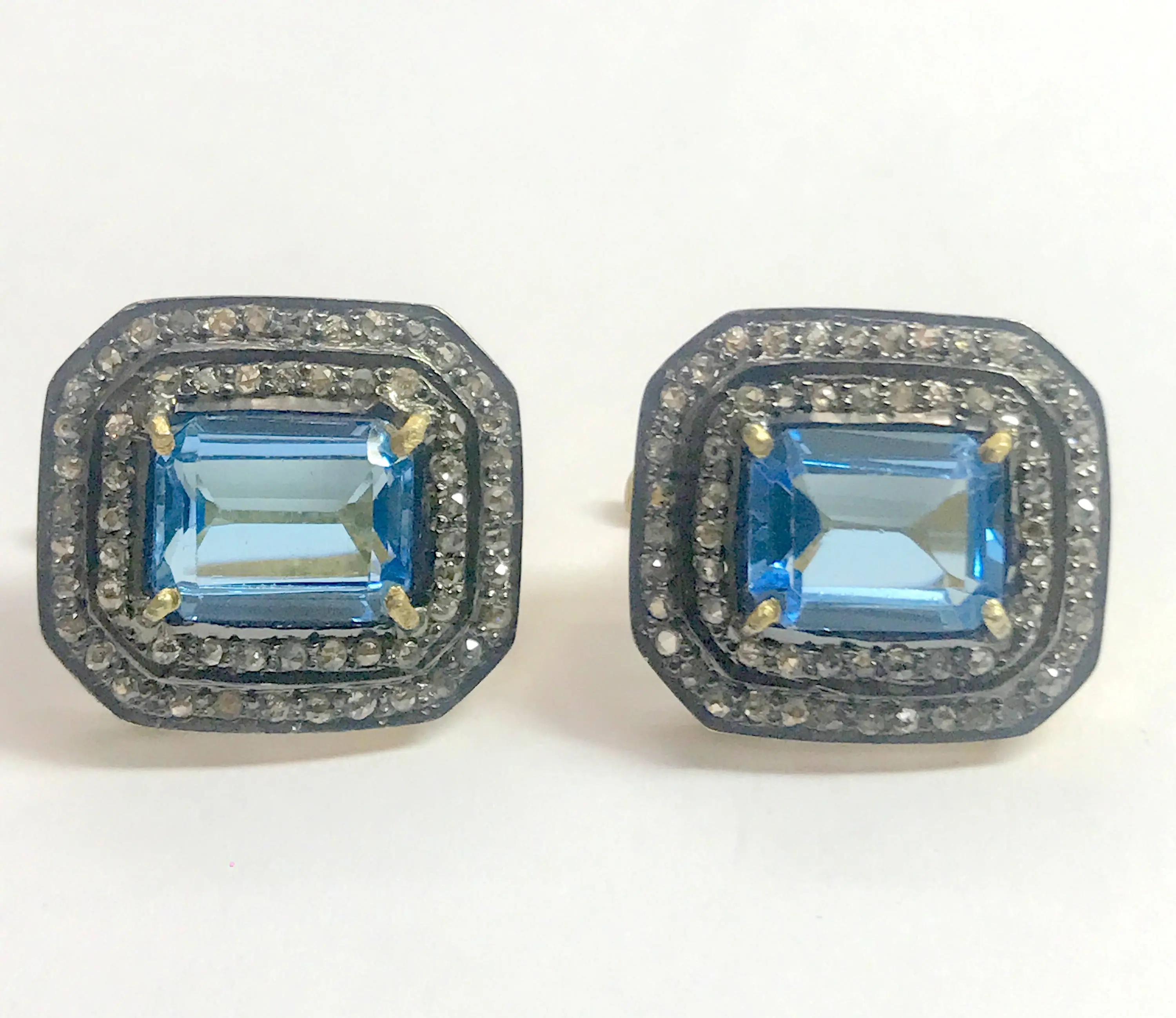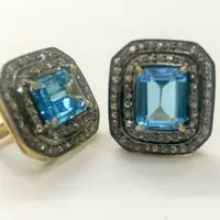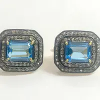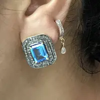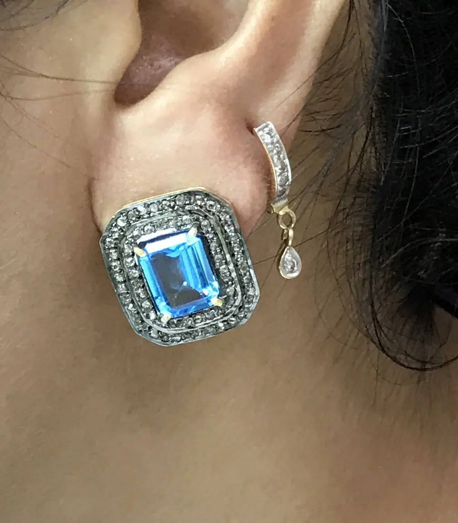 BLUE TOPAZ DIAMONDS cluster earrings ,Swiss blue topaz octogon shape earrings in 925 sterling silver ,Swiss B.T. evening party wear