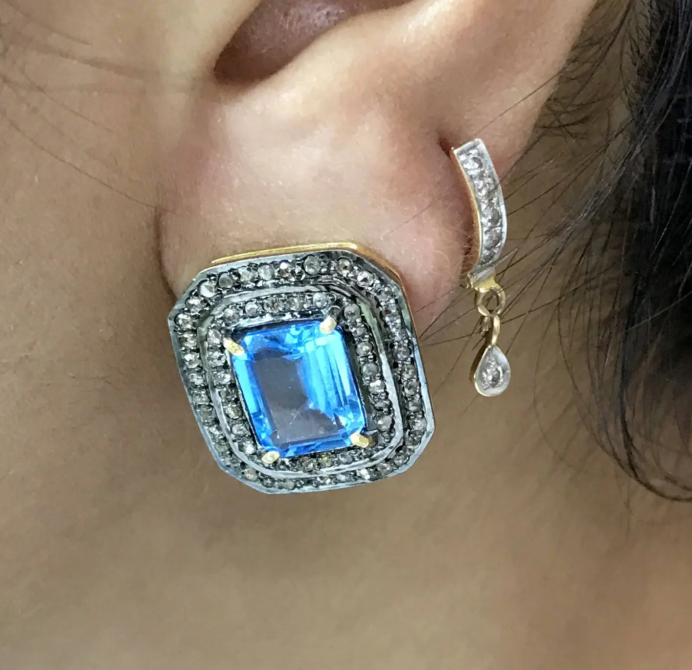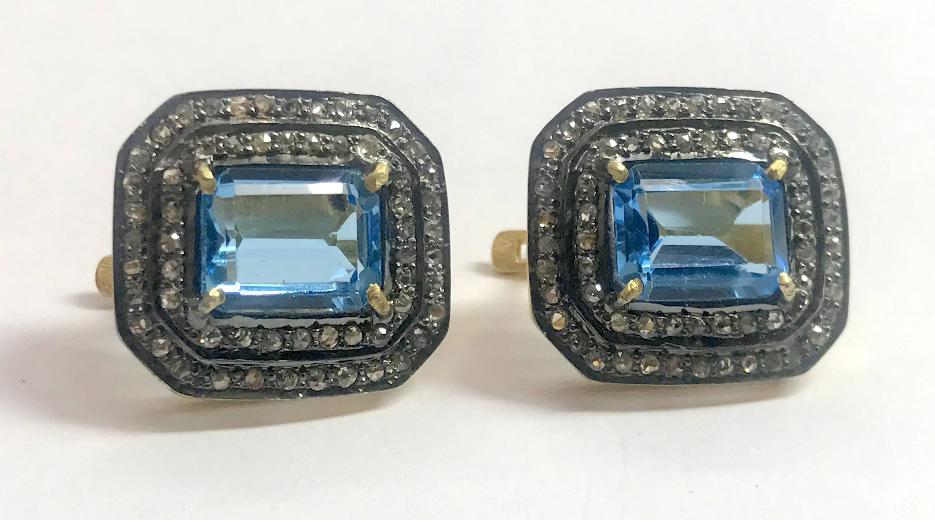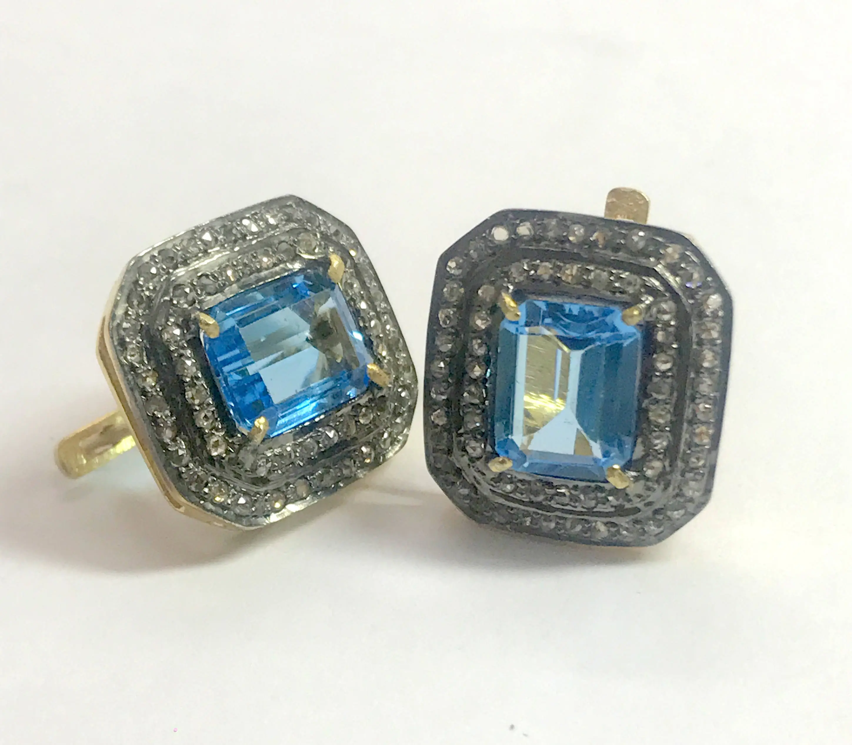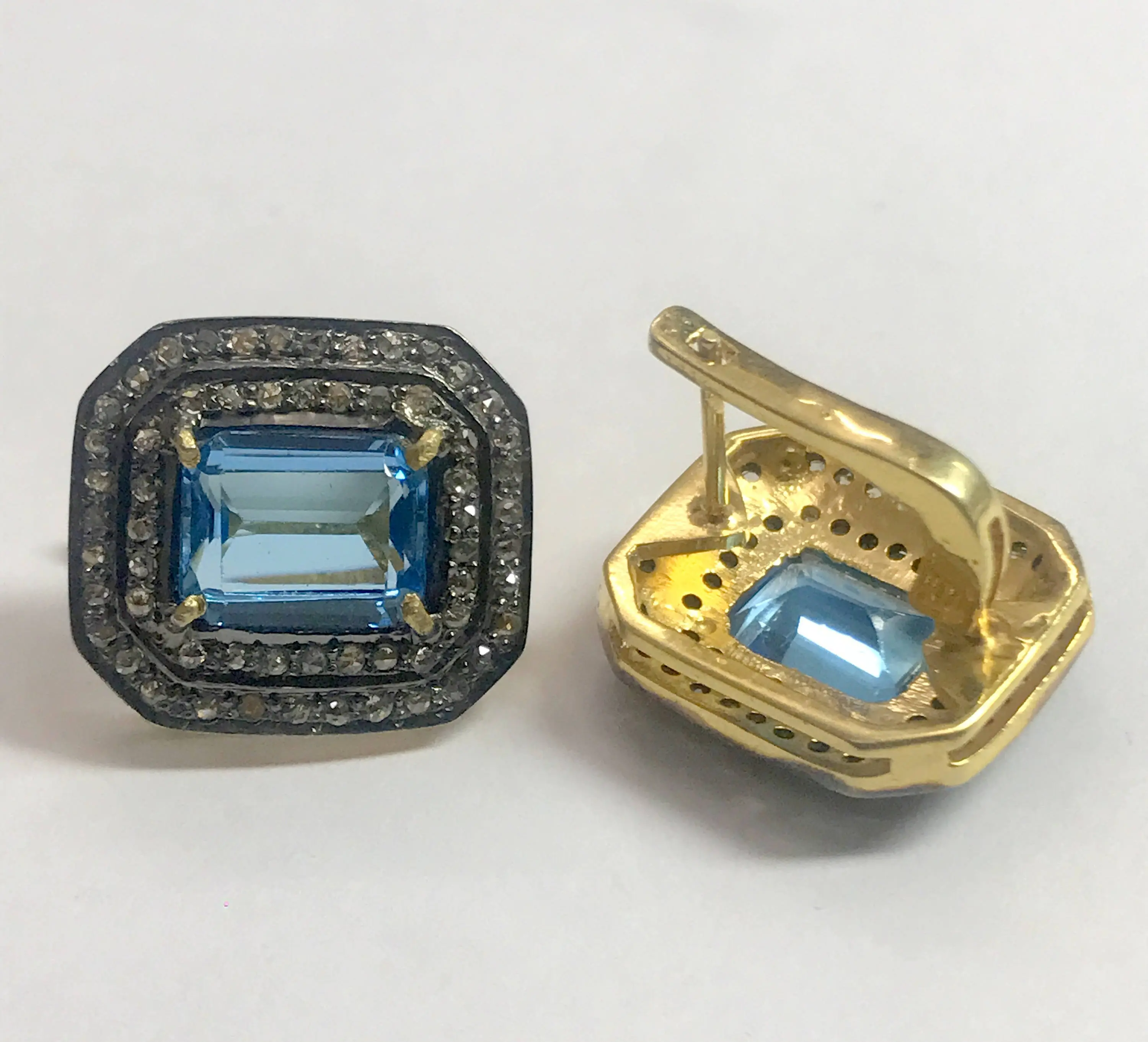 BLUE TOPAZ DIAMONDS cluster earrings ,Swiss blue topaz octogon shape earrings in 925 sterling silver ,Swiss B.T. evening party wear