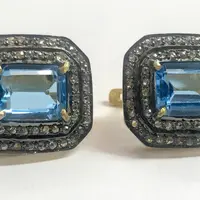 ✦Stone Size: 8 X 10 mm octogon blue topaz and round diamonds