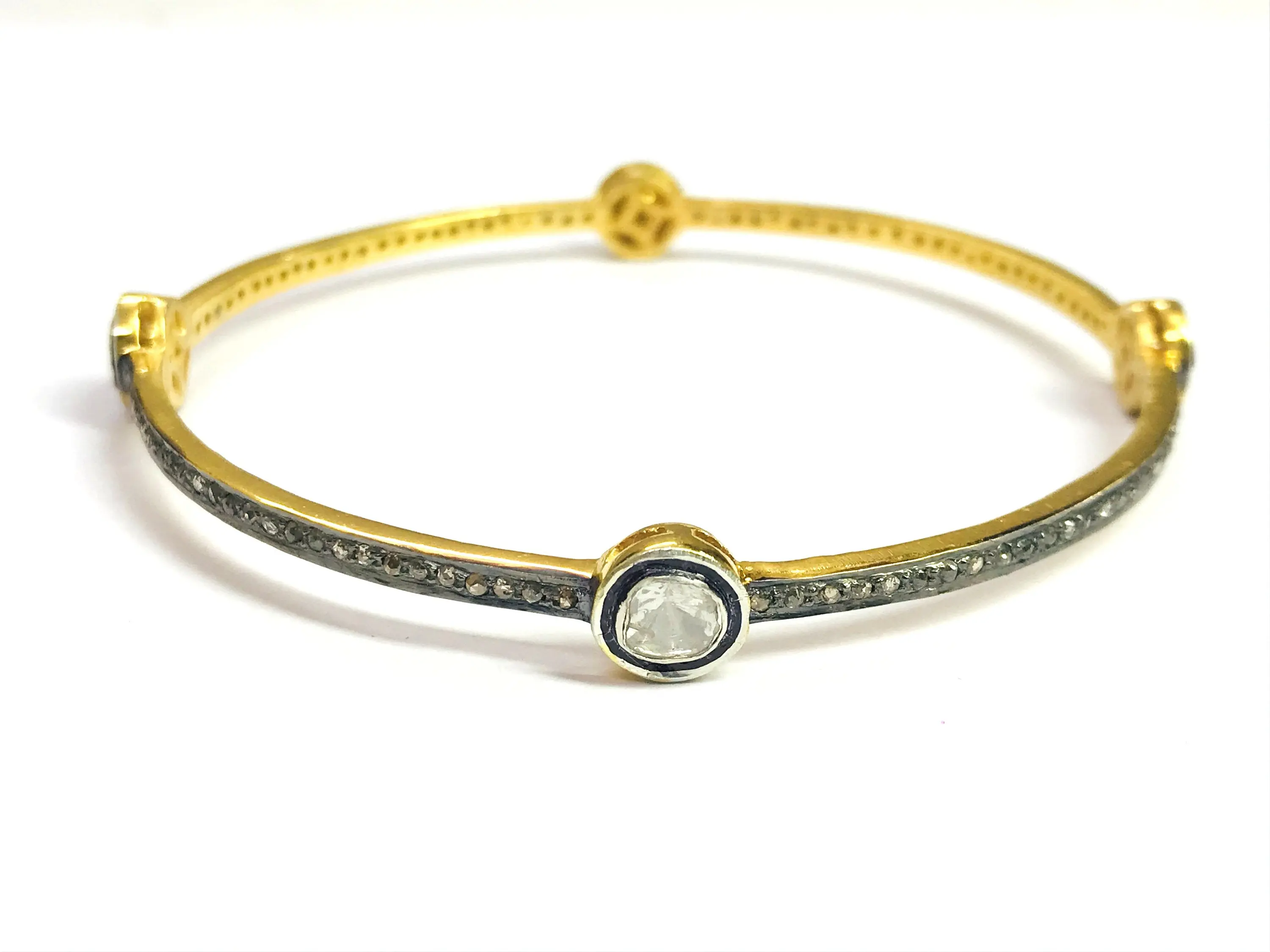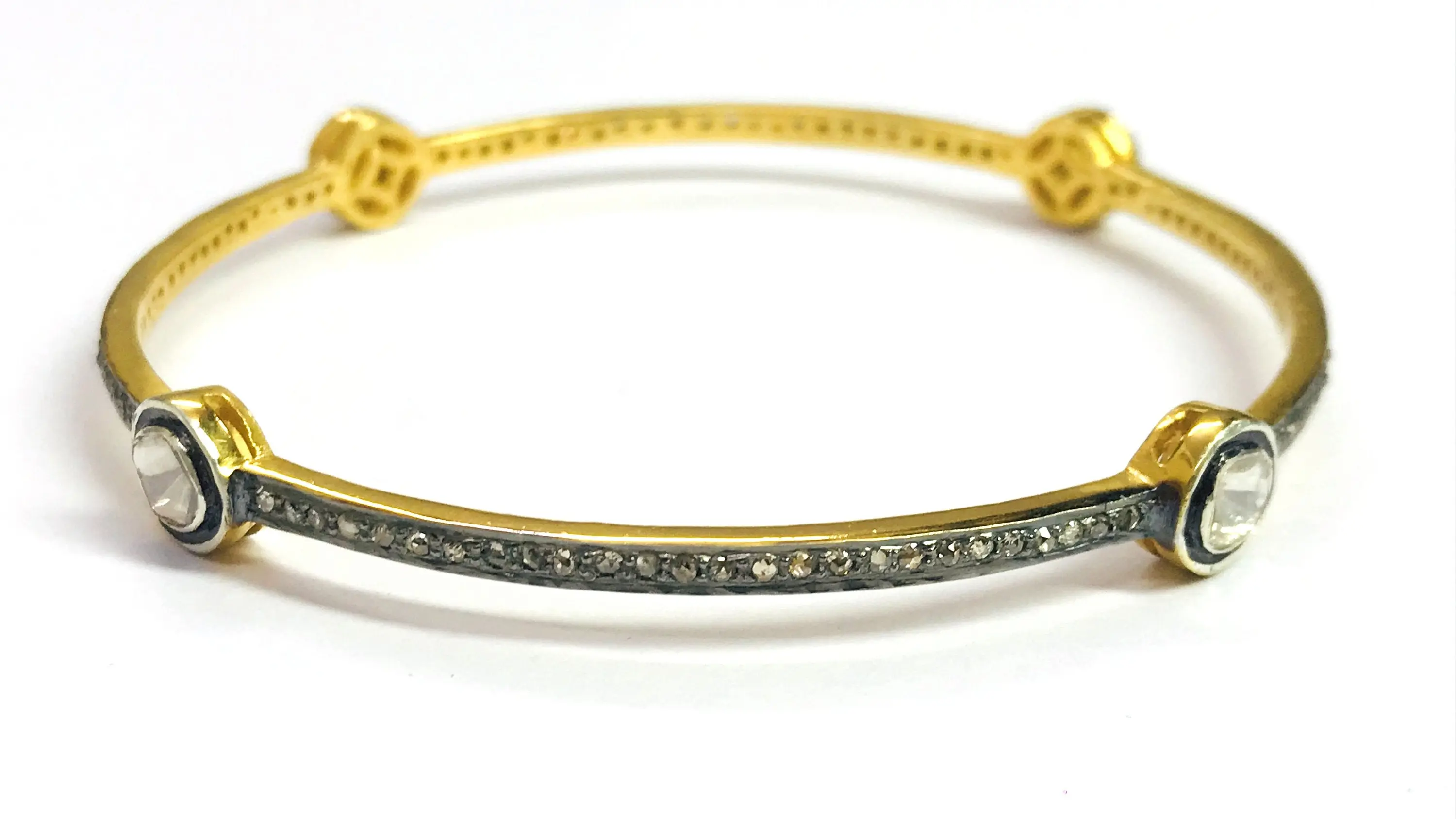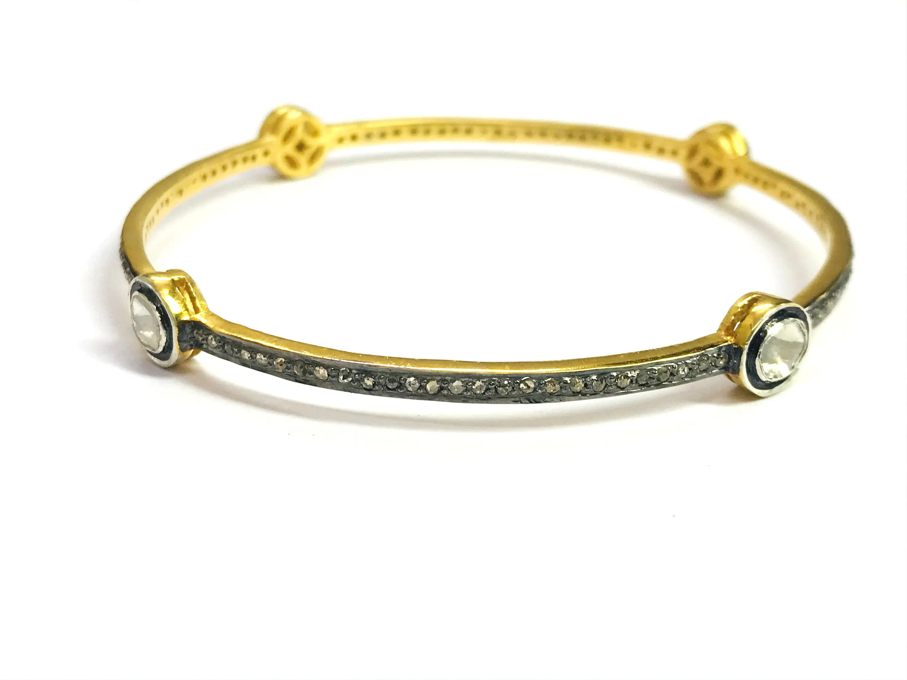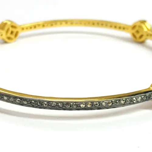 ROSE CUT DIAMONDS -bezel set Diamond Bangle - 925 Sterling Silver - antique diamonds Bangle -black rhodium plated jewelry, Vintage wedding bangle.....