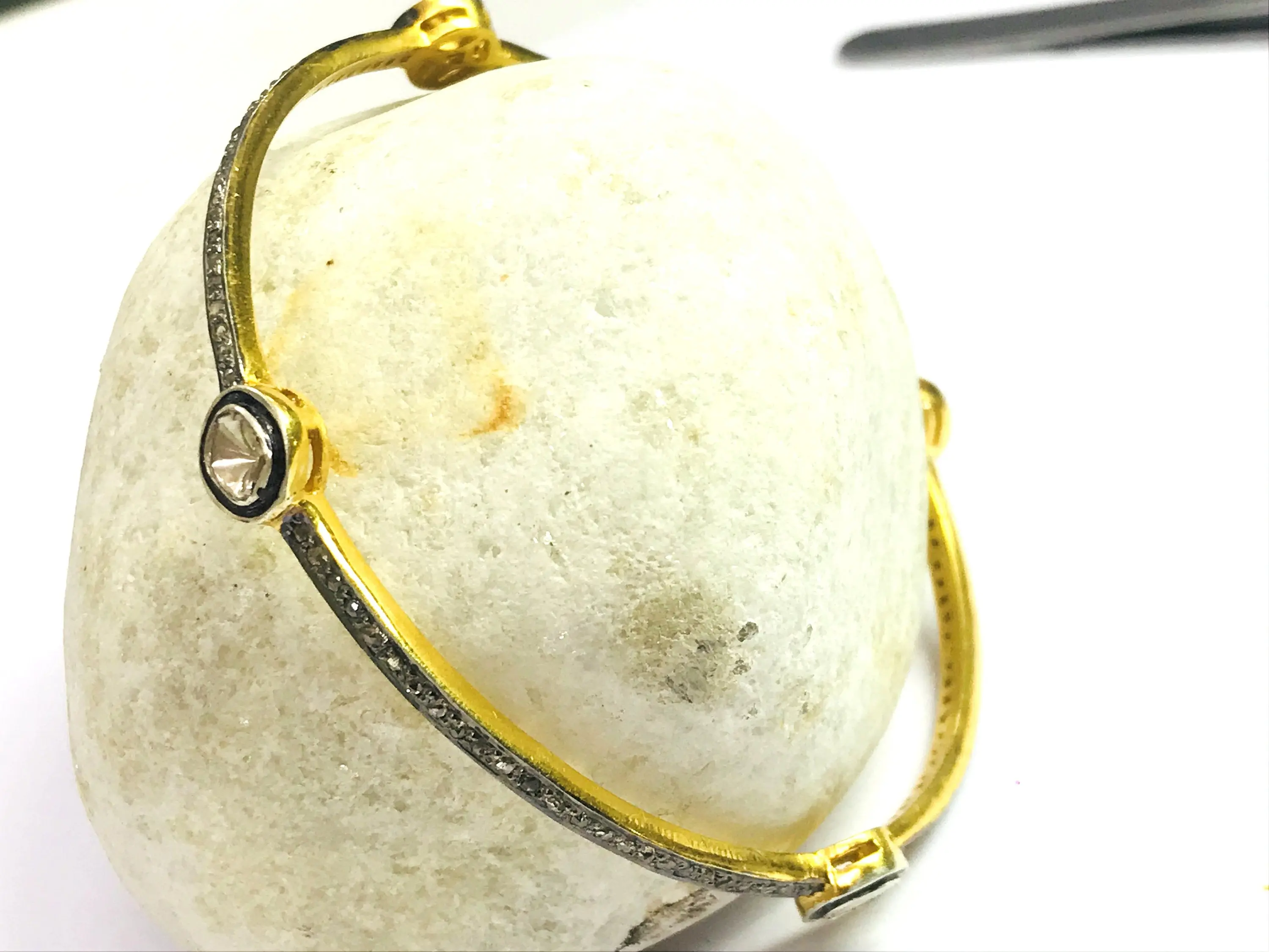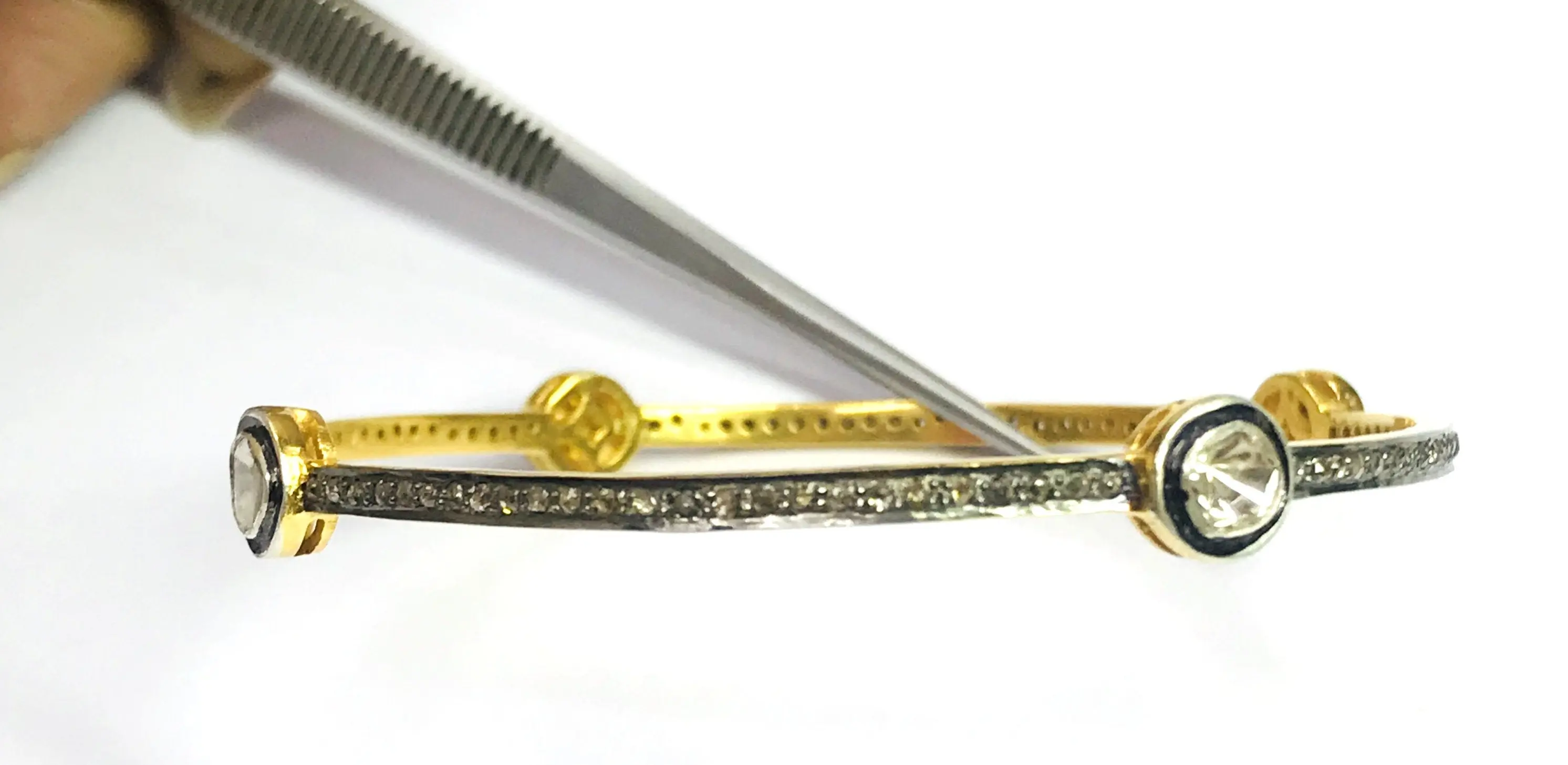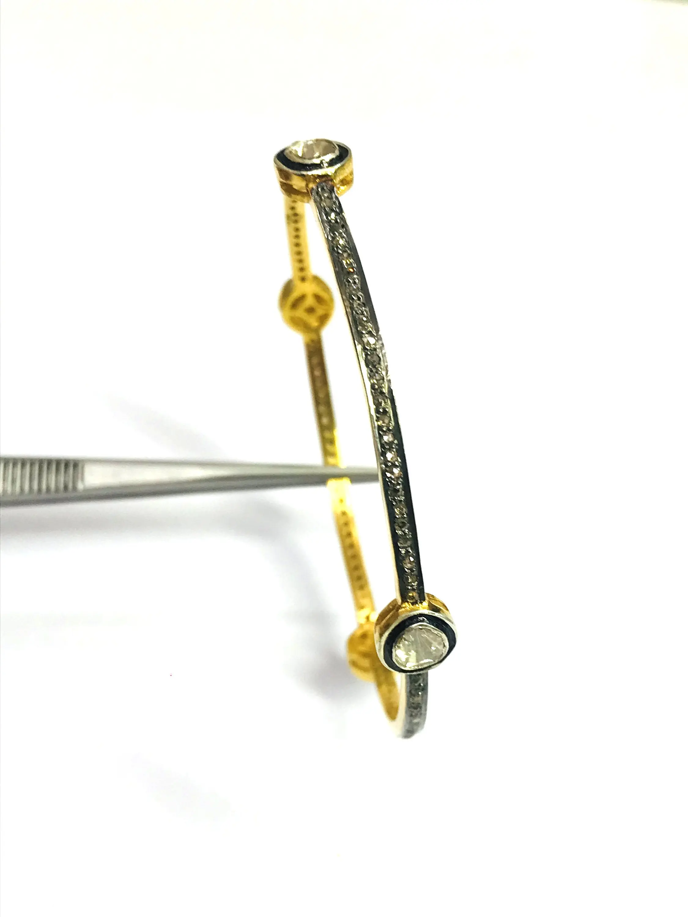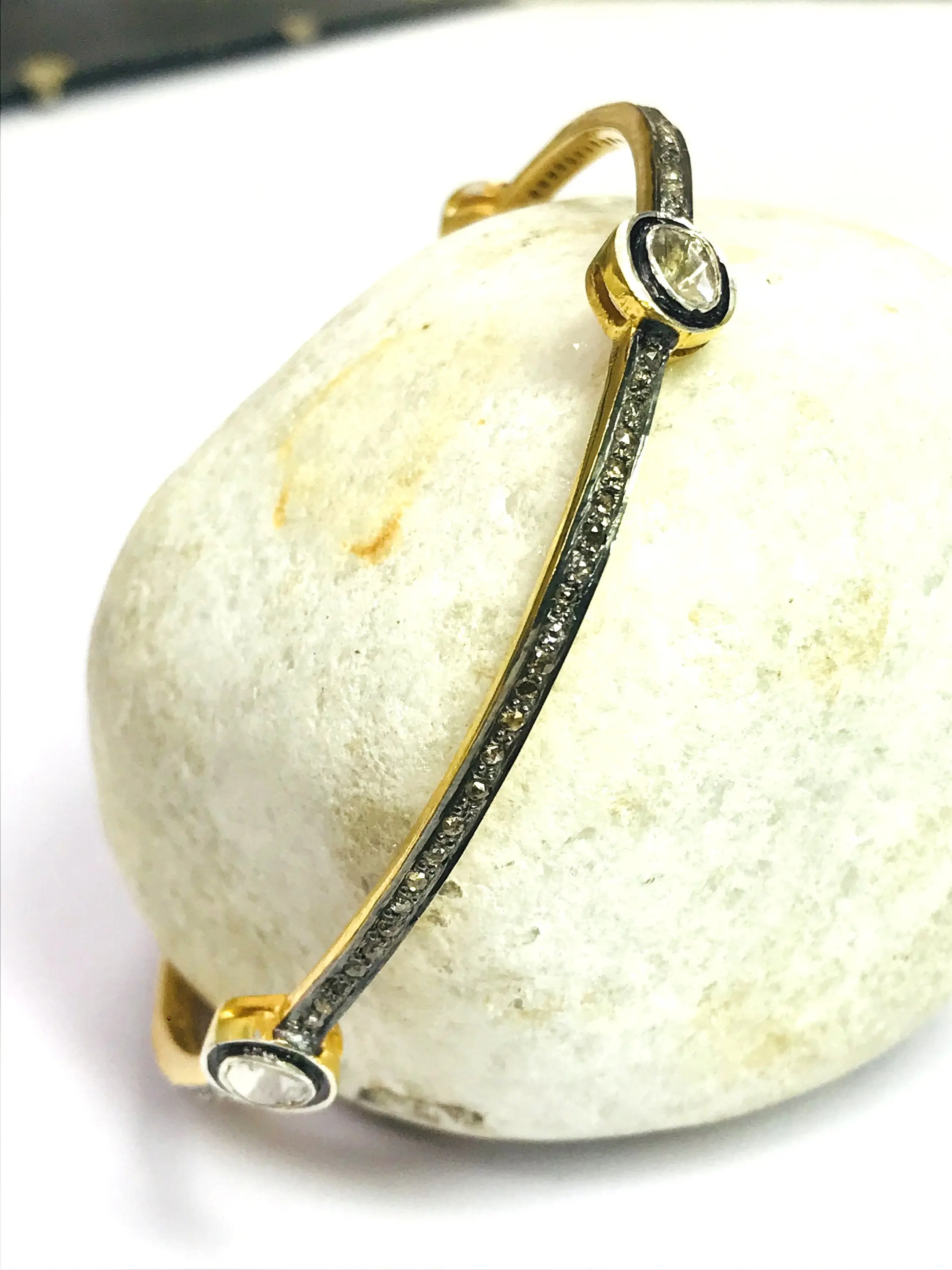 ROSE CUT DIAMONDS -bezel set Diamond Bangle - 925 Sterling Silver - antique diamonds Bangle -black rhodium plated jewelry, Vintage wedding bangle.....