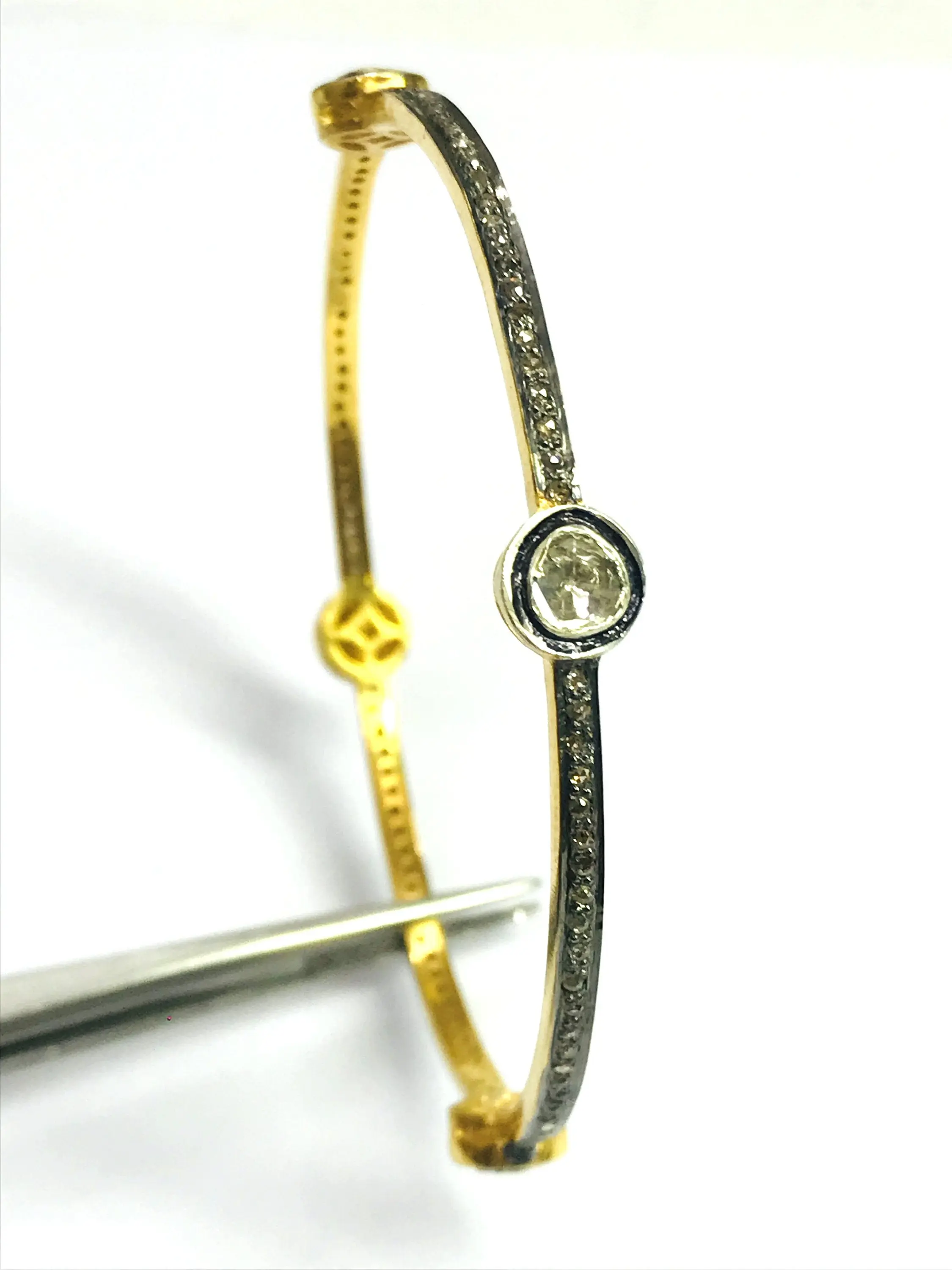 Pave Diamond AAA Quality Diamonds polki Designer Bangle - 925 Sterling Silver - Diamond Bangle with Lock - Size : 2.5 inches..