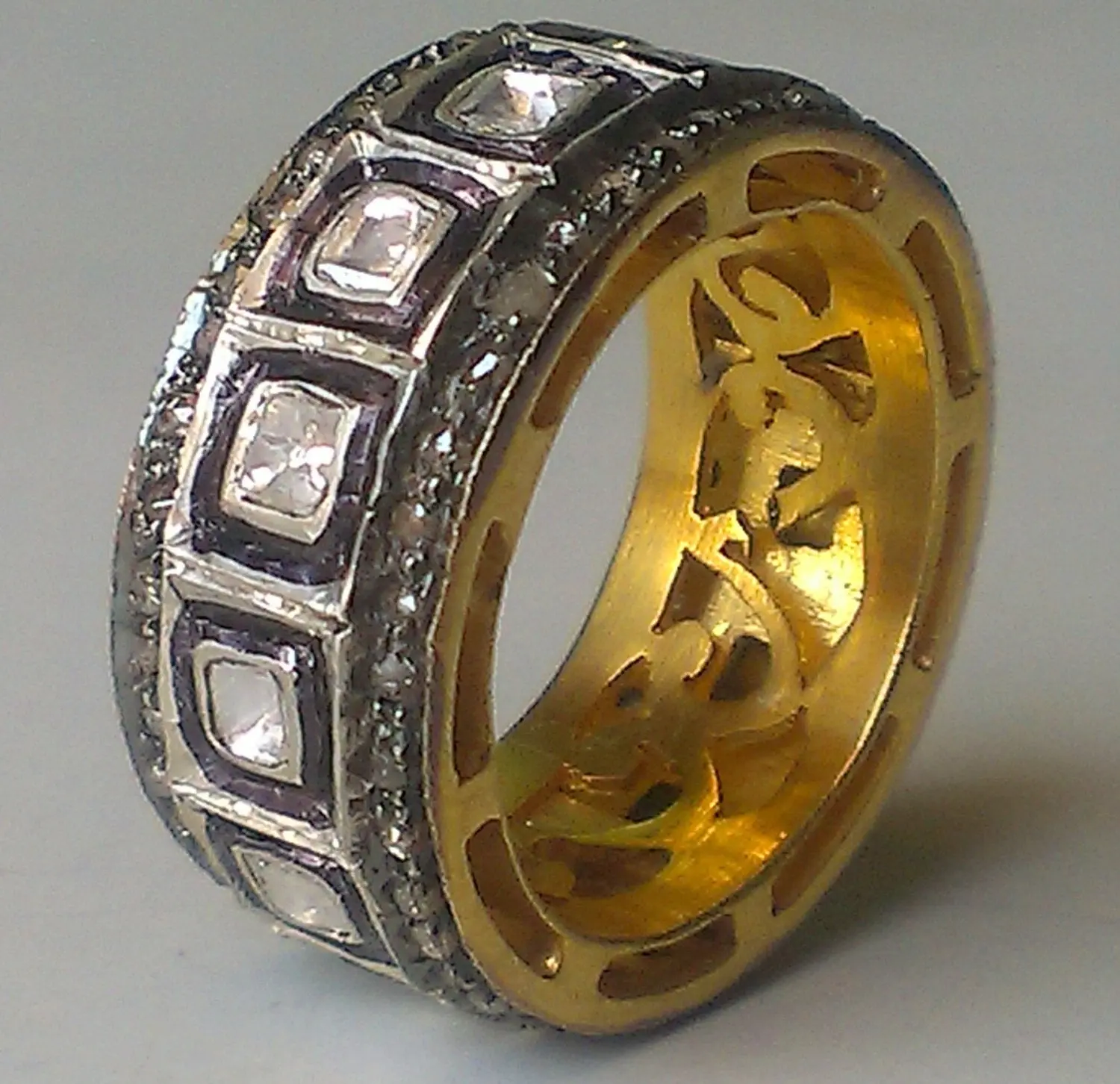 finest handmade art , elegant design , antique style , victorian polki diamonds ring in 925 sterling silver ........