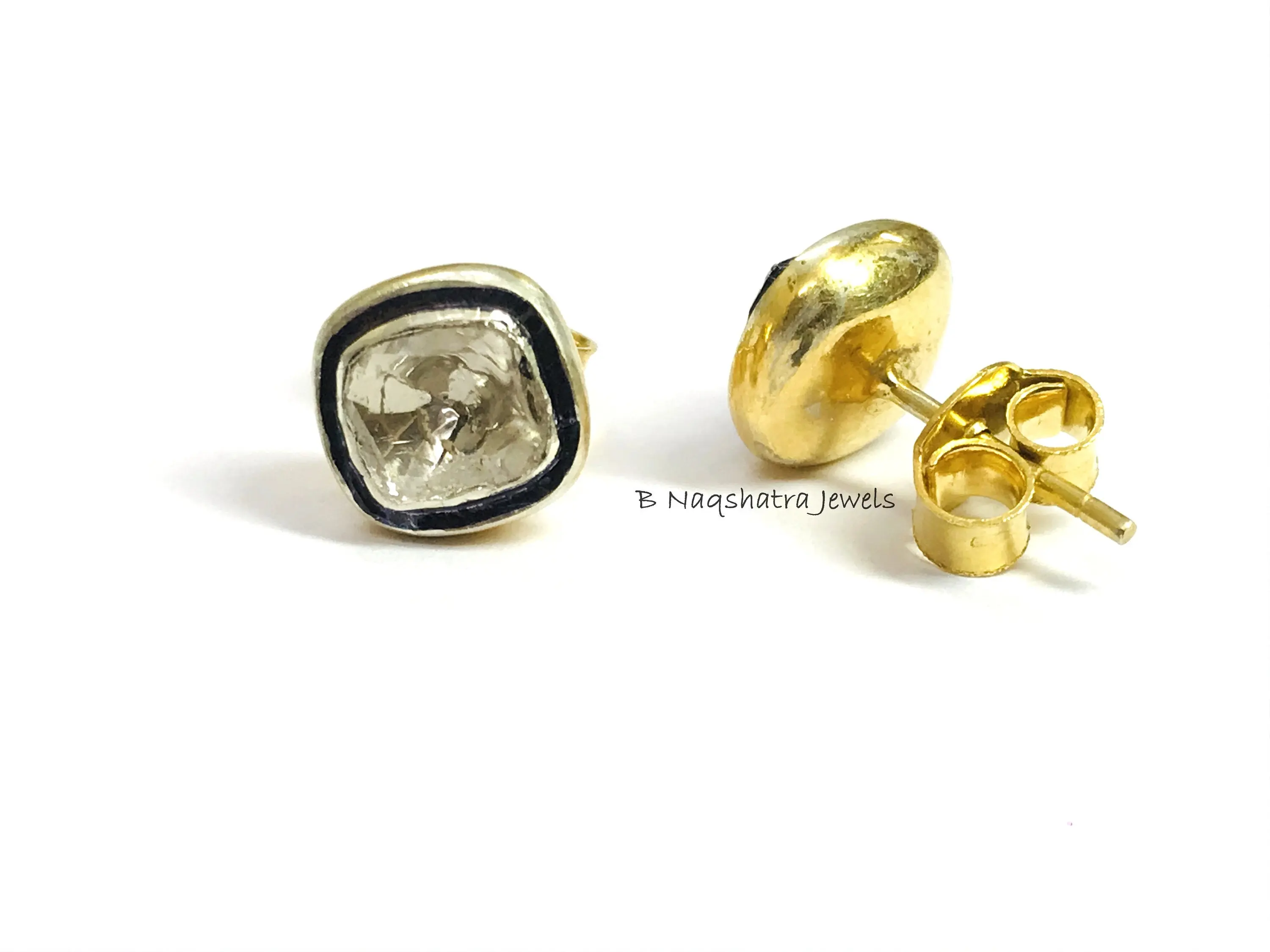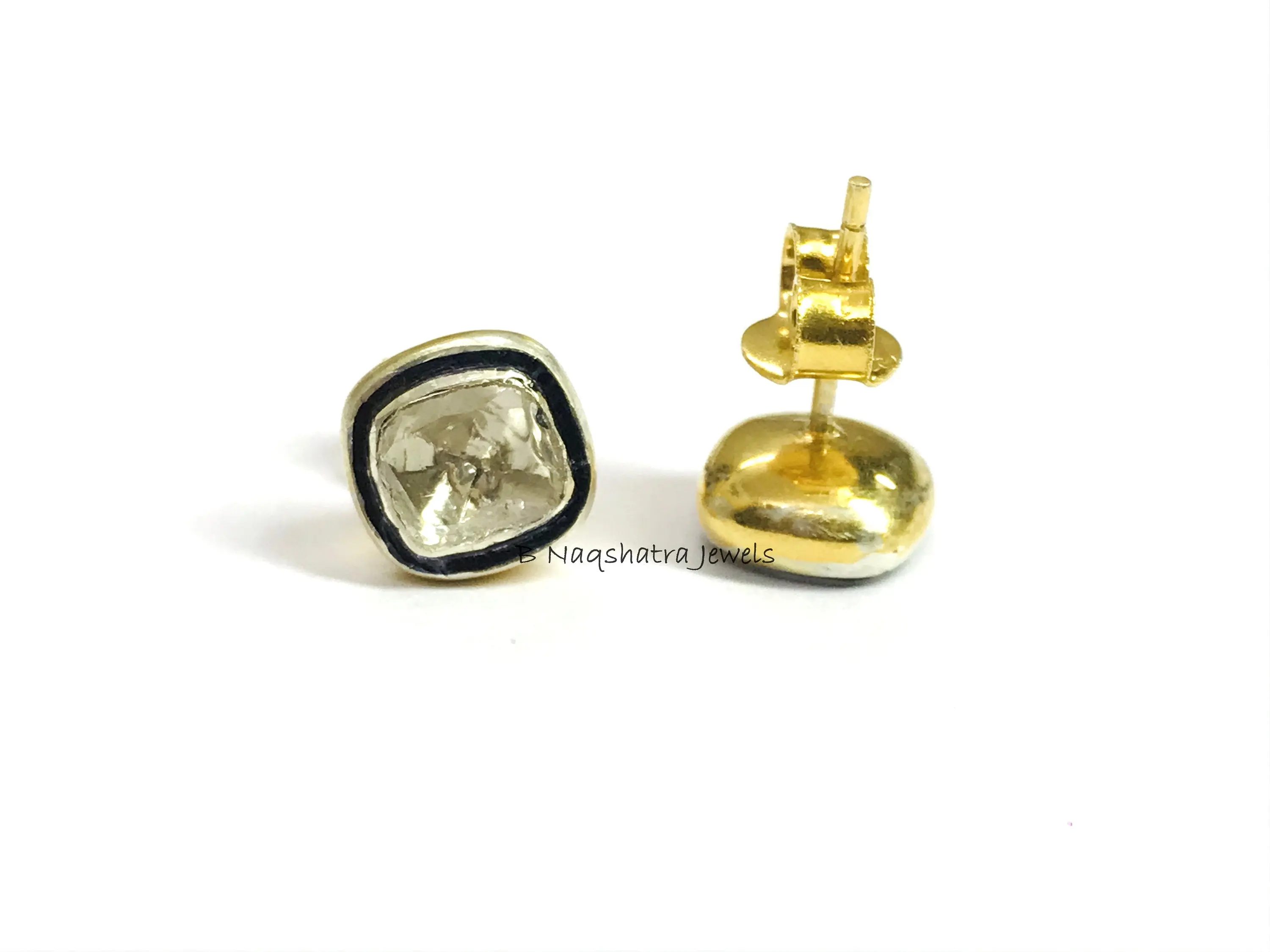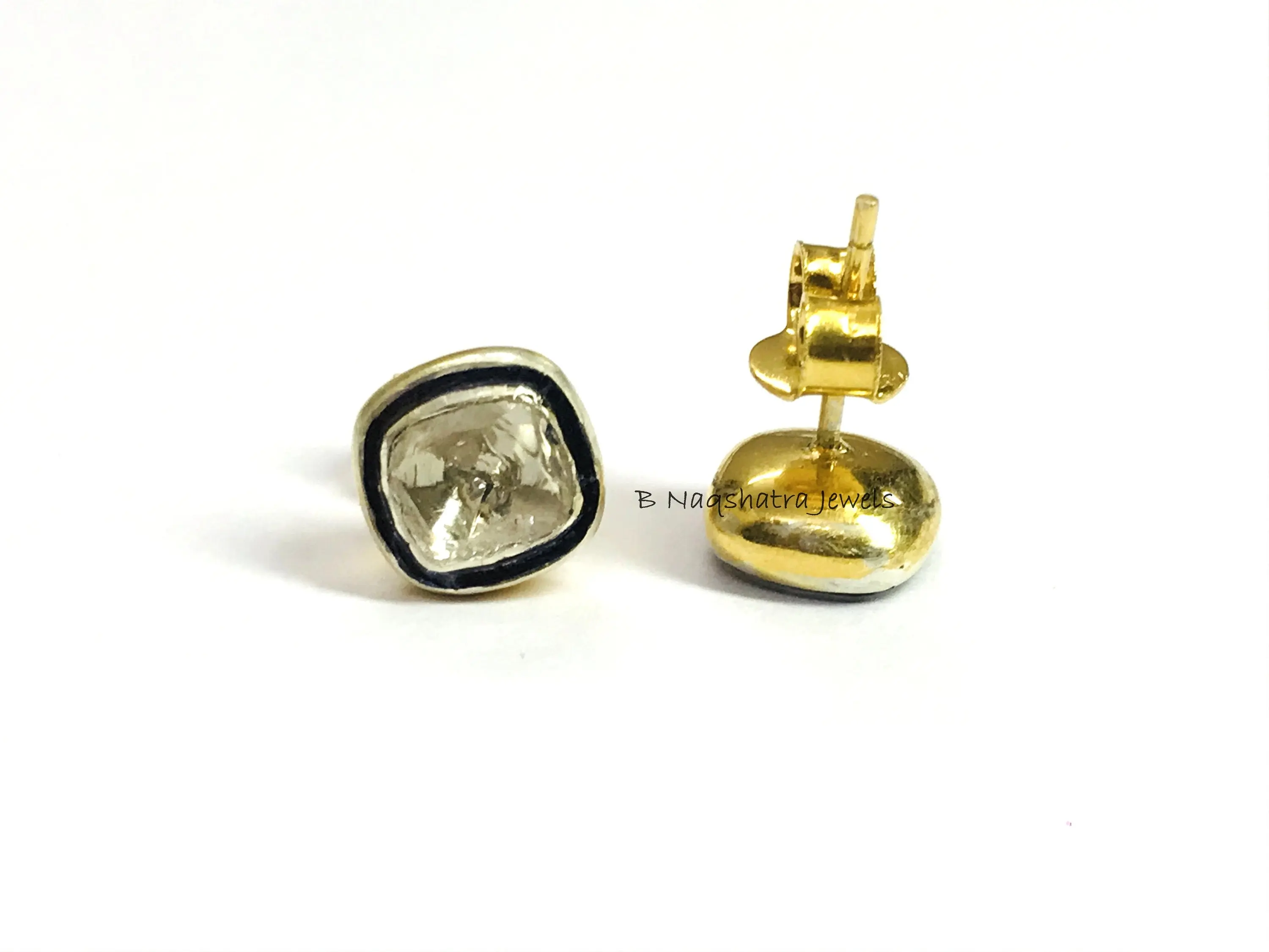 SOLITAIRE DIAMONDS STUD Earrings ,Handmade Fine Jewelry , 0.61 ctwt Polki Diamonds,Antique look ,Wedding Gift , Enhance your Beauty....