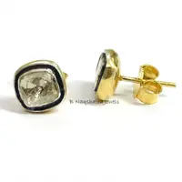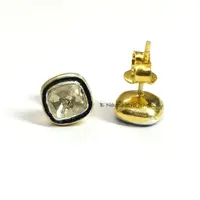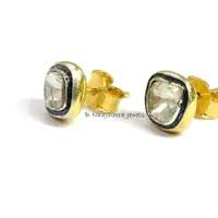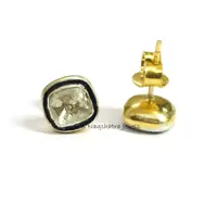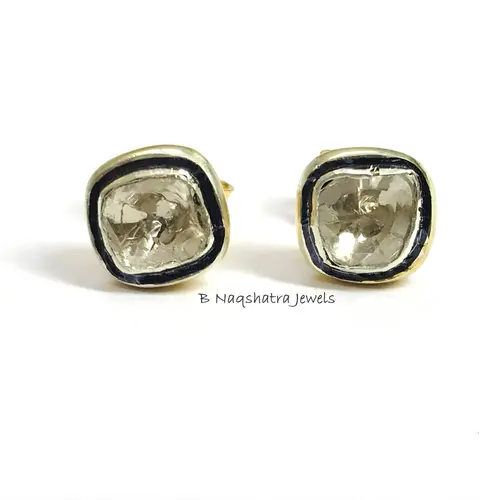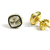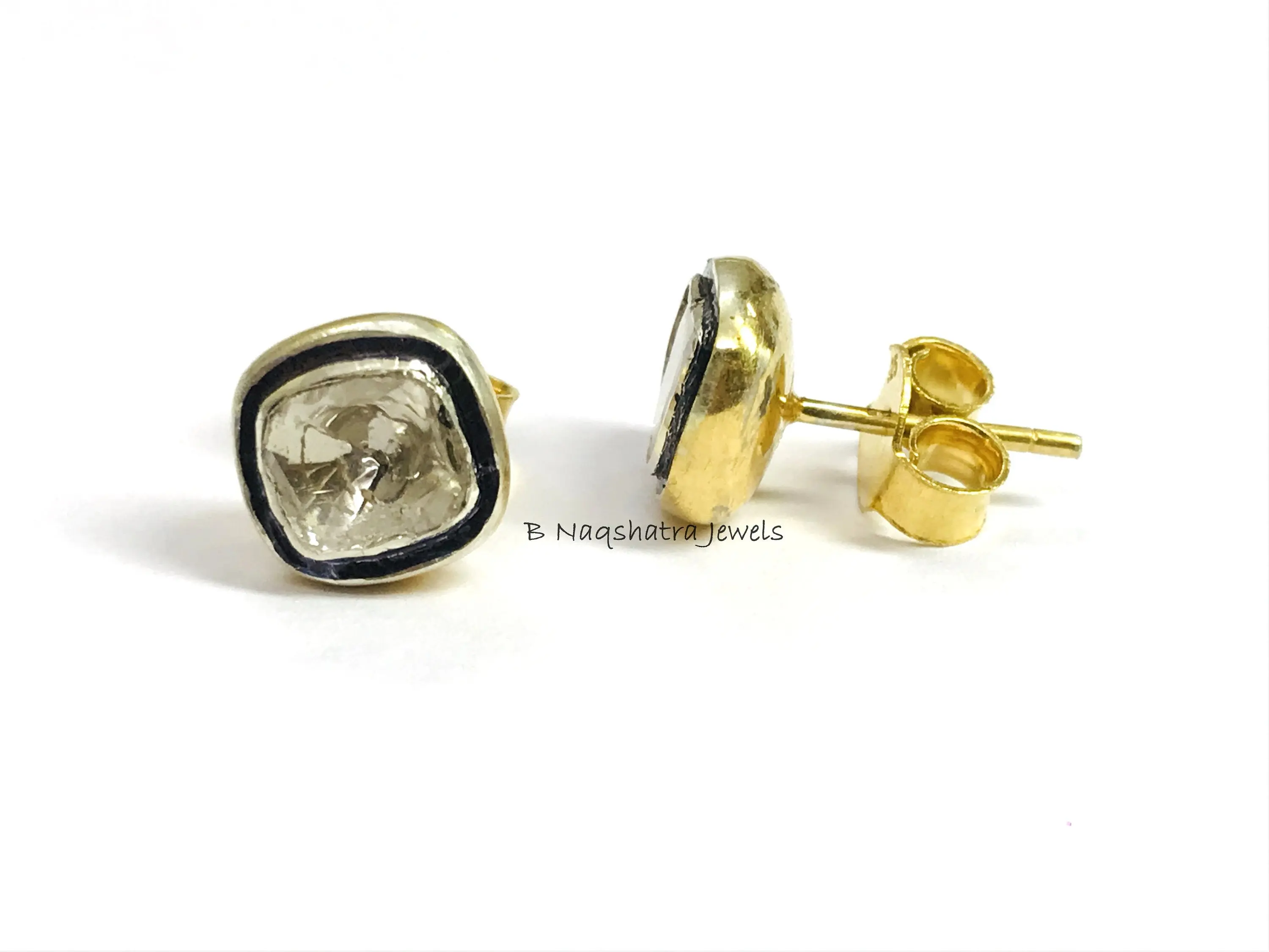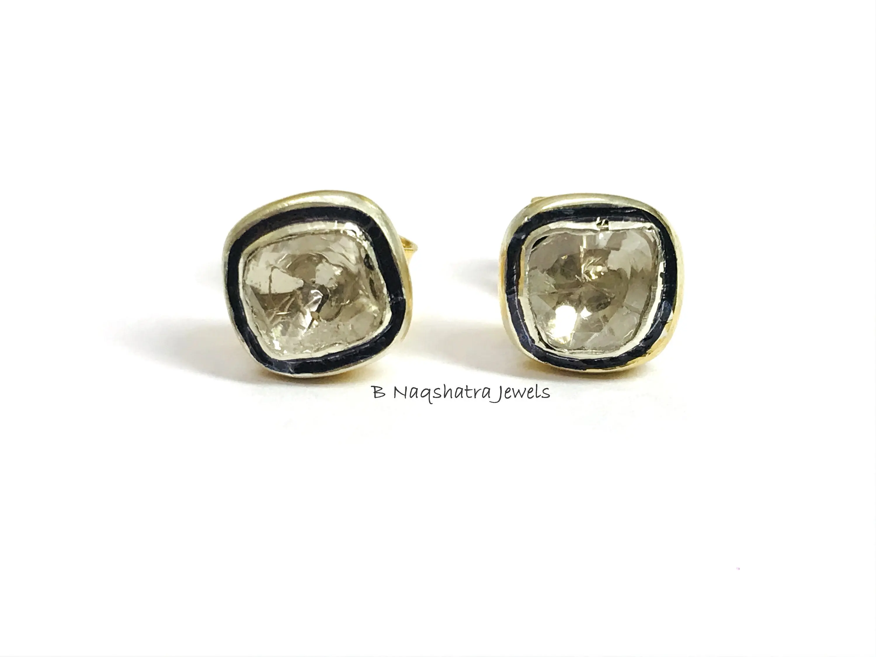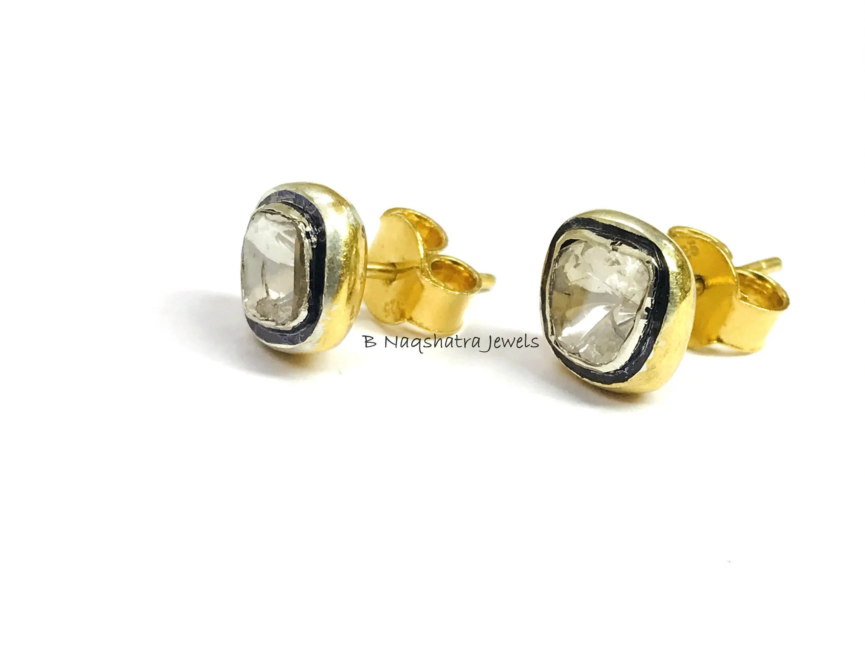 SOLITAIRE DIAMONDS STUD Earrings ,Handmade Fine Jewelry , 0.61 ctwt Polki Diamonds,Antique look ,Wedding Gift , Enhance your Beauty....