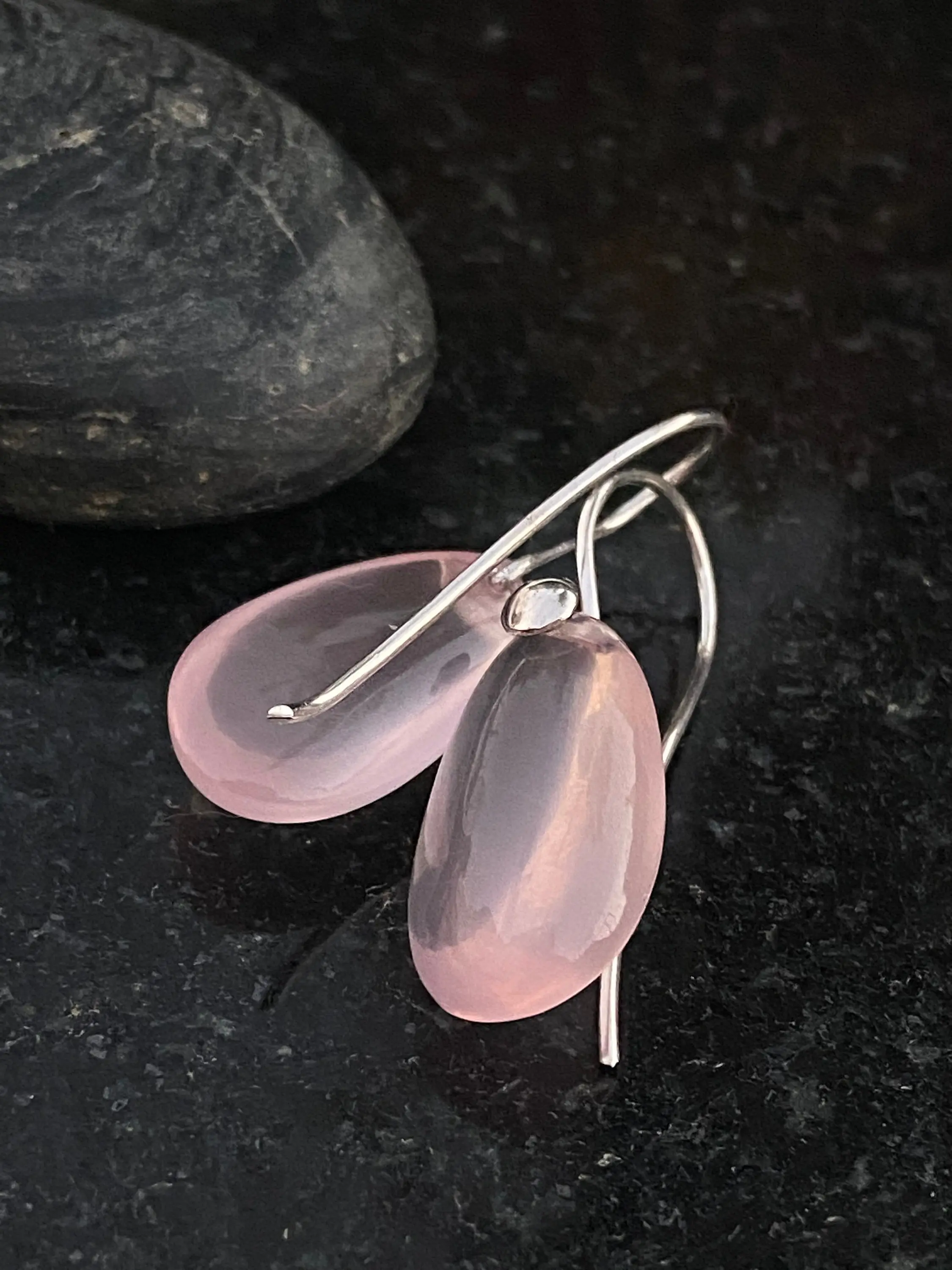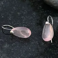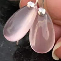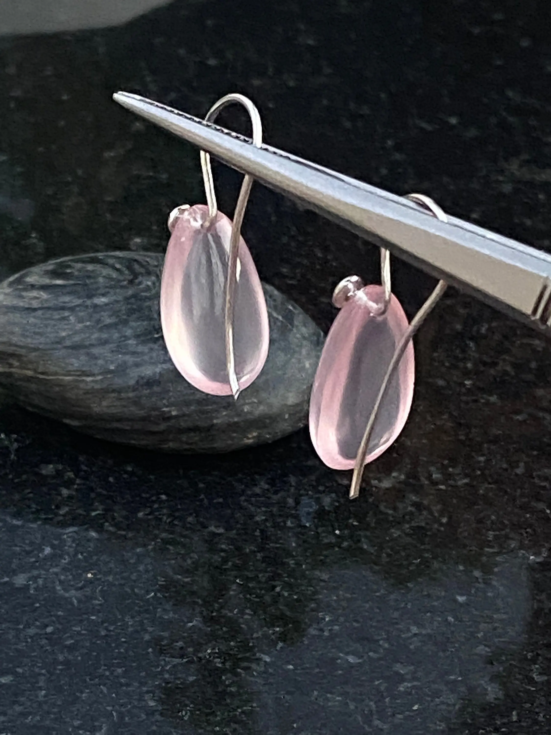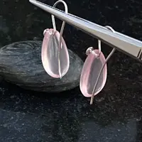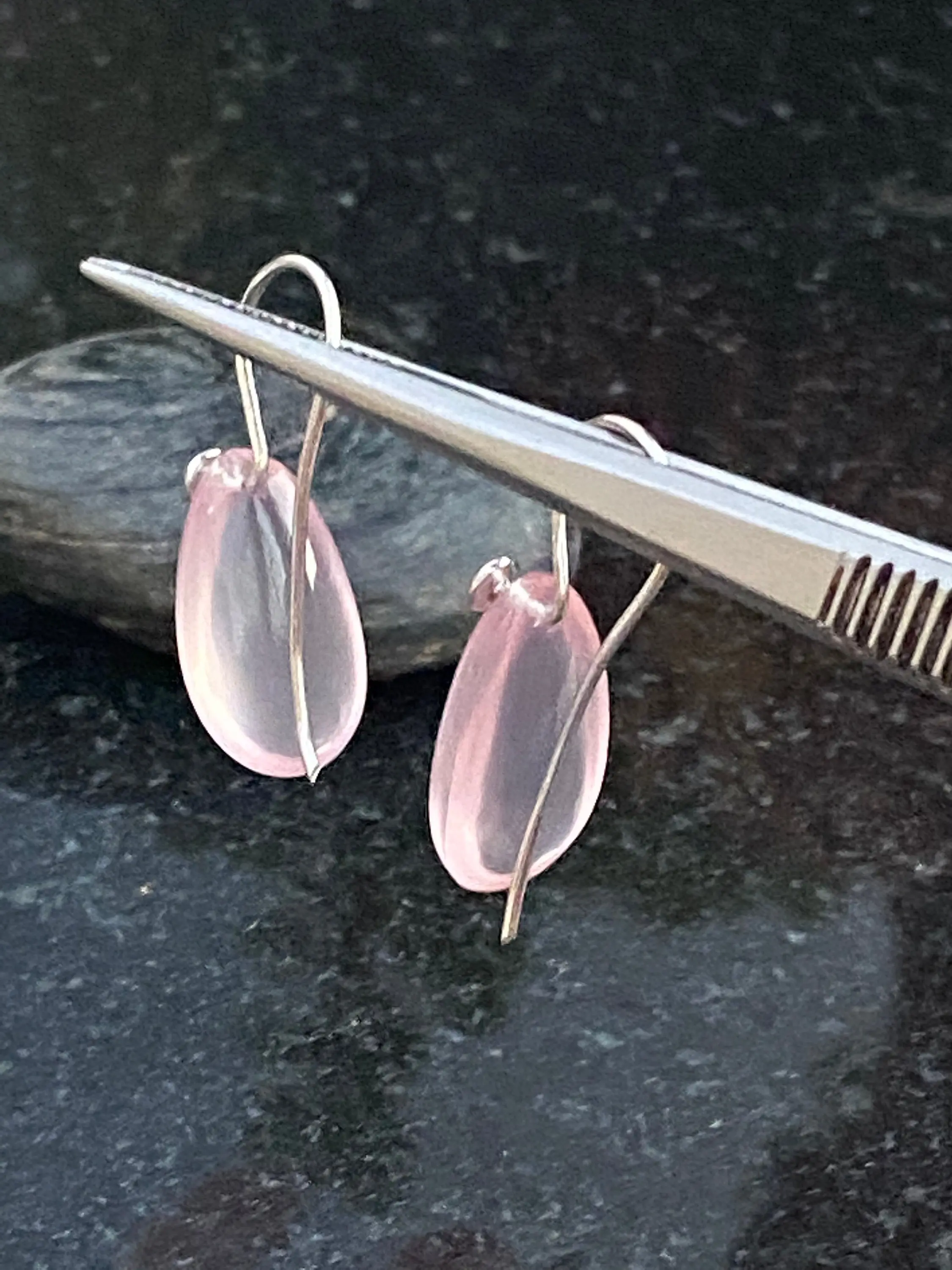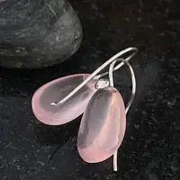 Pink Rose Quartz Pear shape Cabochon drilled with 925 silver wire hook , Dangle earrings