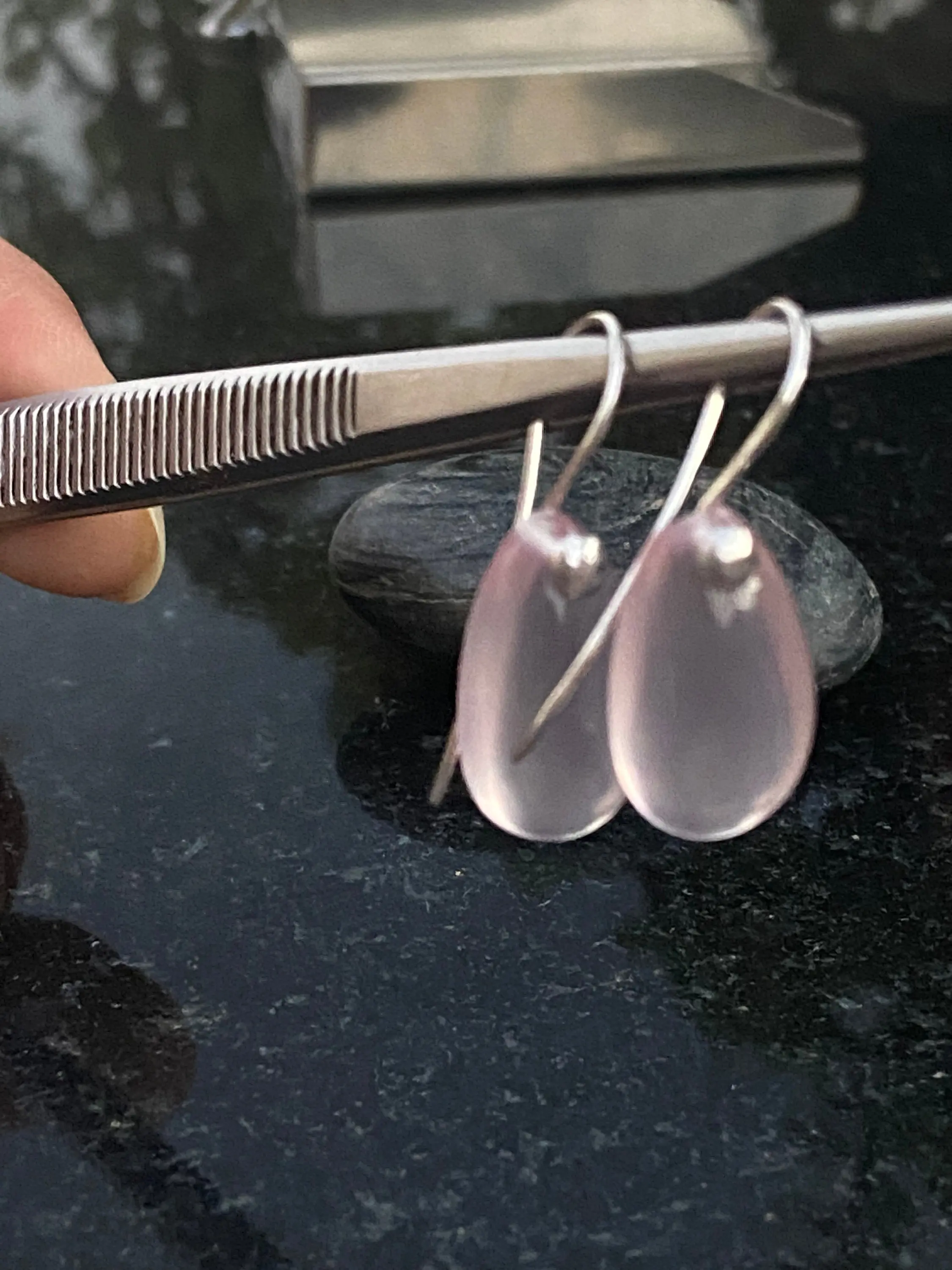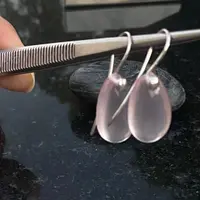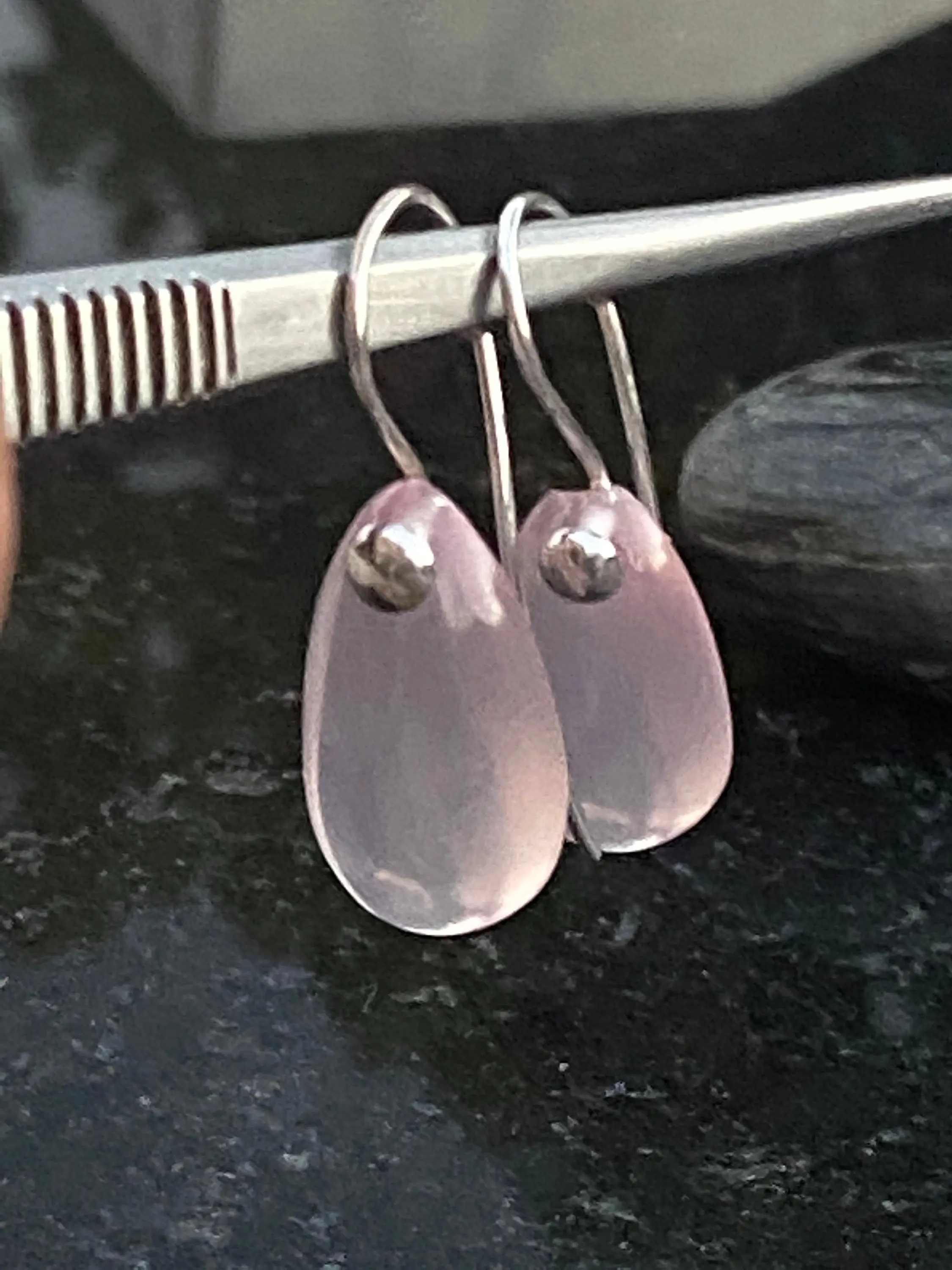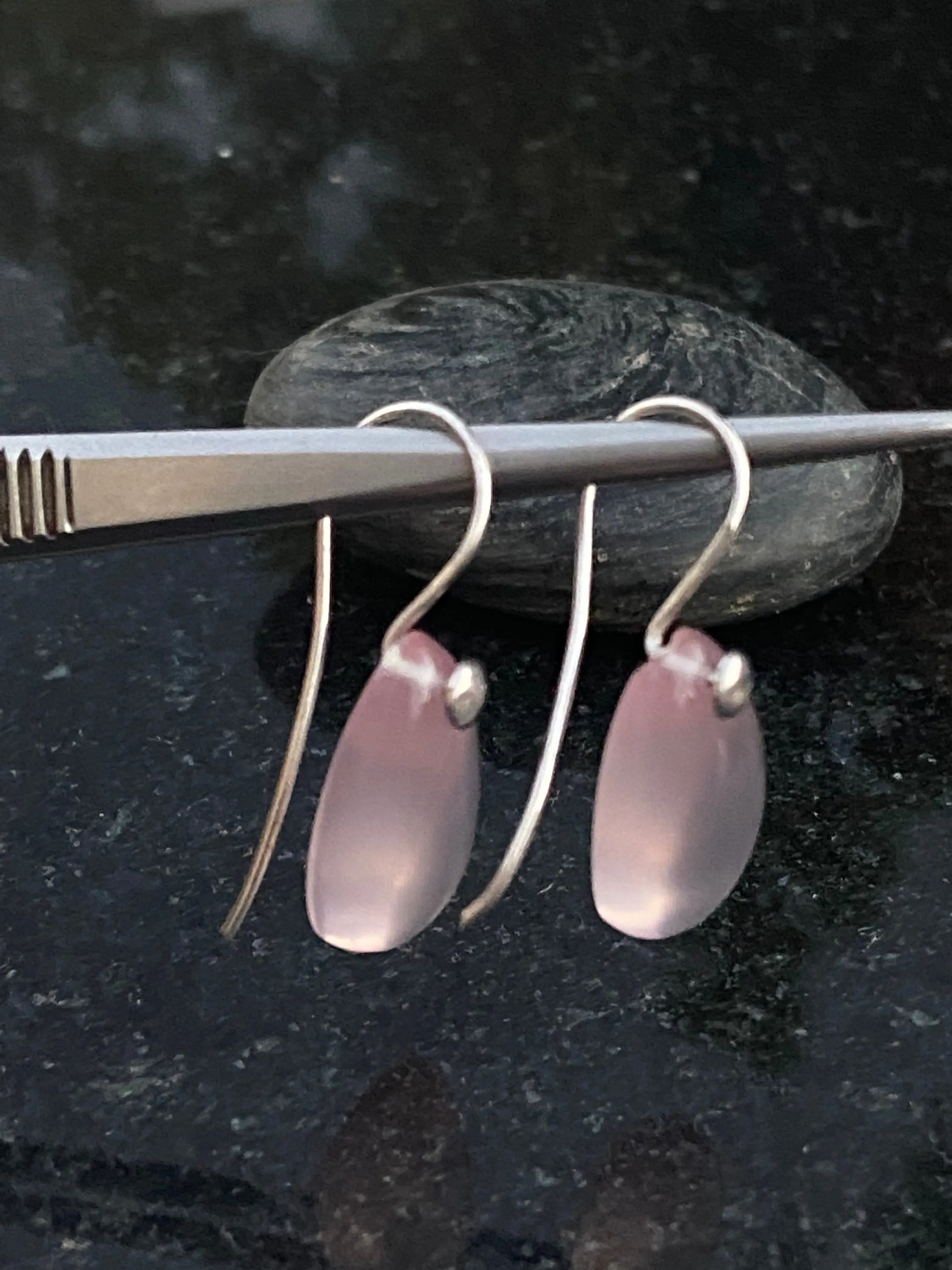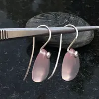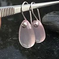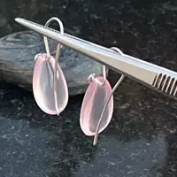 Pink Rose Quartz Pear shape Cabochon drilled with 925 silver wire hook , Dangle earrings