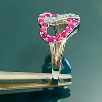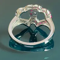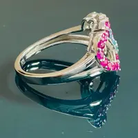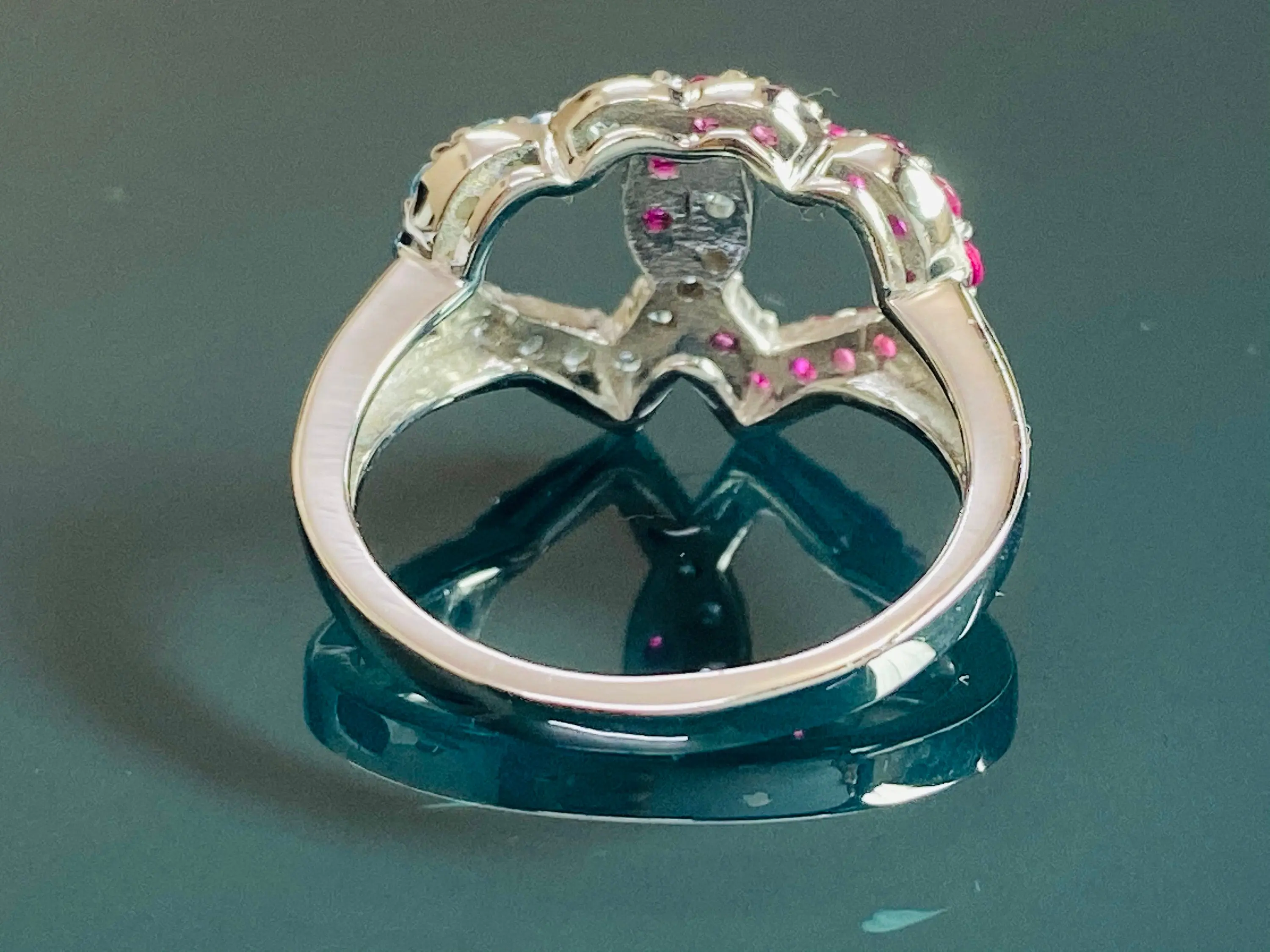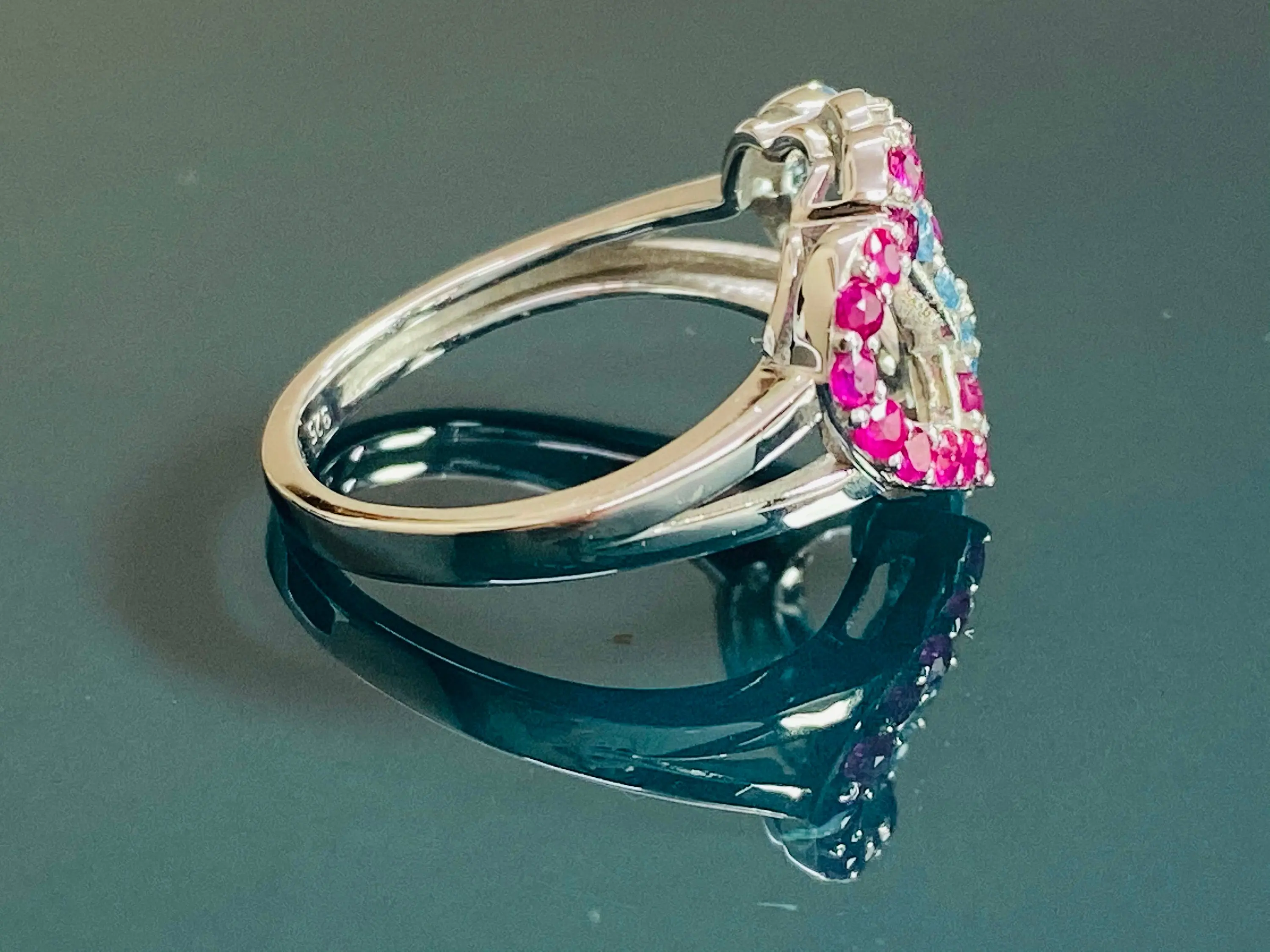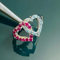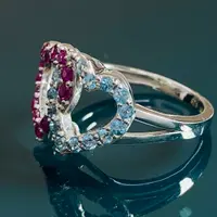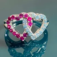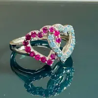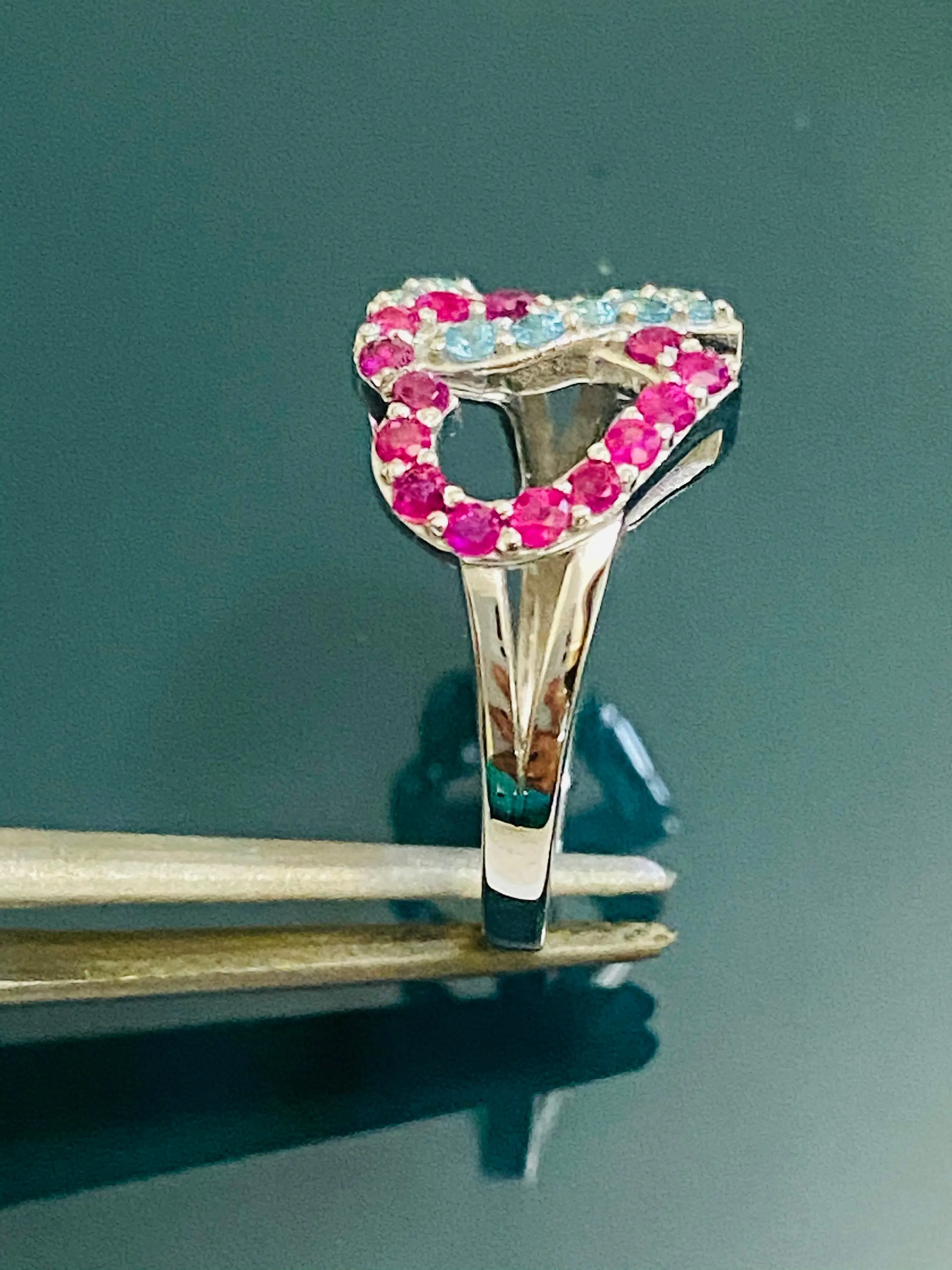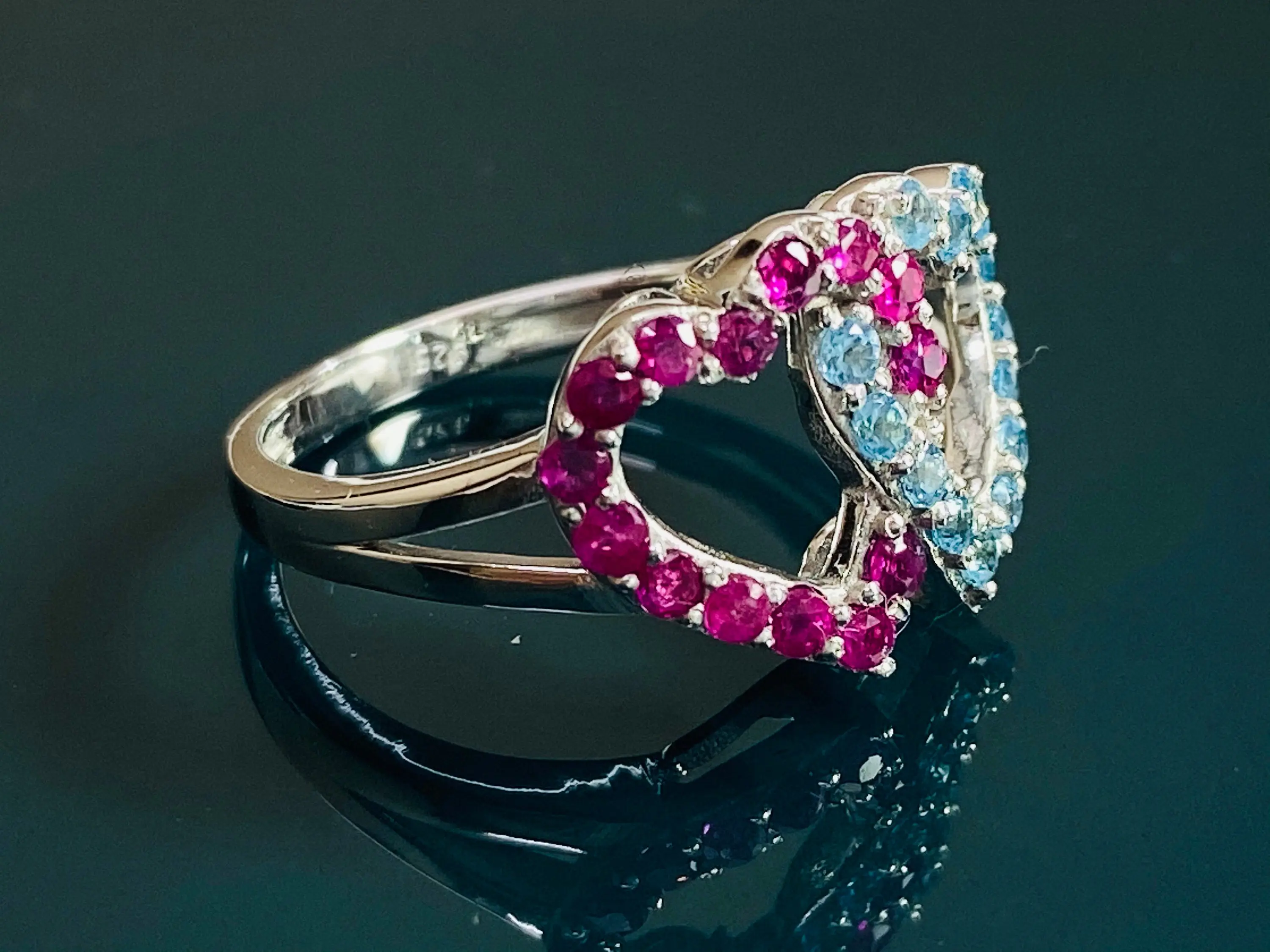 2 Interlocked Hearts Promise Ring, Multiple gemstone Ruby and Blue-Topaz love Ring, Christmas gift for loved ones ..
