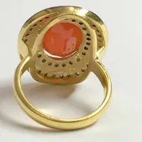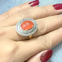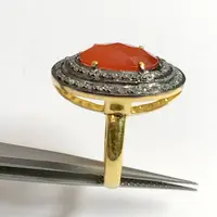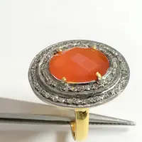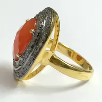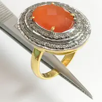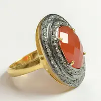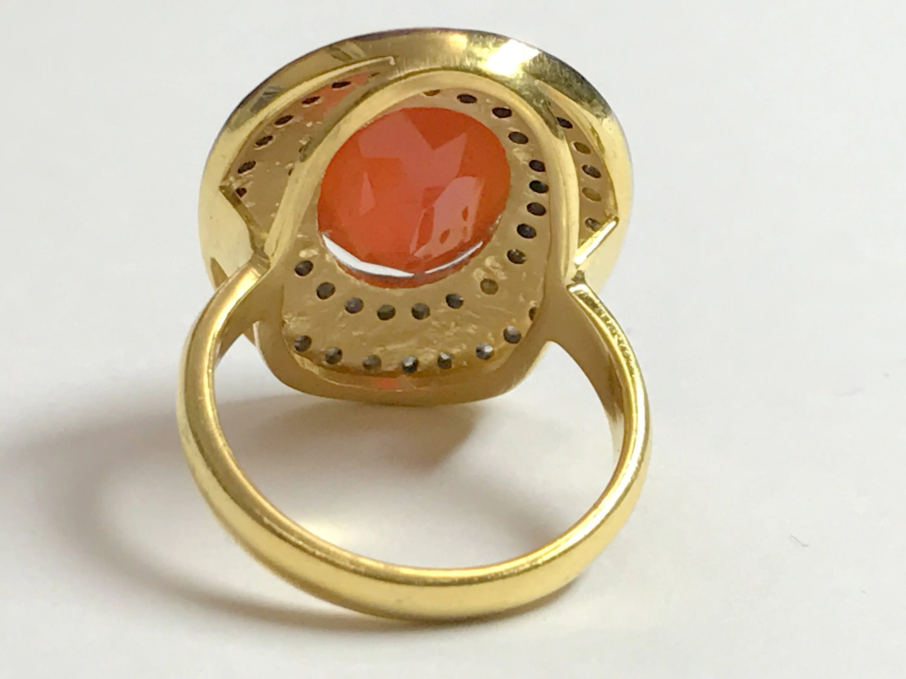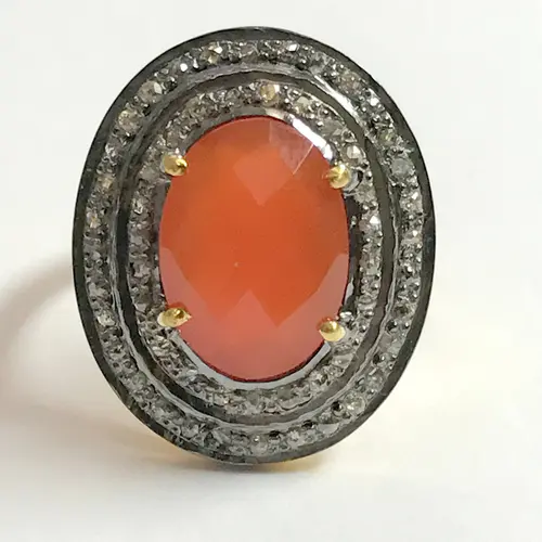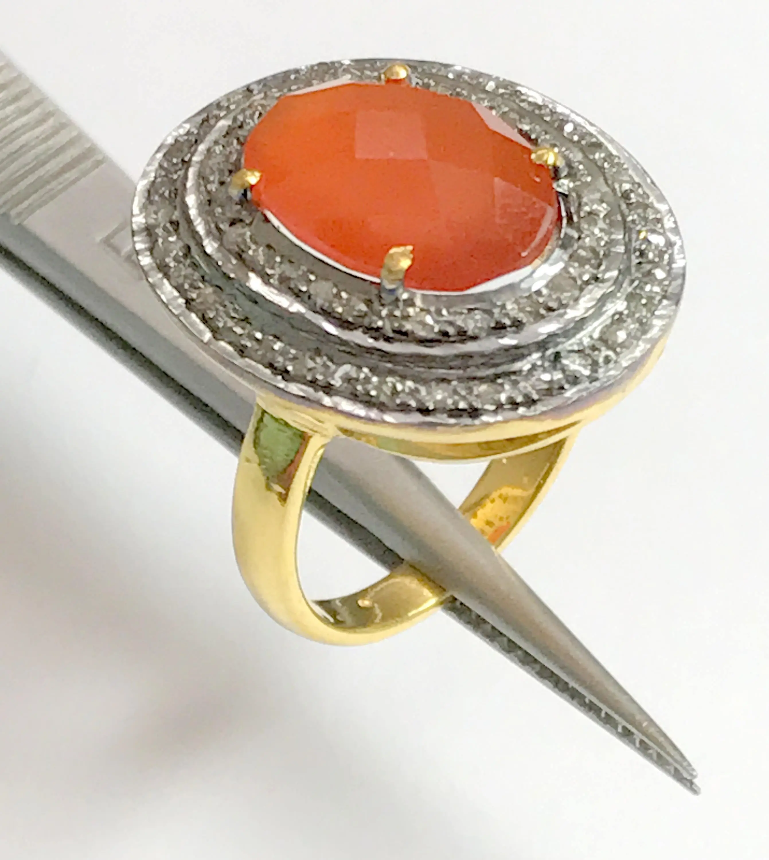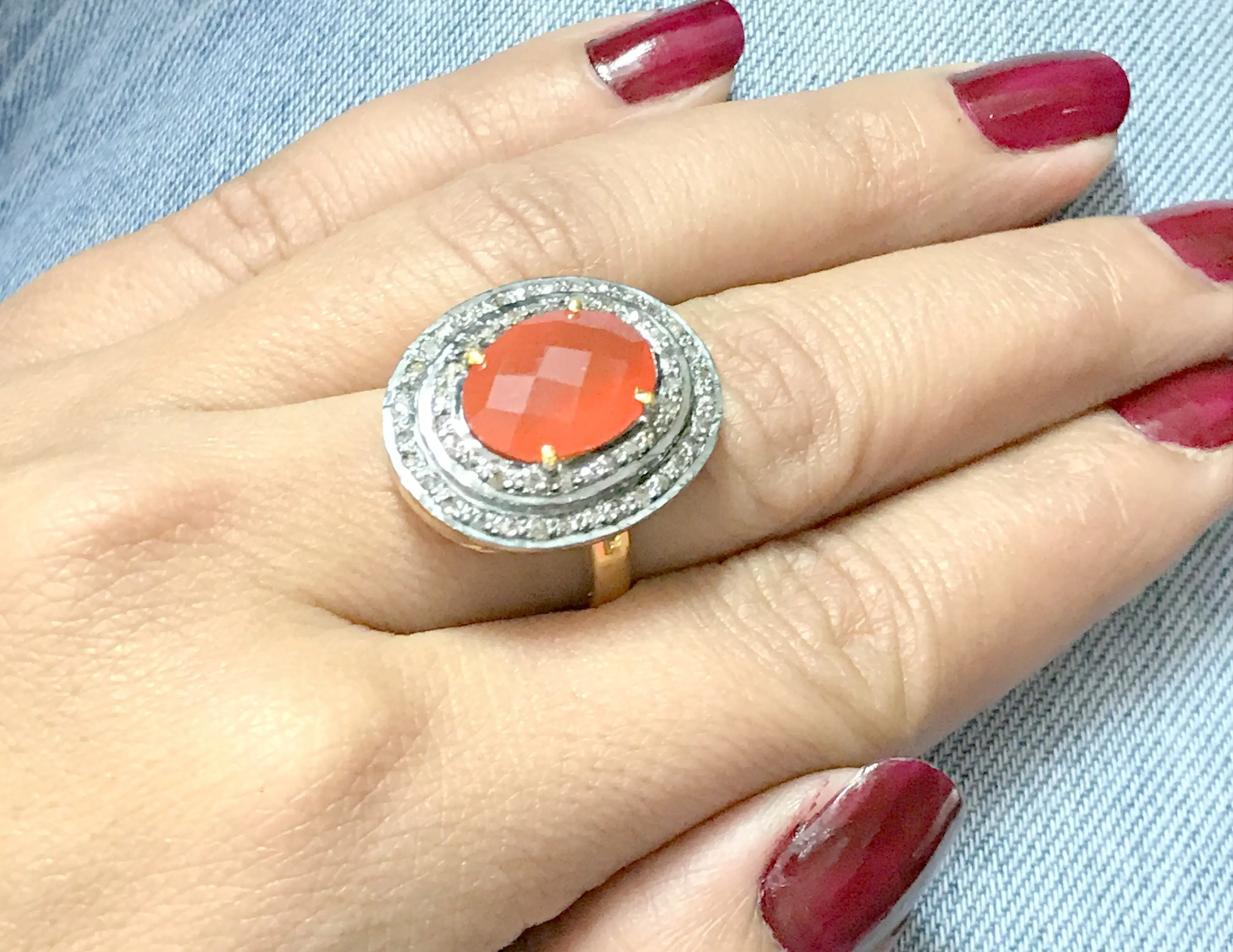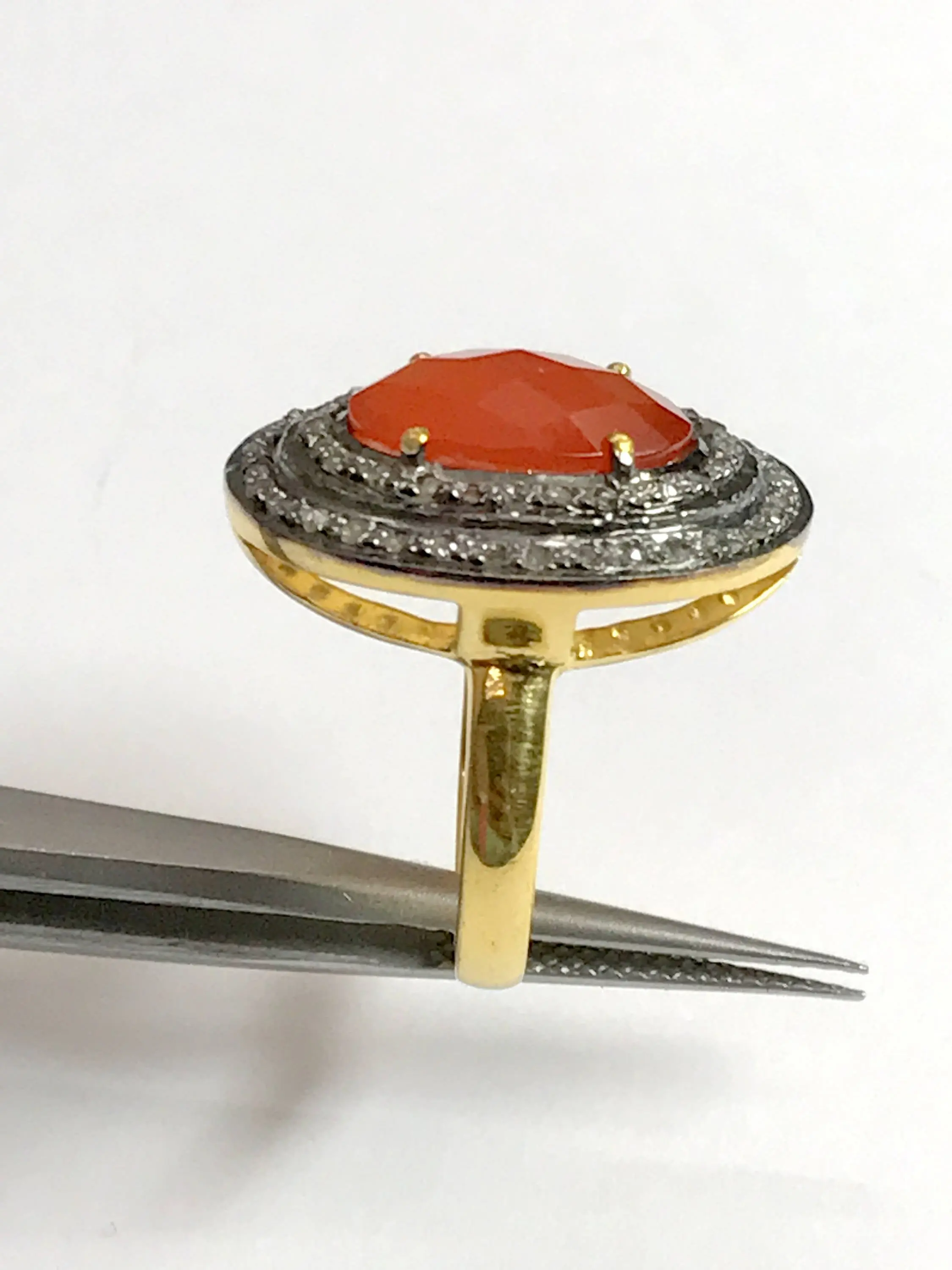CARNELIAN DIAMOND RING in 925 sterling silver,Checkers cut Orange Carnelian ,rose cut diamonds , antique finish , perfect for evening wear..