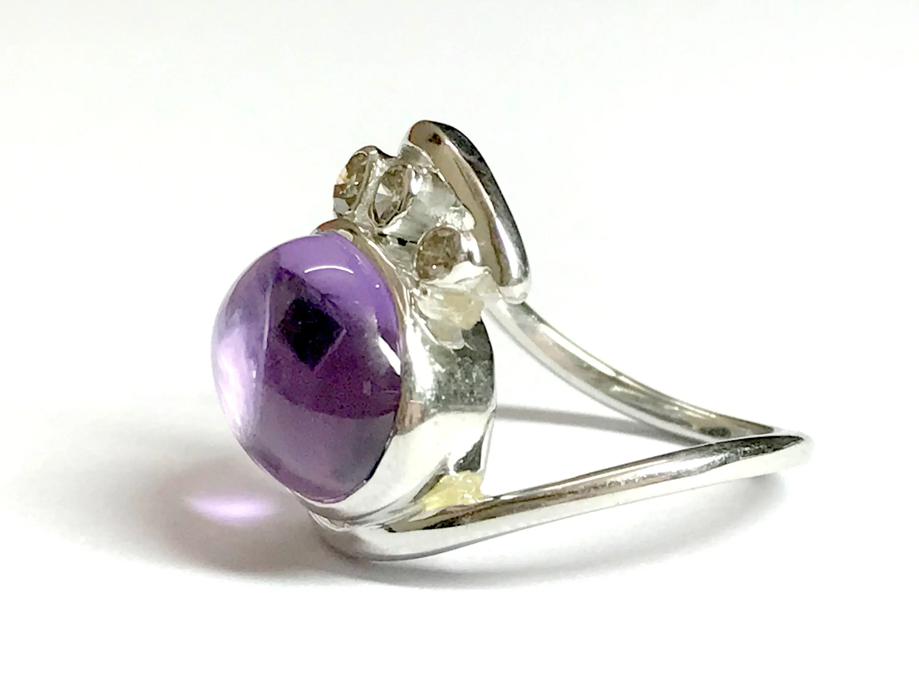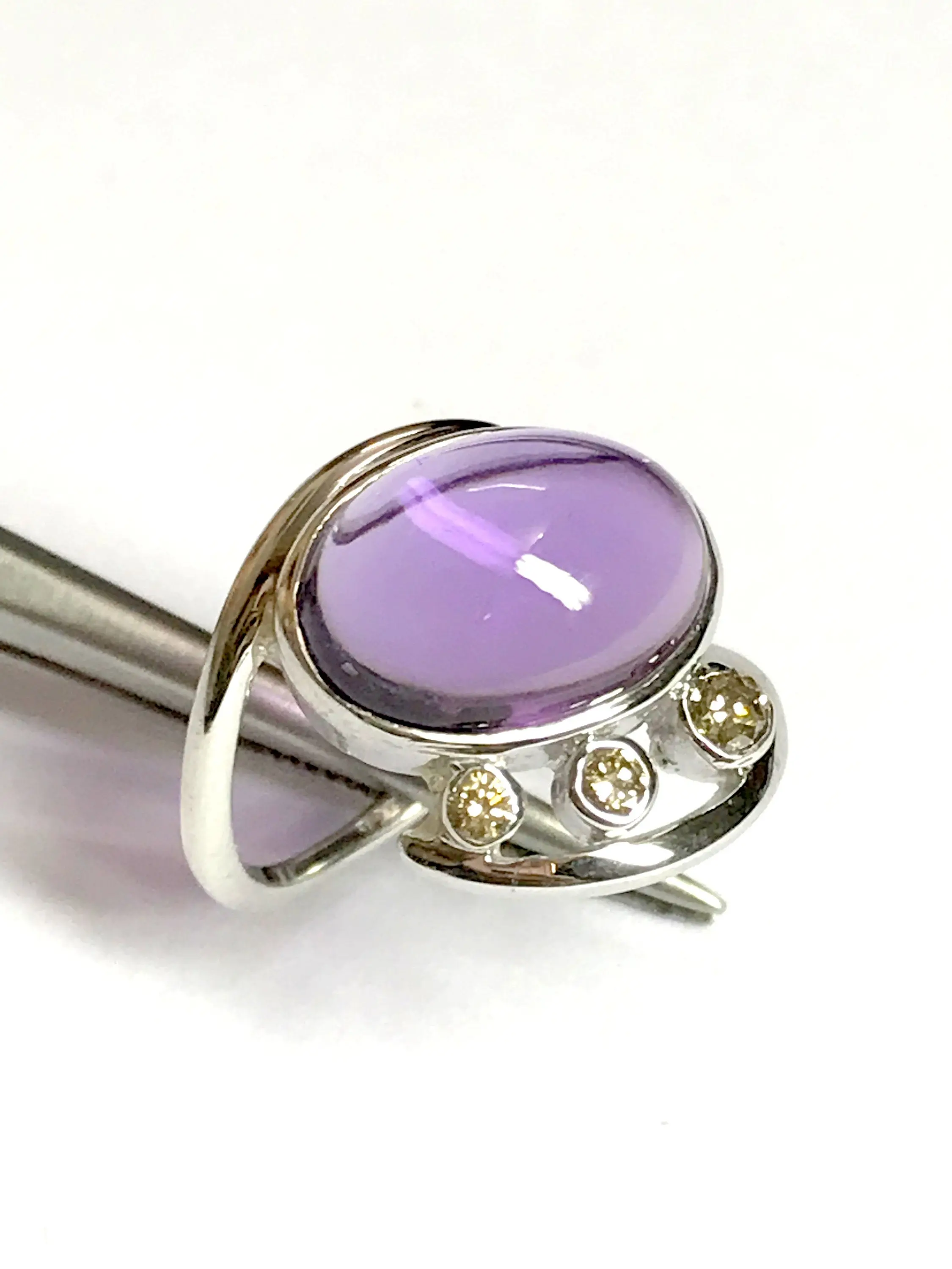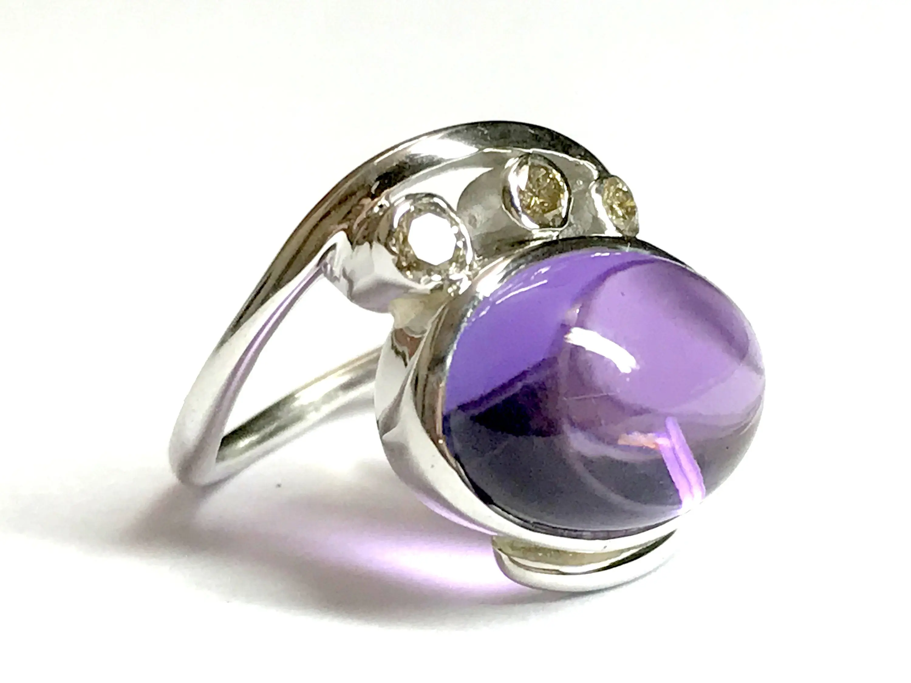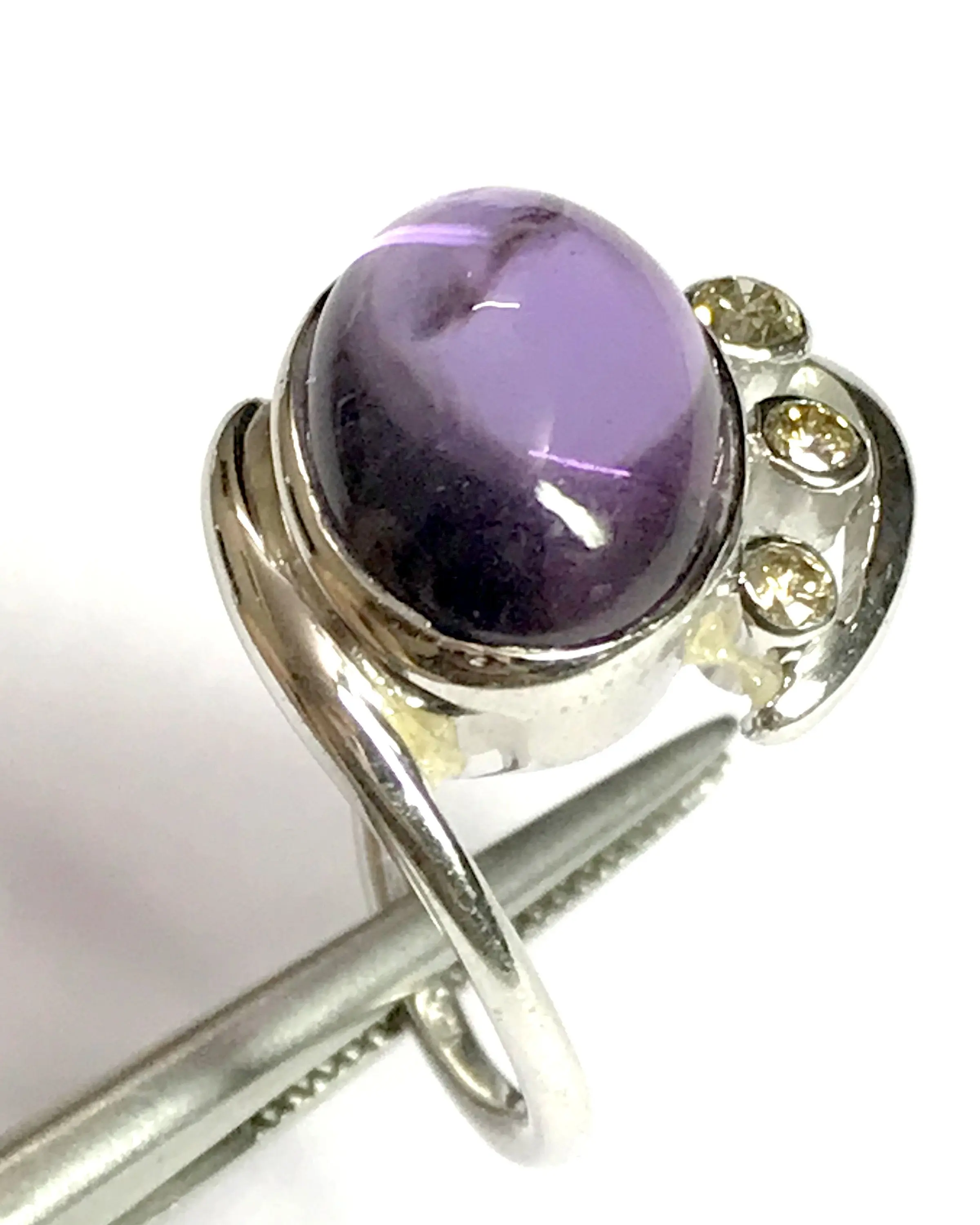 CABOCHON AMETHYST DIAMONDS Ring 925 sterling silver,February Birthstone ,Engagement Ring,Wedding Band