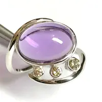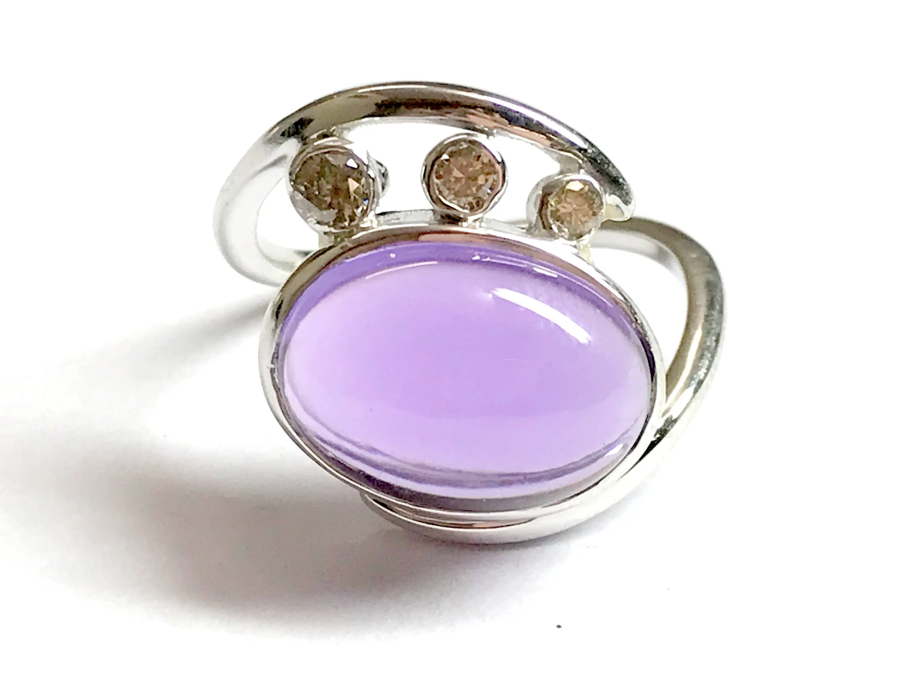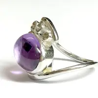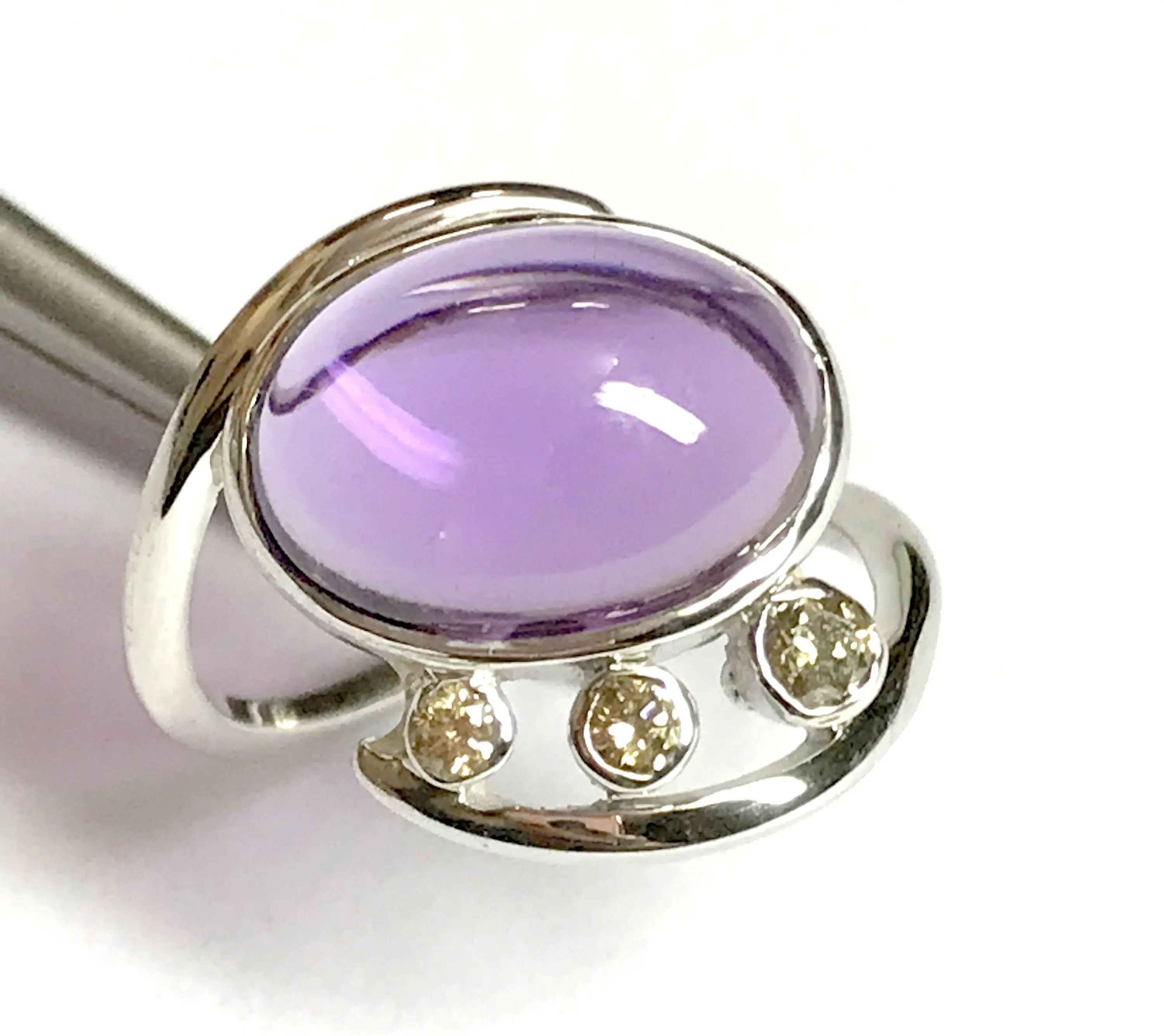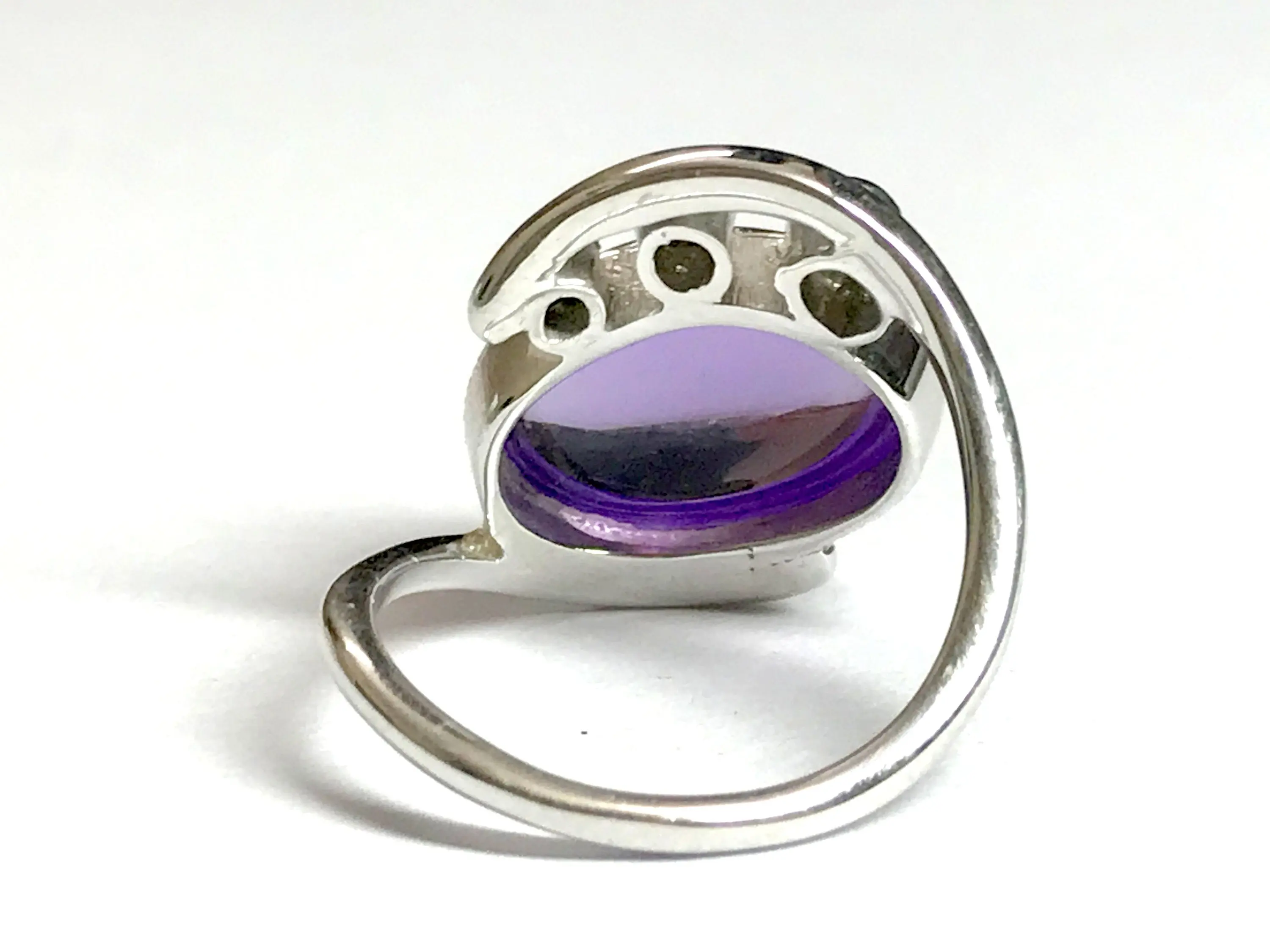 CABOCHON AMETHYST DIAMONDS Ring 925 sterling silver,February Birthstone ,Engagement Ring,Wedding Band