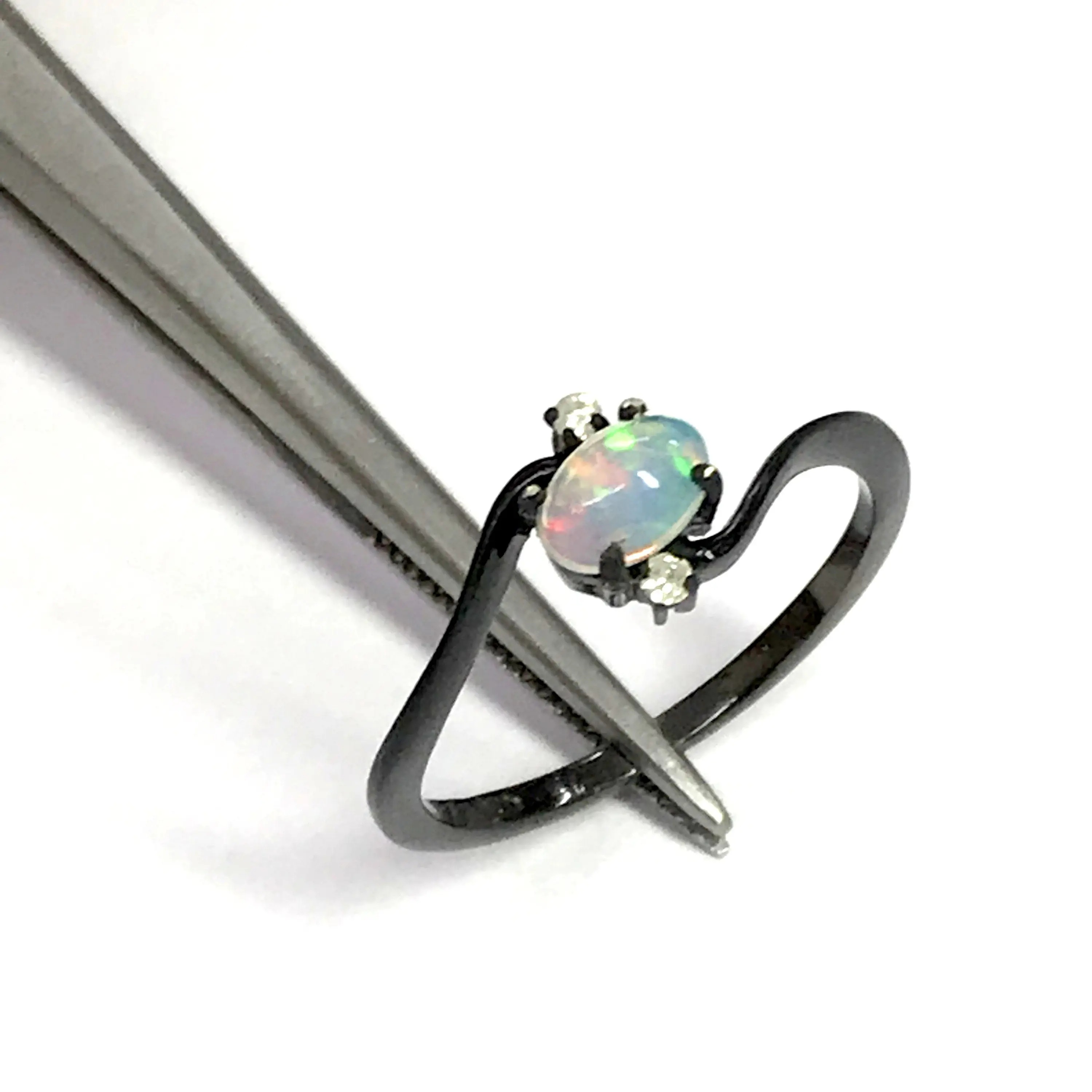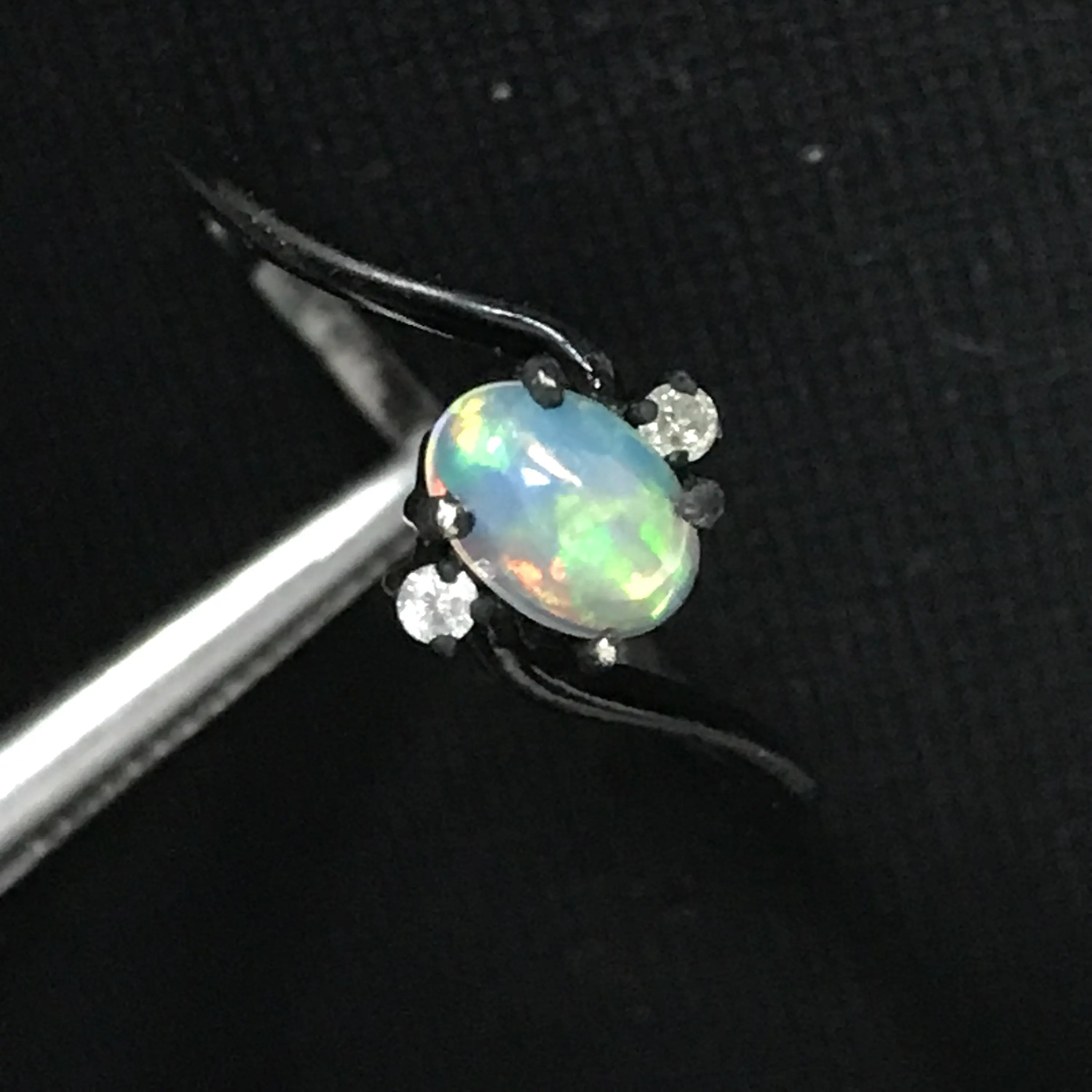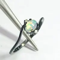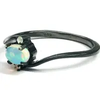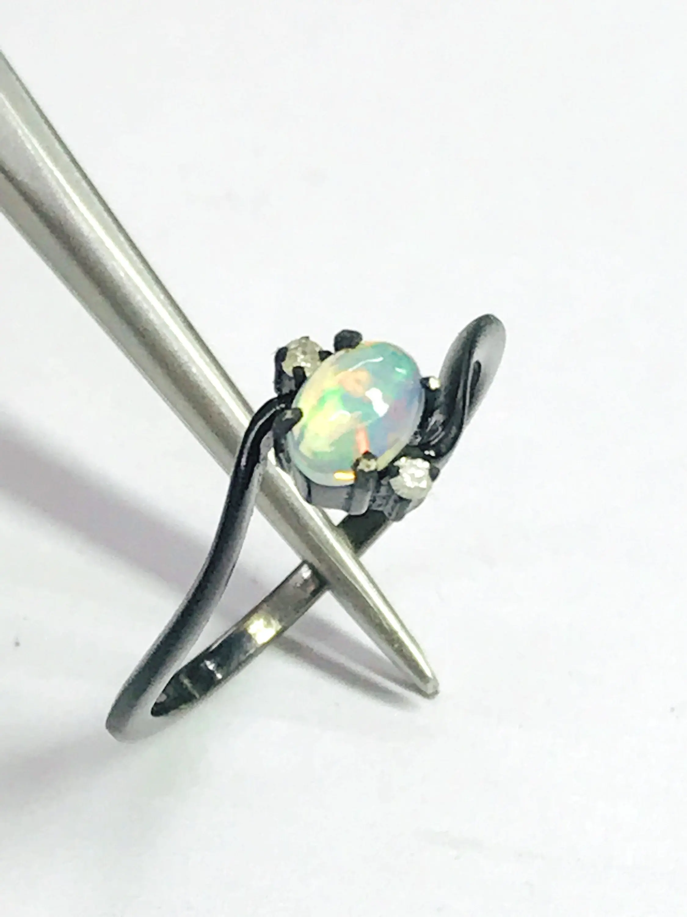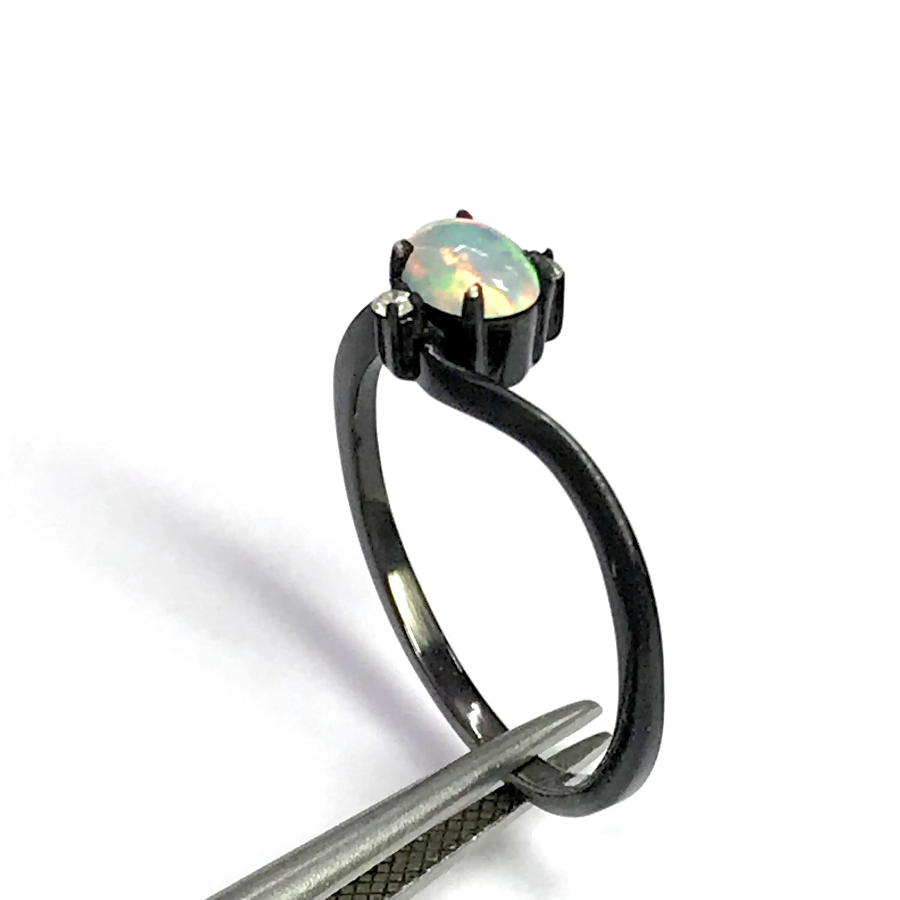 OPAL DIAMOND RING ,Fire Opal, October birthstone , Ethiopian opal , stacking ring, Oval Opal , Oxidised look Black Plating , Christmas gift