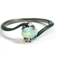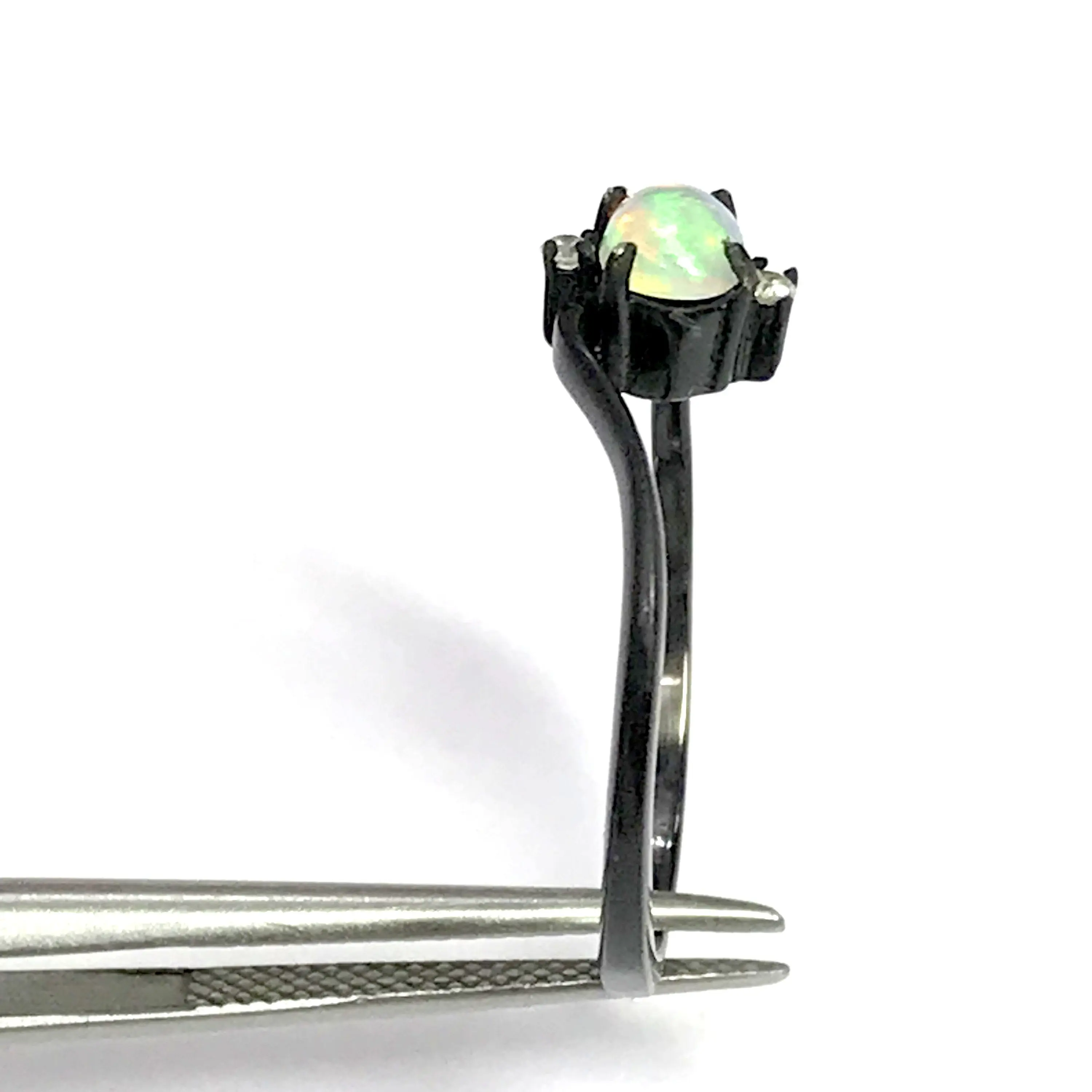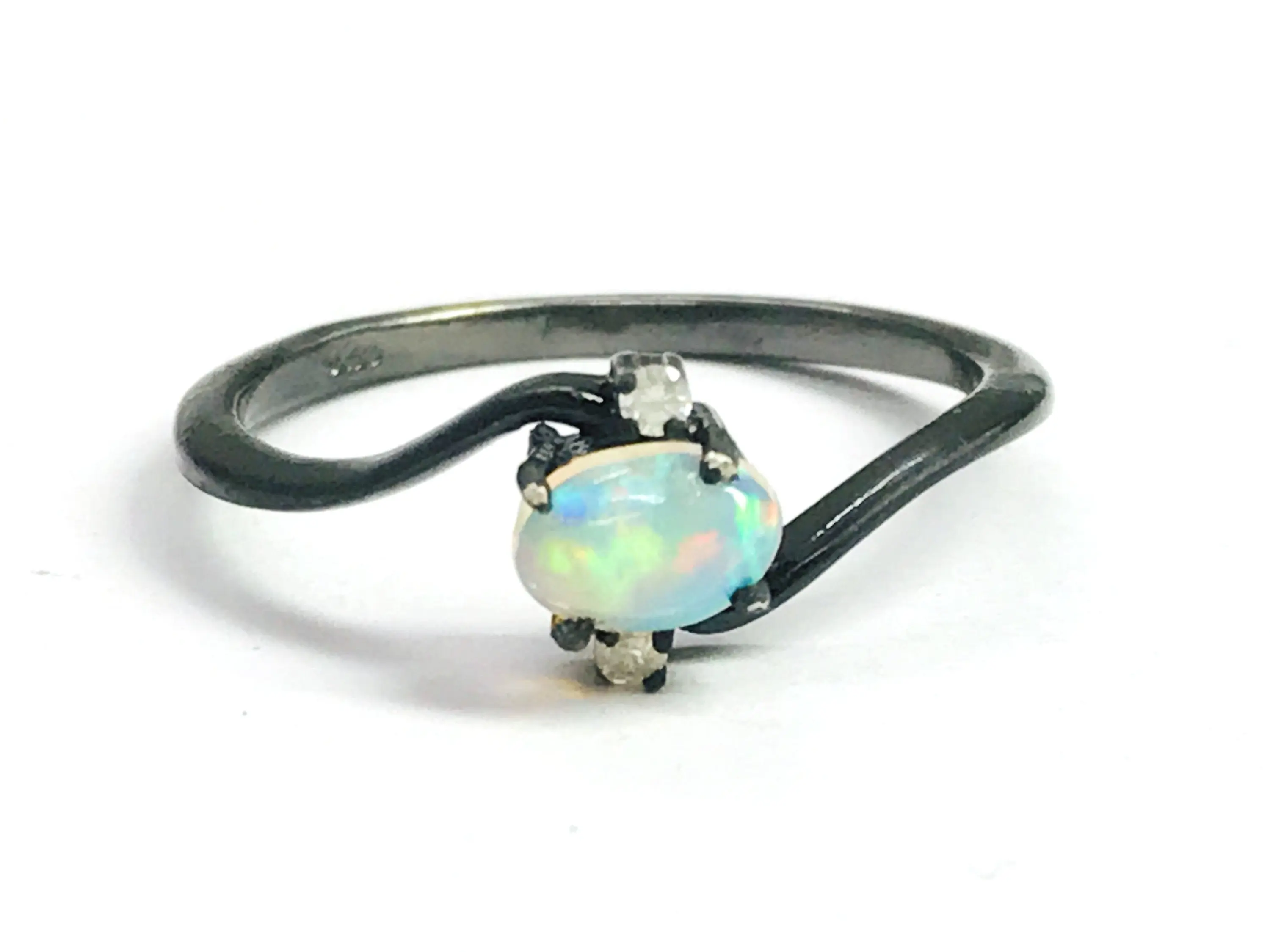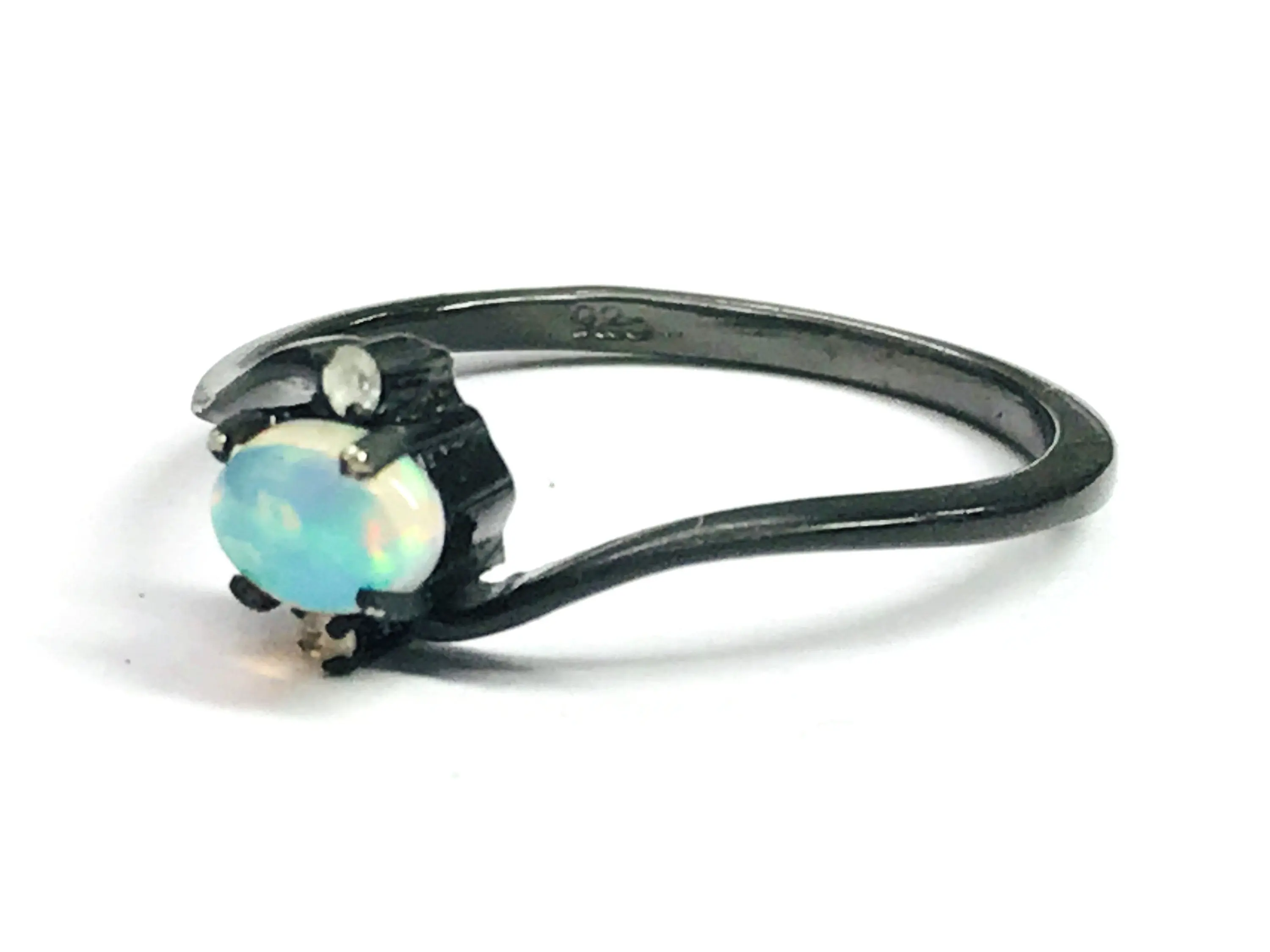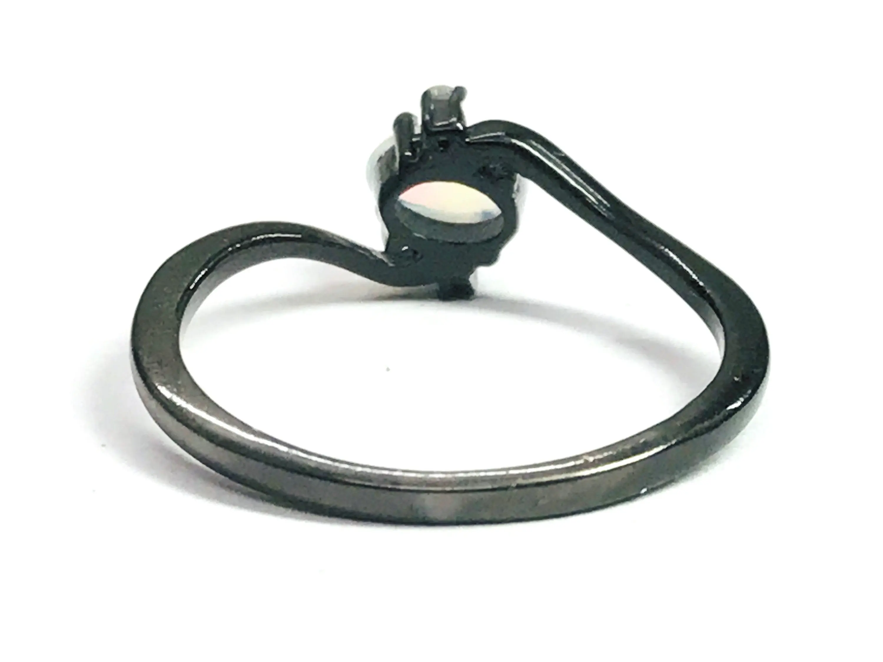 OPAL DIAMOND RING ,Fire Opal, October birthstone , Ethiopian opal , stacking ring, Oval Opal , Oxidised look Black Plating , Christmas gift