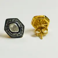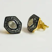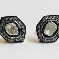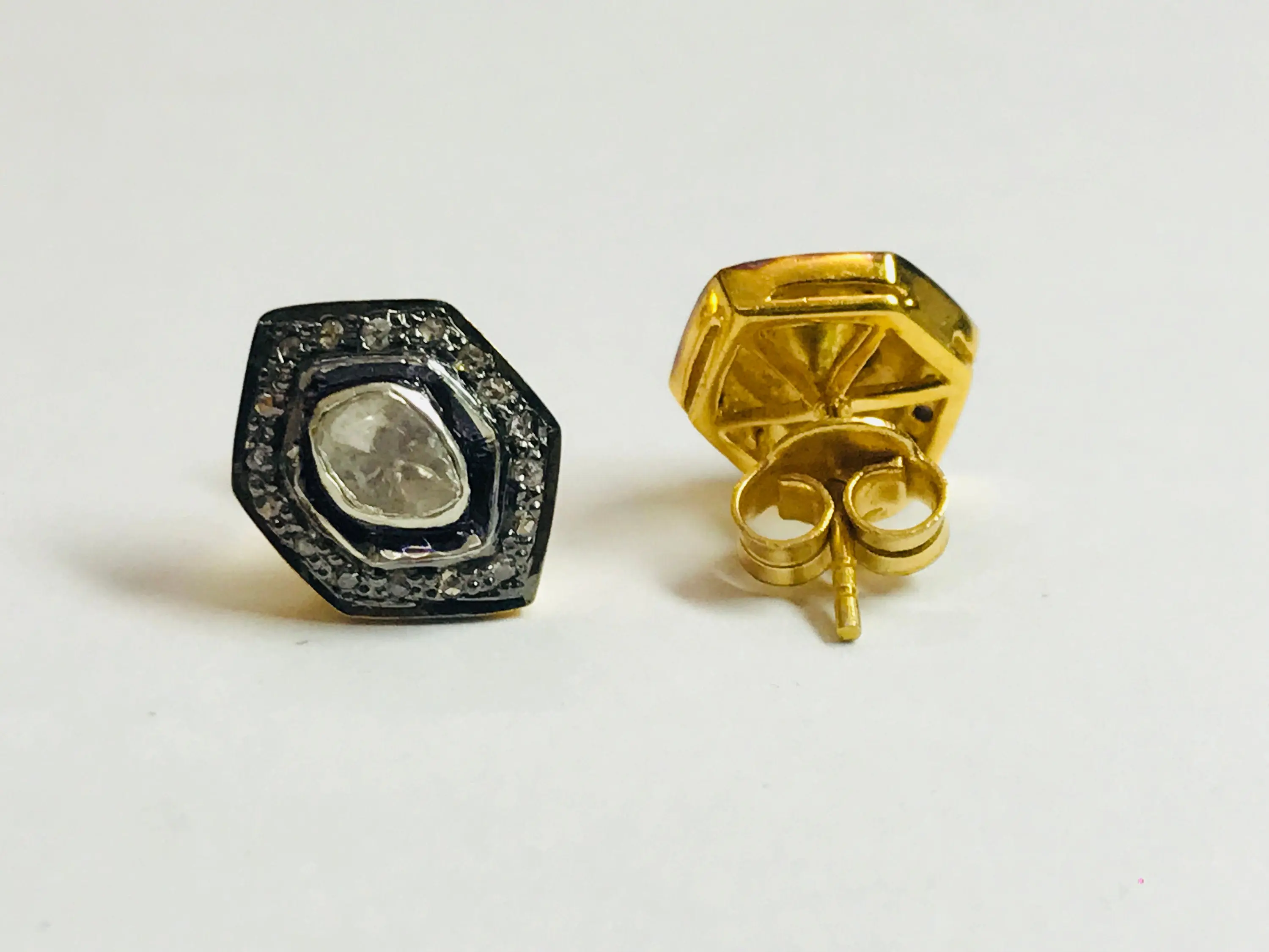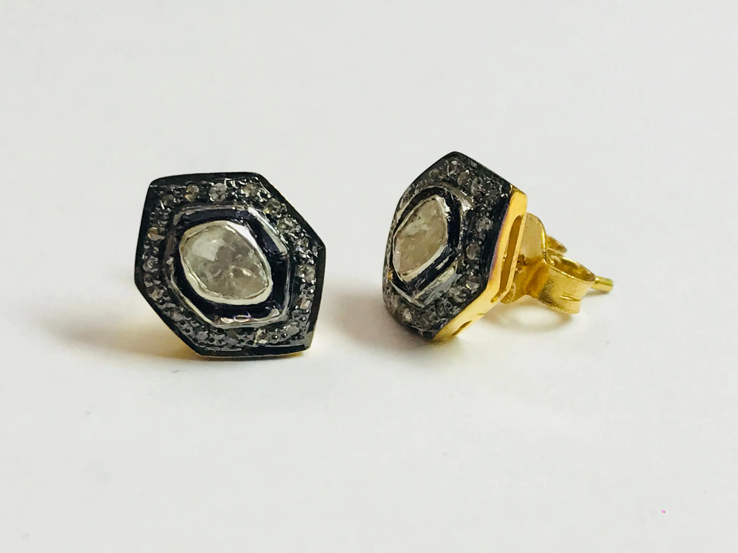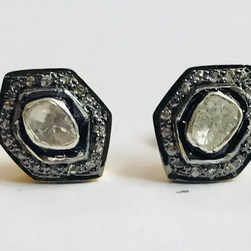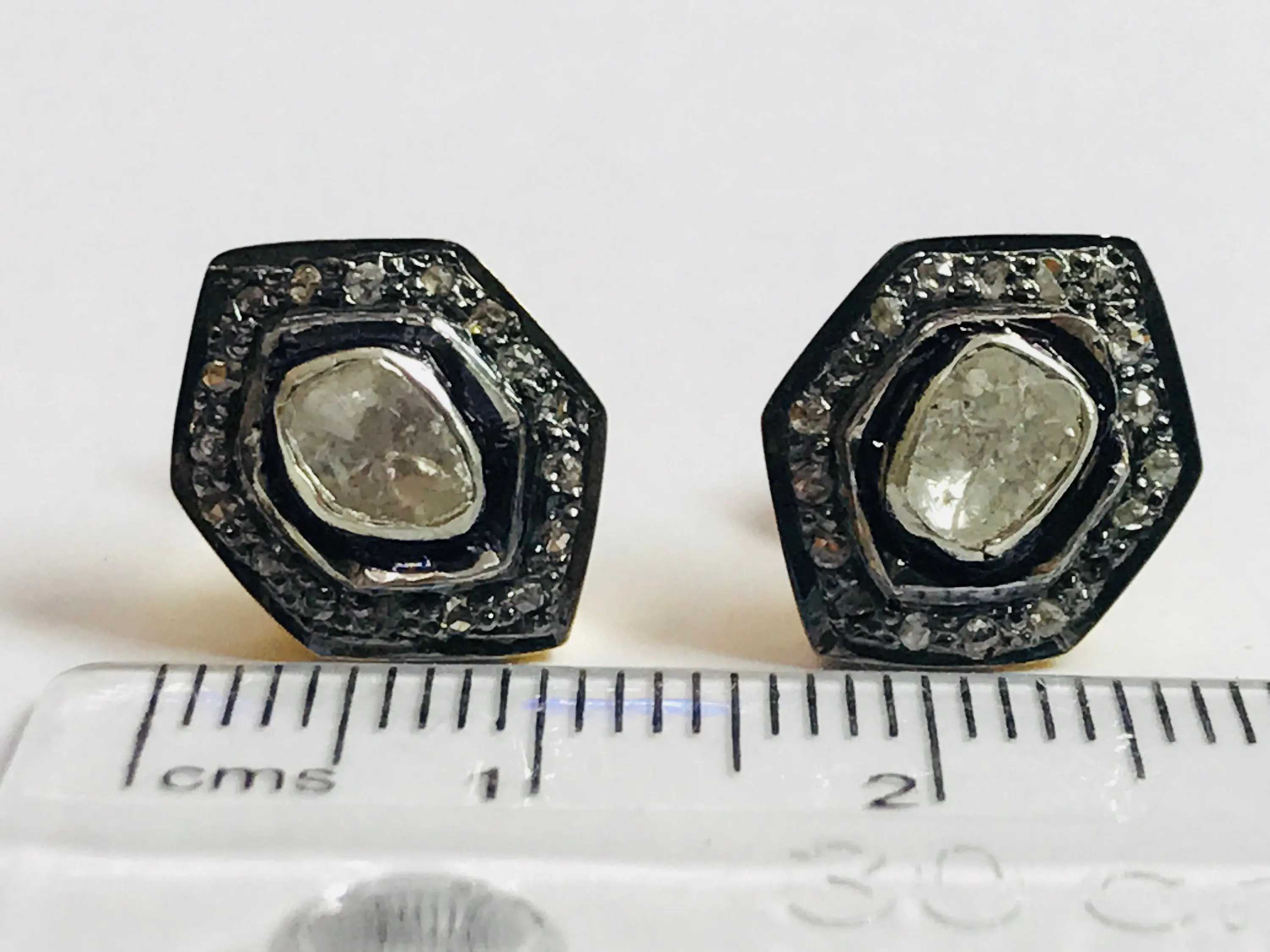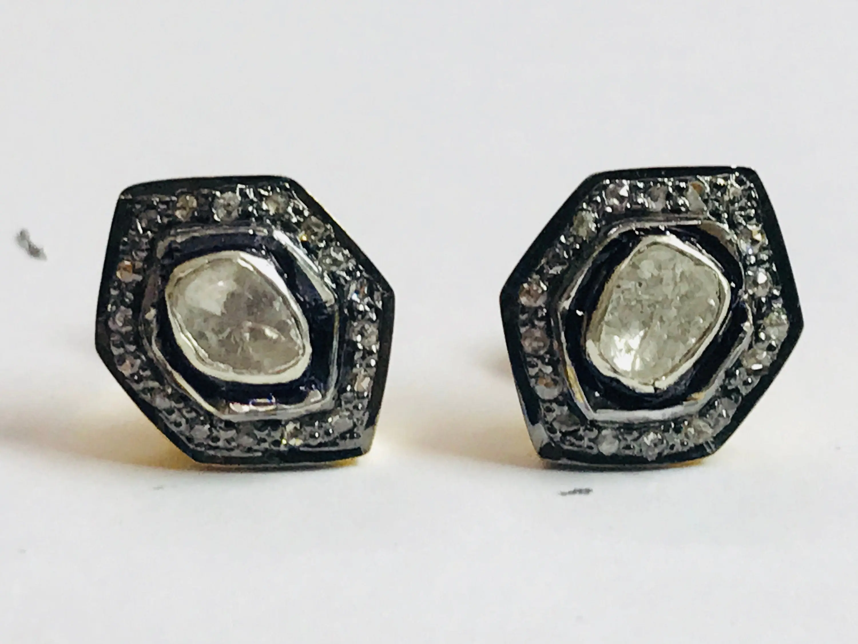 finest handmade art , elegant design , antique style , victorian polki diamonds studs in 925 sterling silver ........