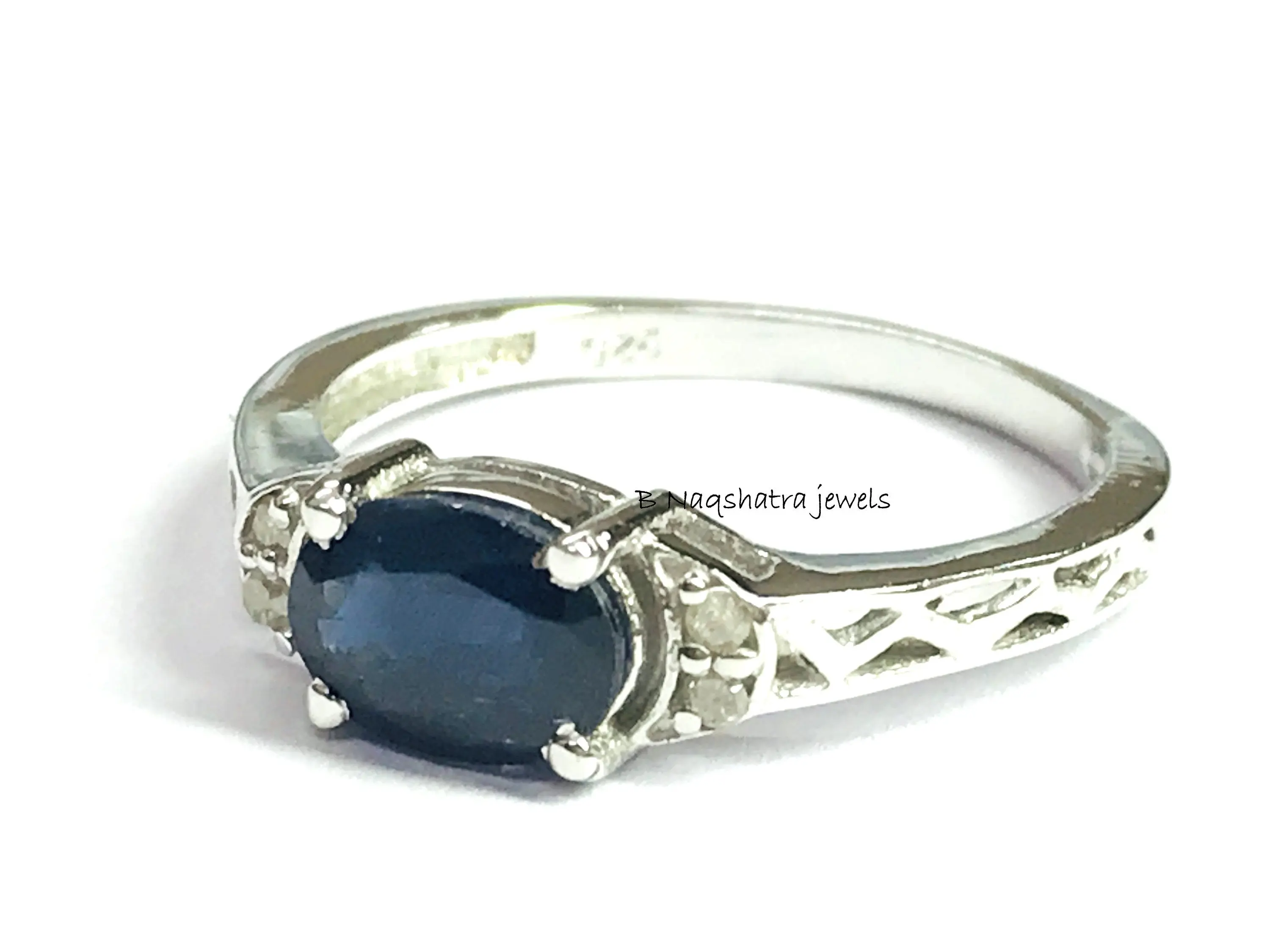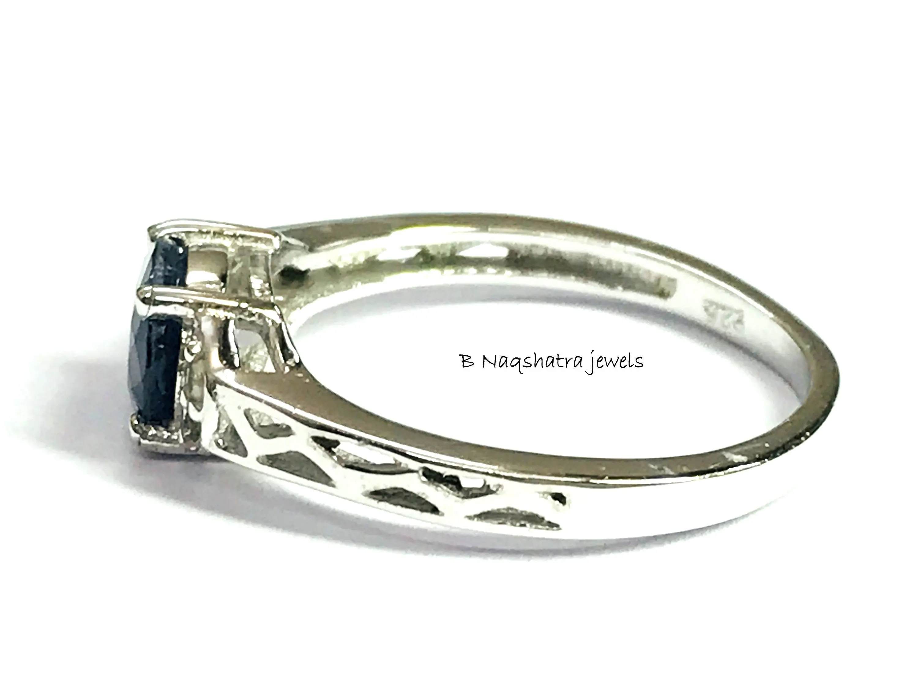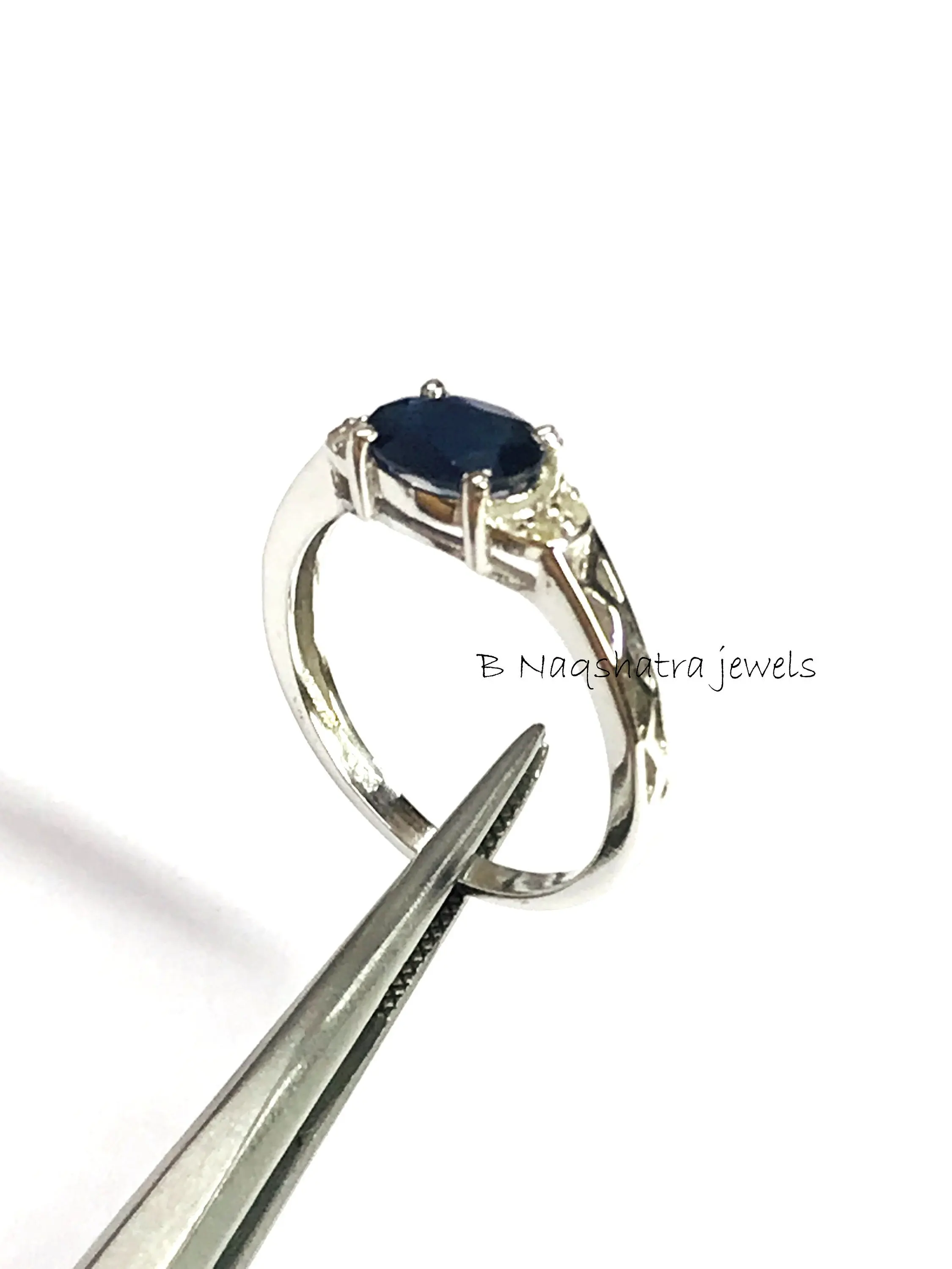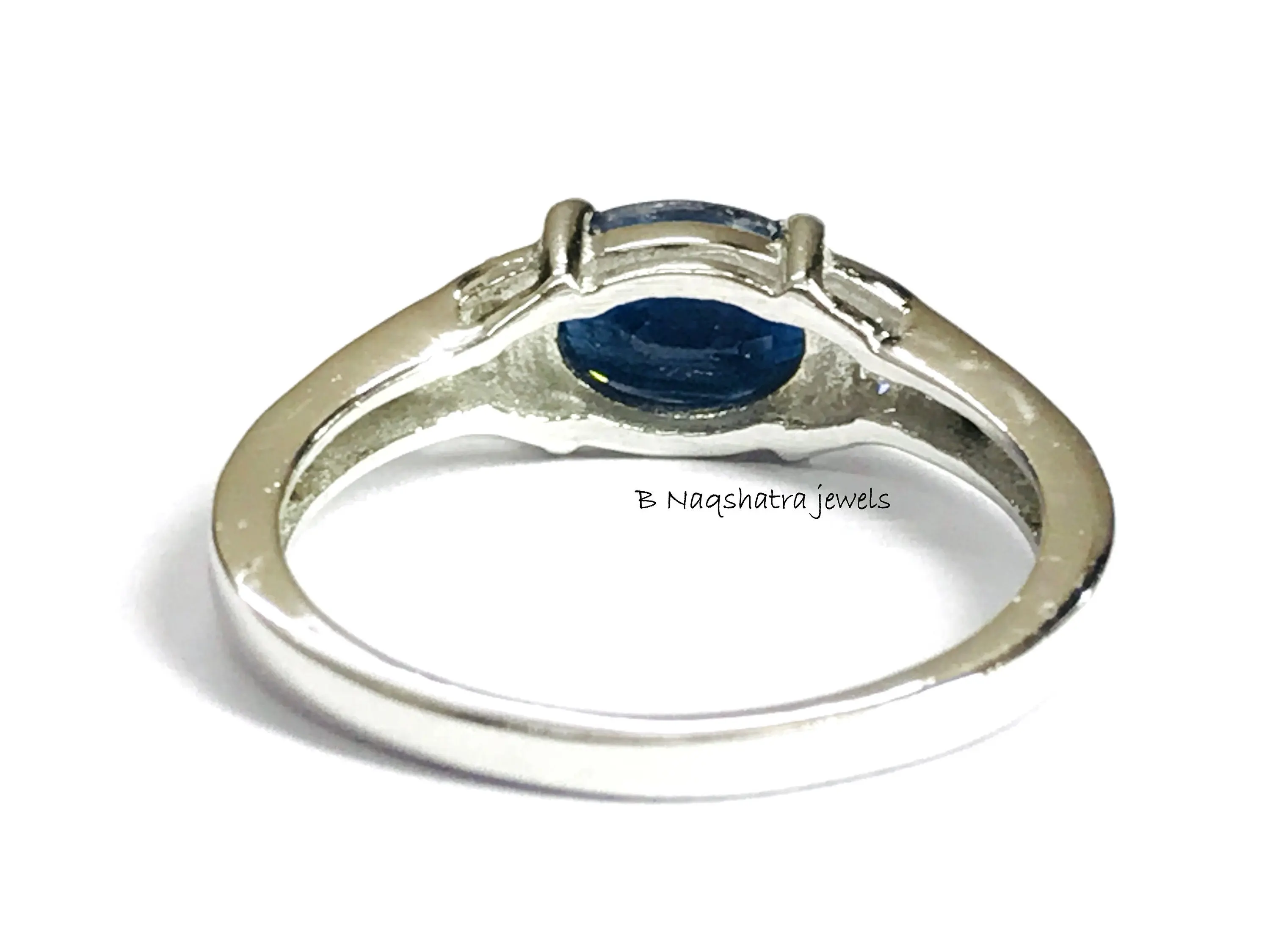 BLUE SAPPHIRE OVAL 925 sterling Silver Ring ,September Birthstone Ring, Blue Birthstone, Christmas Gift , Sapphire Engagement Ring....