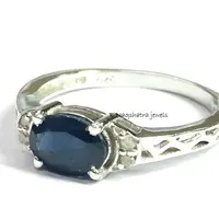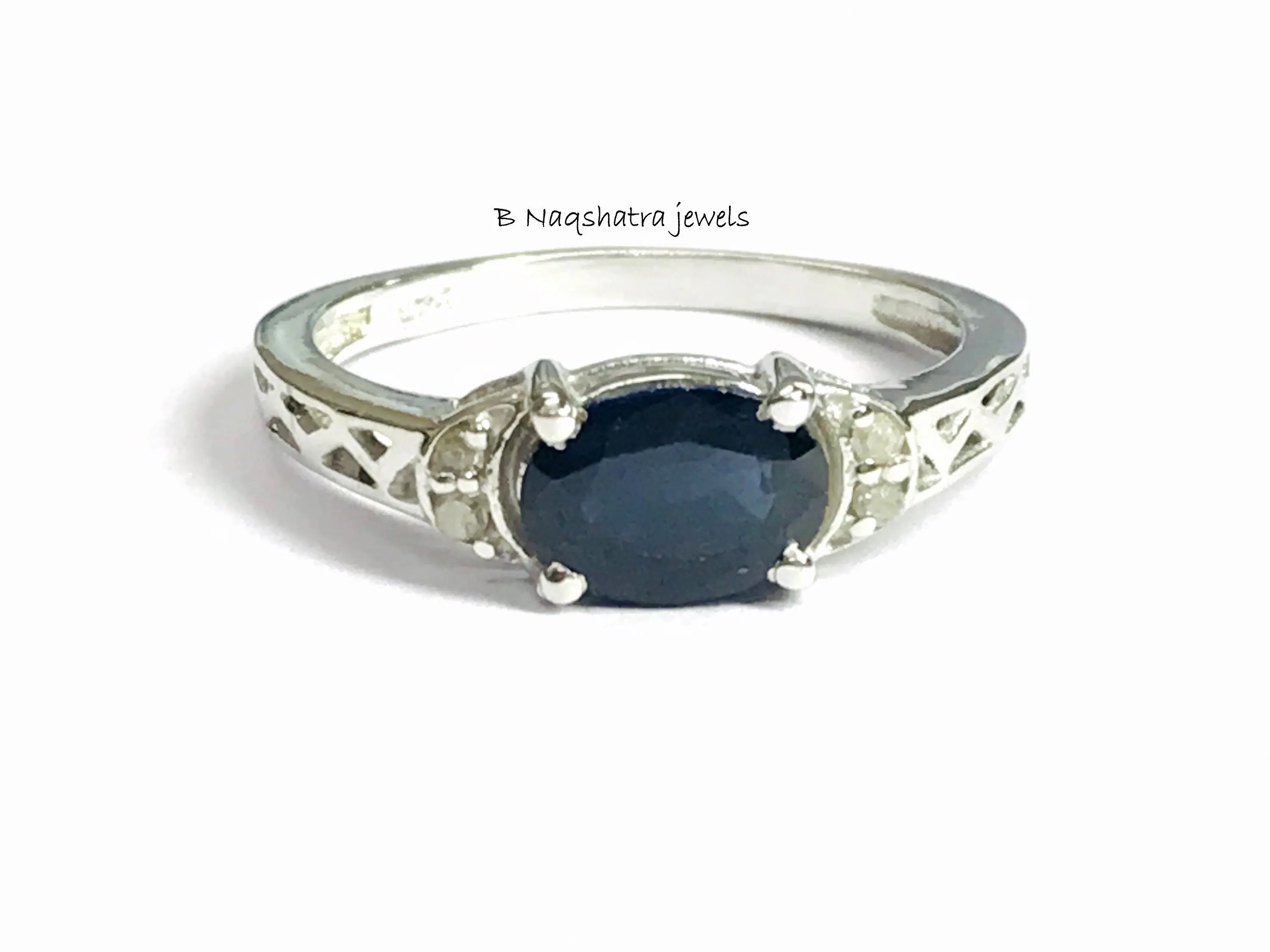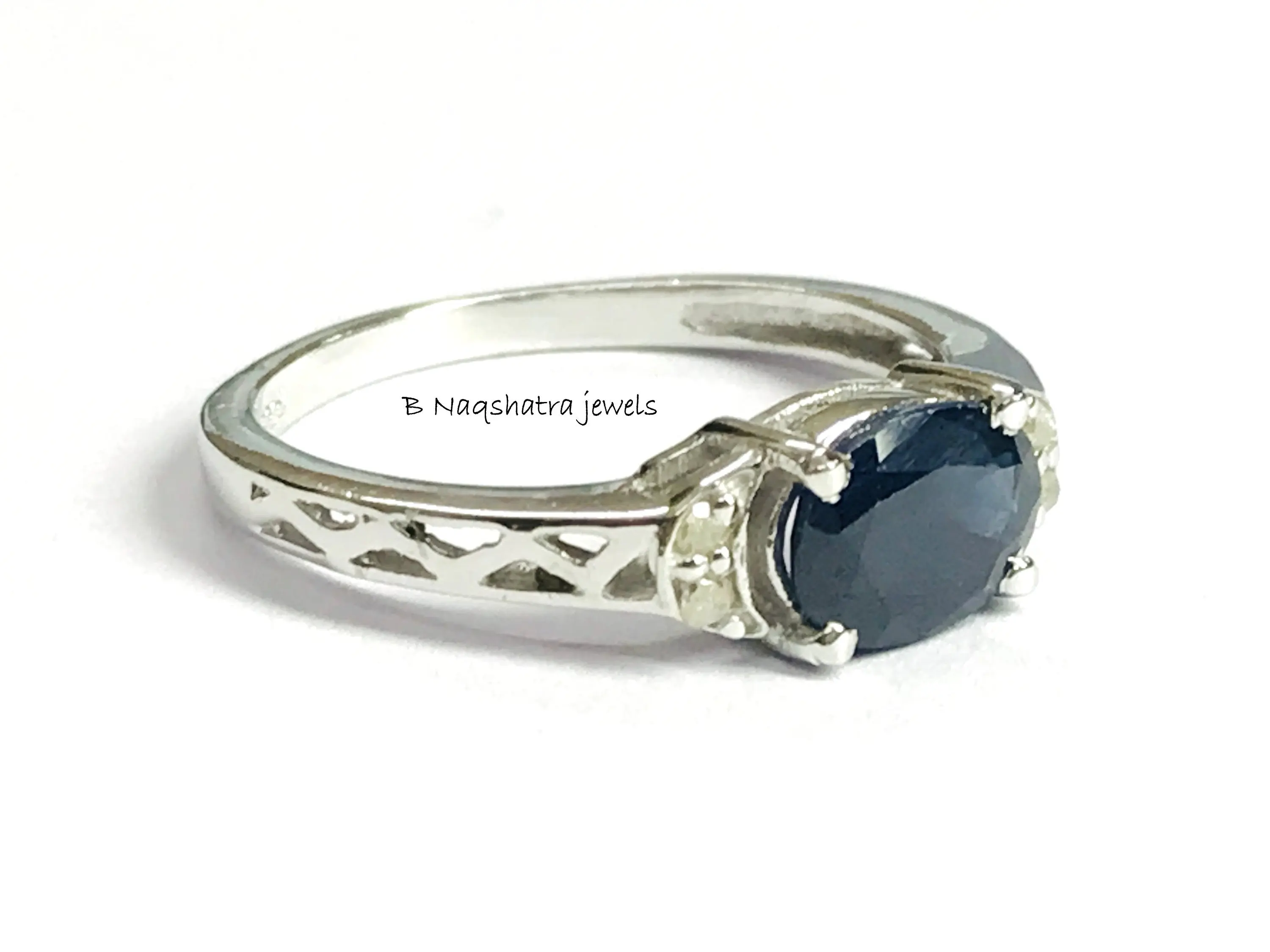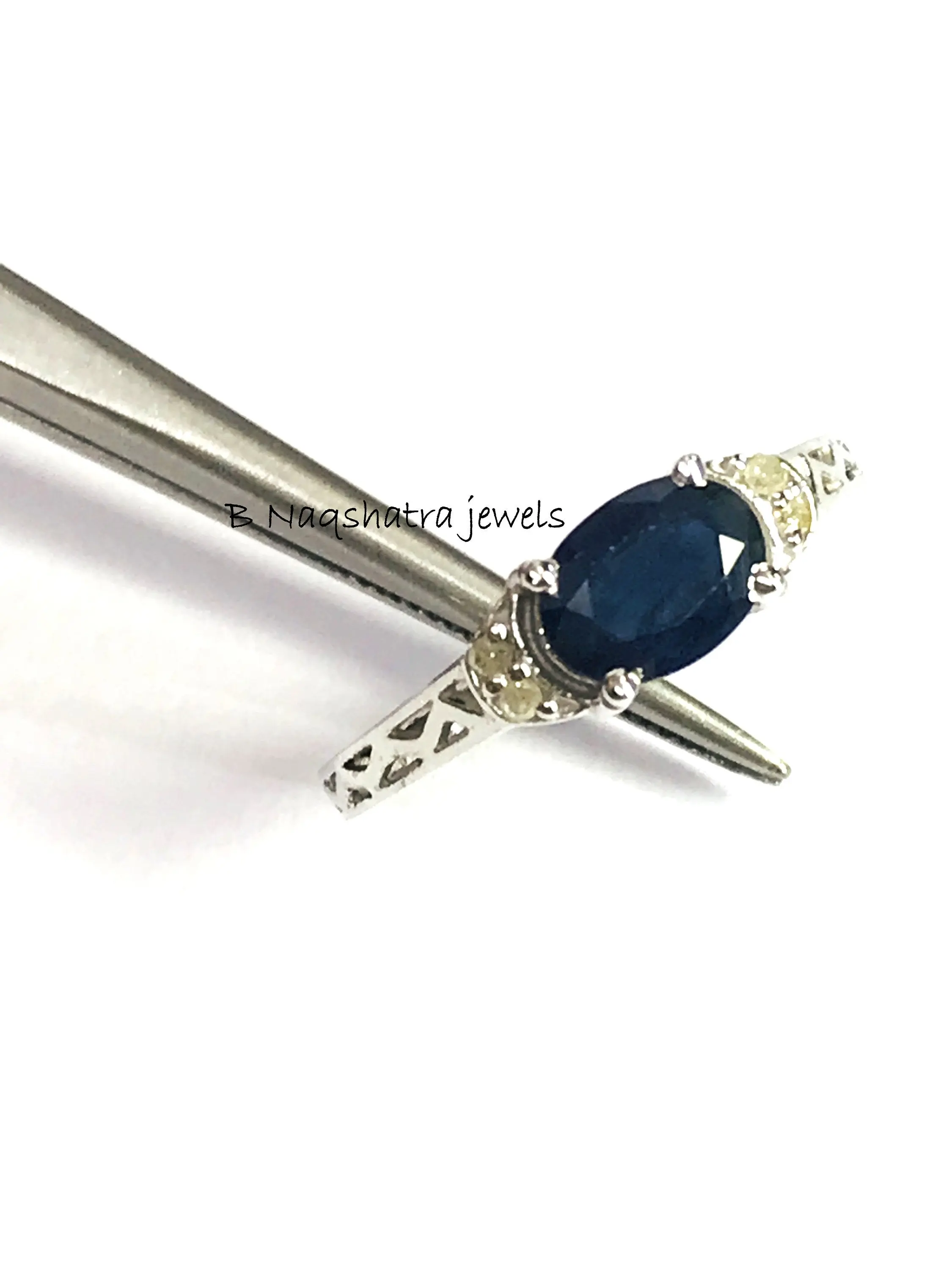 BLUE SAPPHIRE OVAL 925 sterling Silver Ring ,September Birthstone Ring, Blue Birthstone, Christmas Gift , Sapphire Engagement Ring....