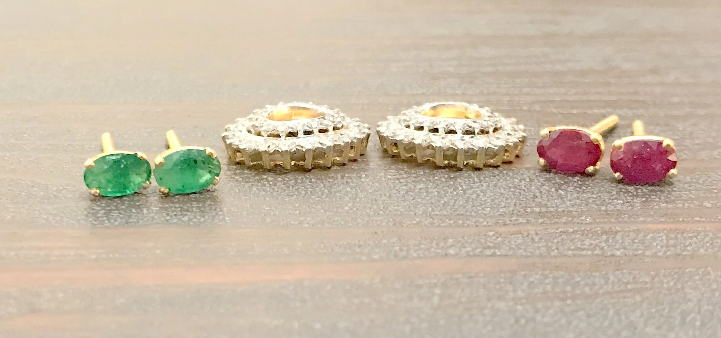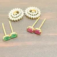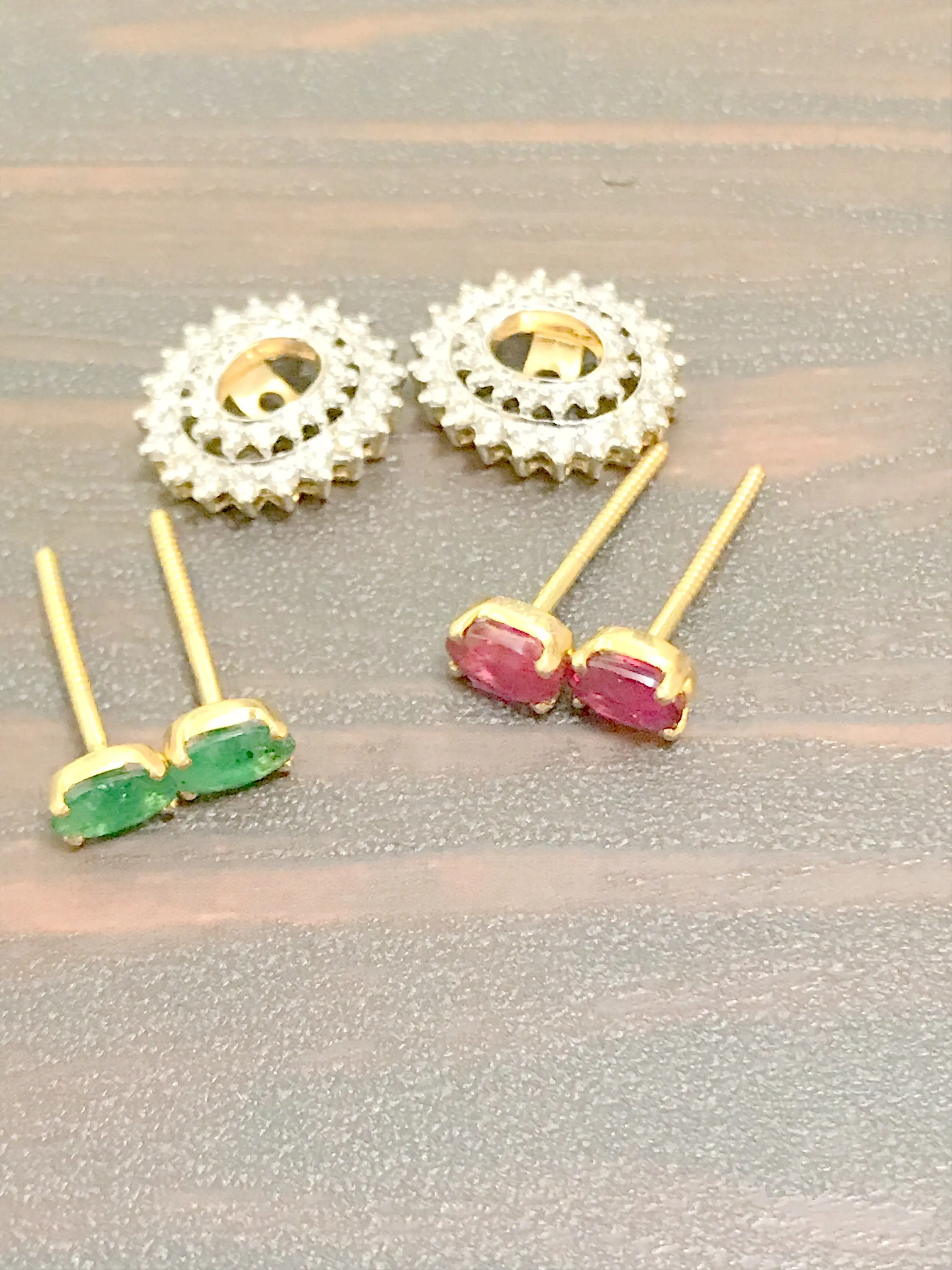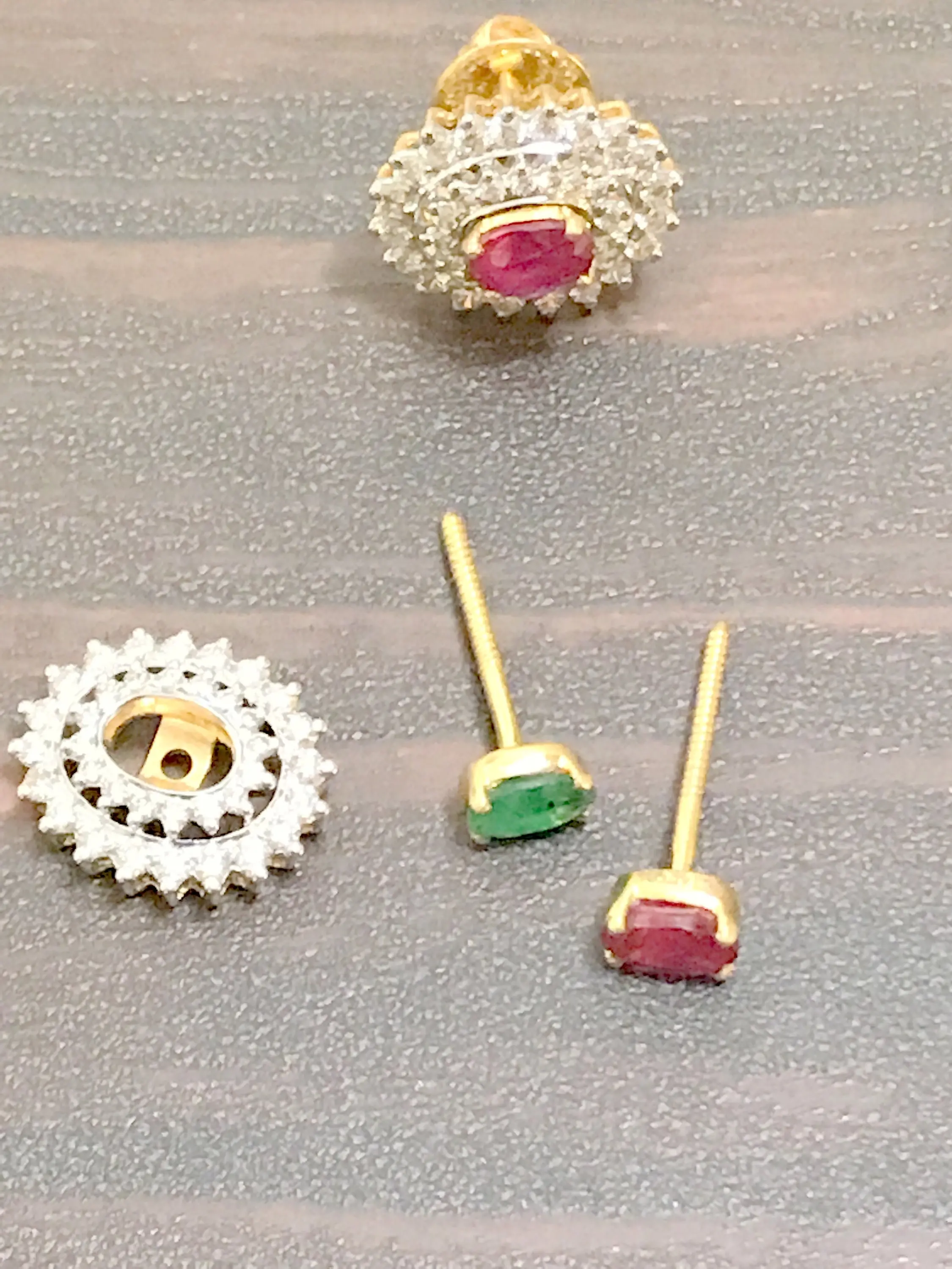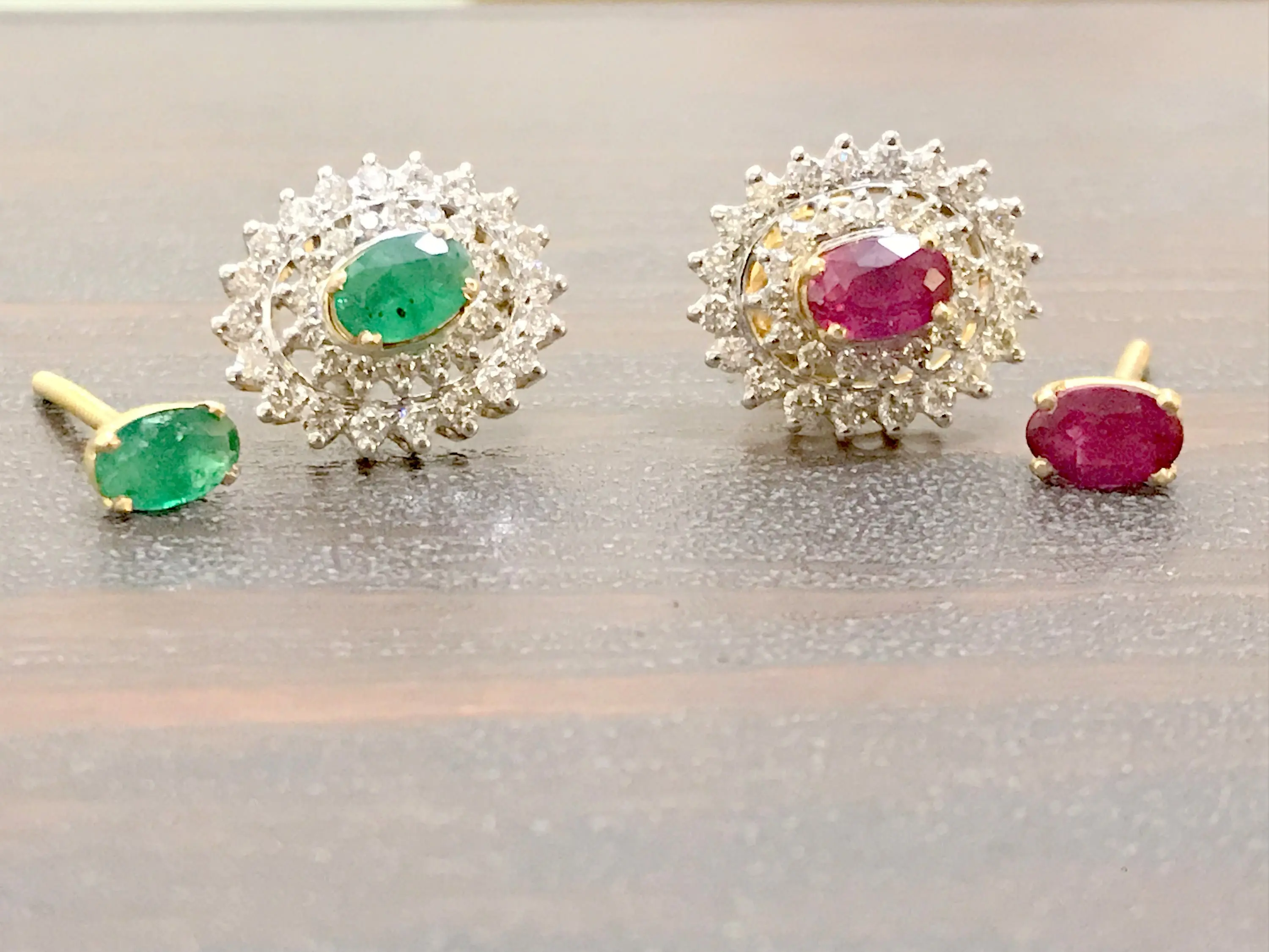 RUBY EMERALD DIAMONDS Changeable Halo Stud Earrings , Hot and Lovely stud earrings , gift for loved ones ,Wedding Bridal Jewellry
