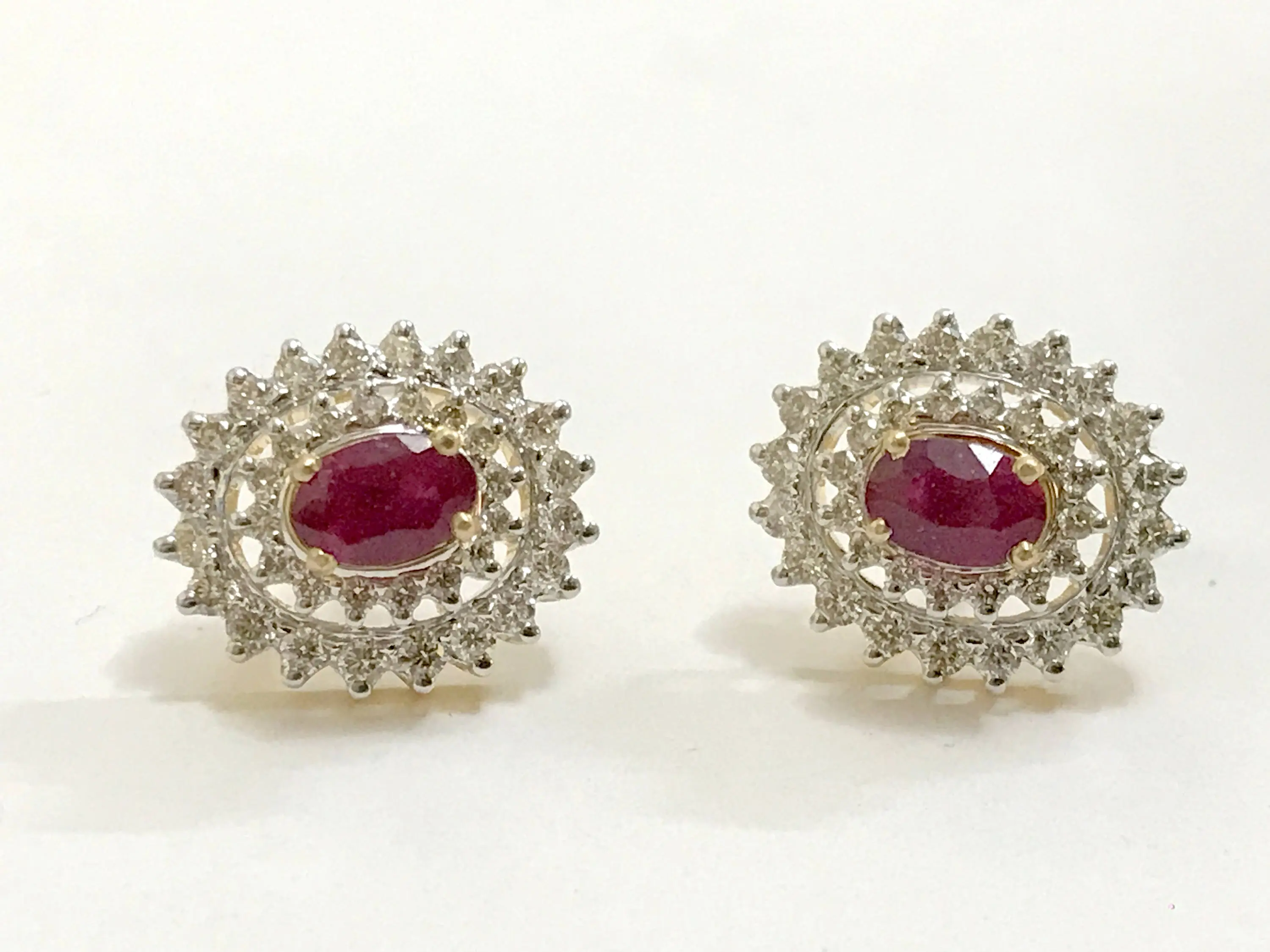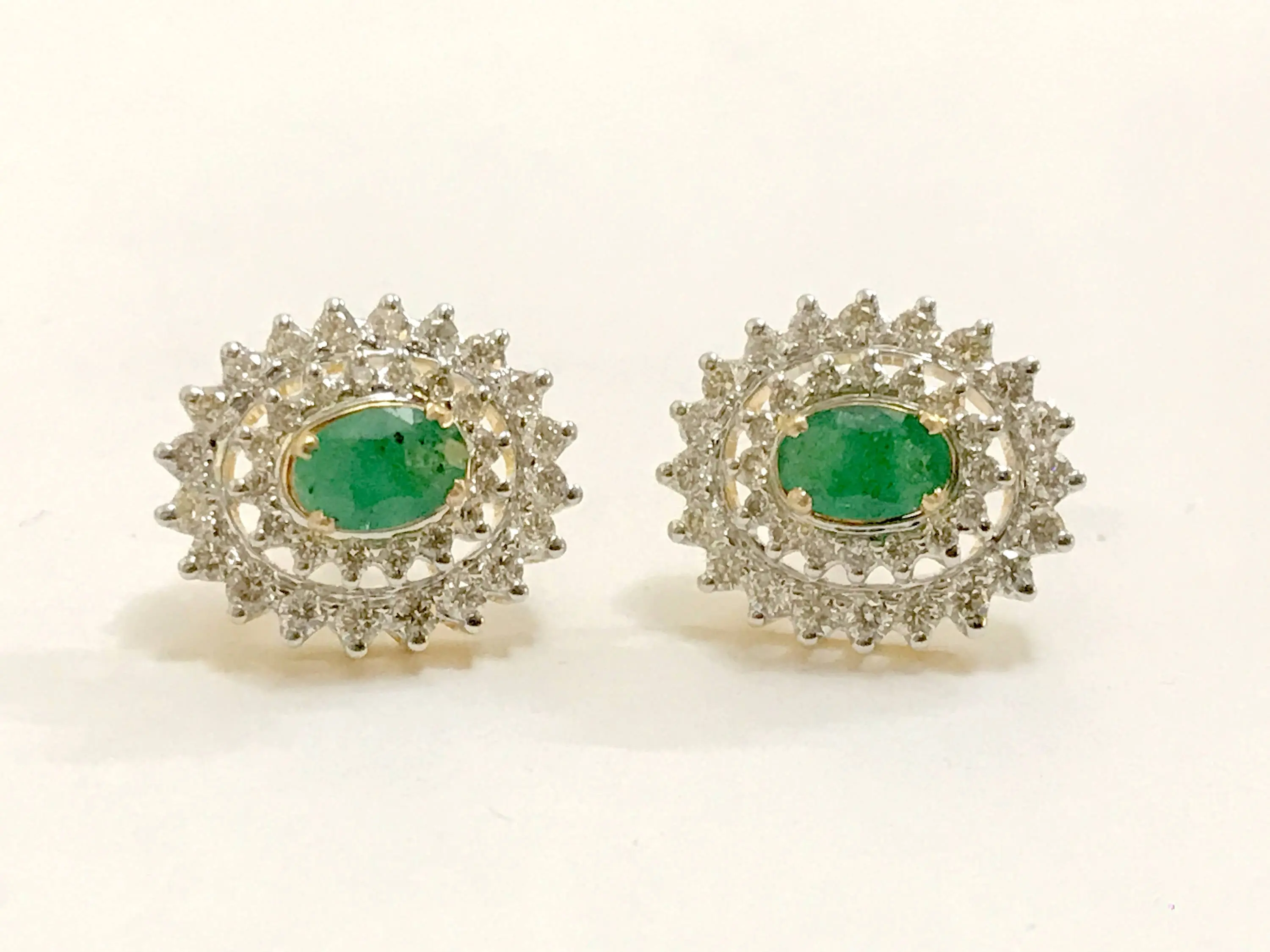 Each earring features oval & round cut prong-set diamonds Emerald and ruby. Each piece in our lovingly handcrafted gold diamond jewelry collection is made right here in the INDIA - JAIPUR... Give a gift as everlasting as your love with these gorgeous dainty gold diamond stud earrings.